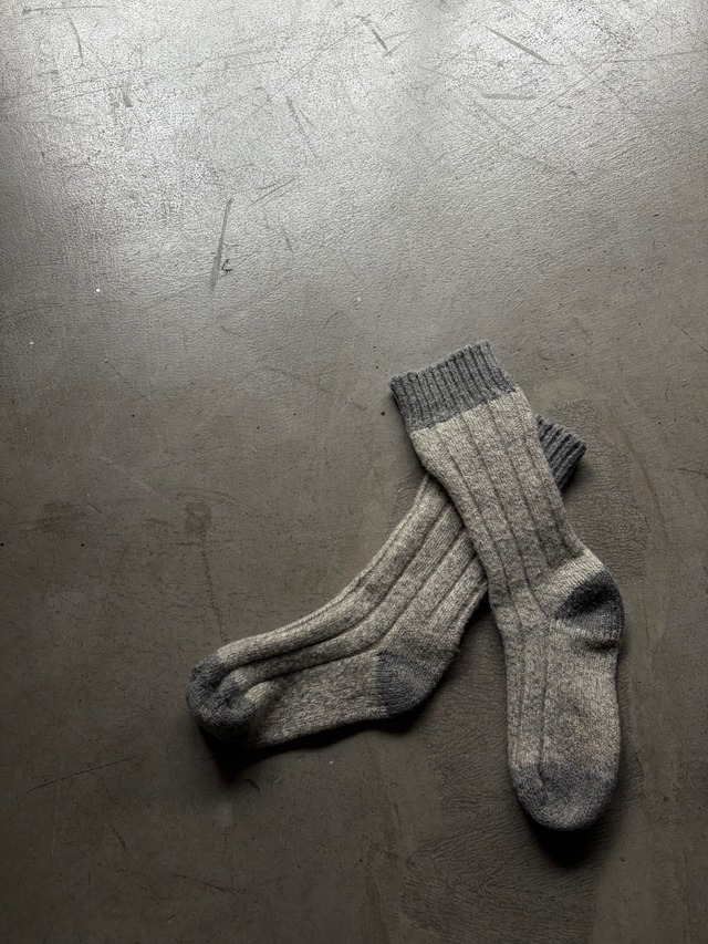 ABOUT Vintage Rug Wool マーブル柄のウールソックスです。少しやり過ぎなくらいボリュームがありファッションとして成立しそうなアウトドアギア。 スウェットパンツの裾をタックインして履いてみたり、ビンケンやサンダルに合わせてみるのも良さそうです。 SIZE L30(TOP〜カカト) size 〜25cmくらい (cm) 着用身長161cm CONDITION