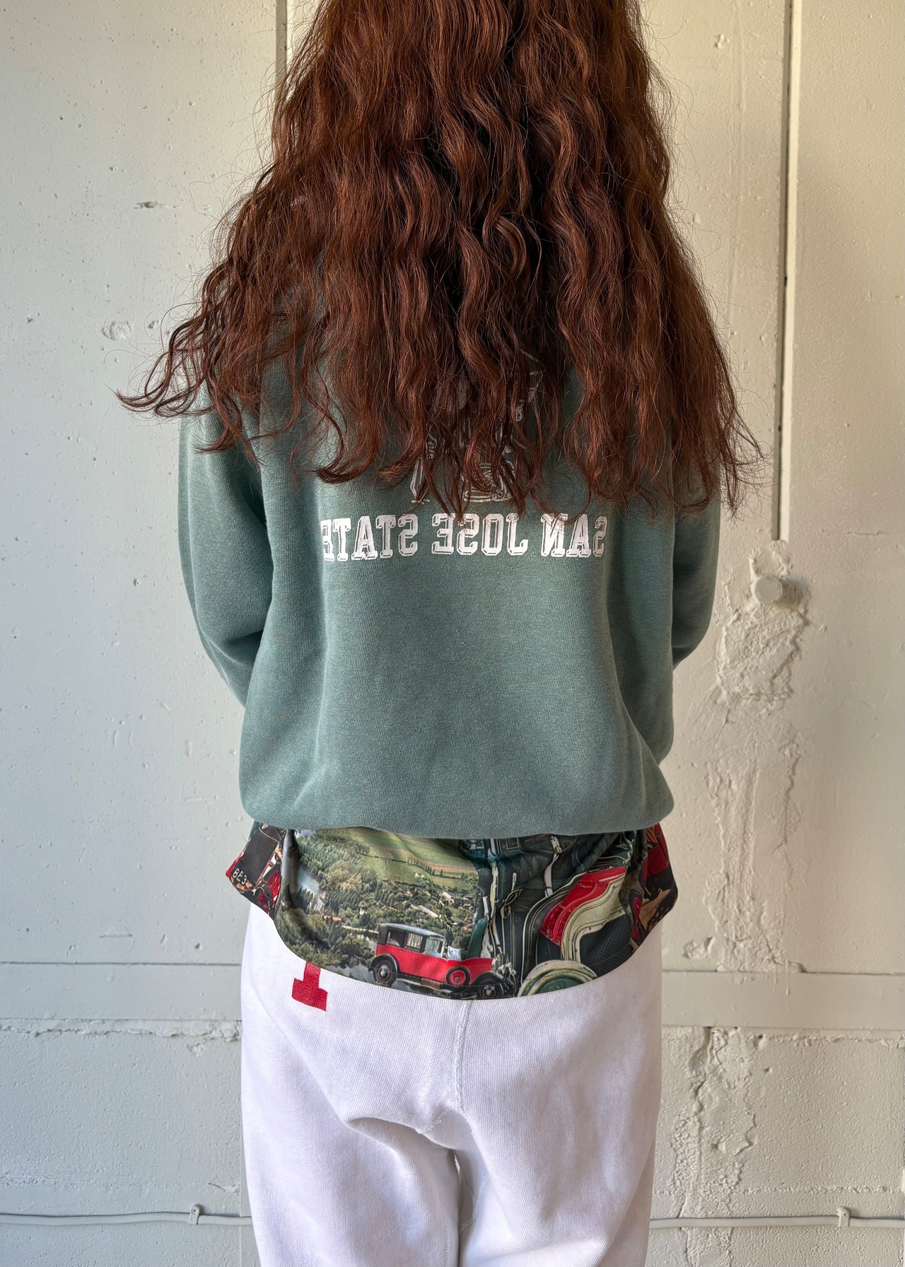 写真がそのままプリントされたシャツ。1970年代のアメリカの古着らしい服なのですが、なんせ難しいものが多い。