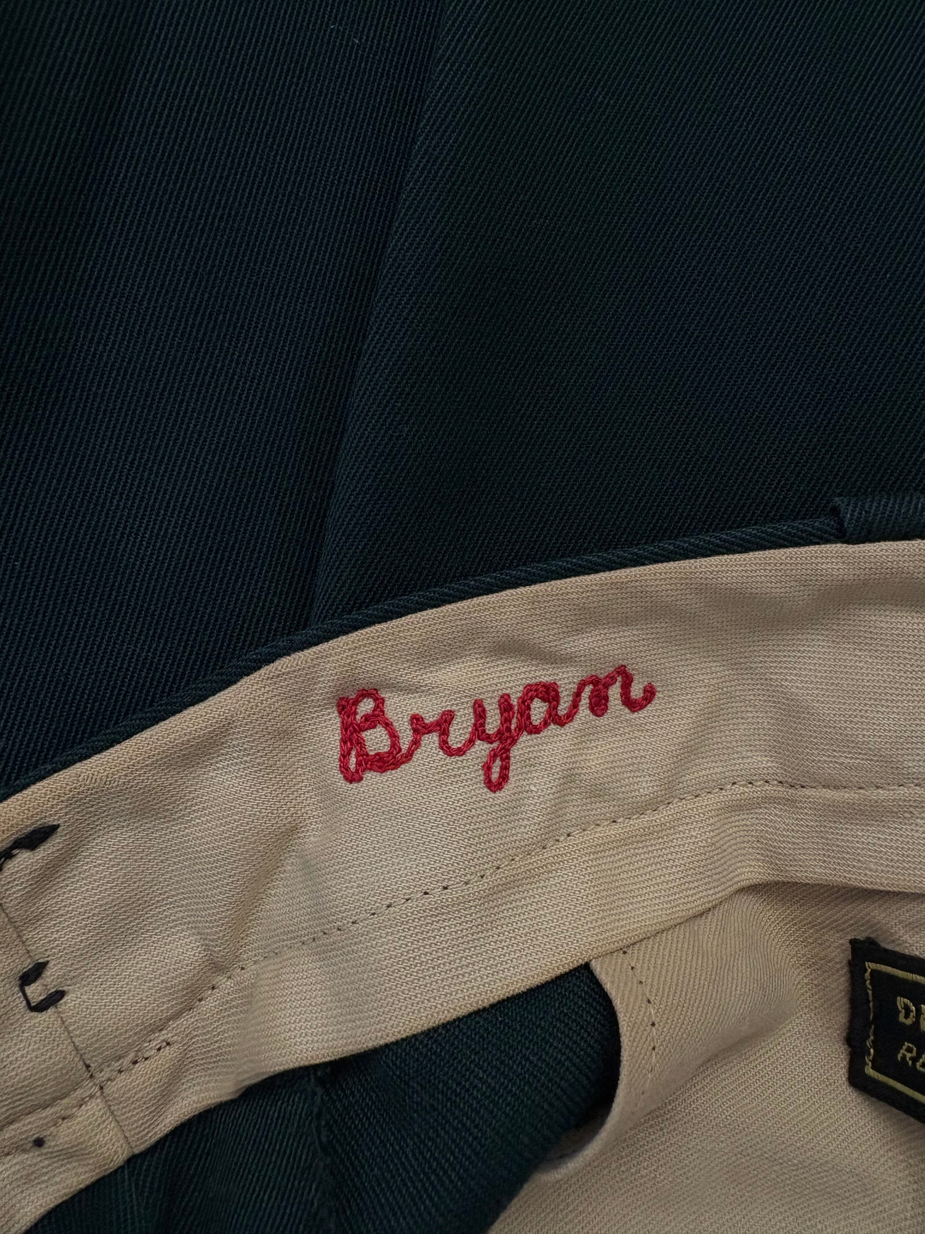 こちらウールが混紡になりそうな感じのワークスラックスなのですが、レーヨンと化学繊維のミックスです。どうりで見つけた時にやけにとろみのある手触りだなと思ったわけです。