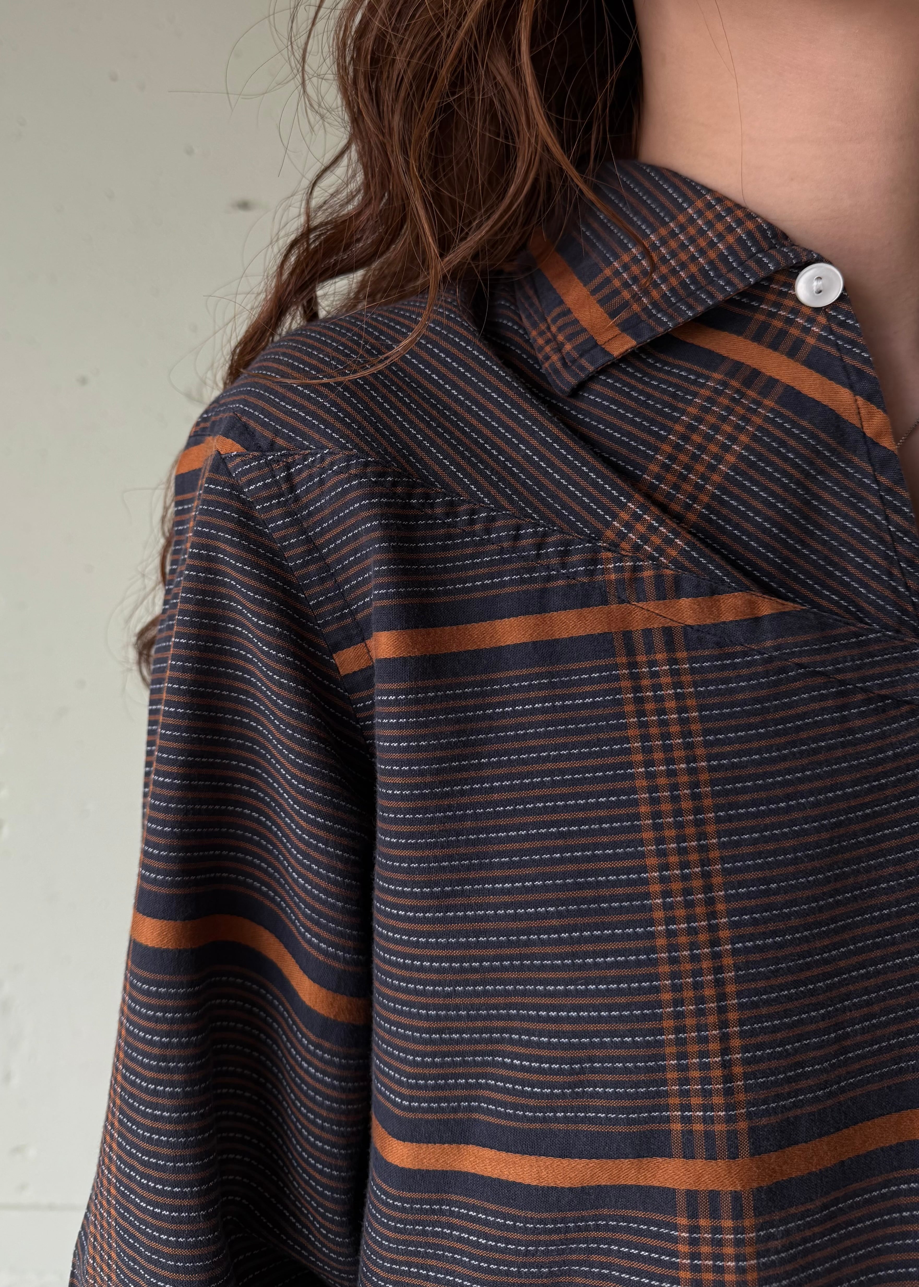 カスタムメイドのようなタグなどがついていない古いコットン生地のシャツ