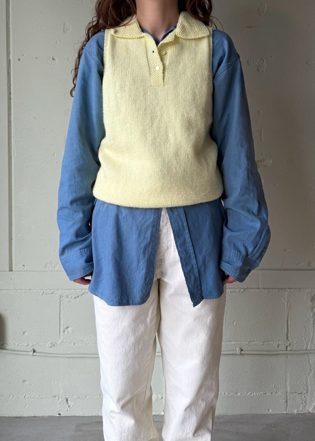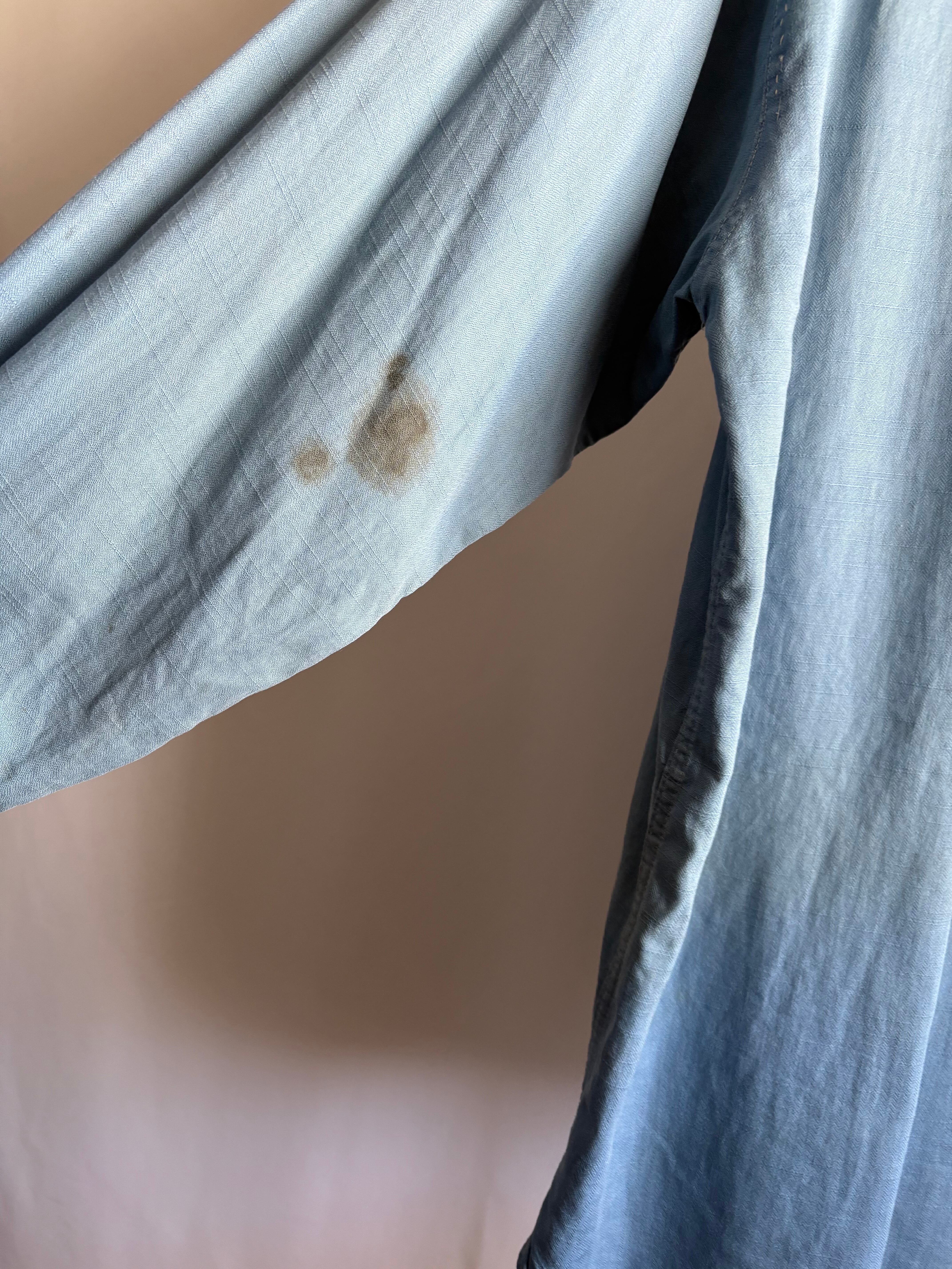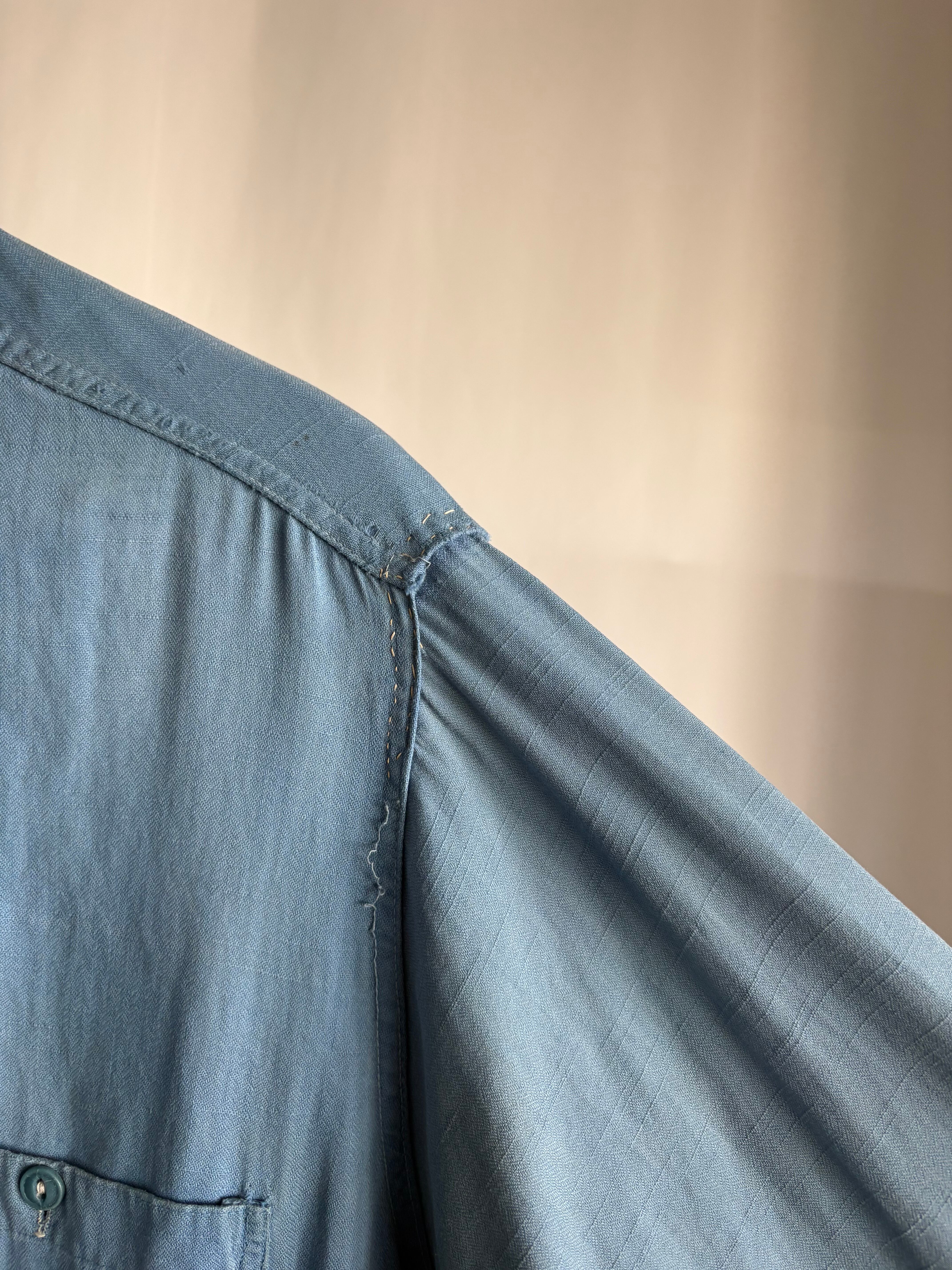 ワークシャツ特有セルフリペア。正直ボロいです。生地が弱っているとかではないですがしっかり着古されています。