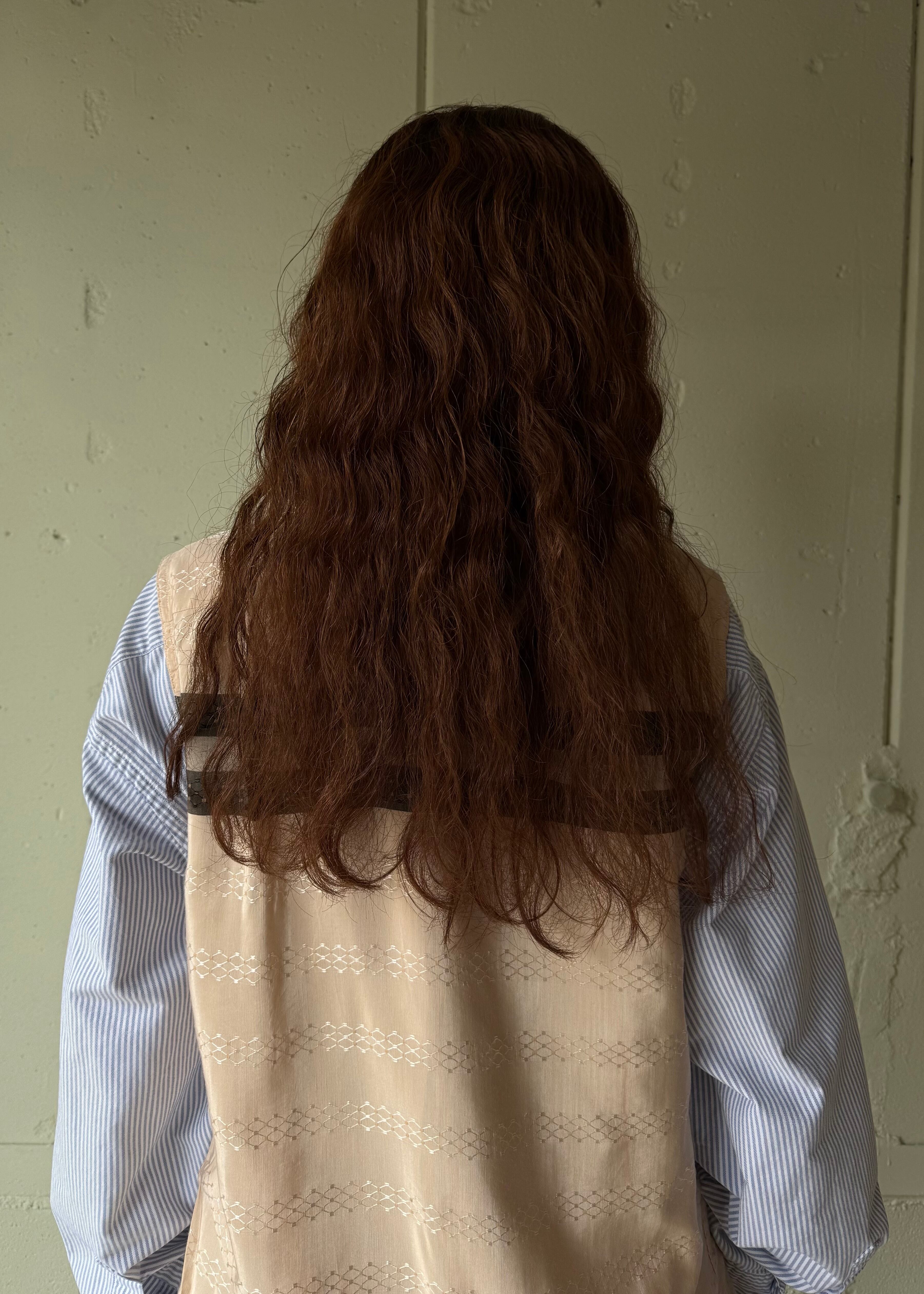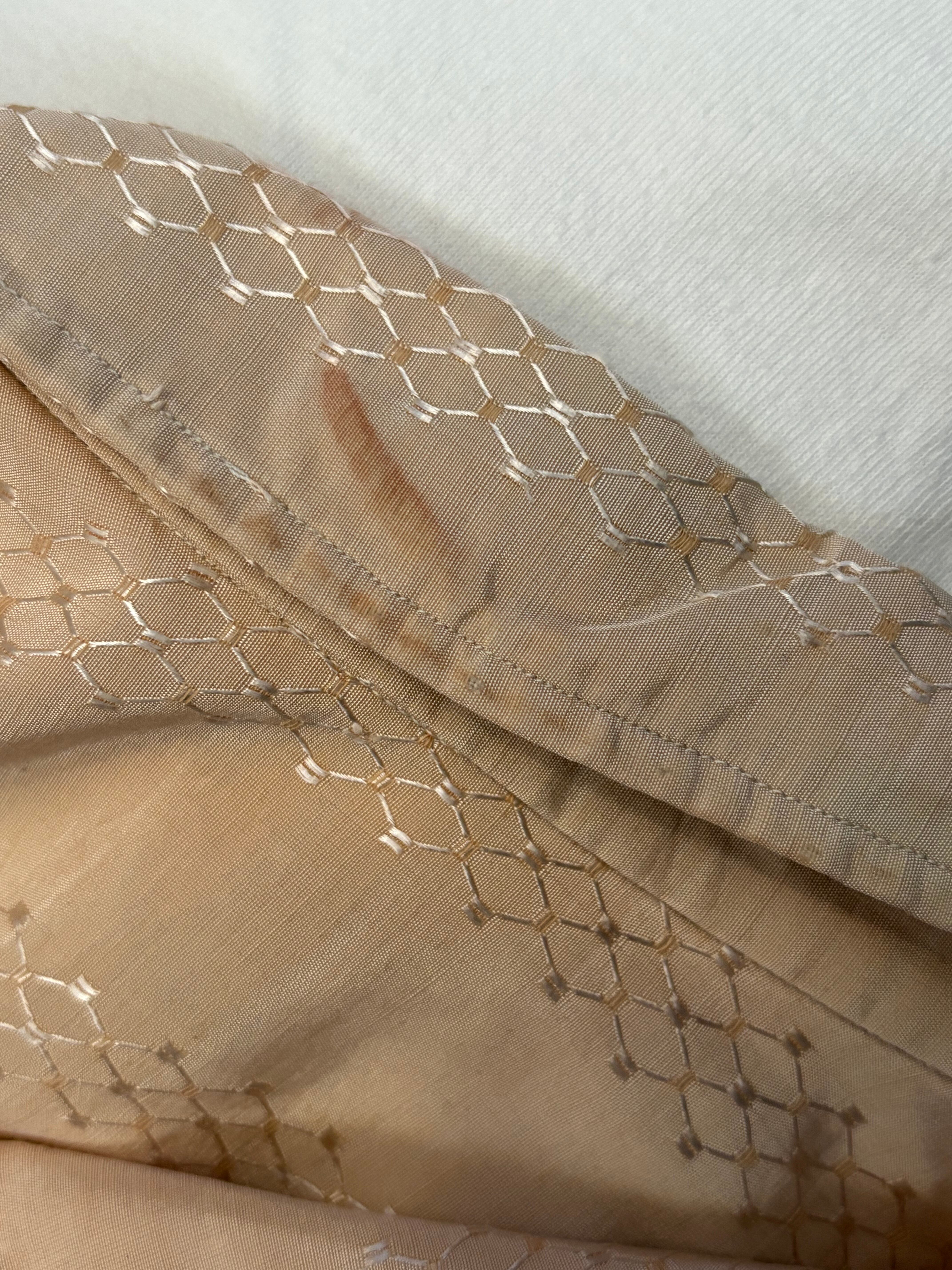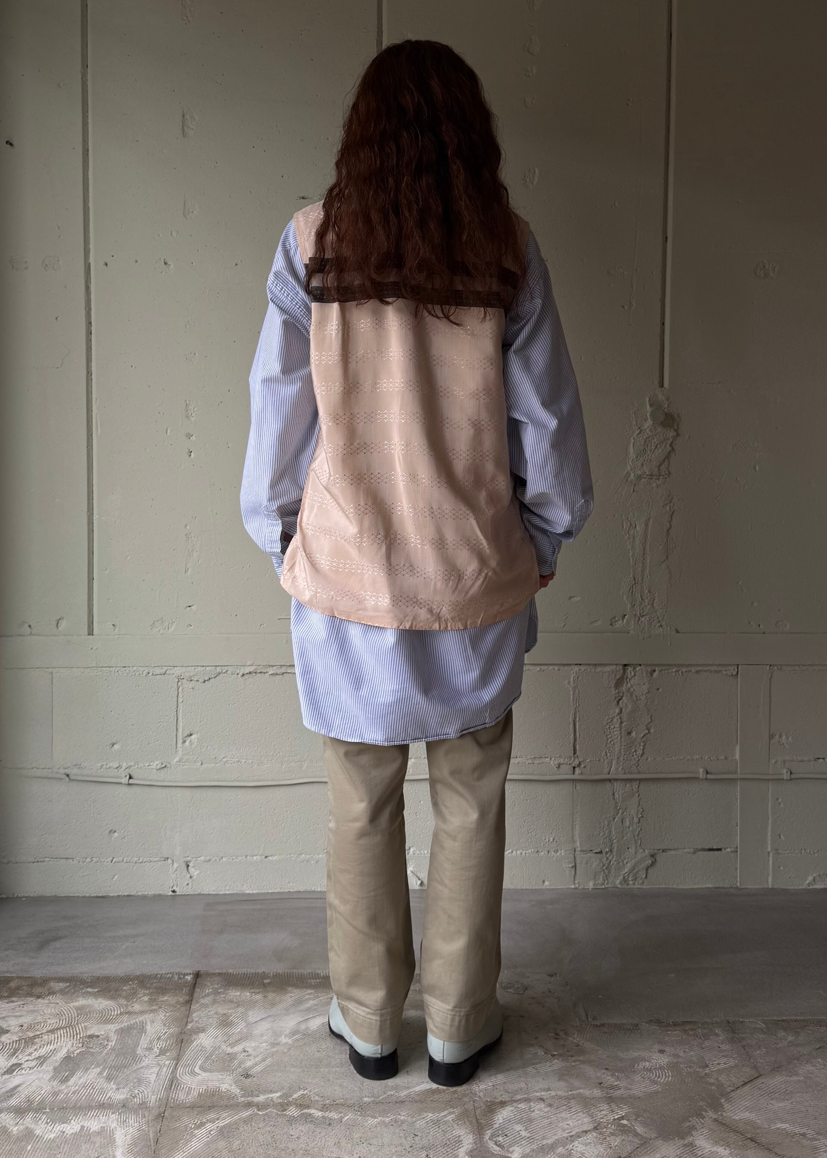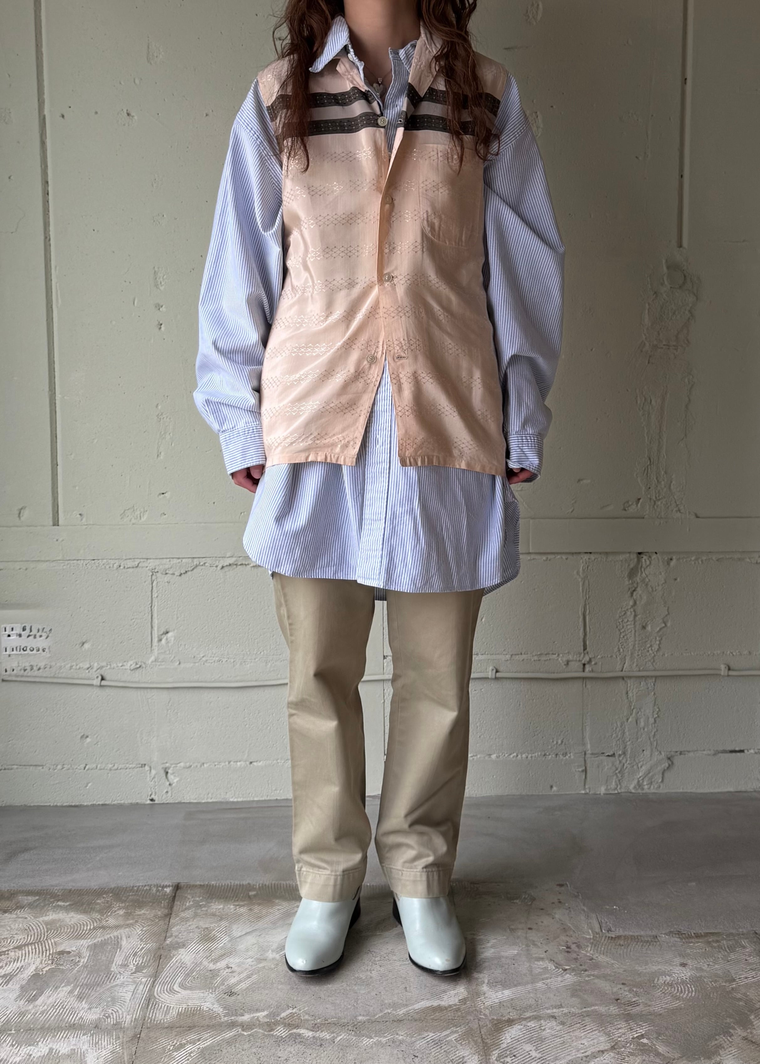 袖が邪魔だったのか。光沢のあるサラッとした素材です。それにしても見たことのないパターンのバンヒューセン、色々重ねてああでもないこうでもない!ってできそうな古着。