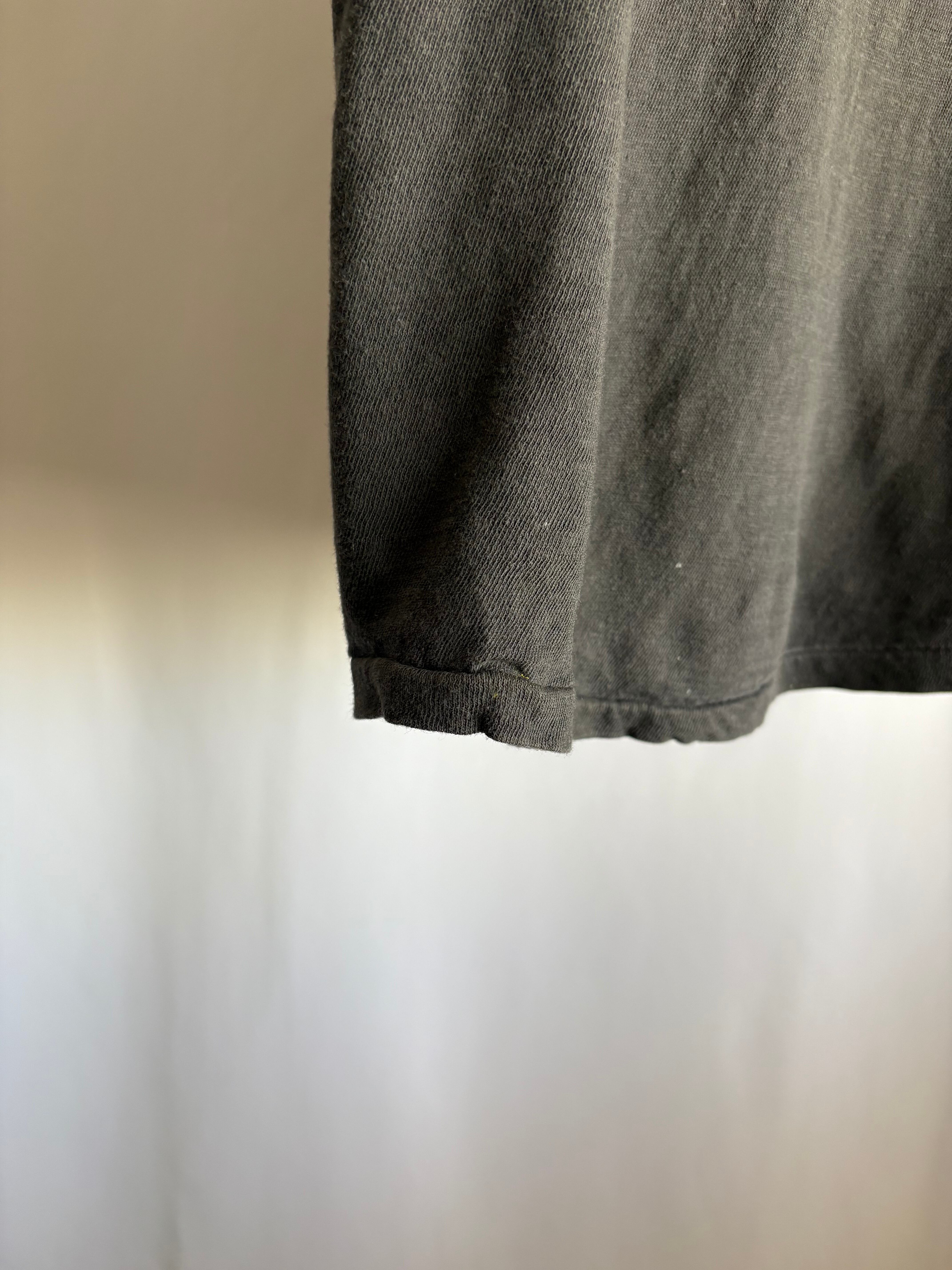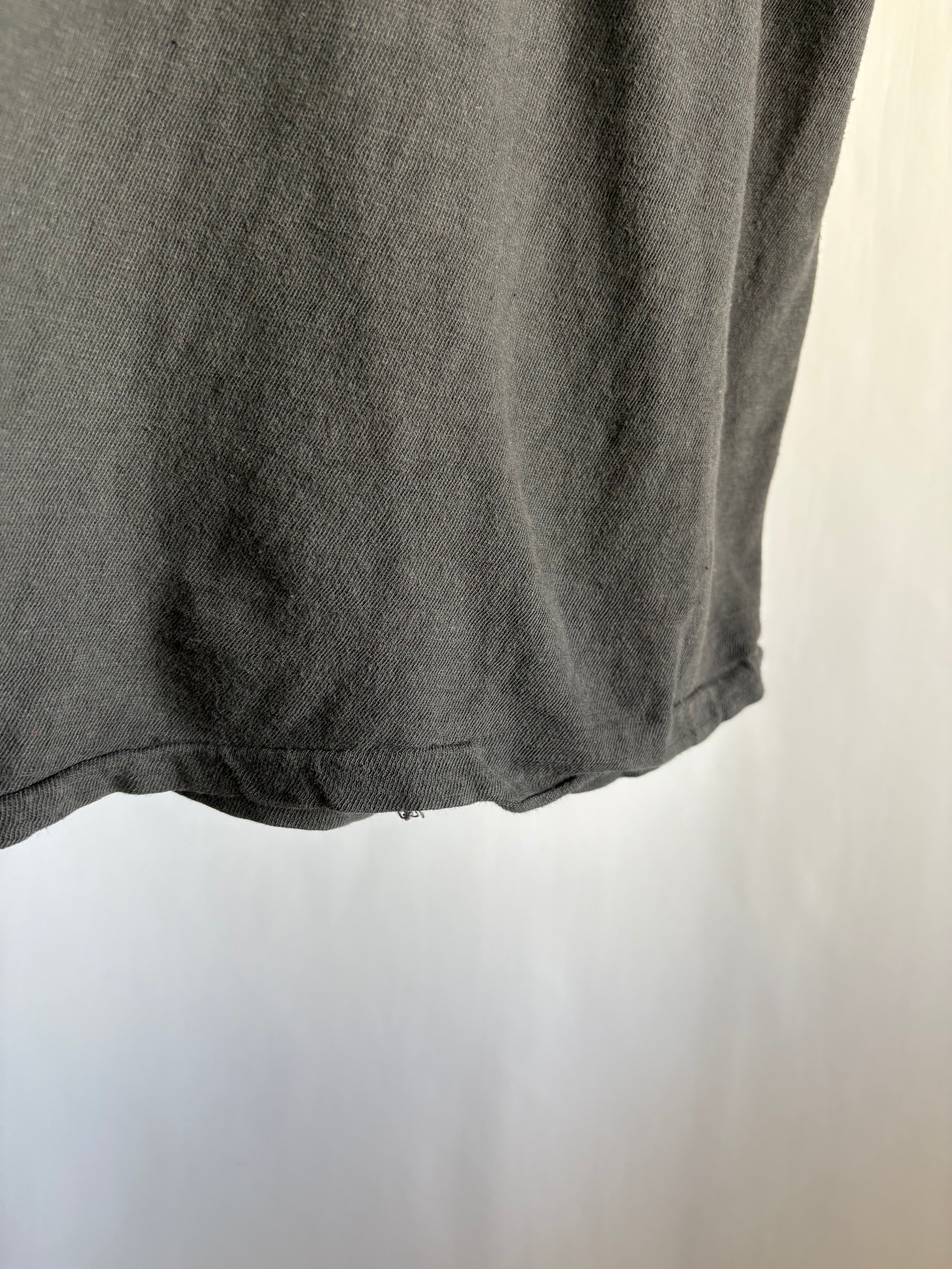 意図せぬ変な形と薄れ方。見方にやってはなんだこれ?な薄々のボディーですがインナーを透かしみたり、高級感のあるボトムや小物と合わせるなど楽しめるTシャツ