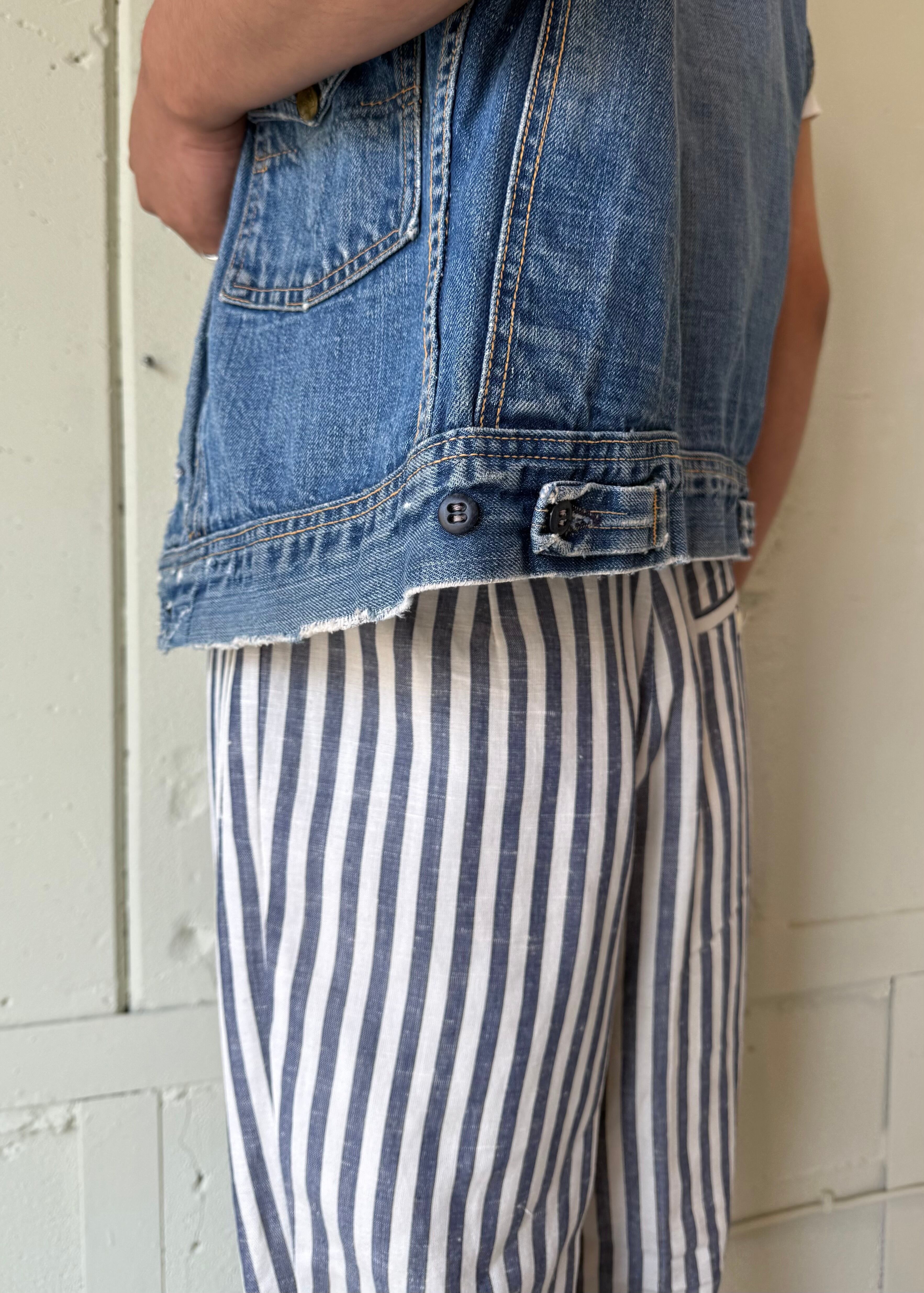 こちらはその凛とした正装のイメージや、写真で合わせている様な正反対のマリンを感じるアイテムに妙に調和するベストかもしれません。