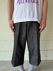 太めで変な丈です。光り方もギラつきすぎておらず程よい光沢。