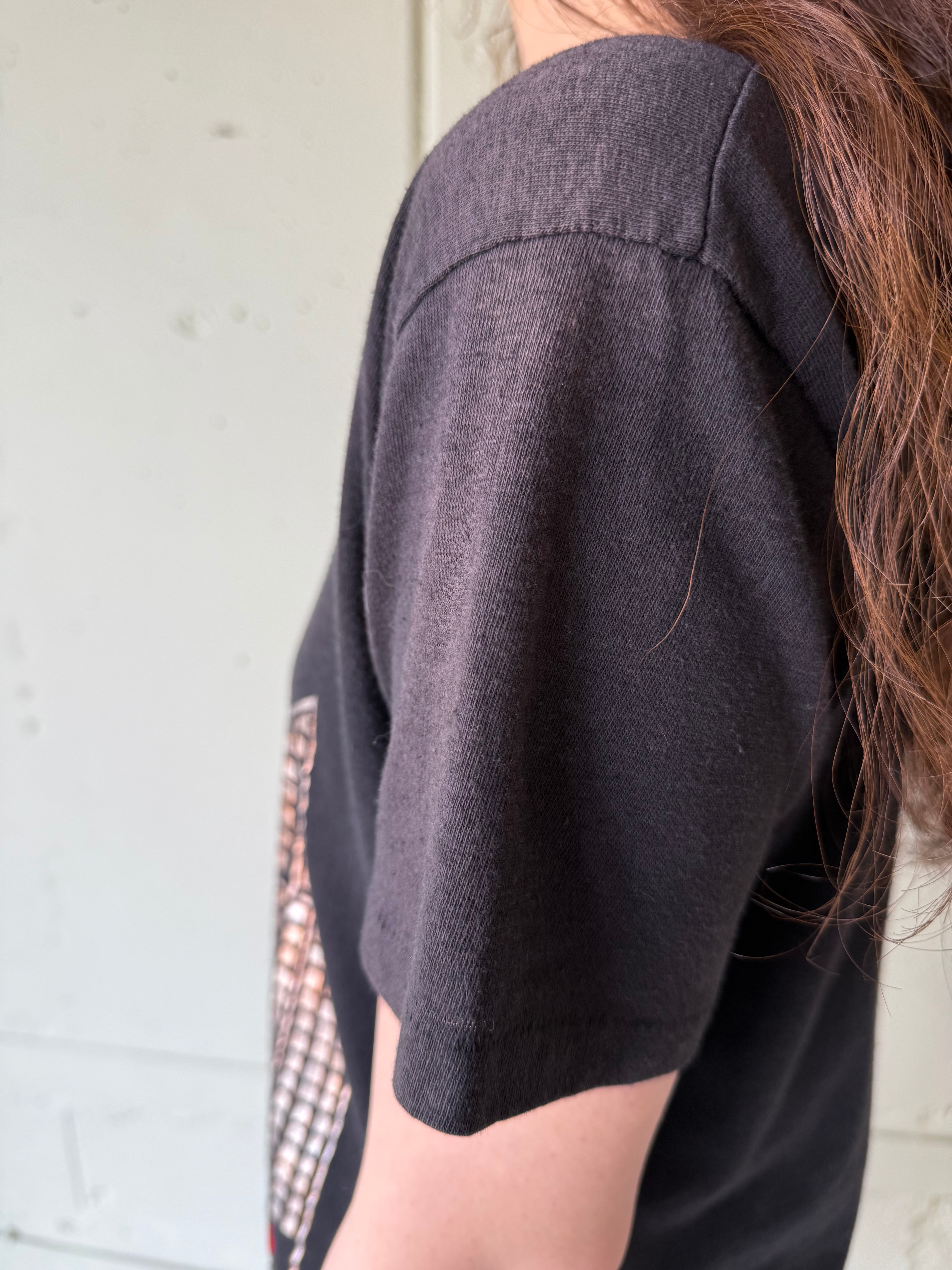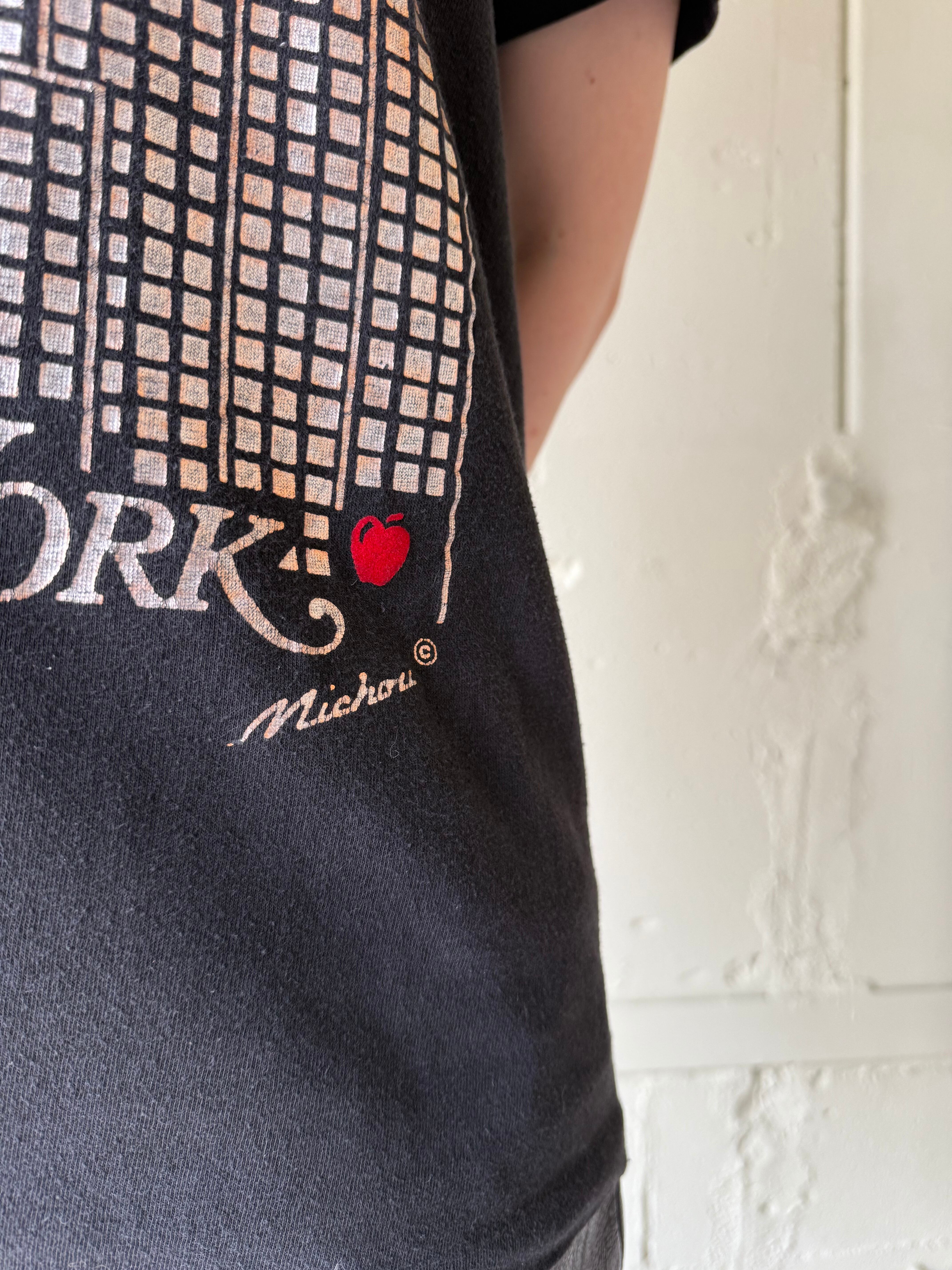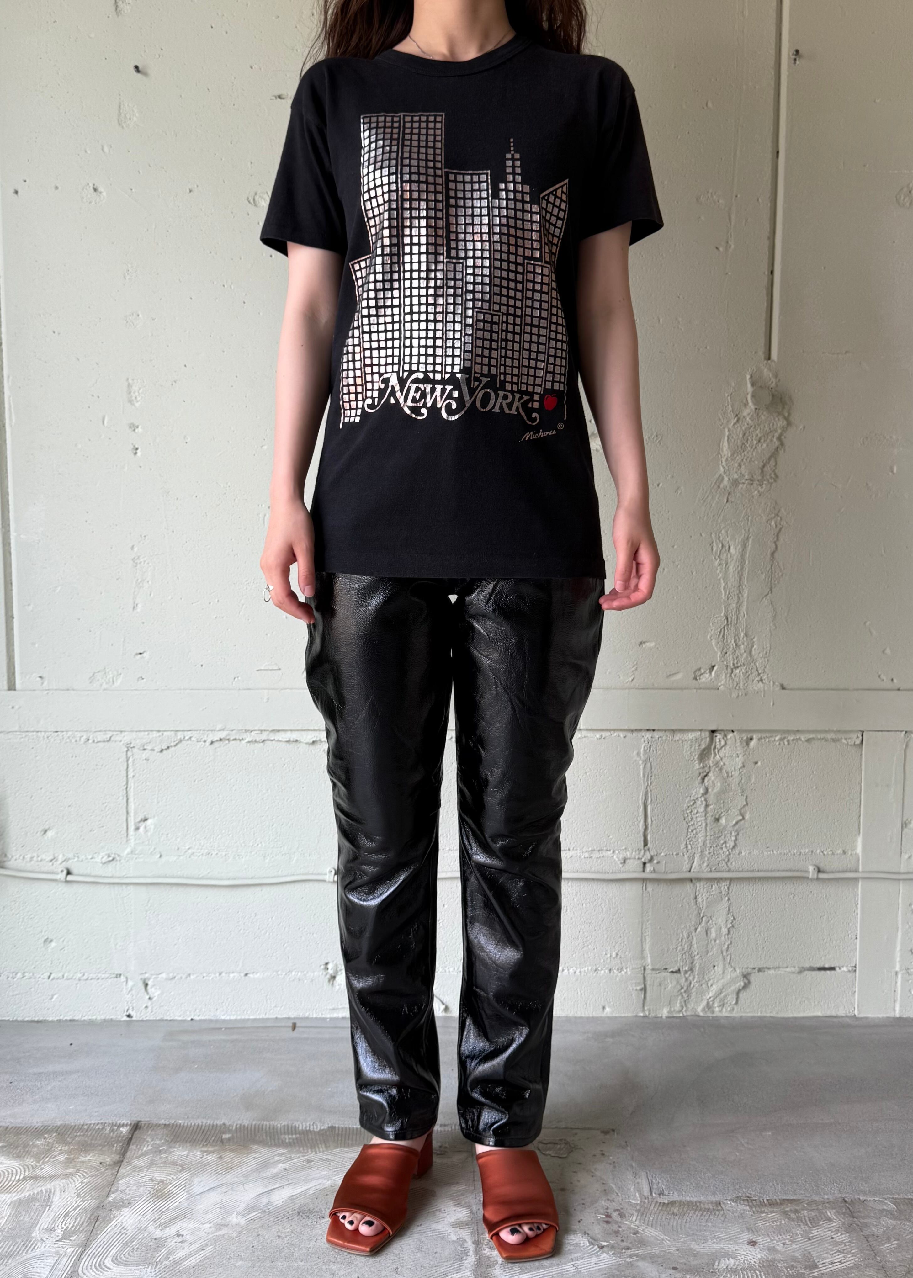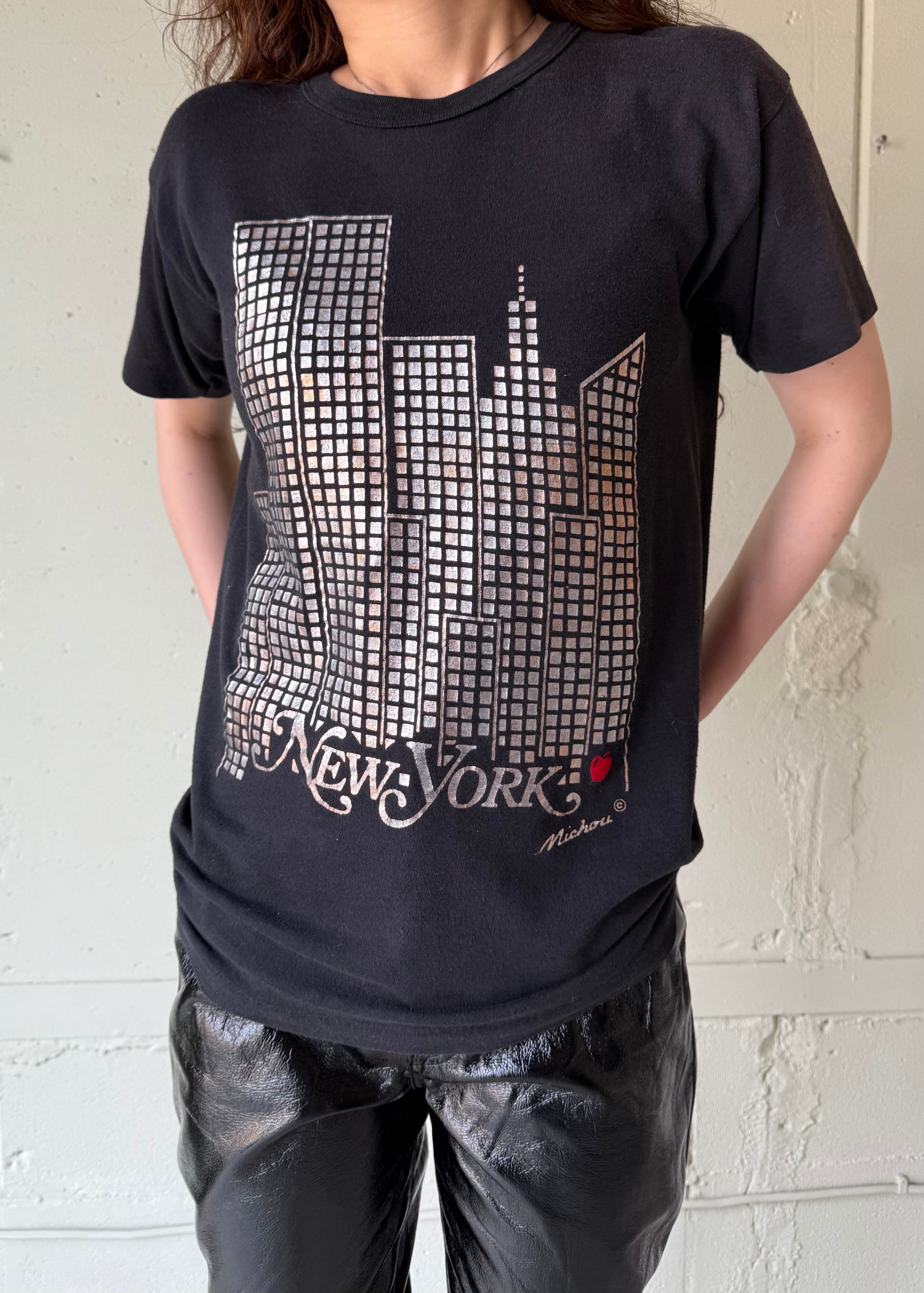 ブラックの薄めのTシャツボディーにキラキラのプリントです。ニューヨークが好きでニューヨークの古めのTシャツも好きです。