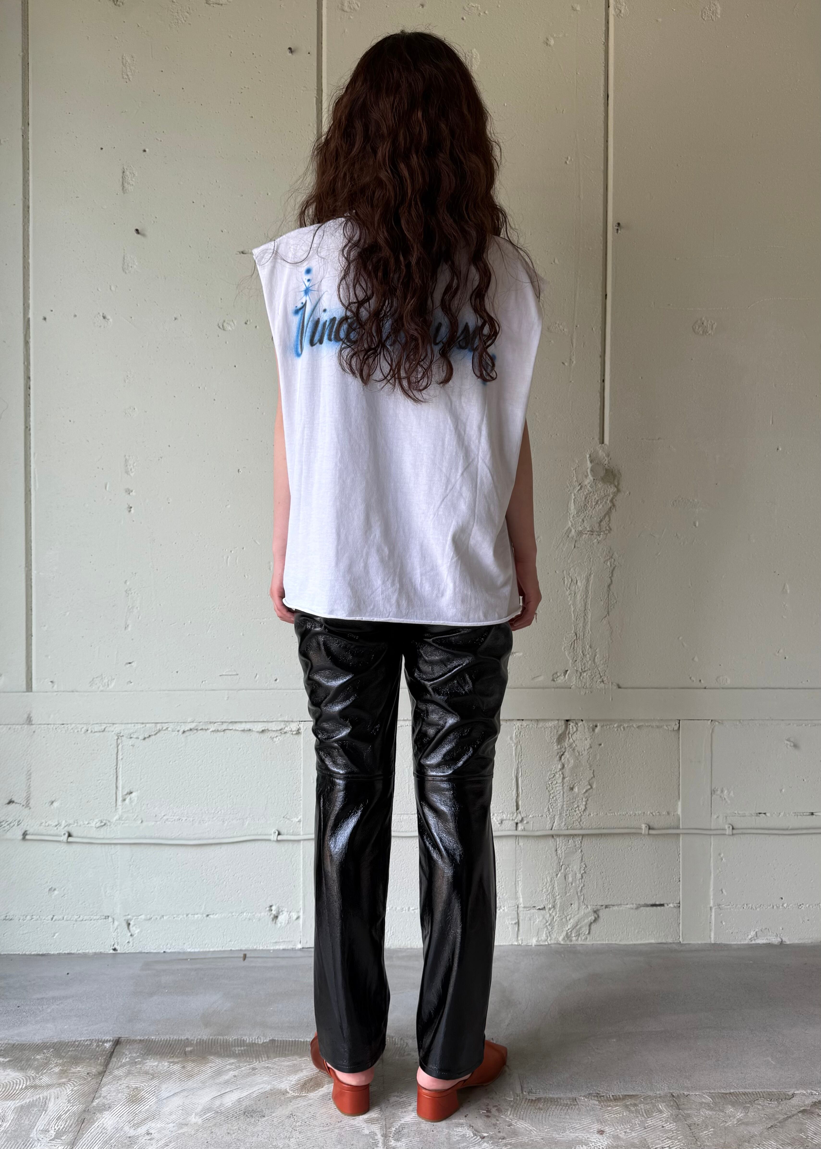 脇下までカットされたスリーブレスカットソーです。