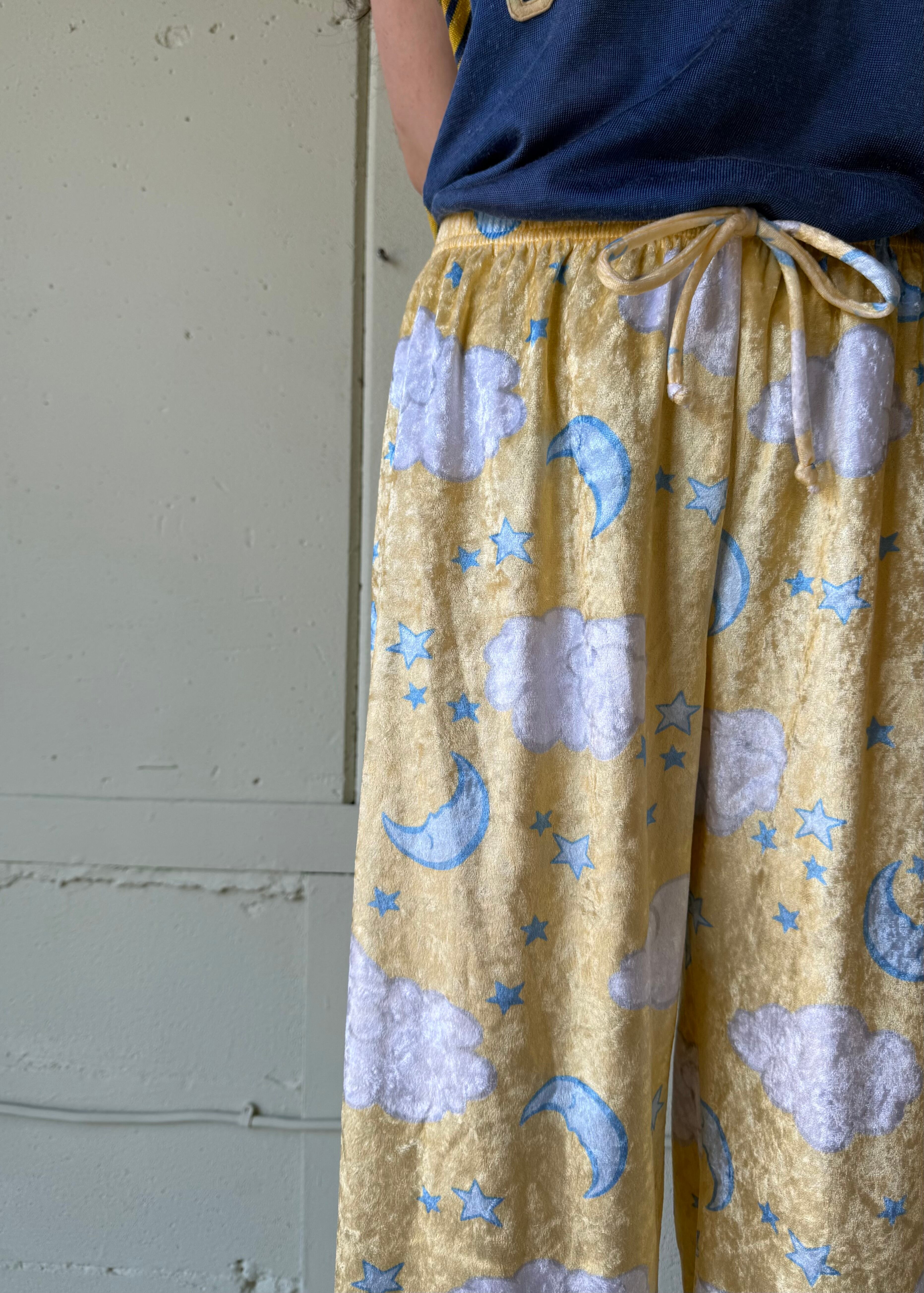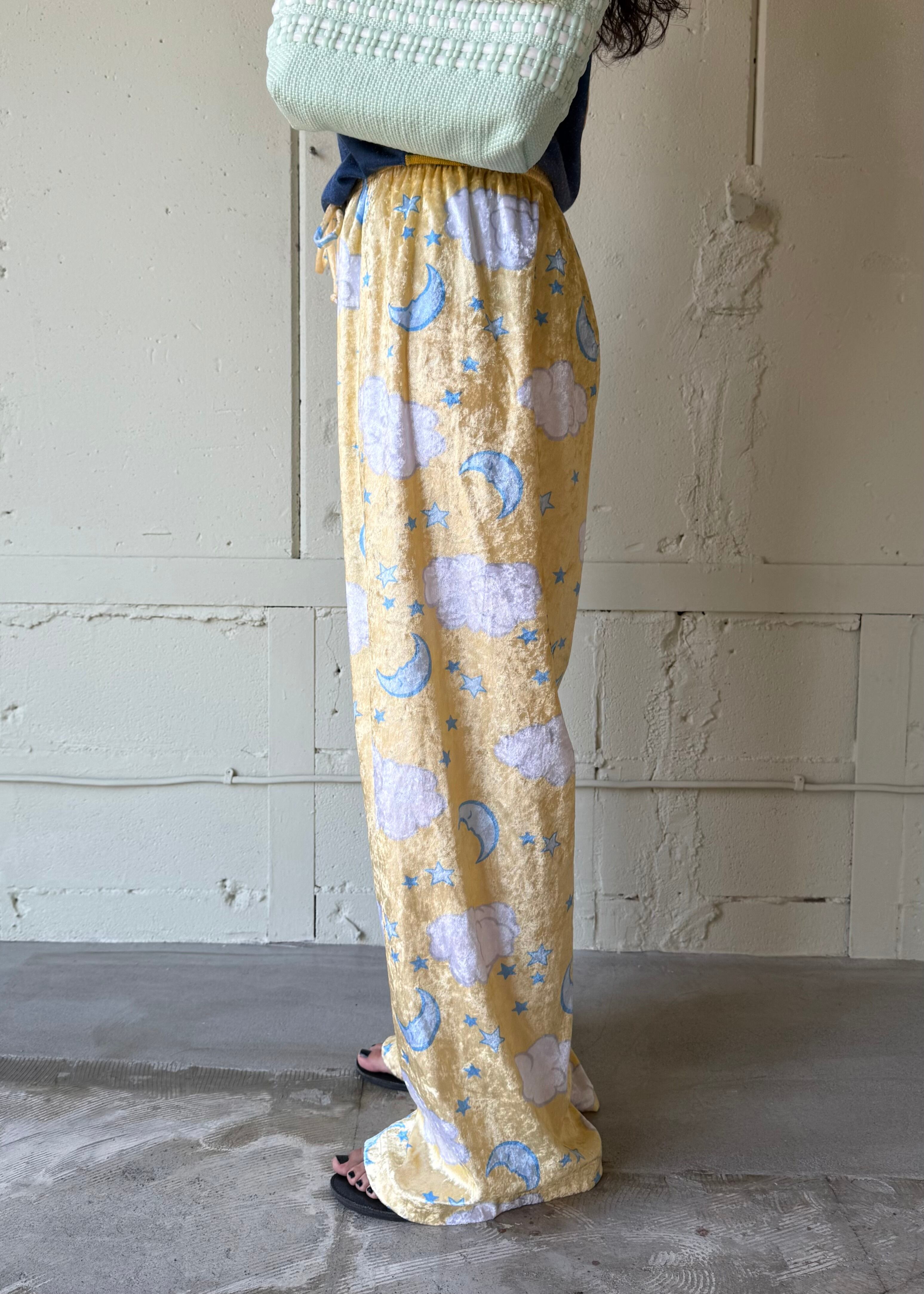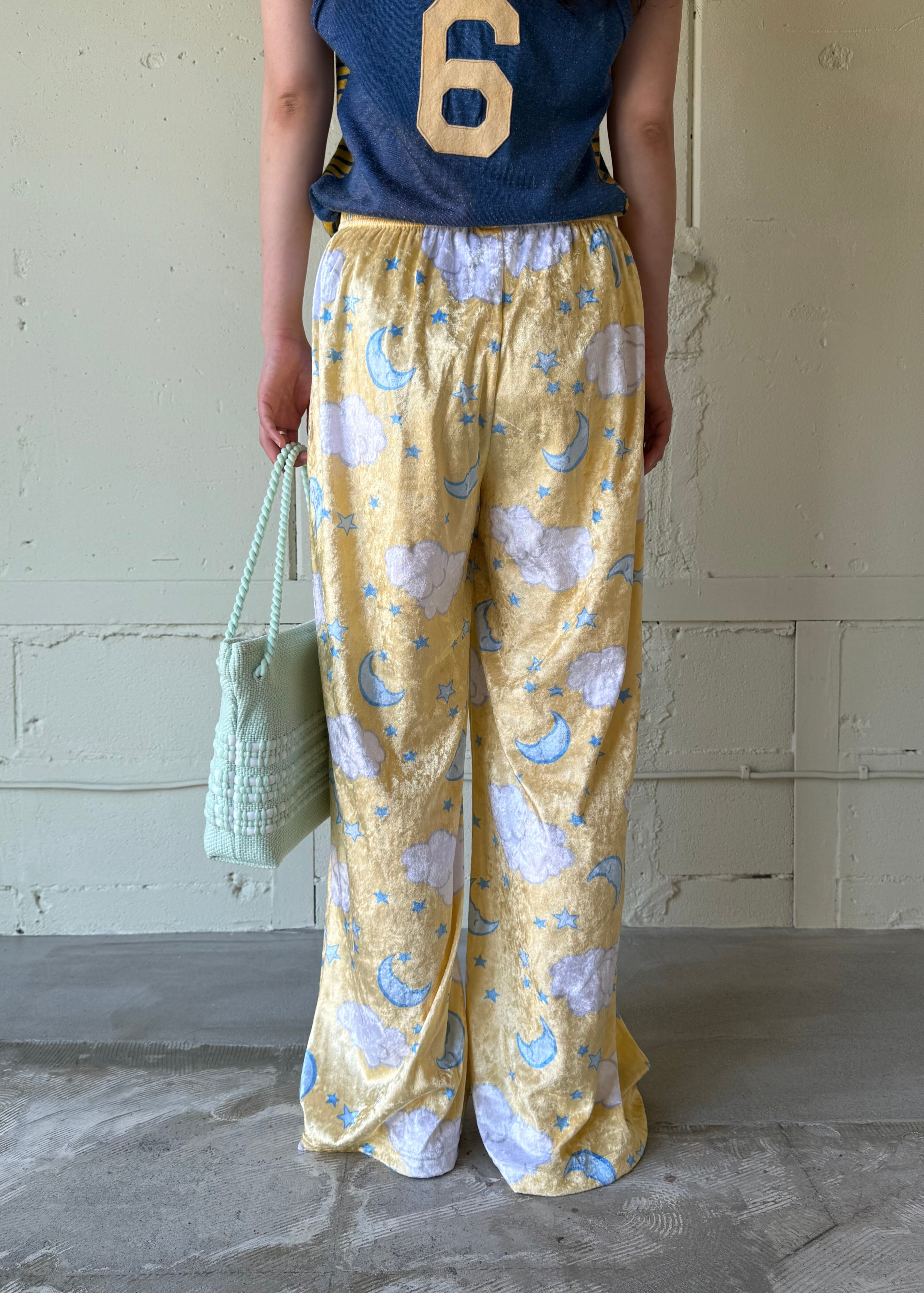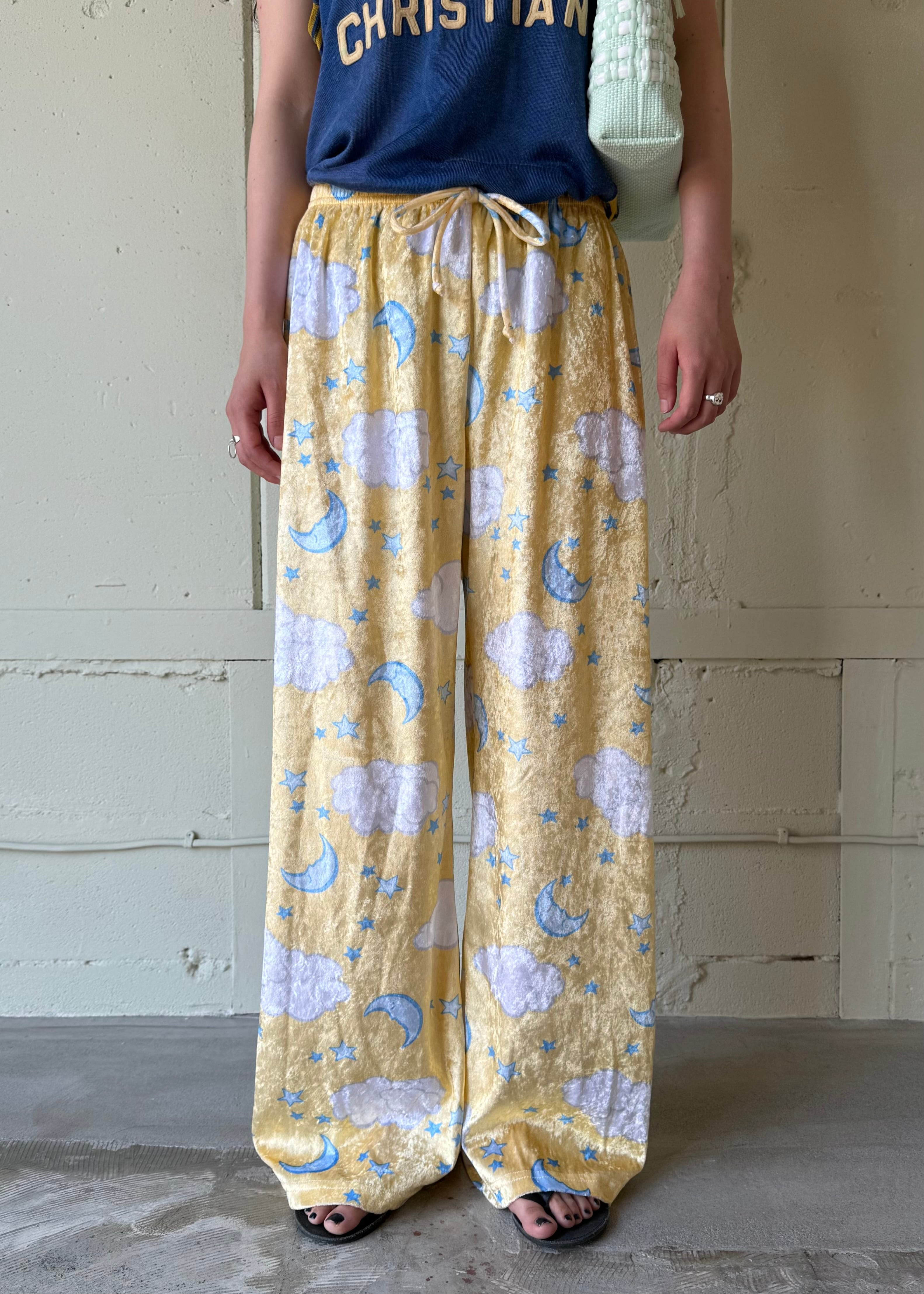 コットン素材のパジャマパンツではなく、ベロアで光沢感があります。薄手ですので履き心地も良いです。
