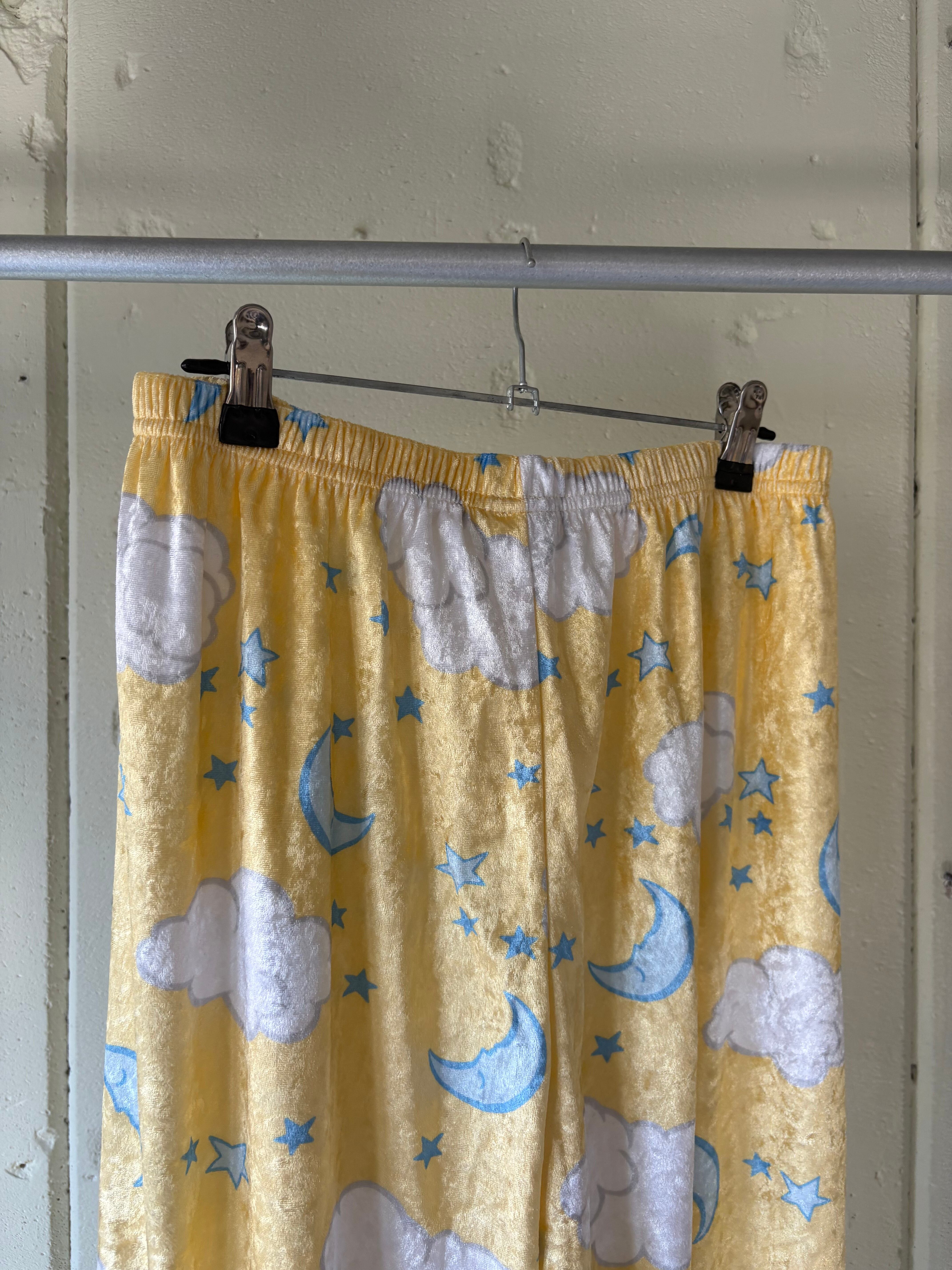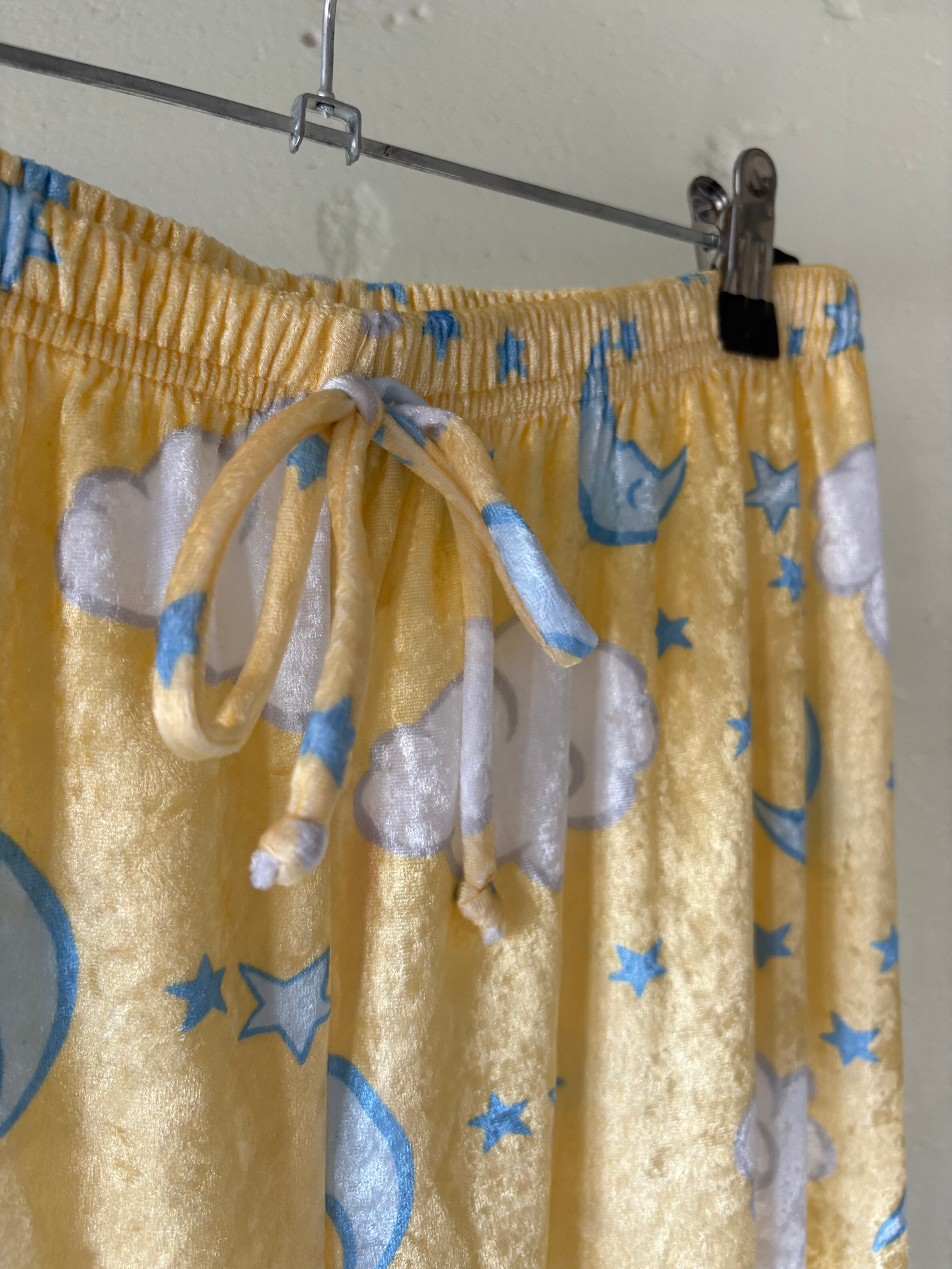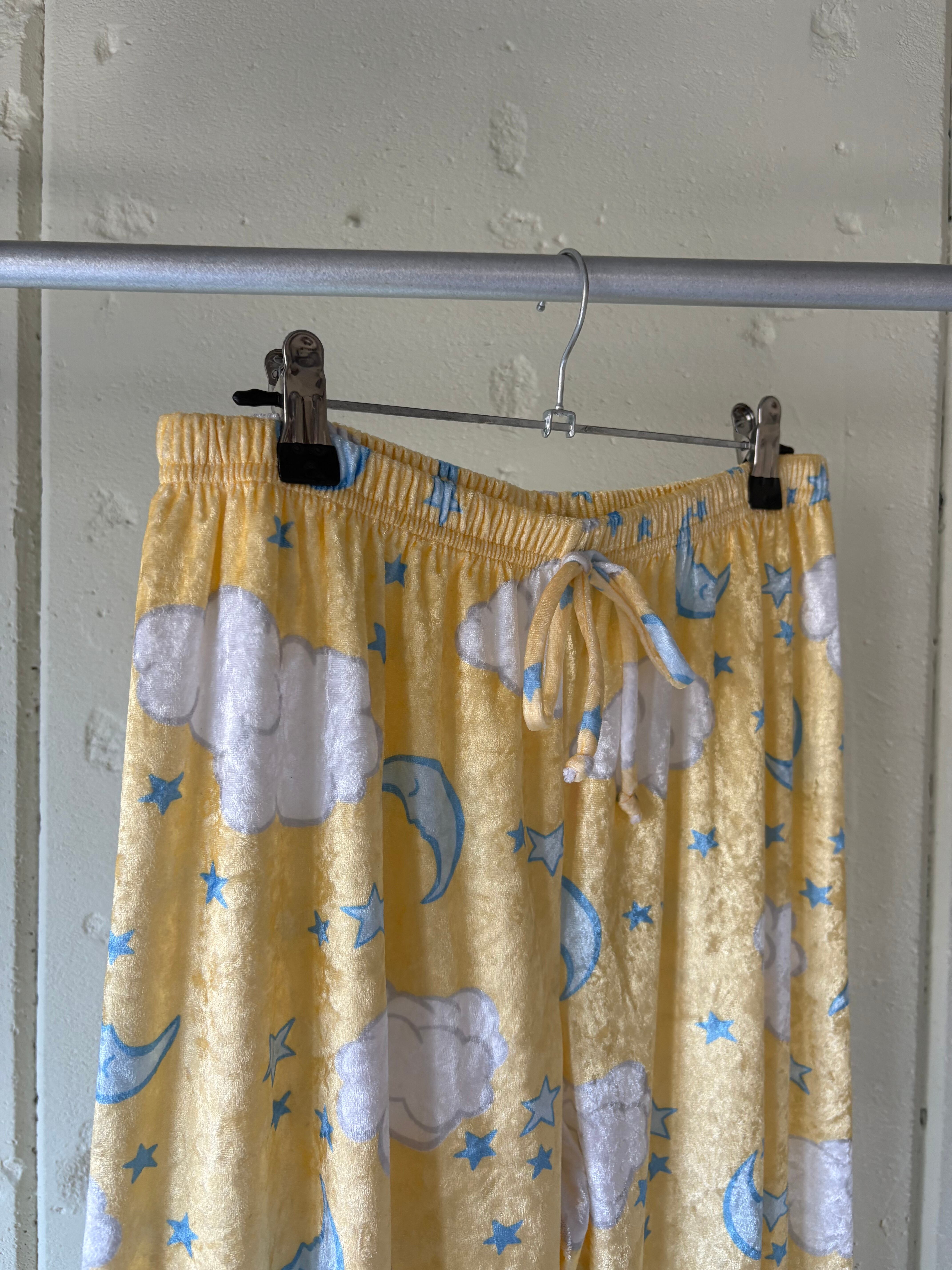 コットン素材のパジャマパンツではなく、ベロアで光沢感があります。薄手ですので履き心地も良いです。