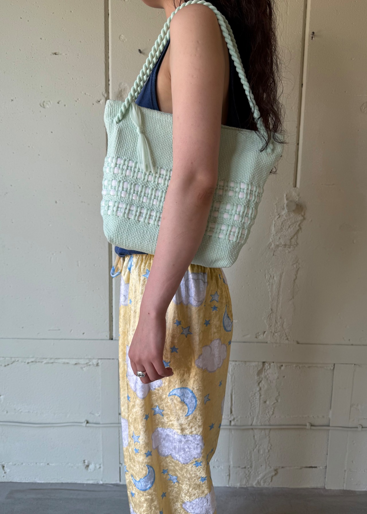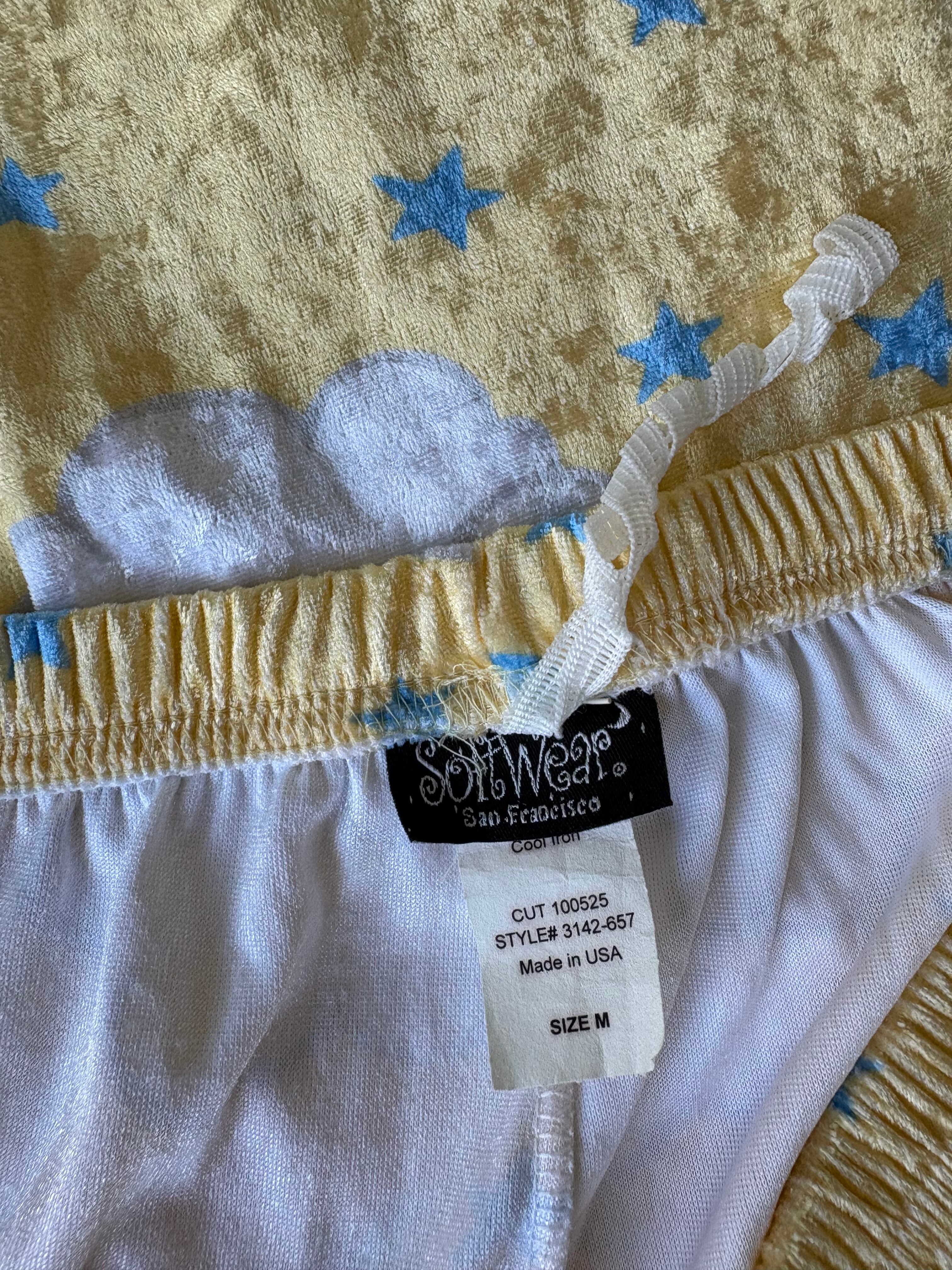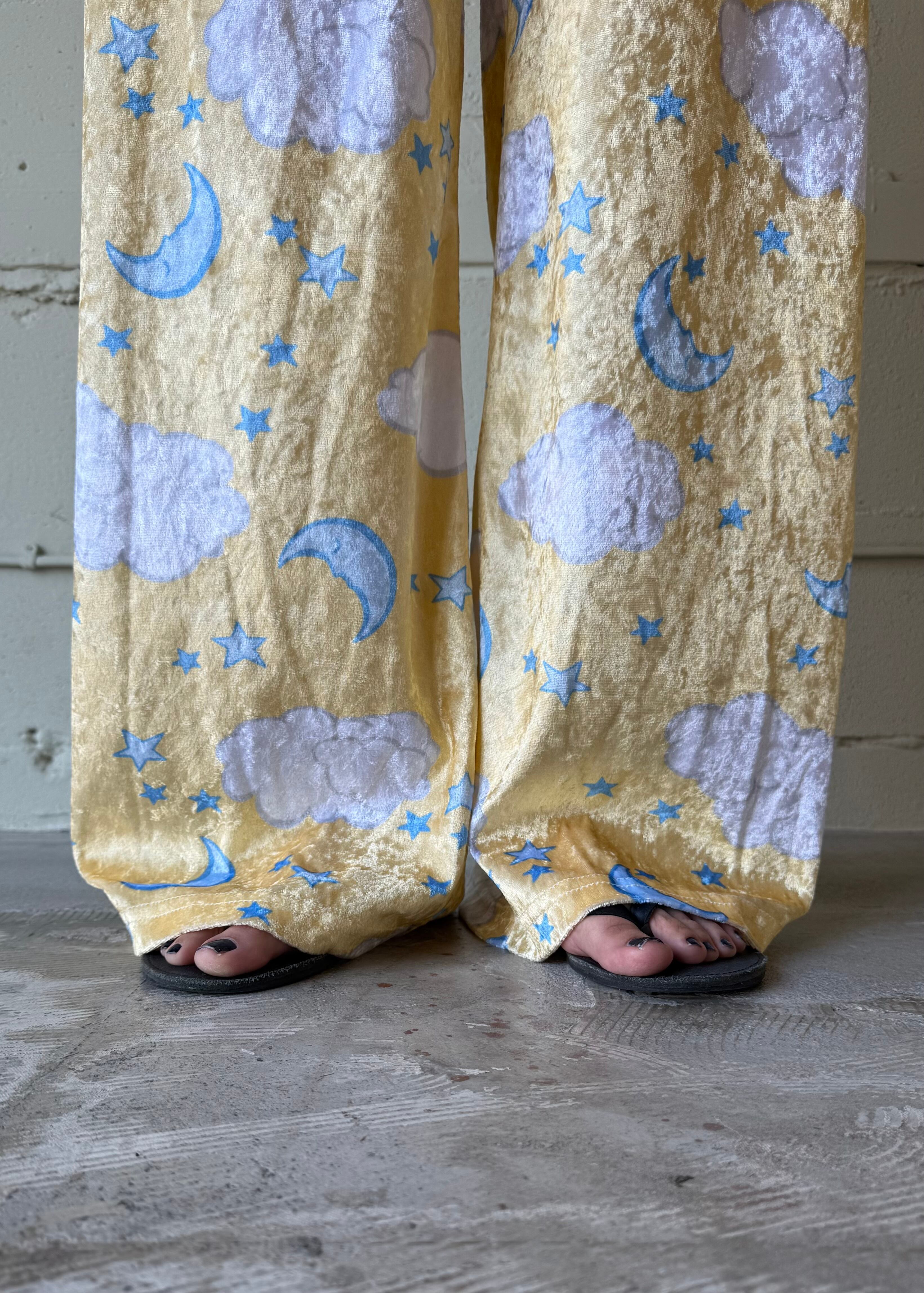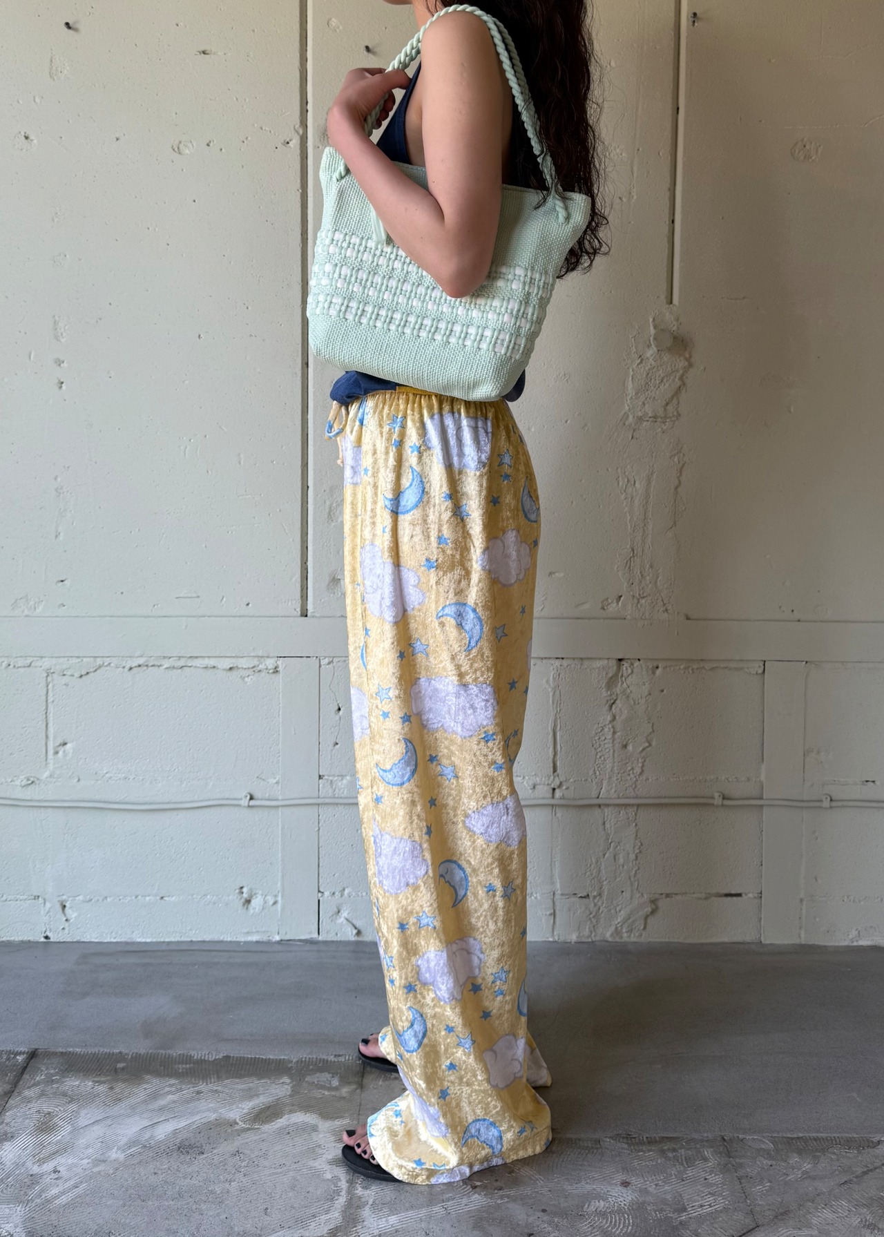 コットン素材のパジャマパンツではなく、ベロアで光沢感があります。薄手ですので履き心地も良いです。
