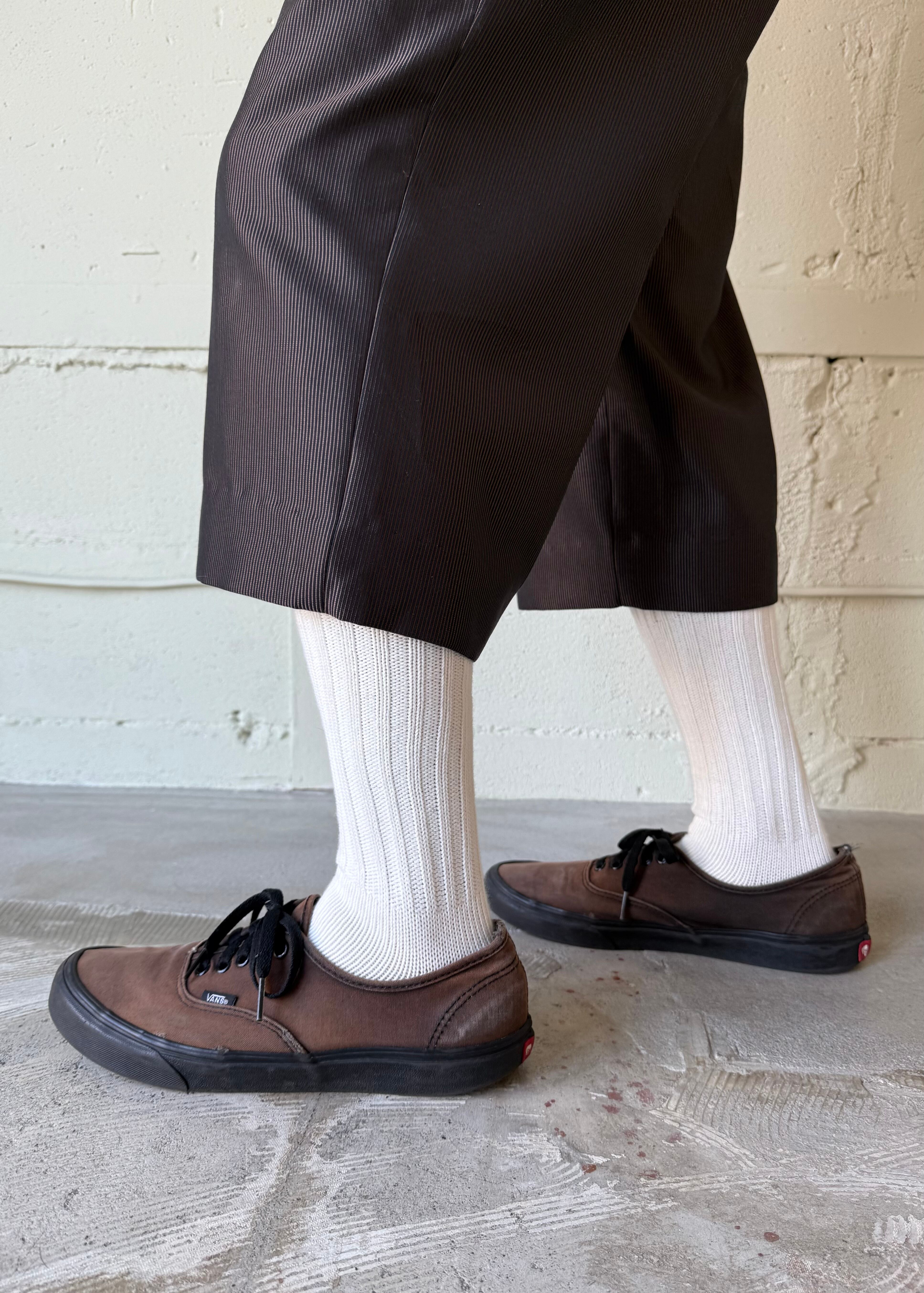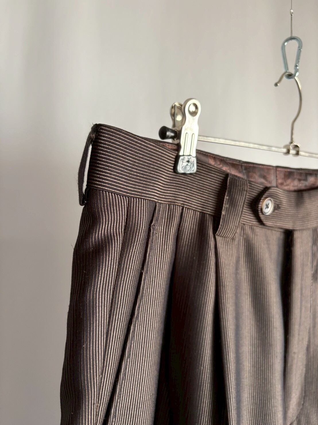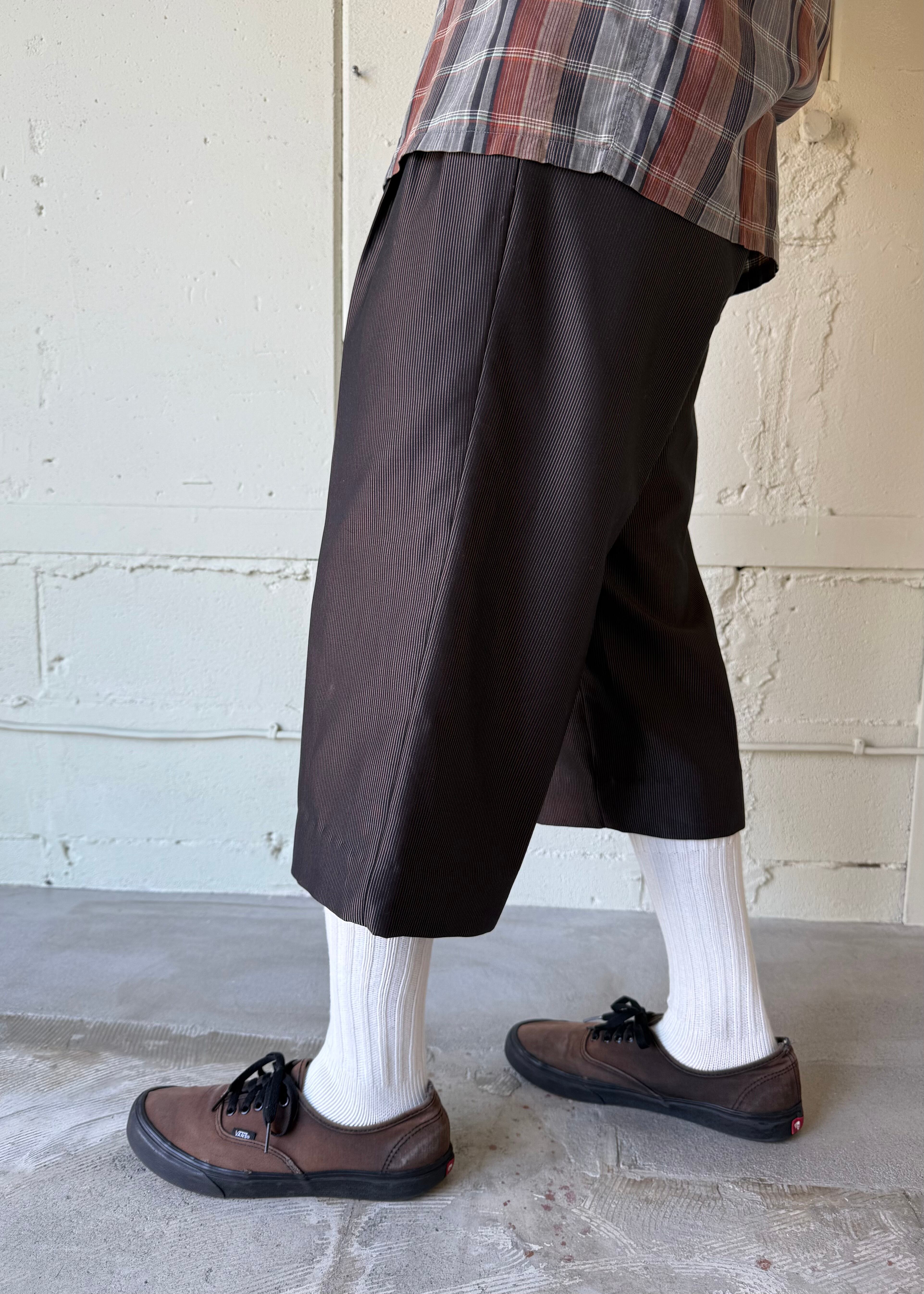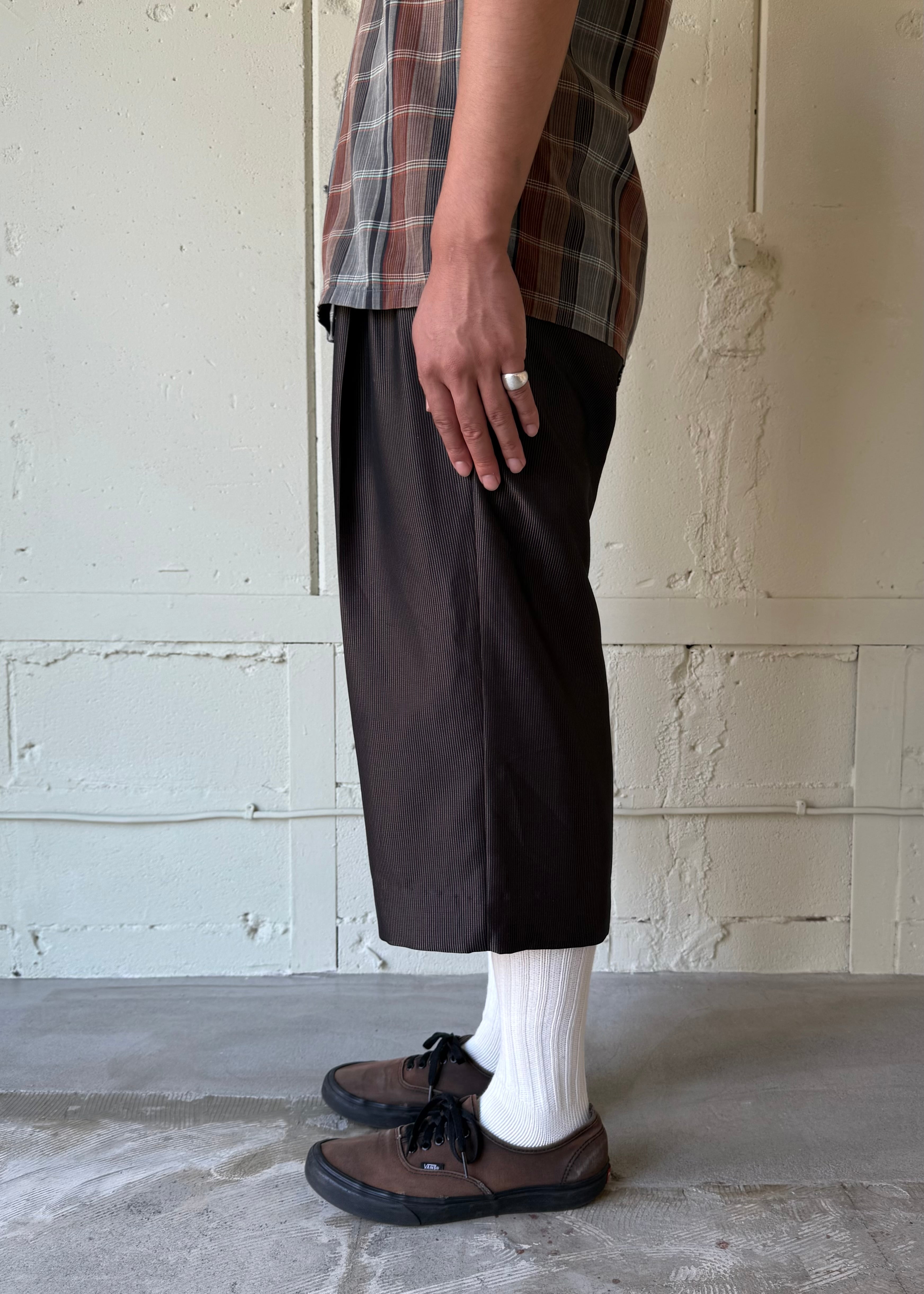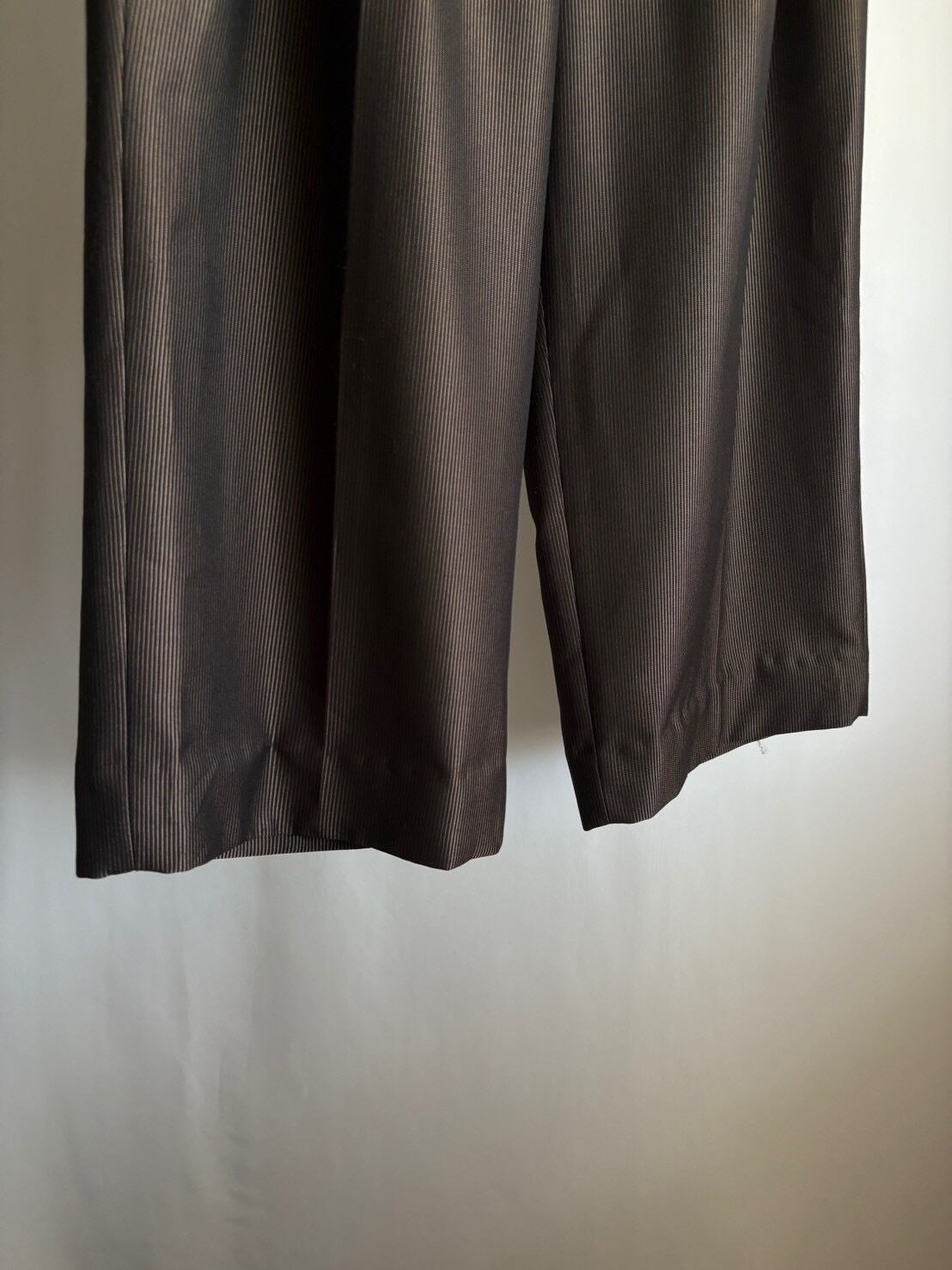 ワイドなスラックスを裾上げしました。太くて光沢があり悪い感じがあったので(それも良いのですが)裾上げをしようと思いジャストくるぶし位まで直してみたところ、なんだかパッとしなかったので短くしてみました。