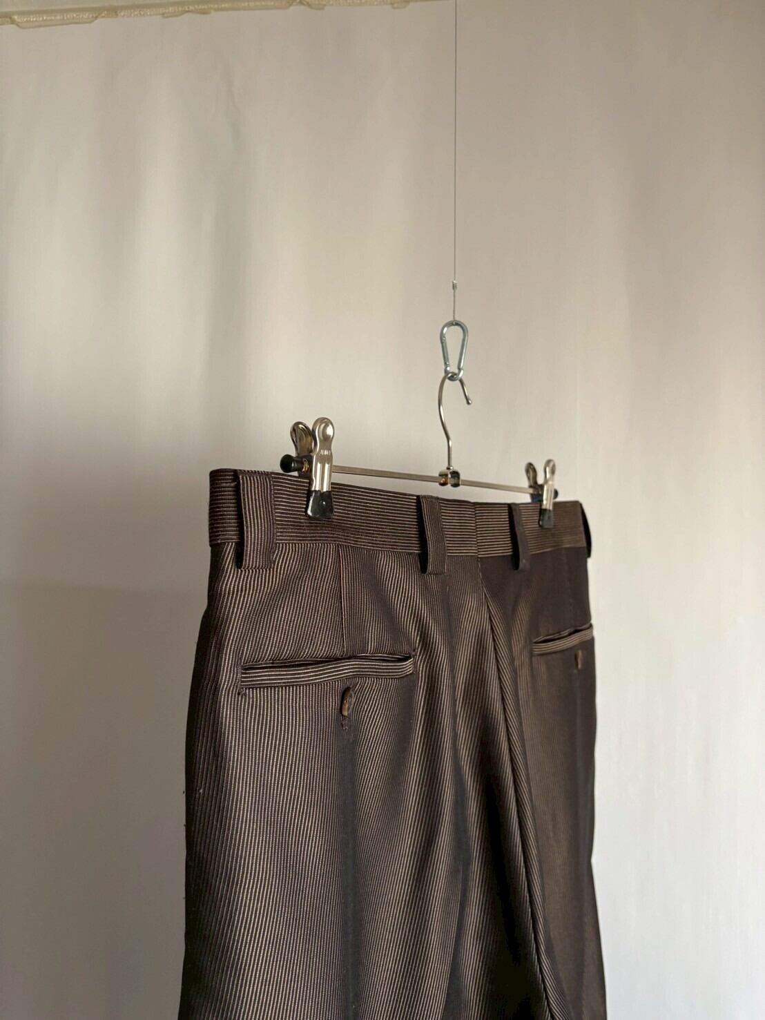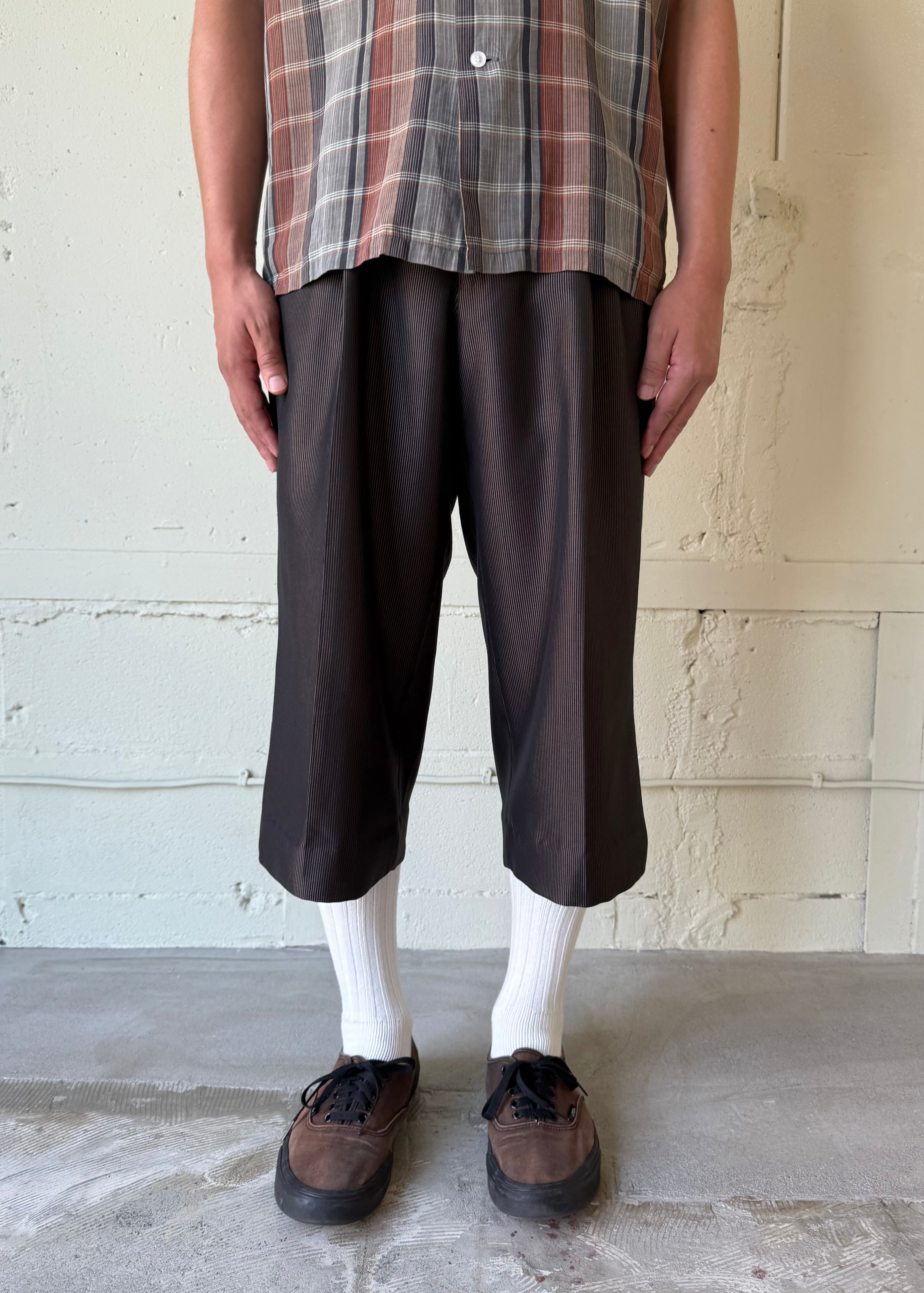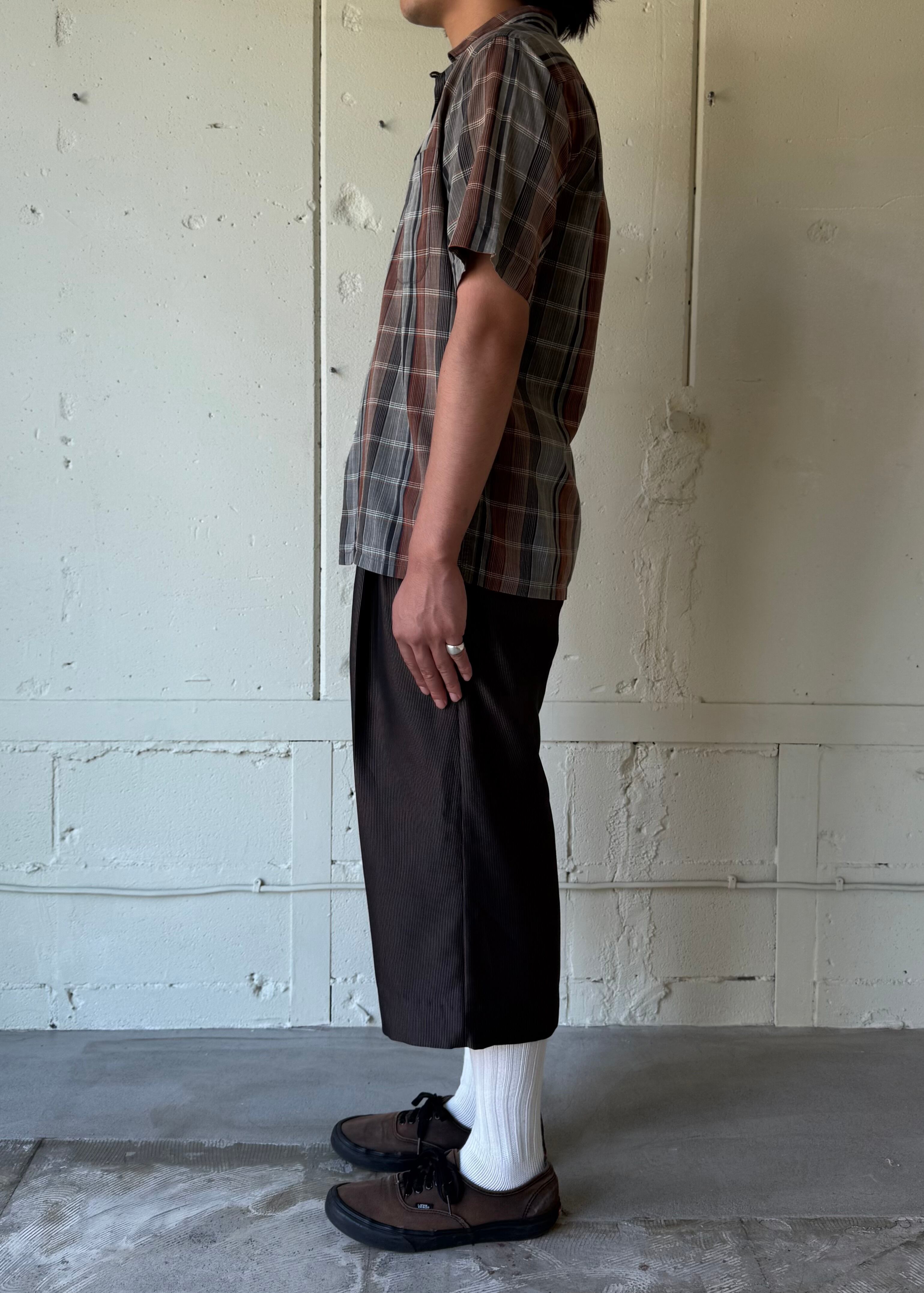 ちょっと違和感のあるレングスとちょっと違和感のある生地が合わさってスタイリングをまとめてくれる程よいパンツだと思います。