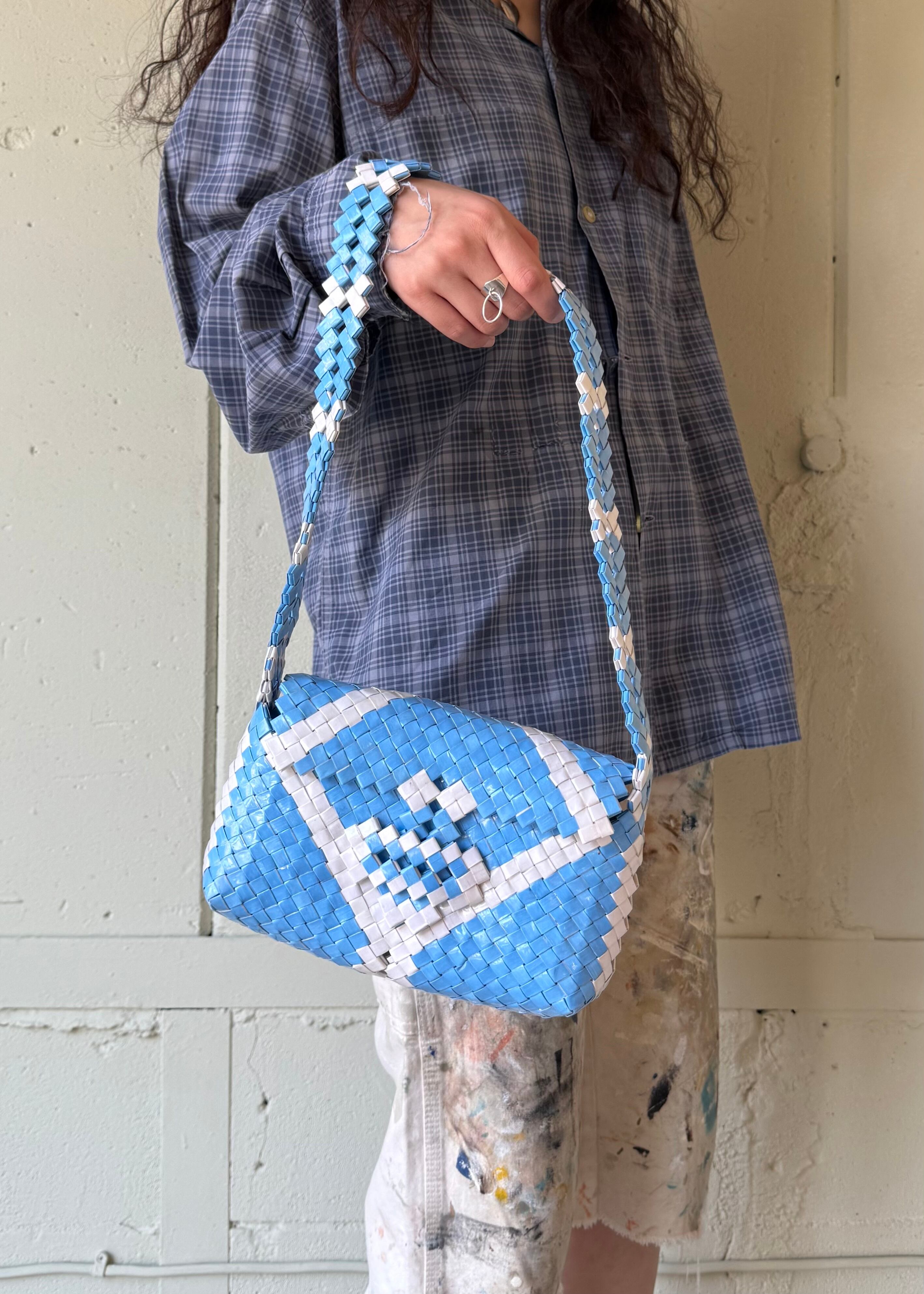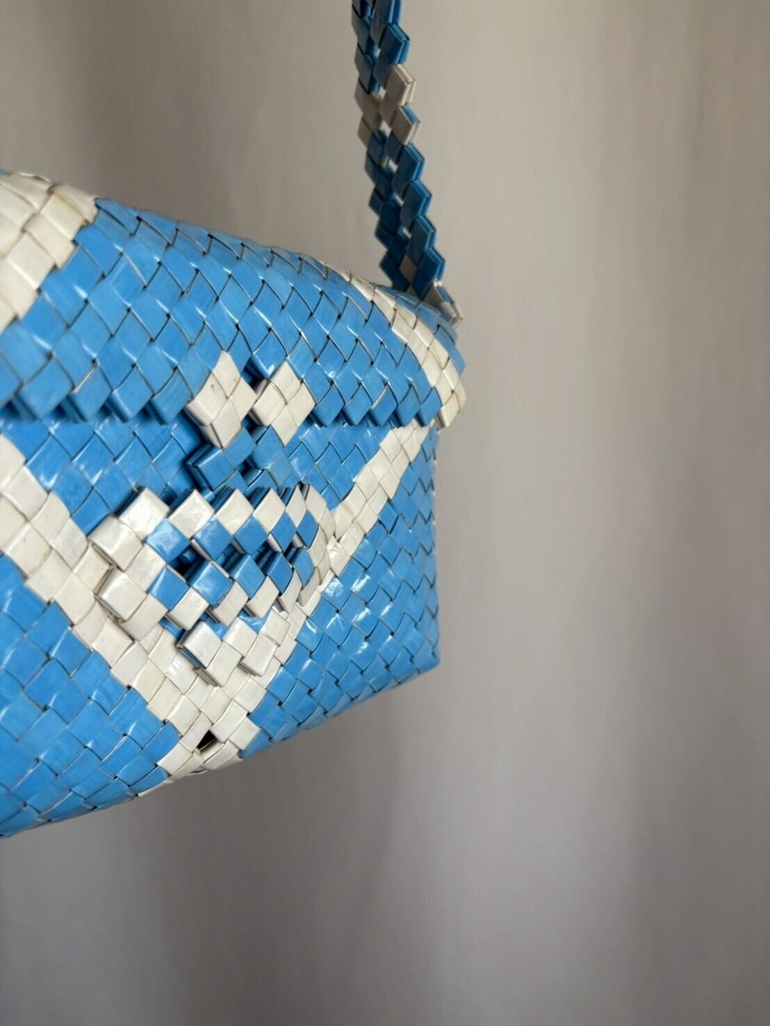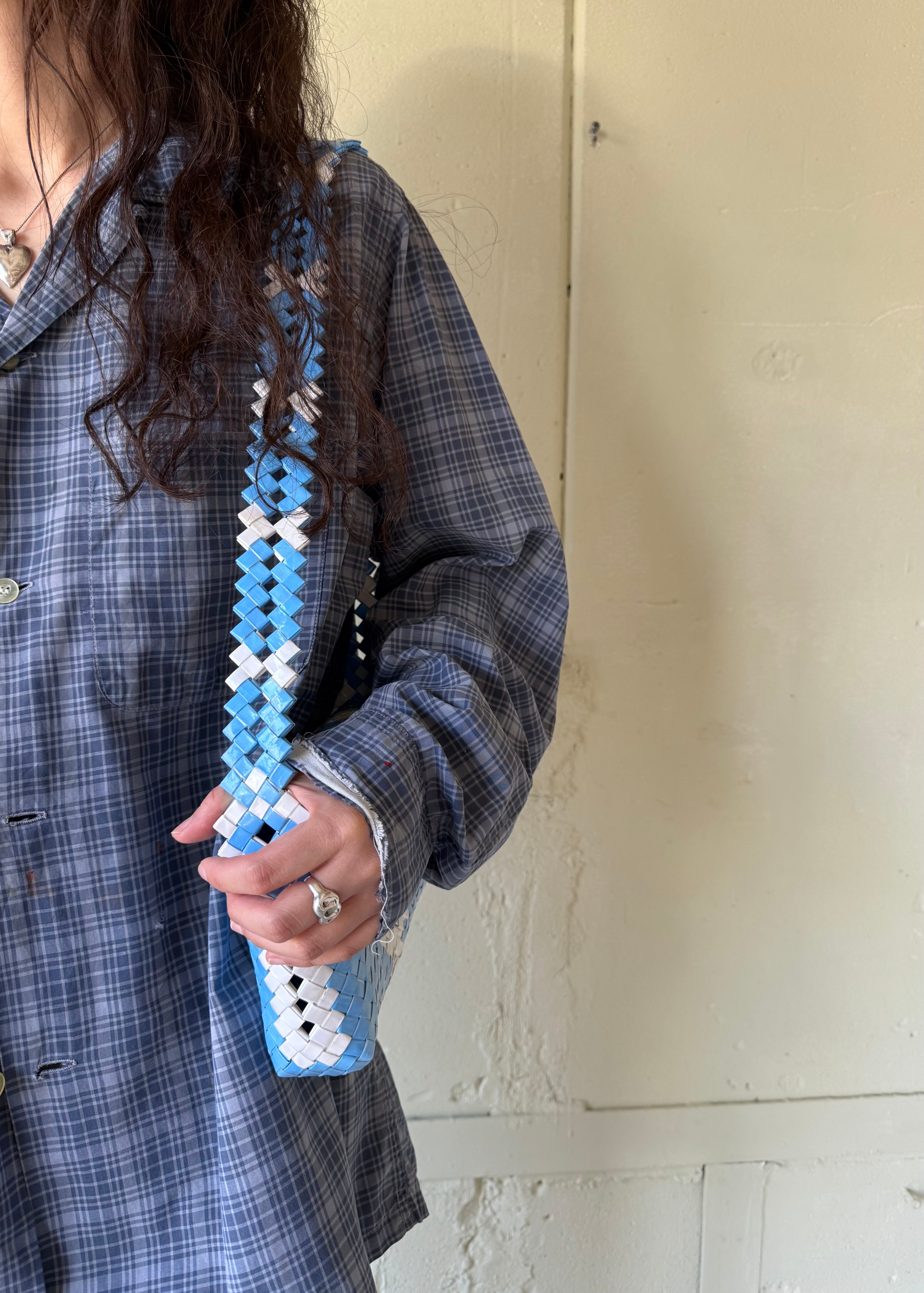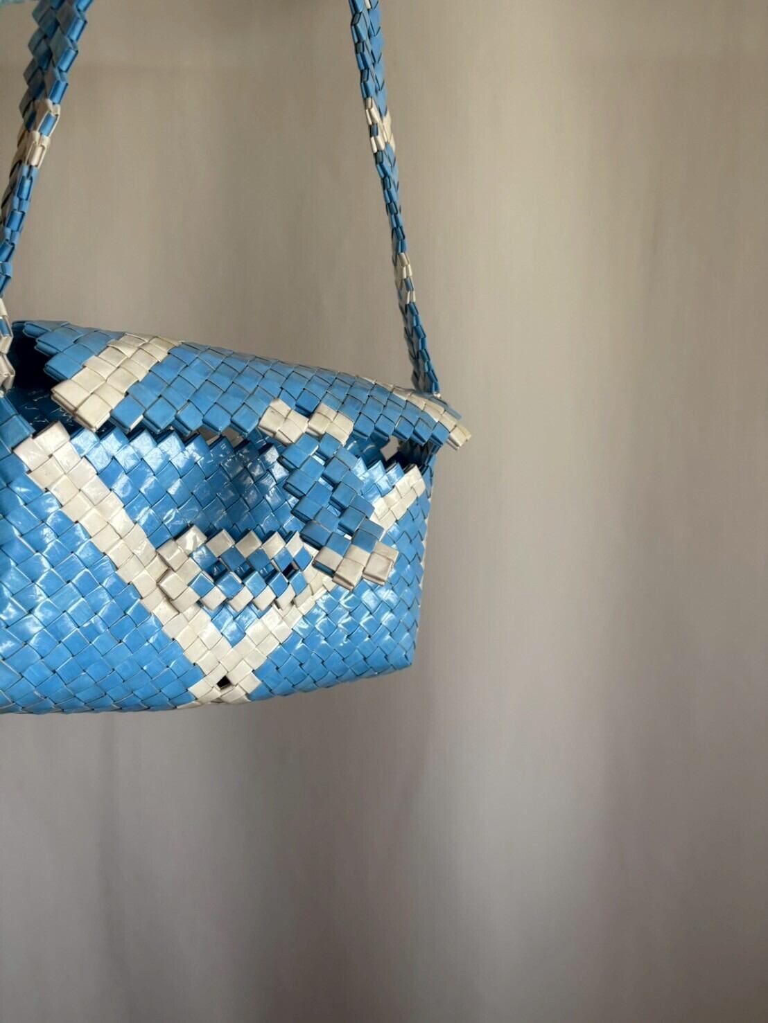 小さいサイズやハンドバッグ、若しくはとても派手なキラキラしたお菓子の袋で作ったタイプは時々買い付けをしますが、単色で爽やかな雰囲気のこちらは中々見かけることがありませんでした。