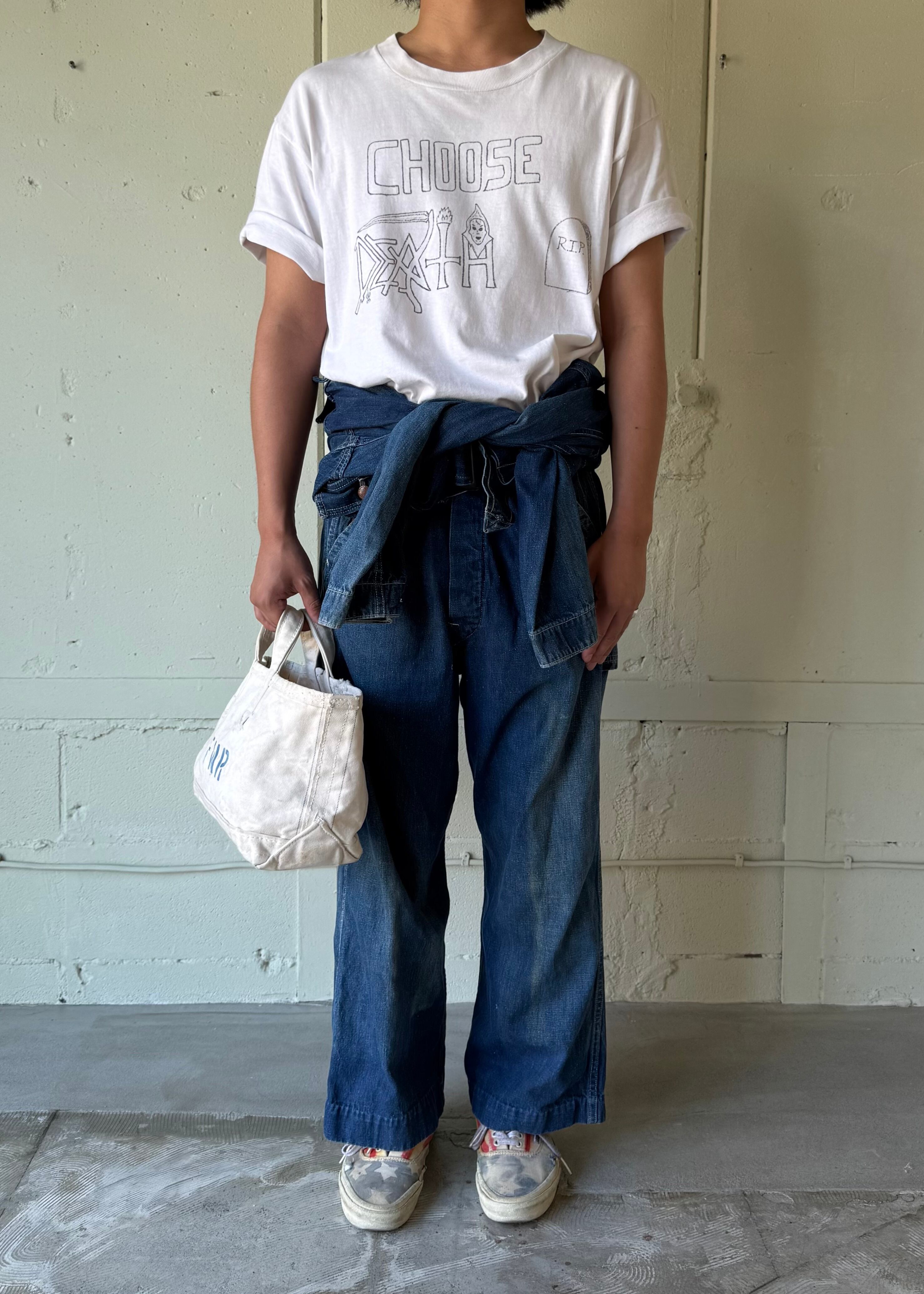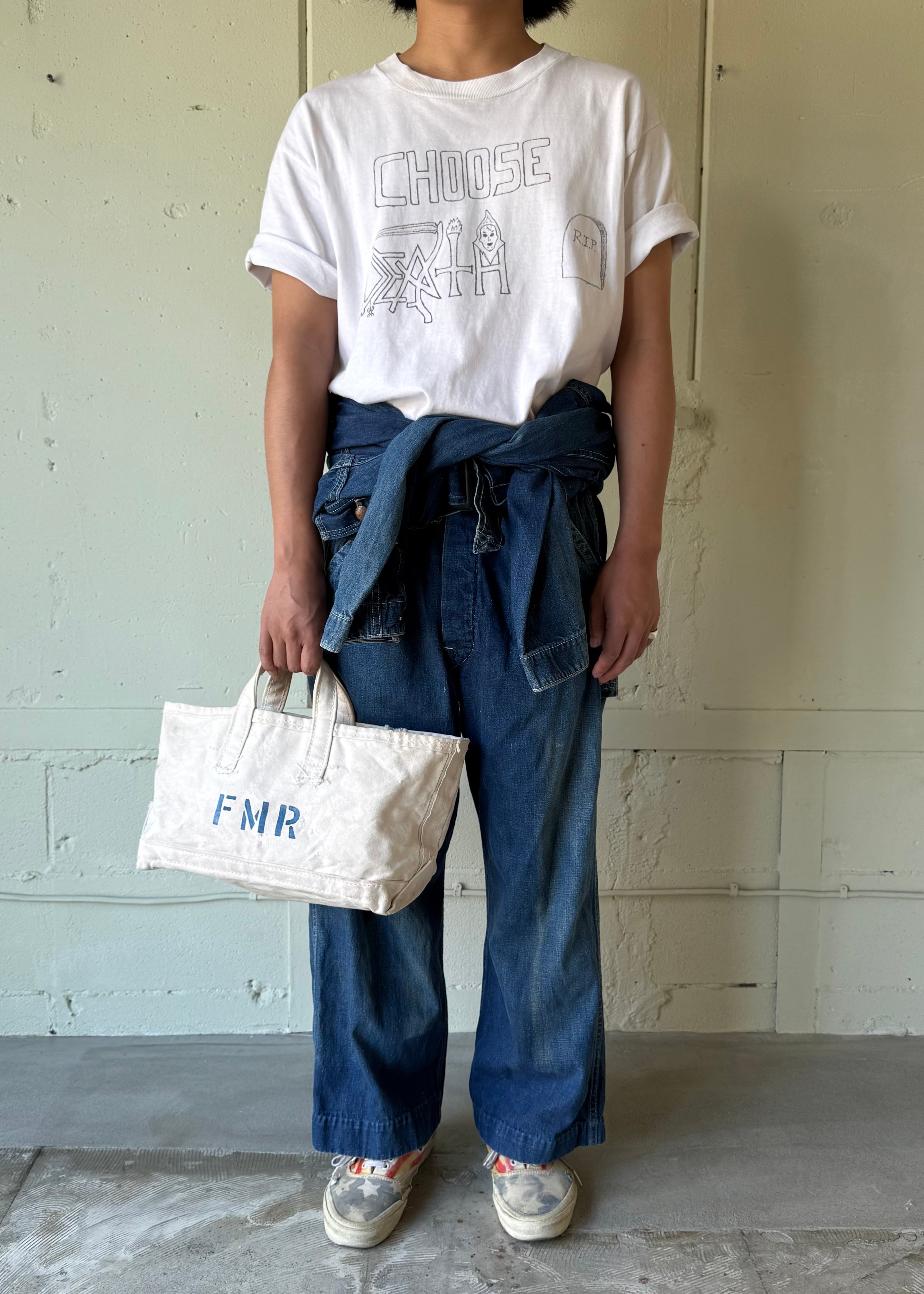 普段使いもできますし、車に積んでおいて何か物を入れて置いたり、お部屋の中での本をまとめたりなどインテリアにもなる古いキャンバスバッグ。