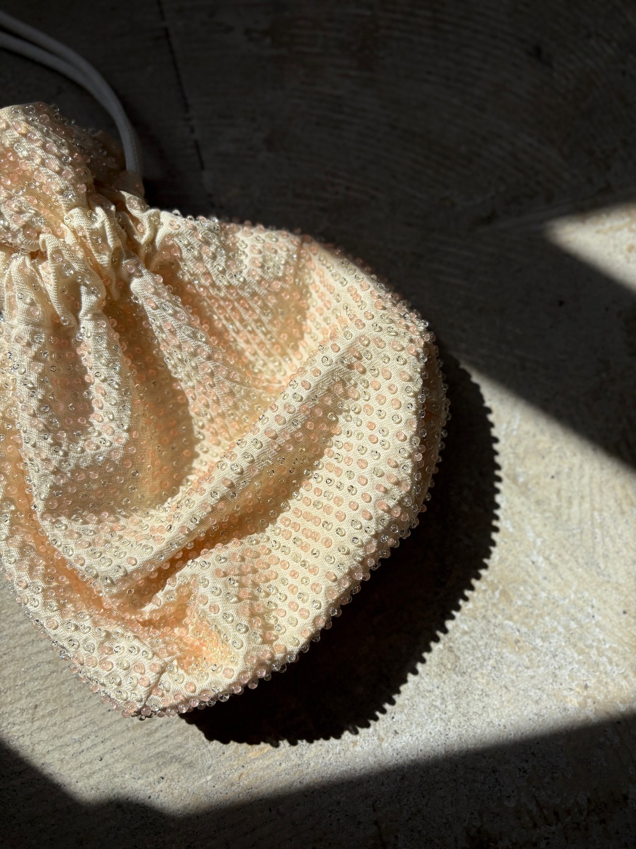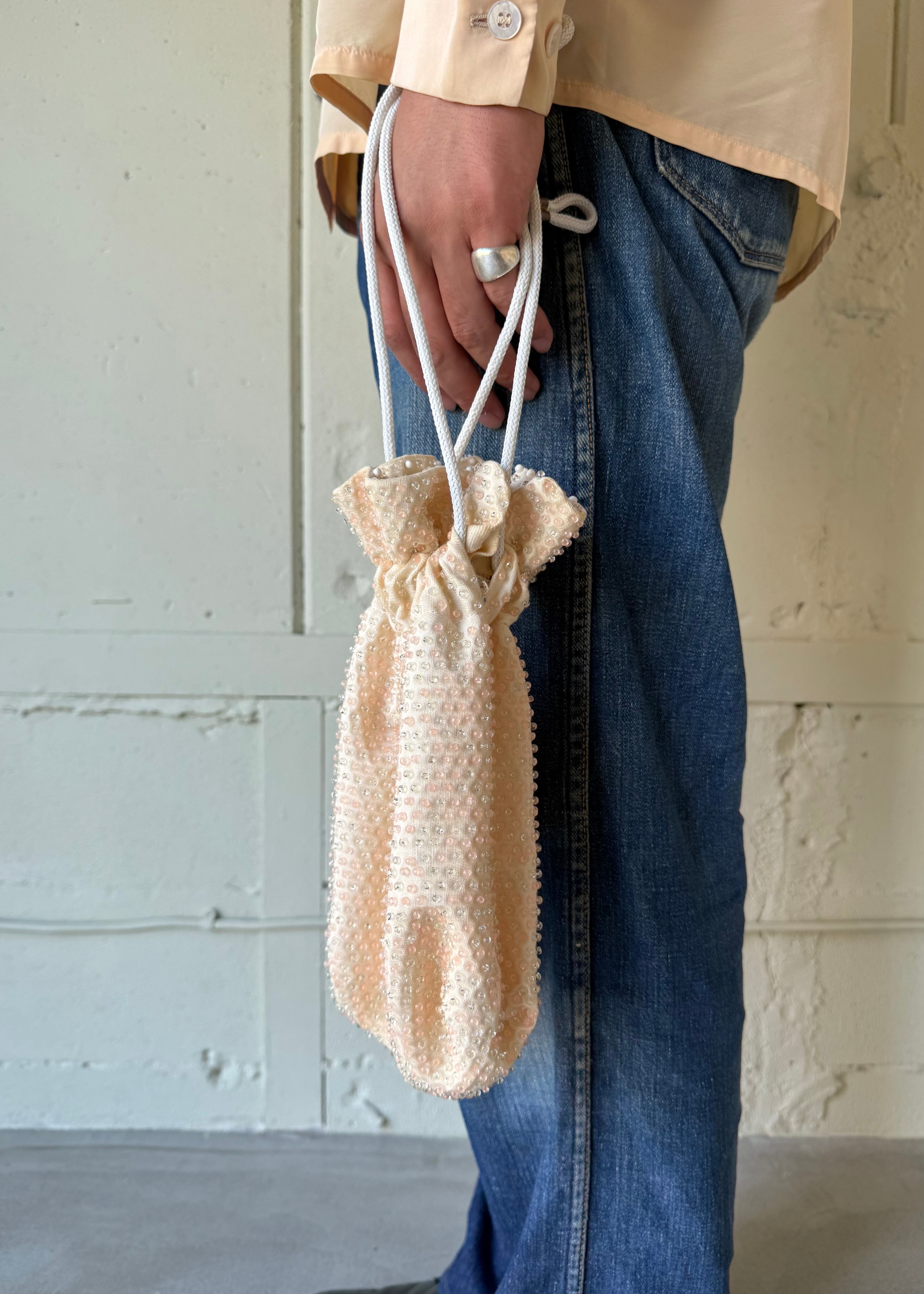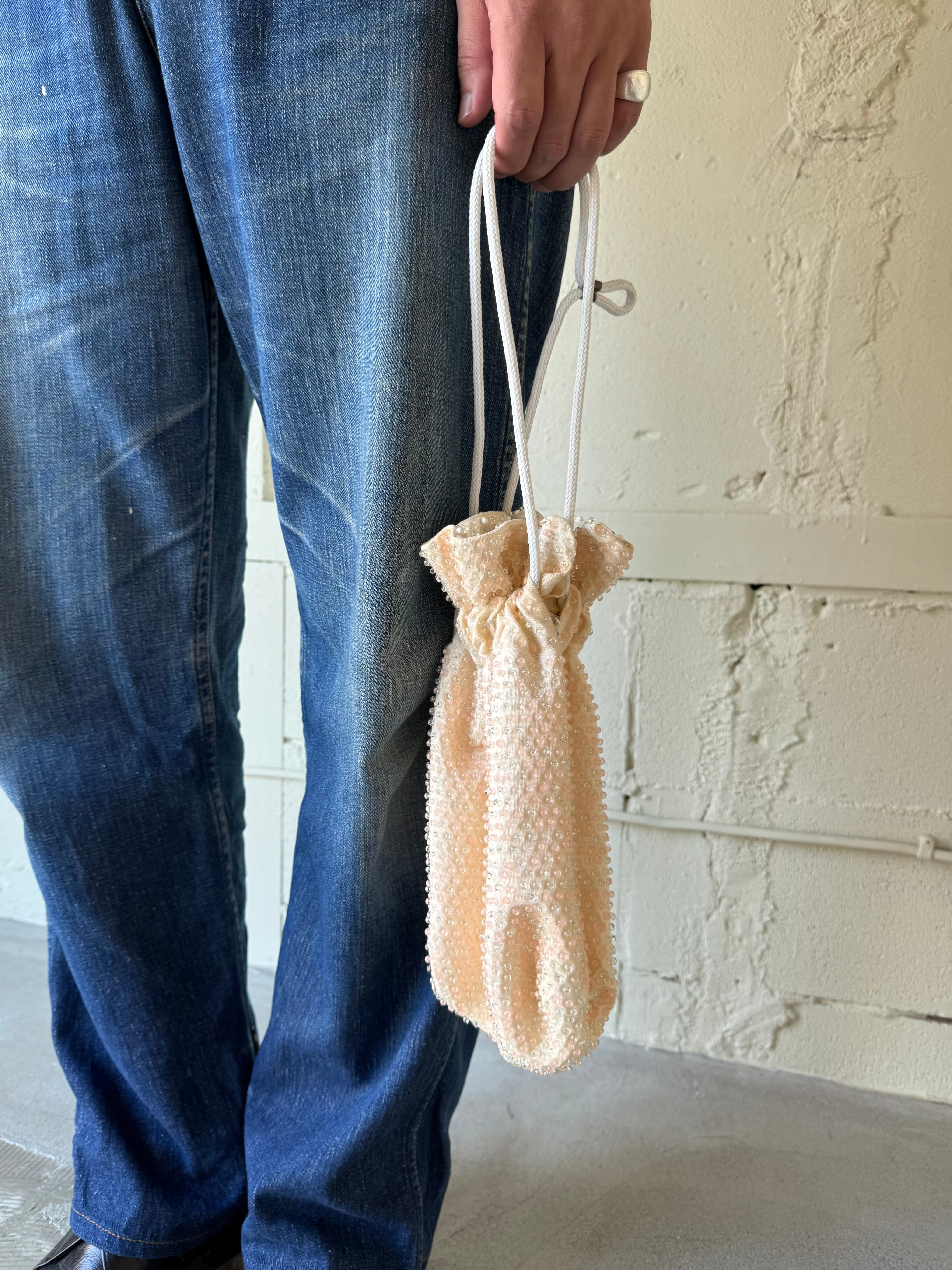 上品なキラキラ。古いポーチバックですがどこか新鮮。