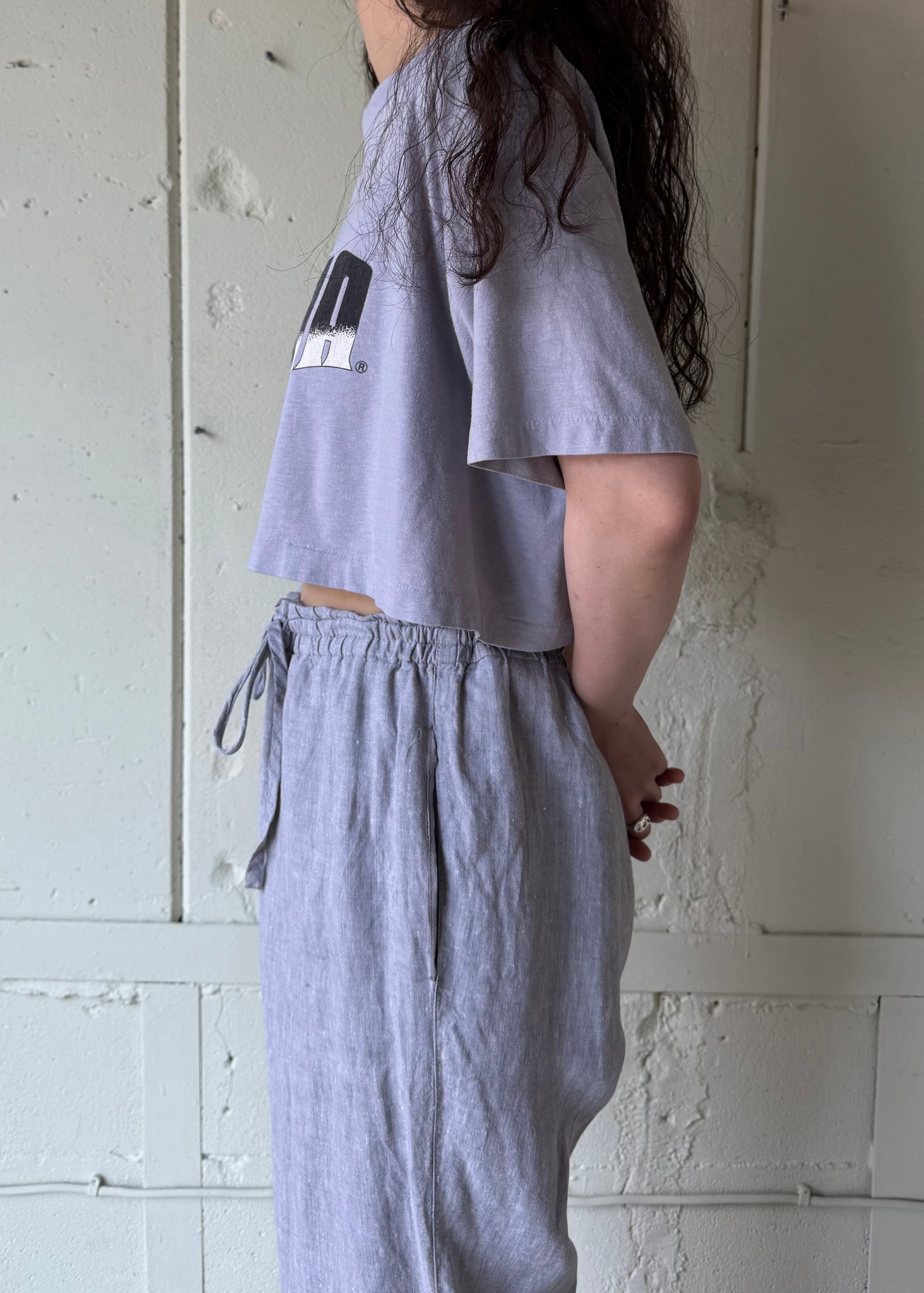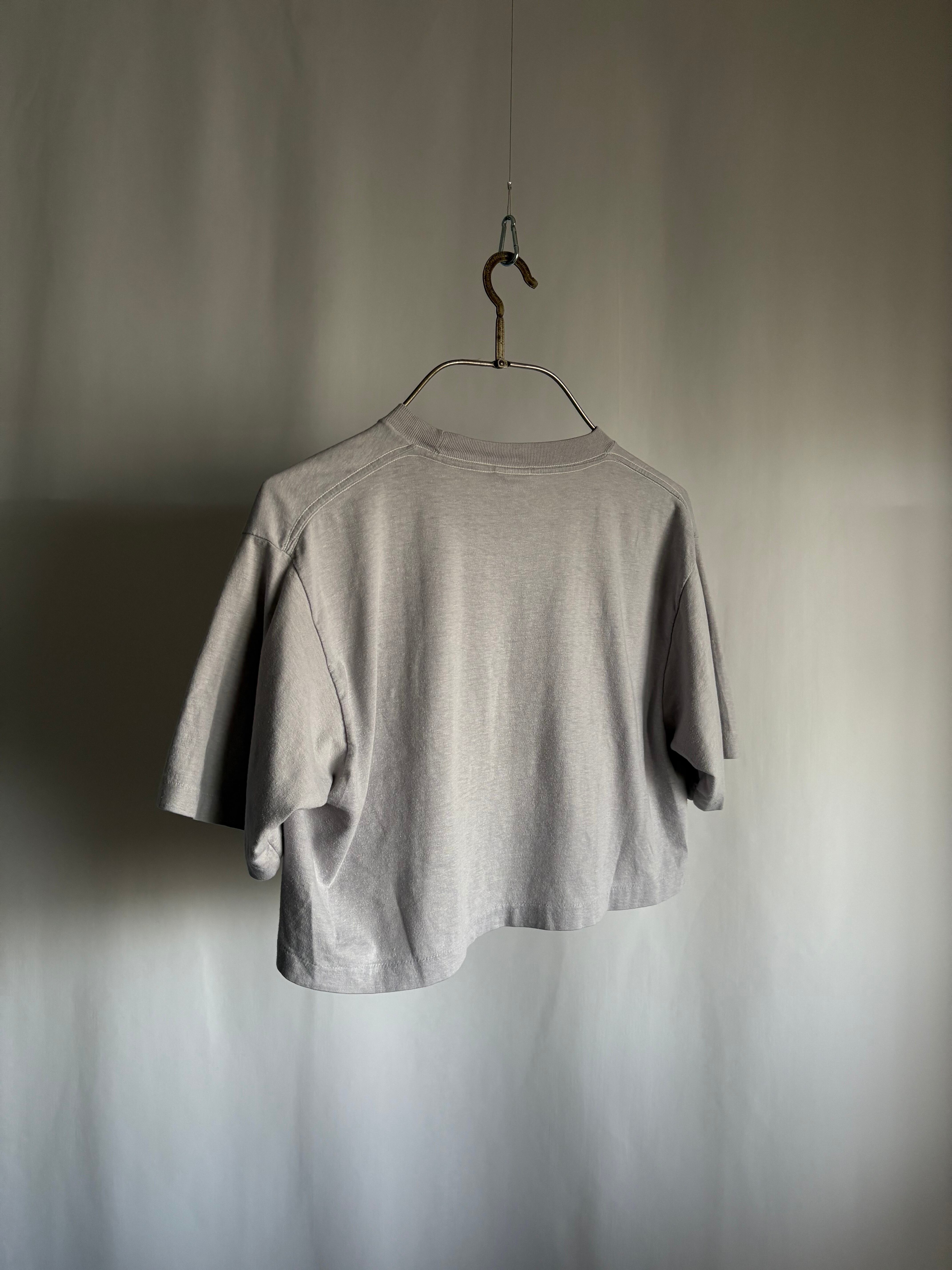 Men’s Large表記の身幅があるシルエットのTシャツを恐らくですが当時裾上げをしているので面白いシルエットです。