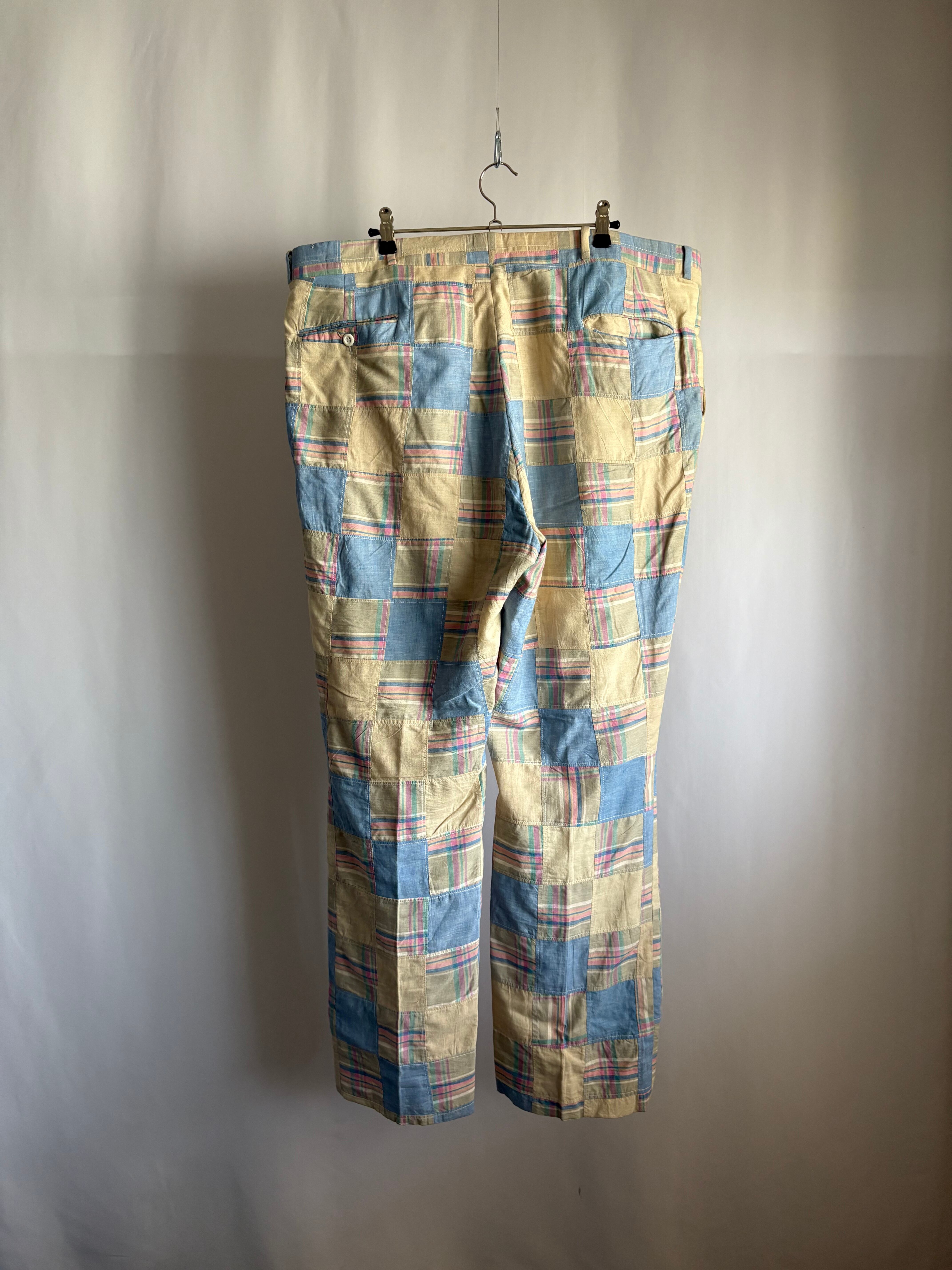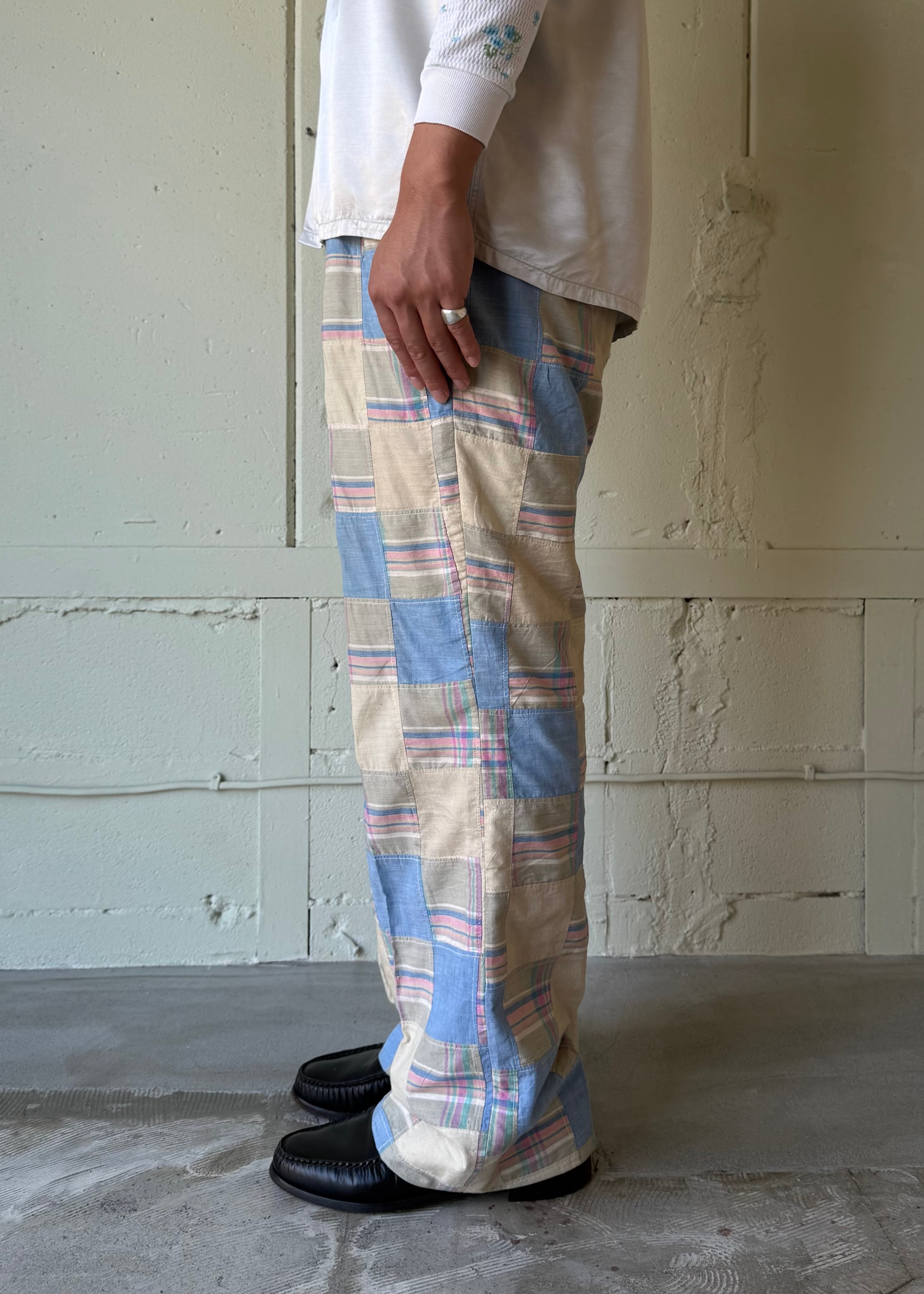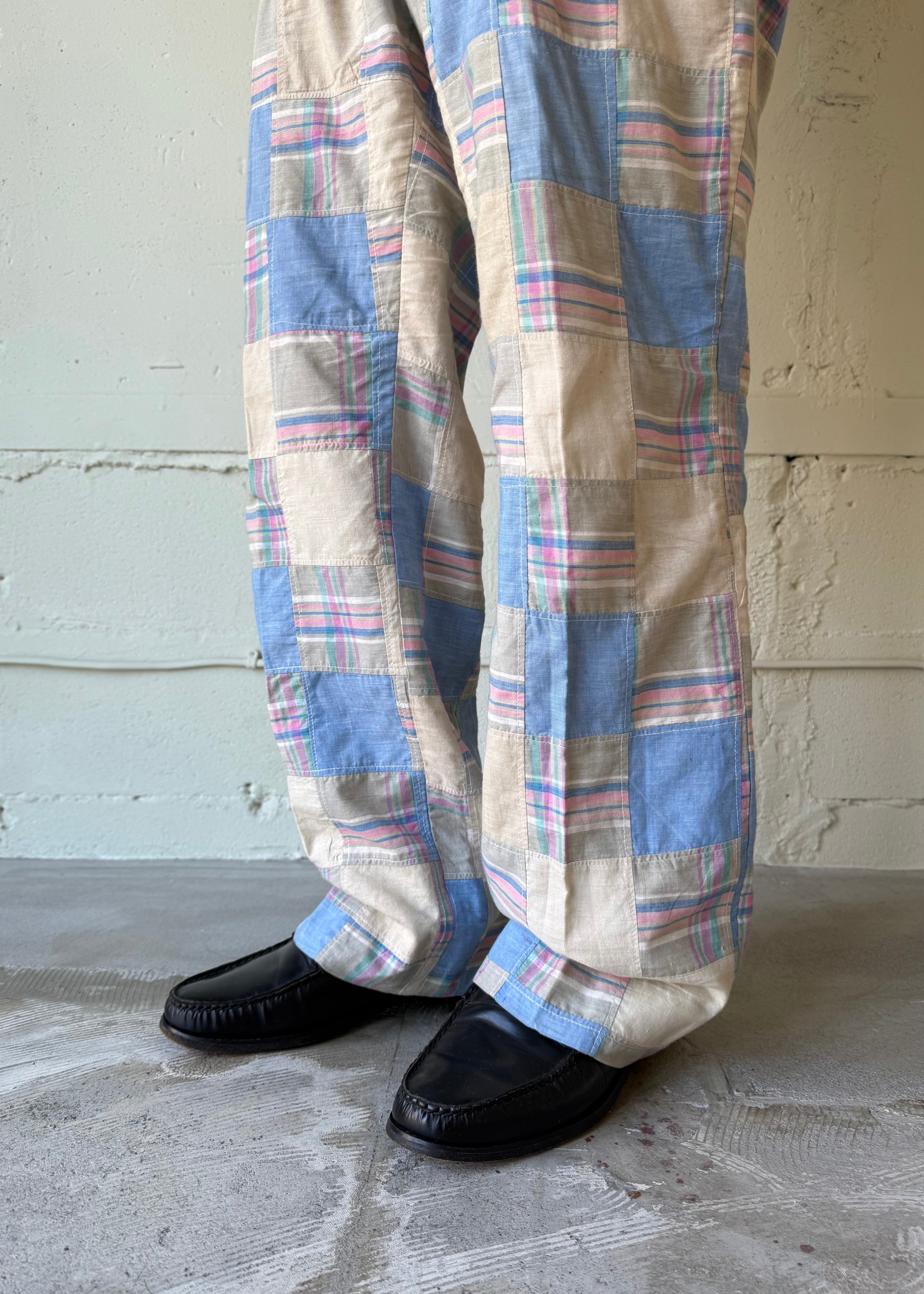 マサチューセッツ、ナンタケットアイランドのお店のパンツです。このくらいの年代のインディアンマドラスを使用したパッチワークパンツの気になる柄のものにはナンタケット島のテーラーのタグがついていることが多いです。