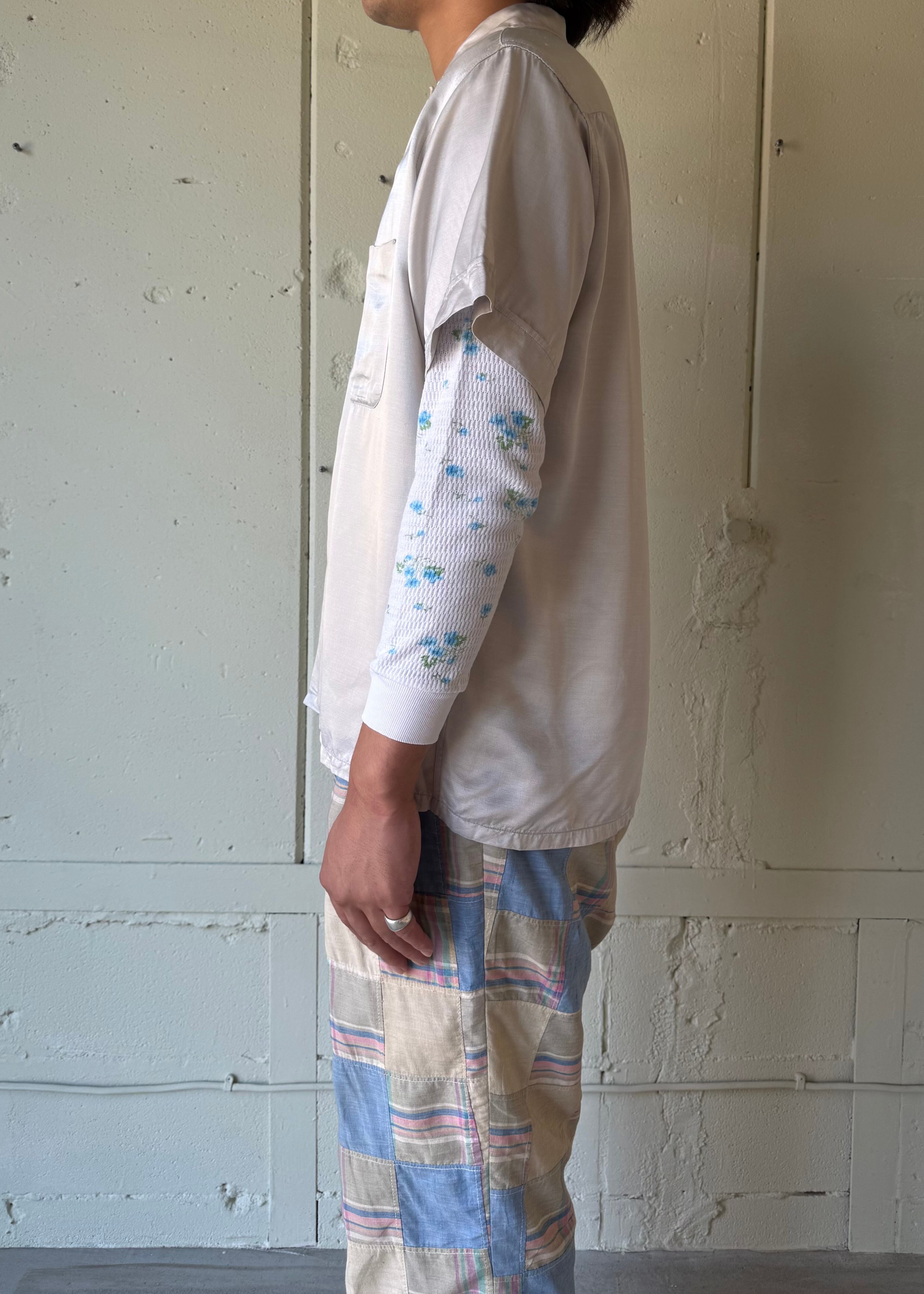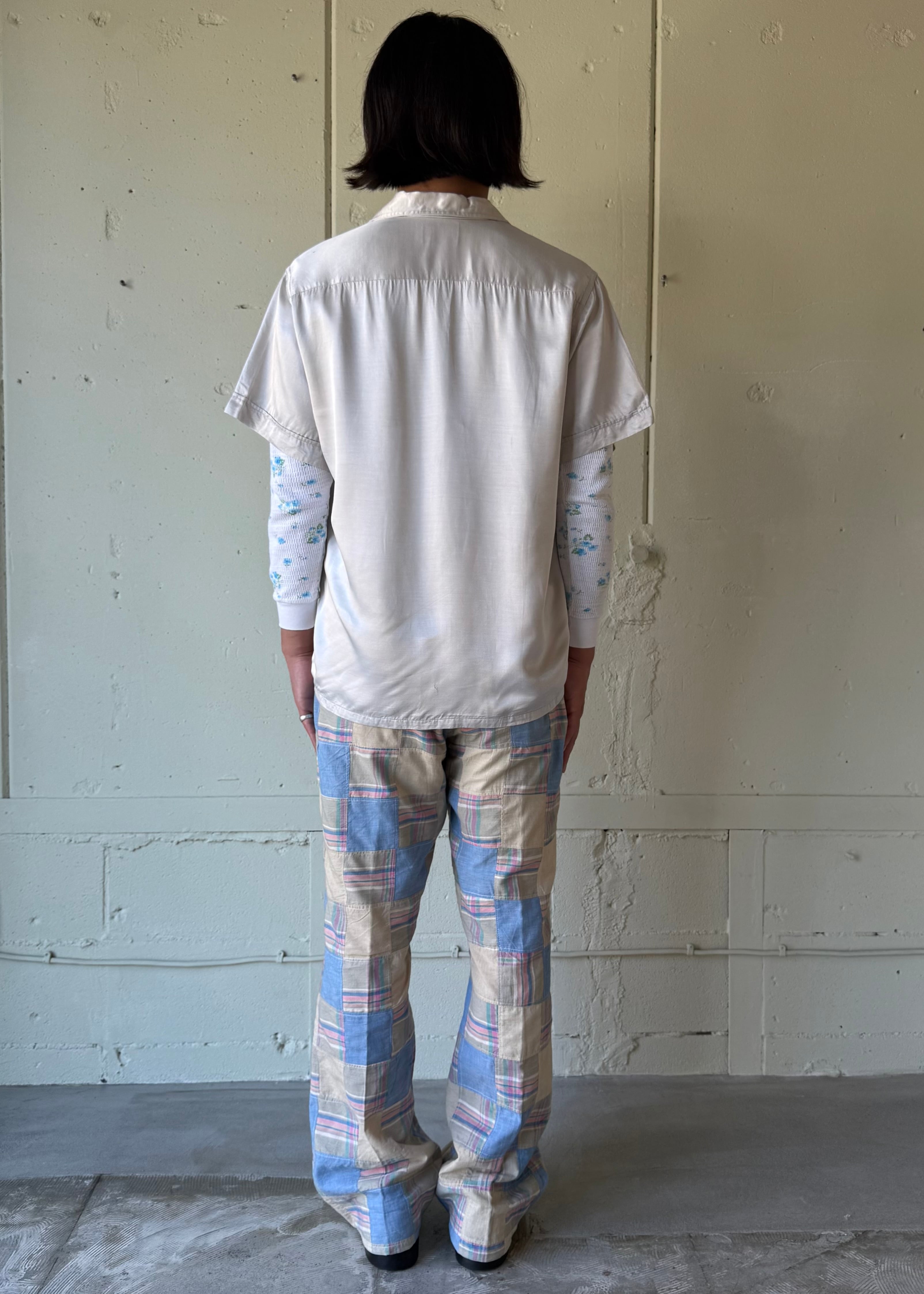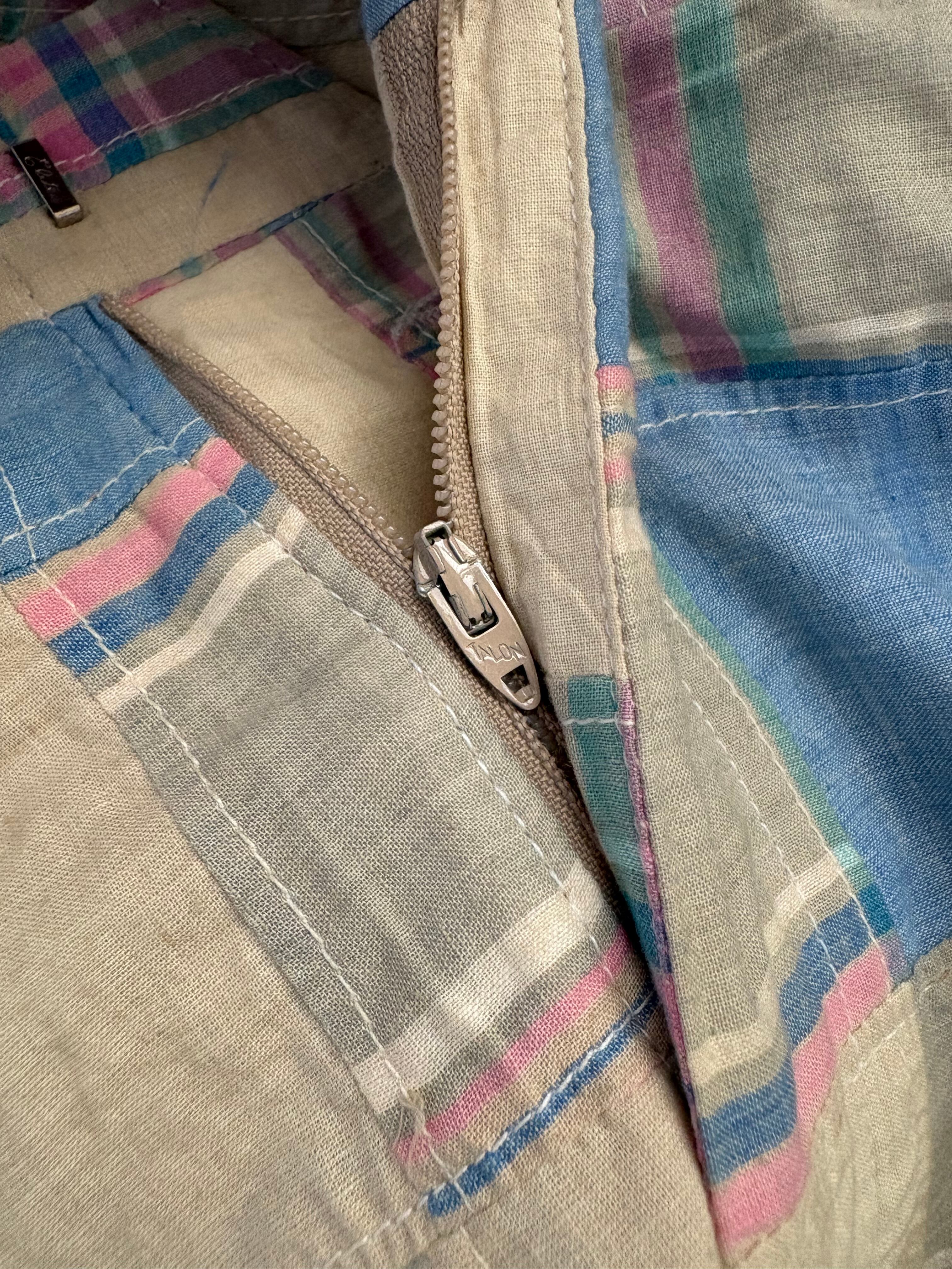 マサチューセッツ、ナンタケットアイランドのお店のパンツです。このくらいの年代のインディアンマドラスを使用したパッチワークパンツの気になる柄のものにはナンタケット島のテーラーのタグがついていることが多いです。