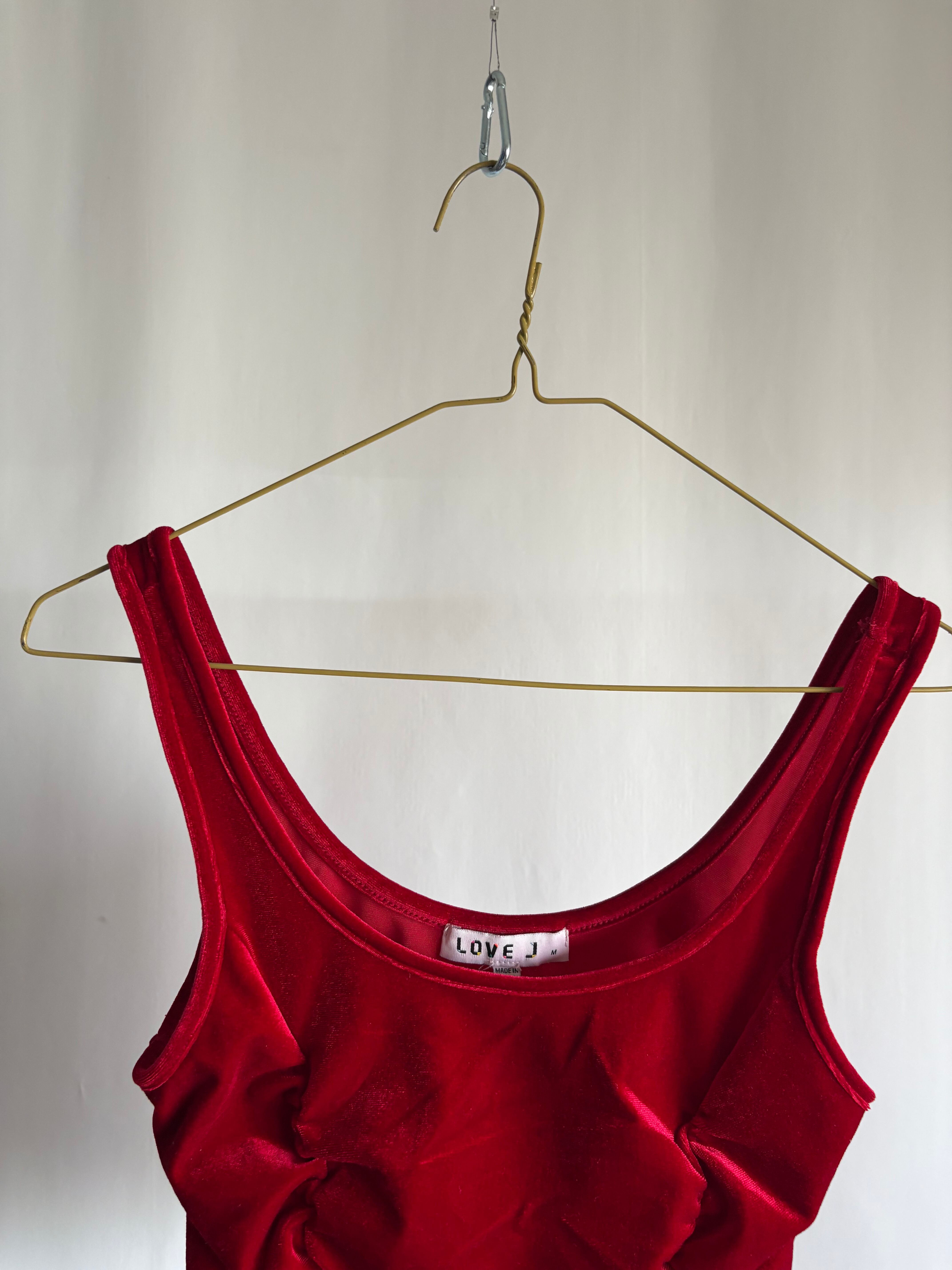 ウエスト部分にシャーリングのついたスパンデックスミックスのベロアタンクトップです。