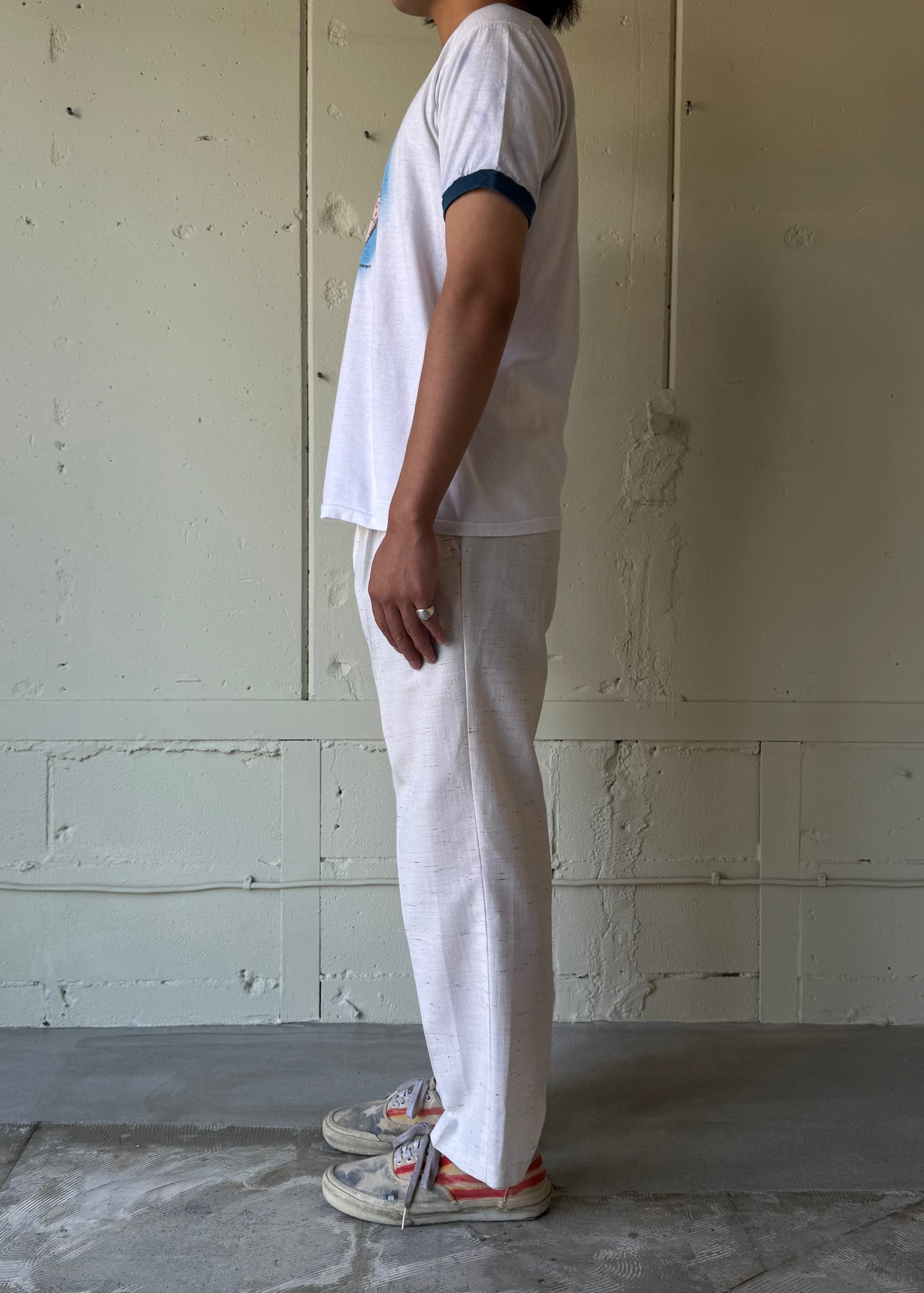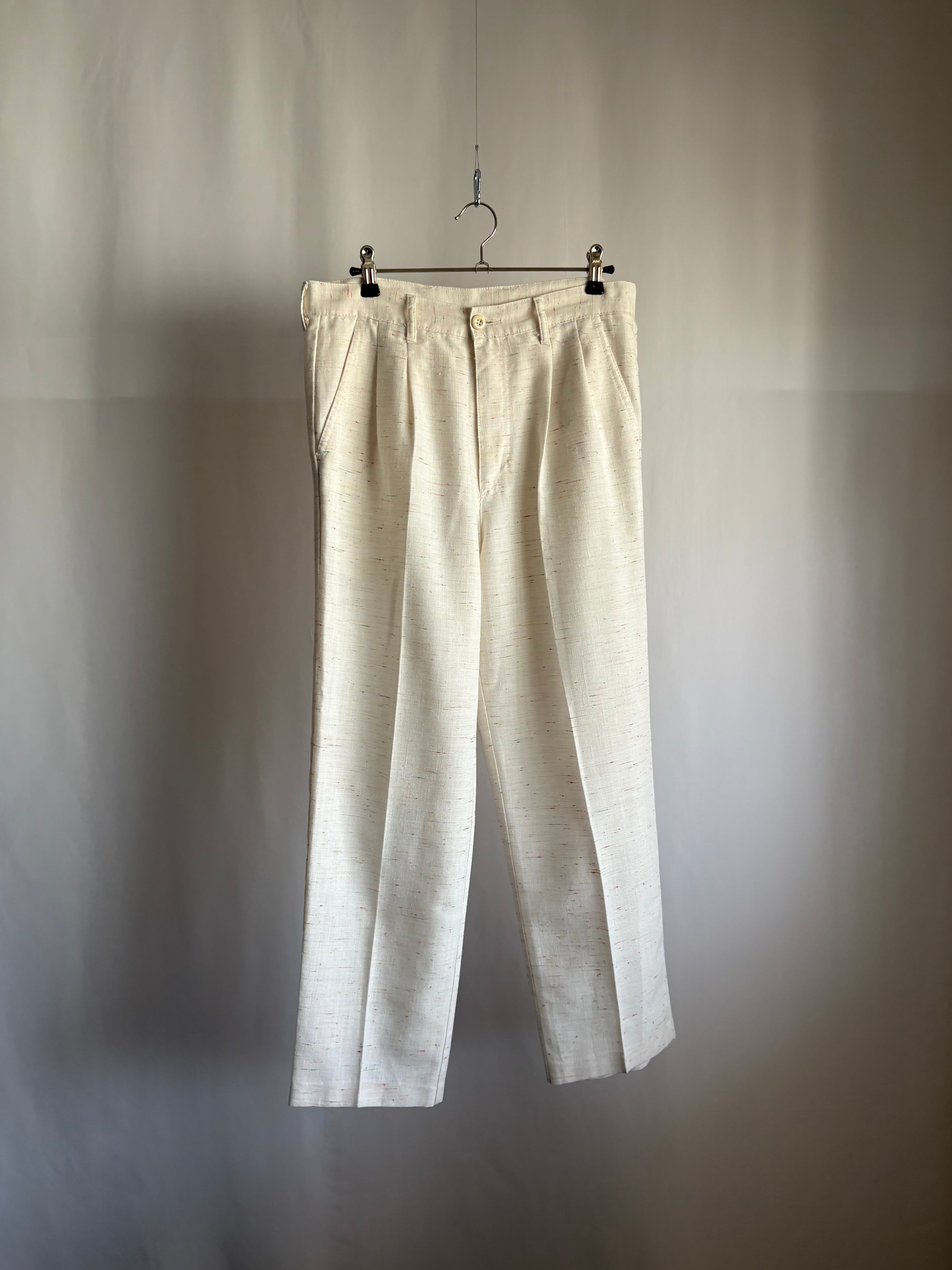 ホワイトにカラフルなネップの生地です。まるでコットンキャンディーのアイスクリームの様なパンツ。