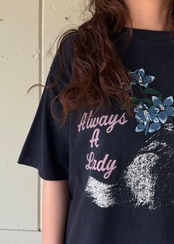 ファンシー、ドリーミンな字体と色使いなのですがボディーのブラックと何処か影のあるプリントで締まりのあるTシャツだと思います。