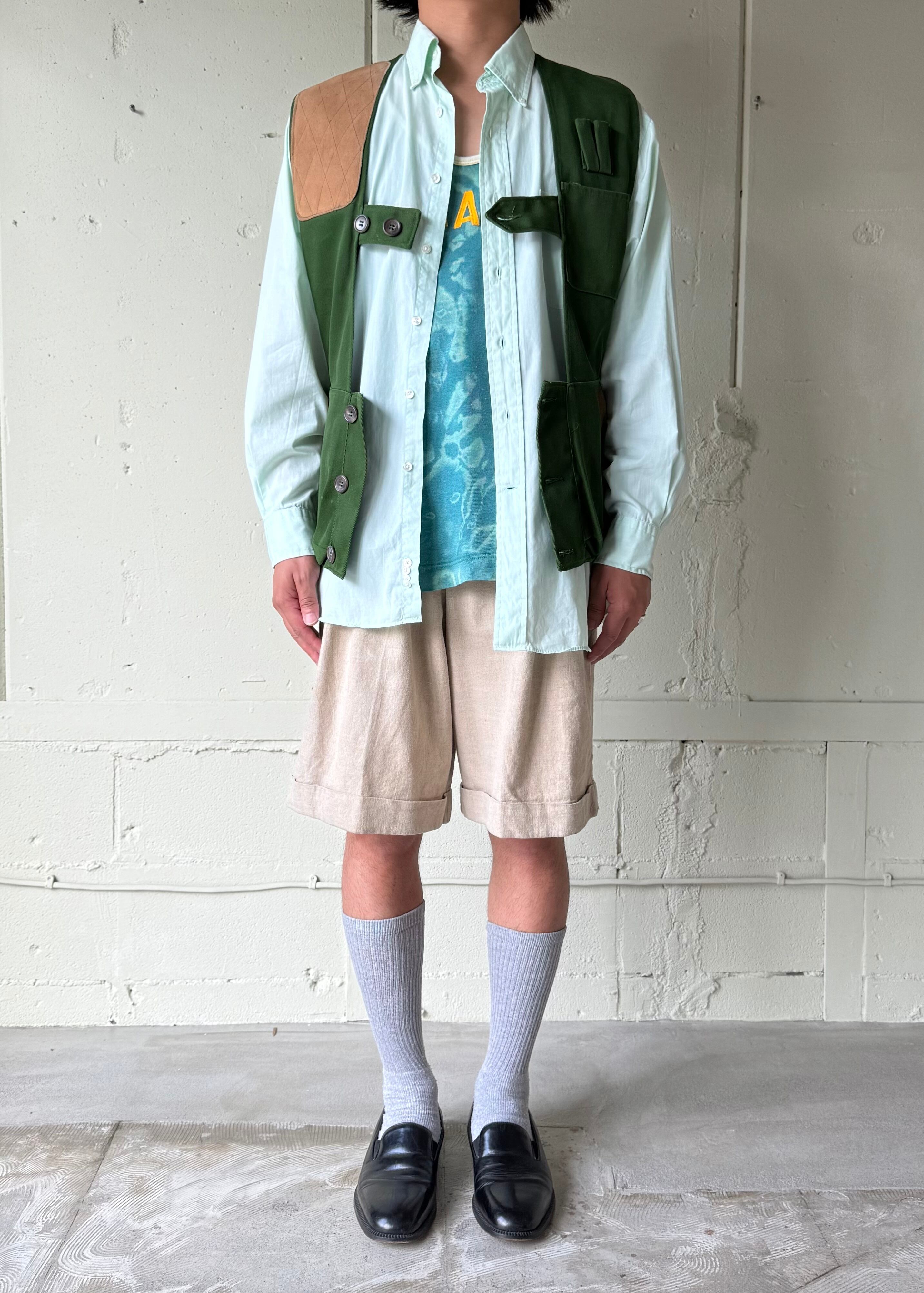 また、Tシャツを多く着用する季節、ブローチやピンバッジをTシャツにそのまま刺すのは少し気が引ける、そんな時にこれを羽織ってアクセサリーをつけるなんていうような着方もできます。