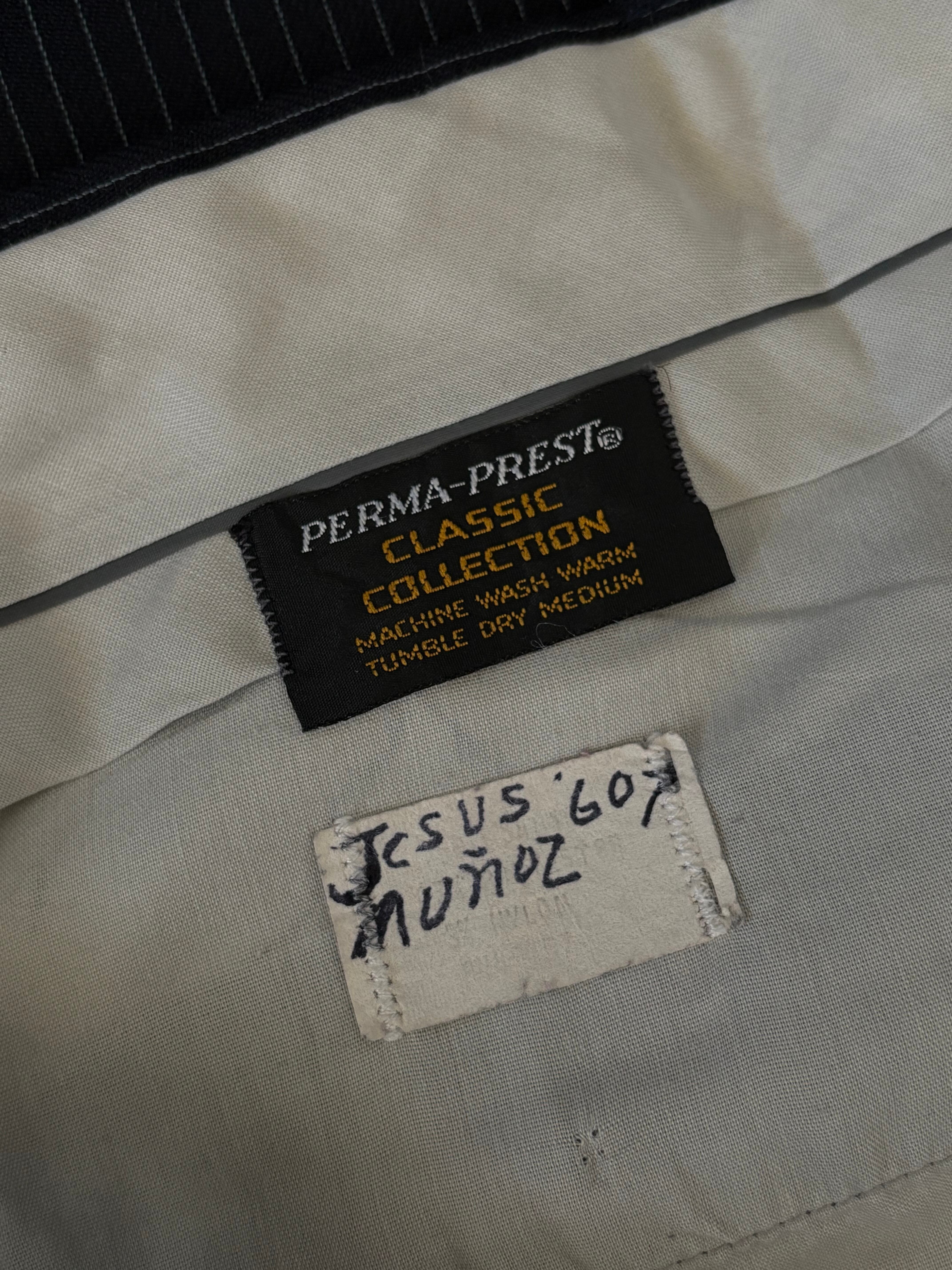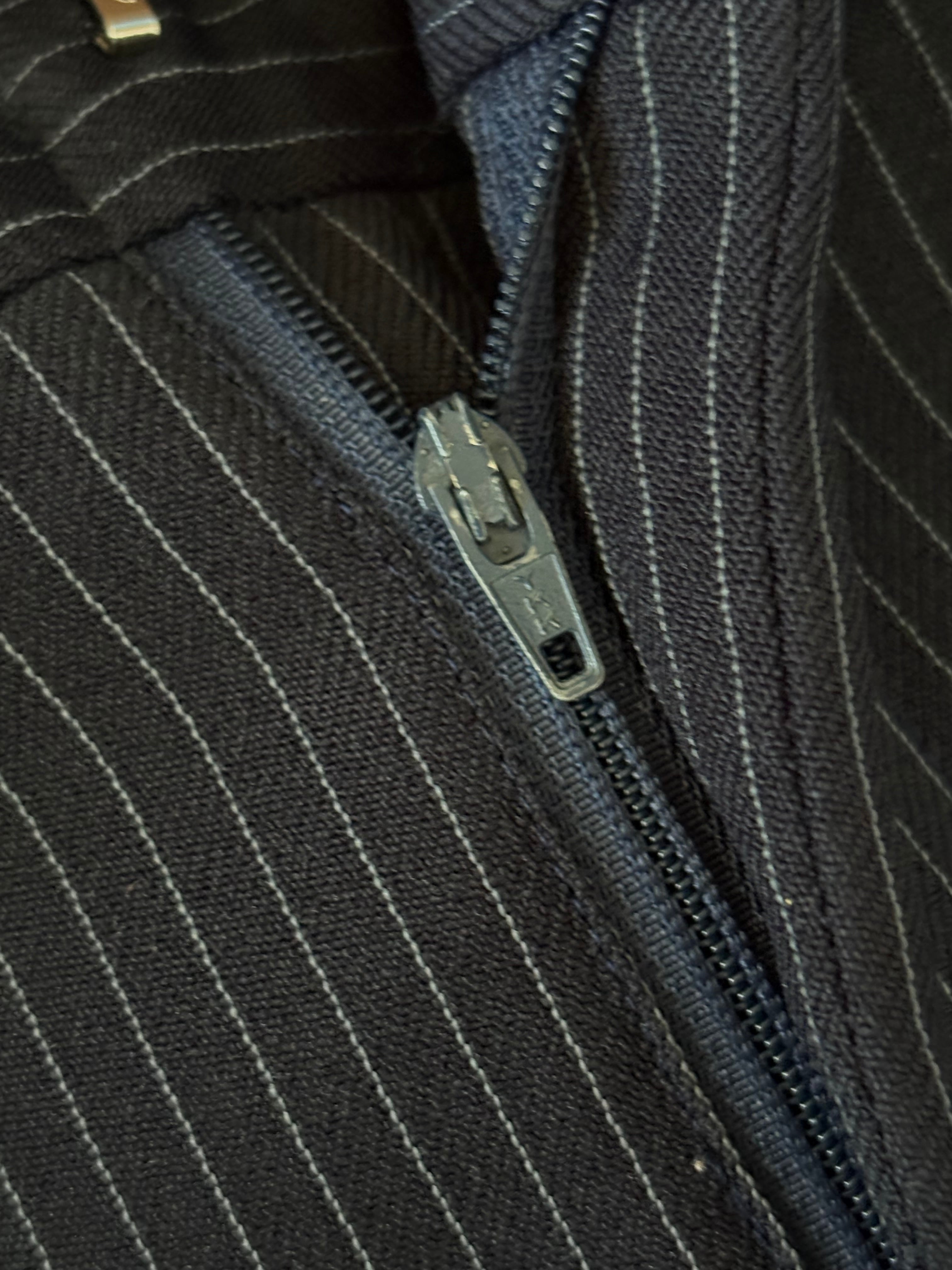 形が綺麗。ネイビーのストライプ。このパンツのいいサイズは何故かアメリカで見つけると買い付けてしまいます。いいジップがついていると尚更。
