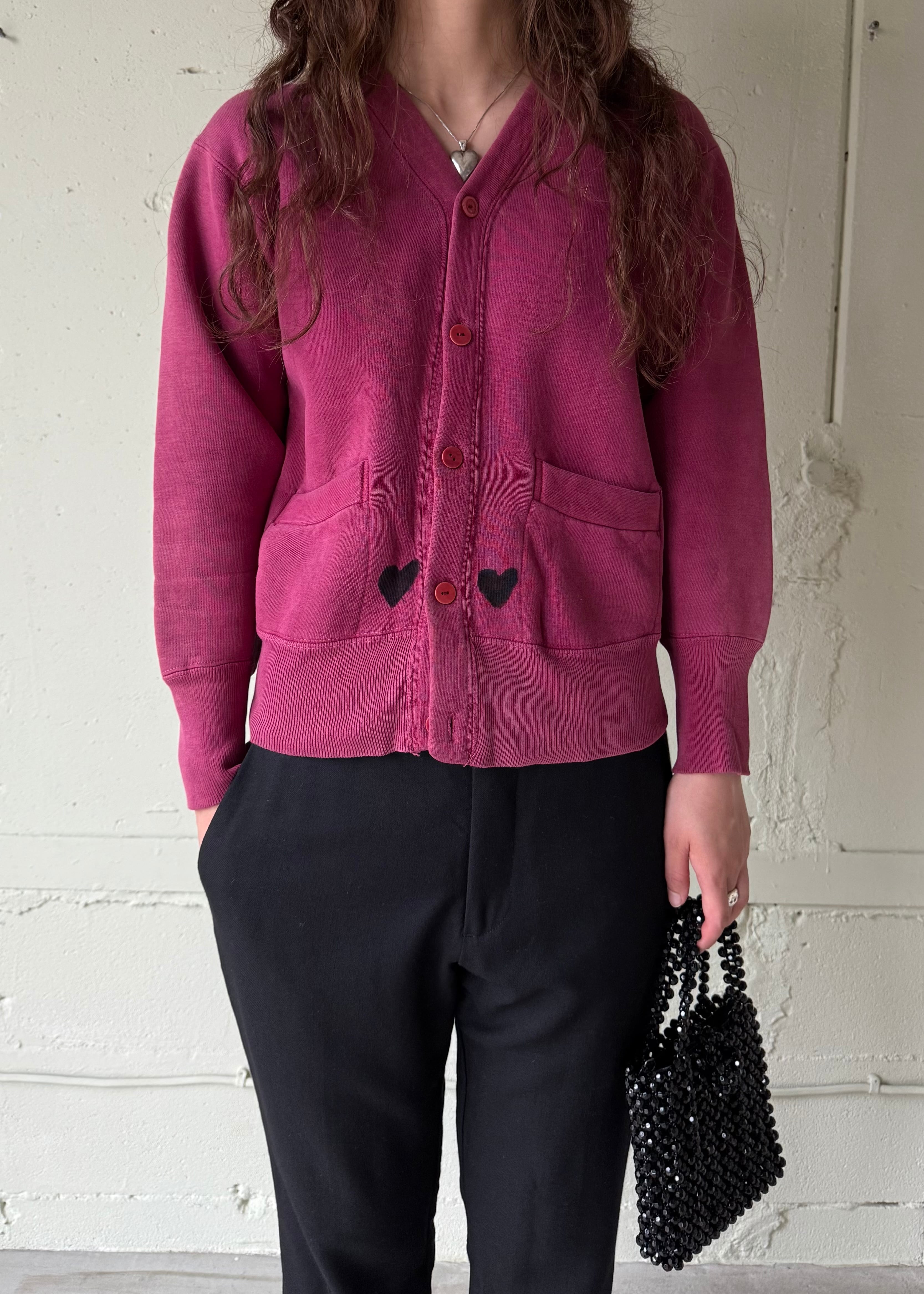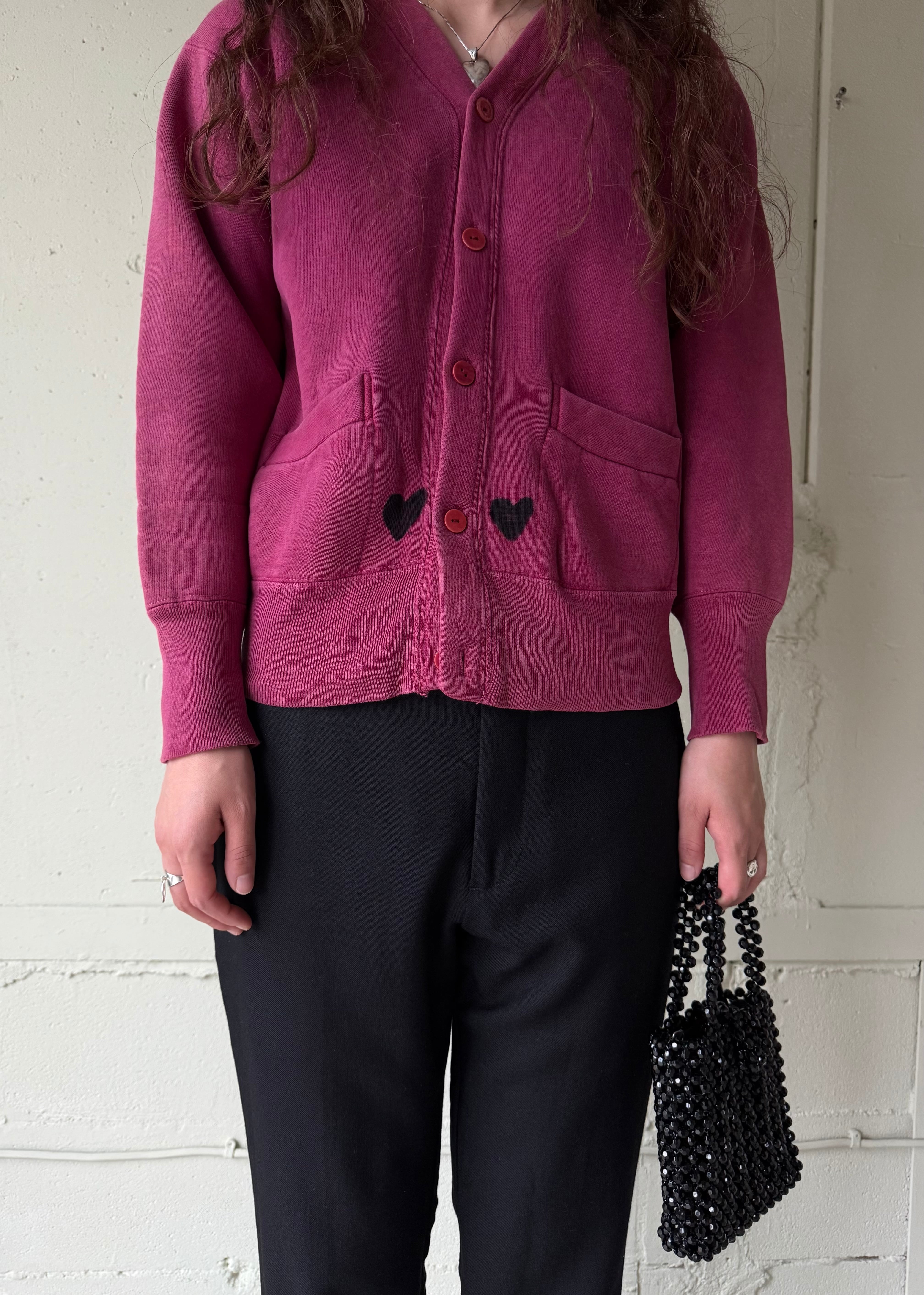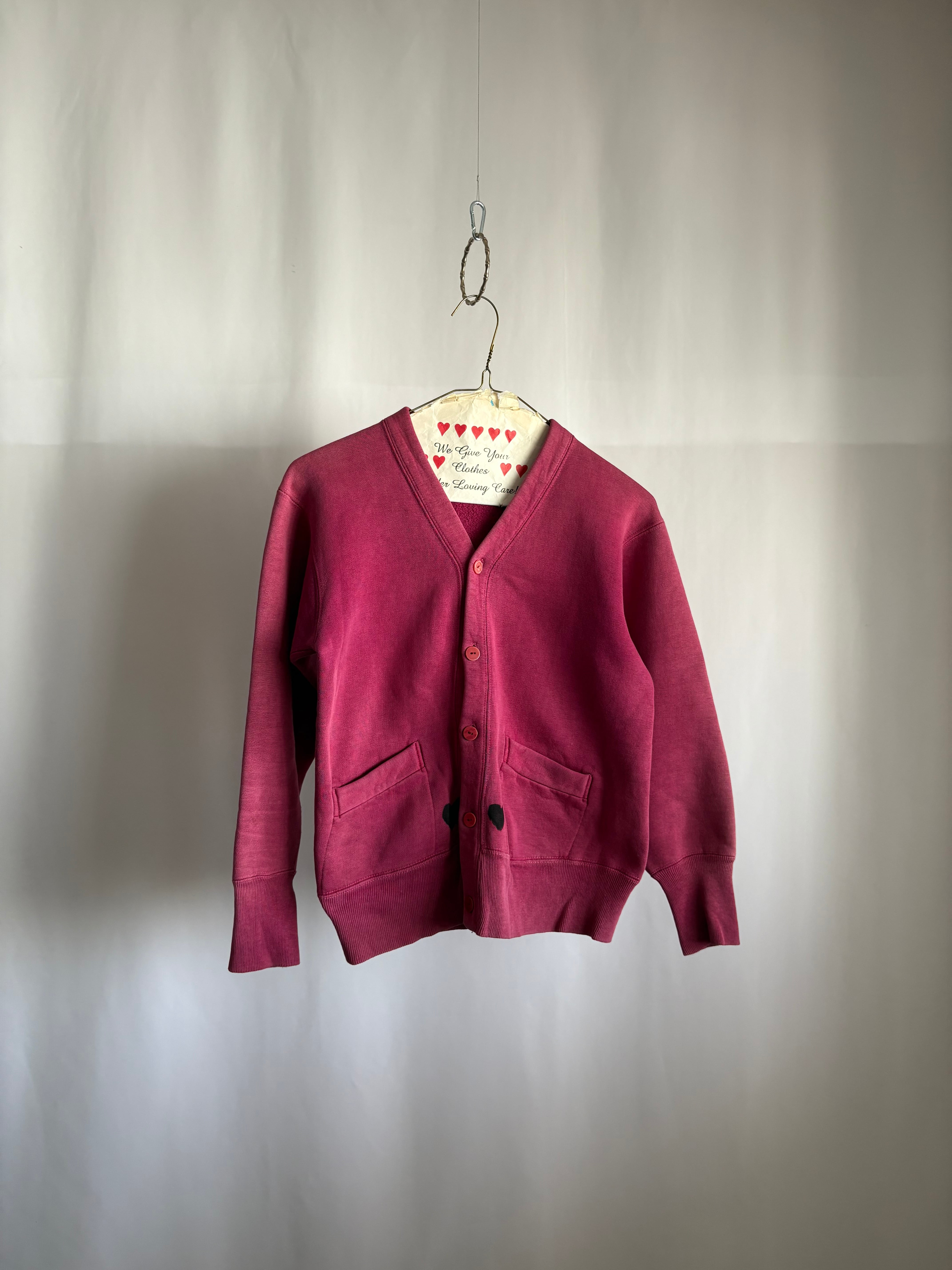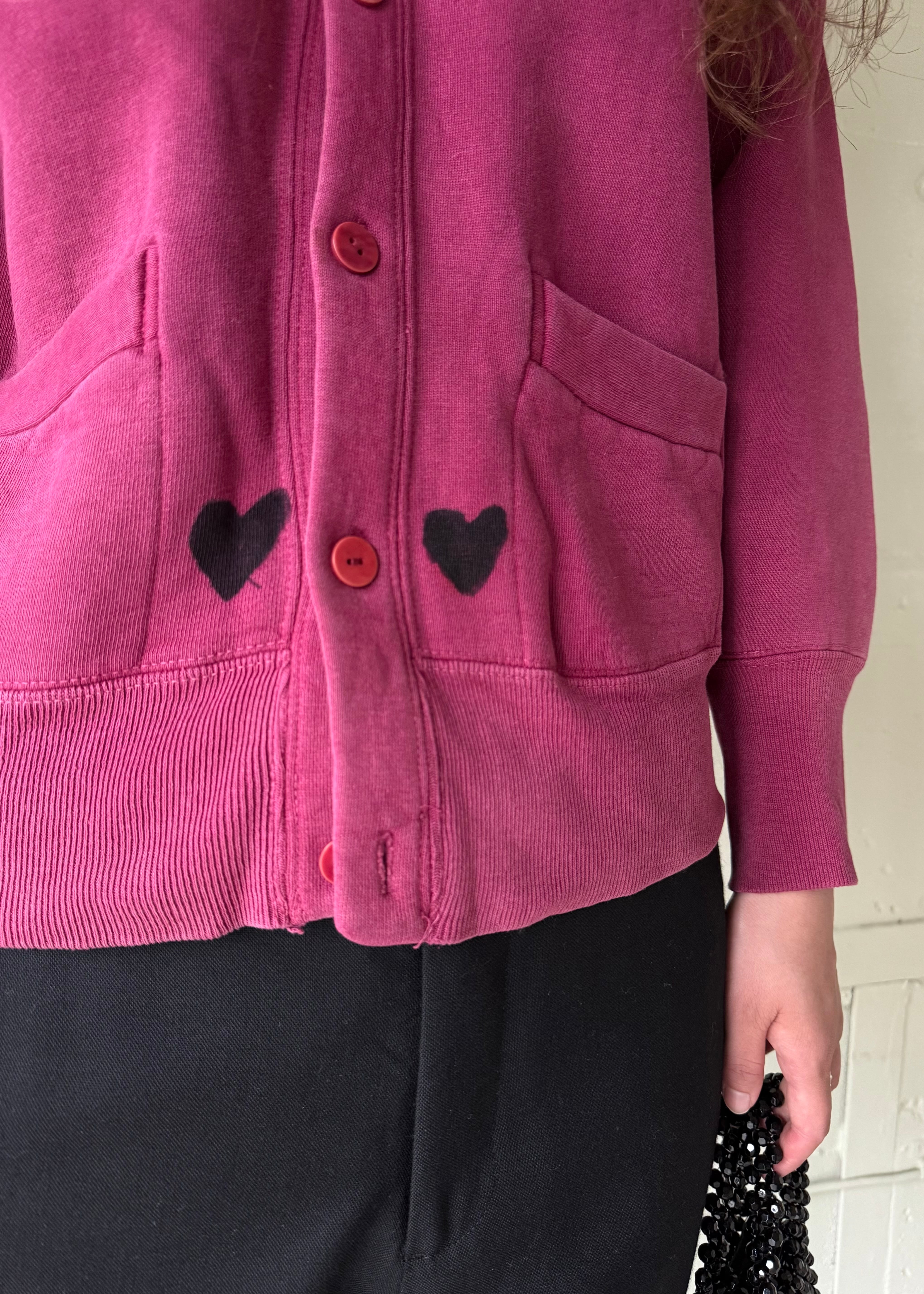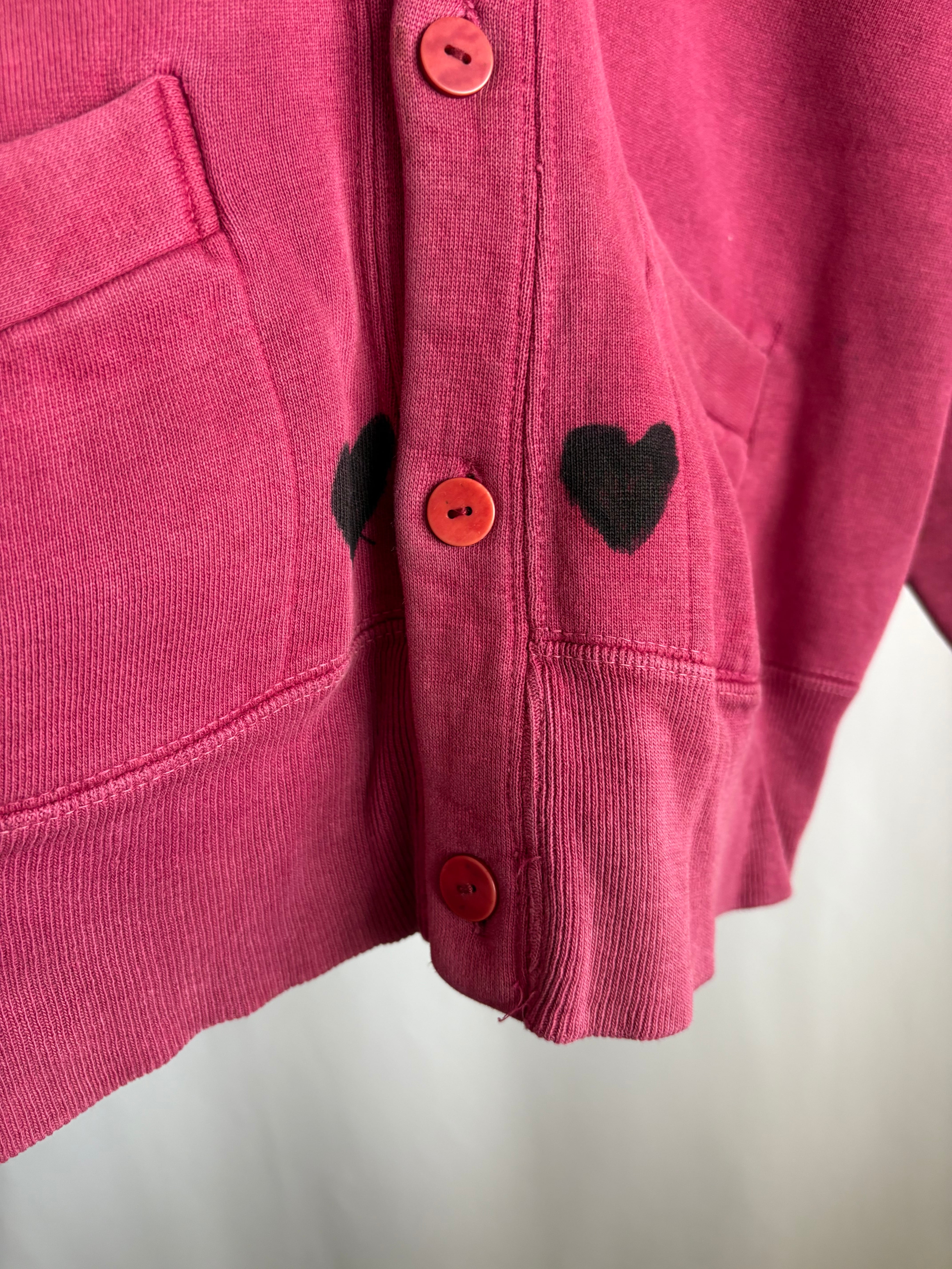 ハートが適当に手書きで描かれたスウェットのカーディガンです。小さめ