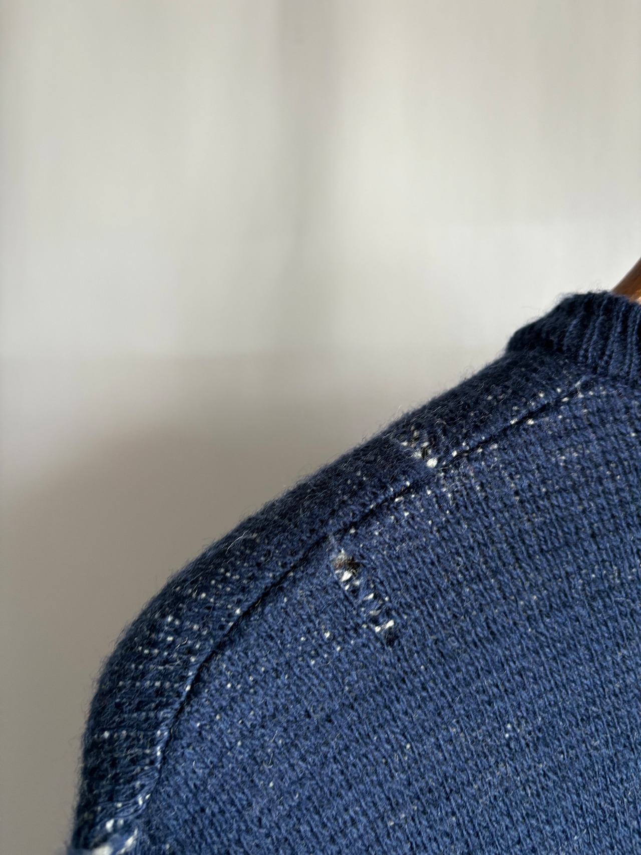 背面 左袖裏、左肩上 にニットのスレによるダメージ