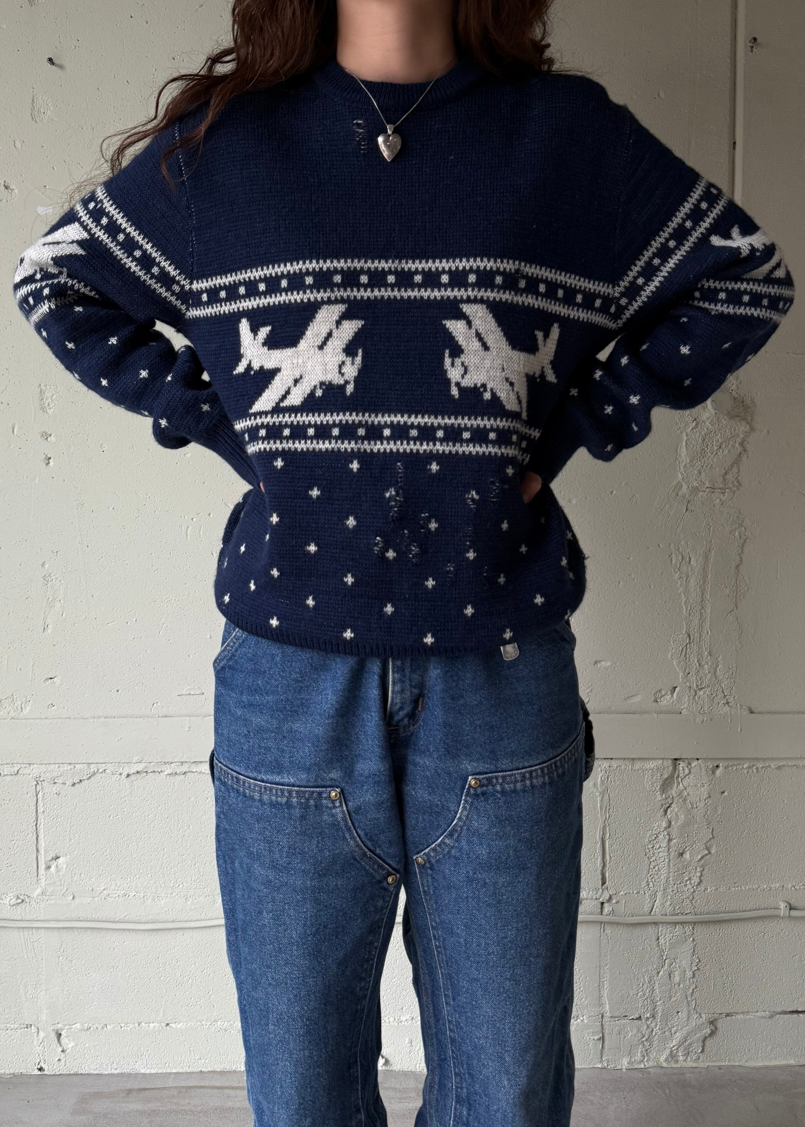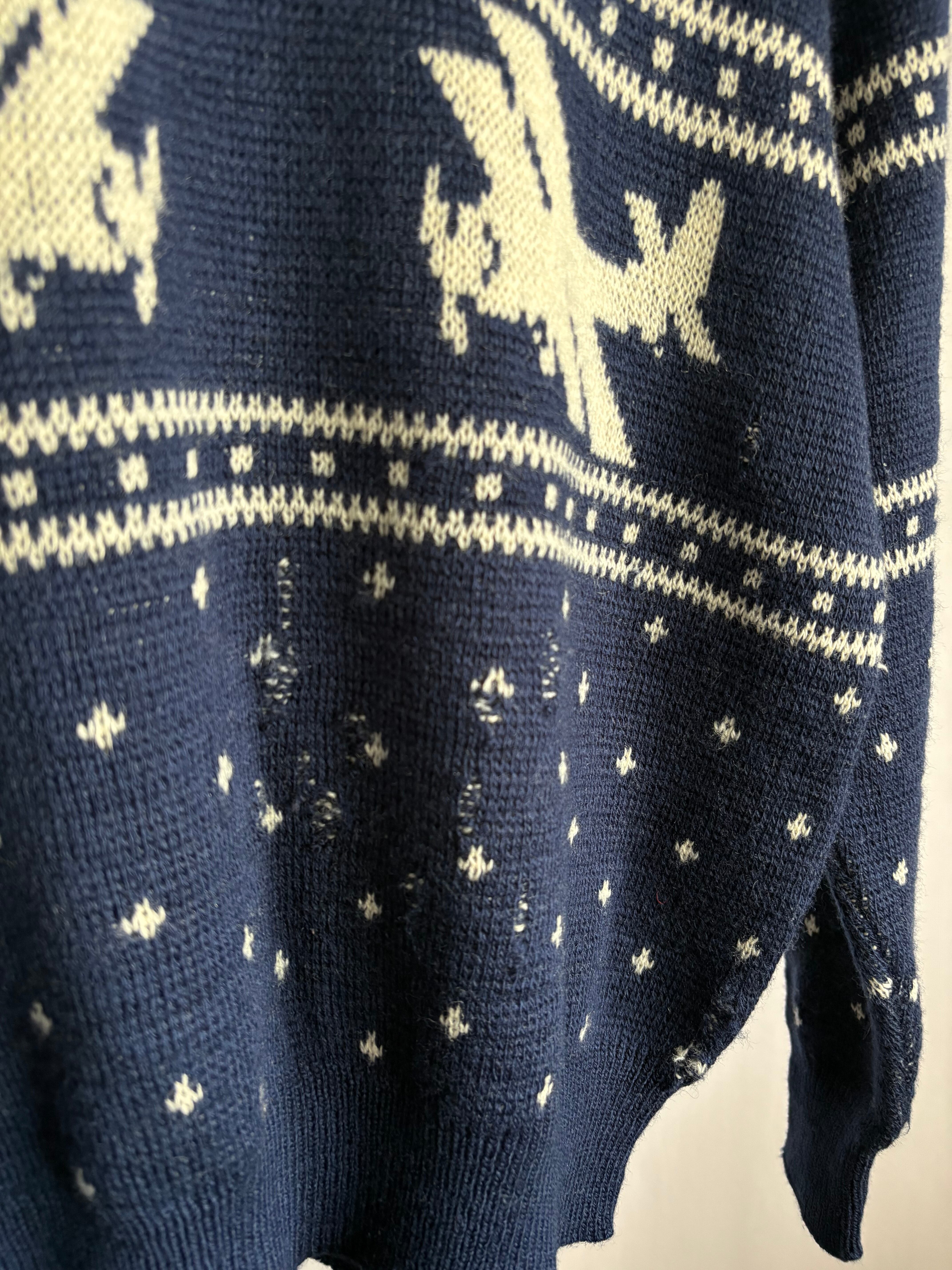 こちらは恐らくファッションにも目を向け作られたかと思いますので、シェトランドセーターなどの様な日常にも溶け込むセーターかと思います。