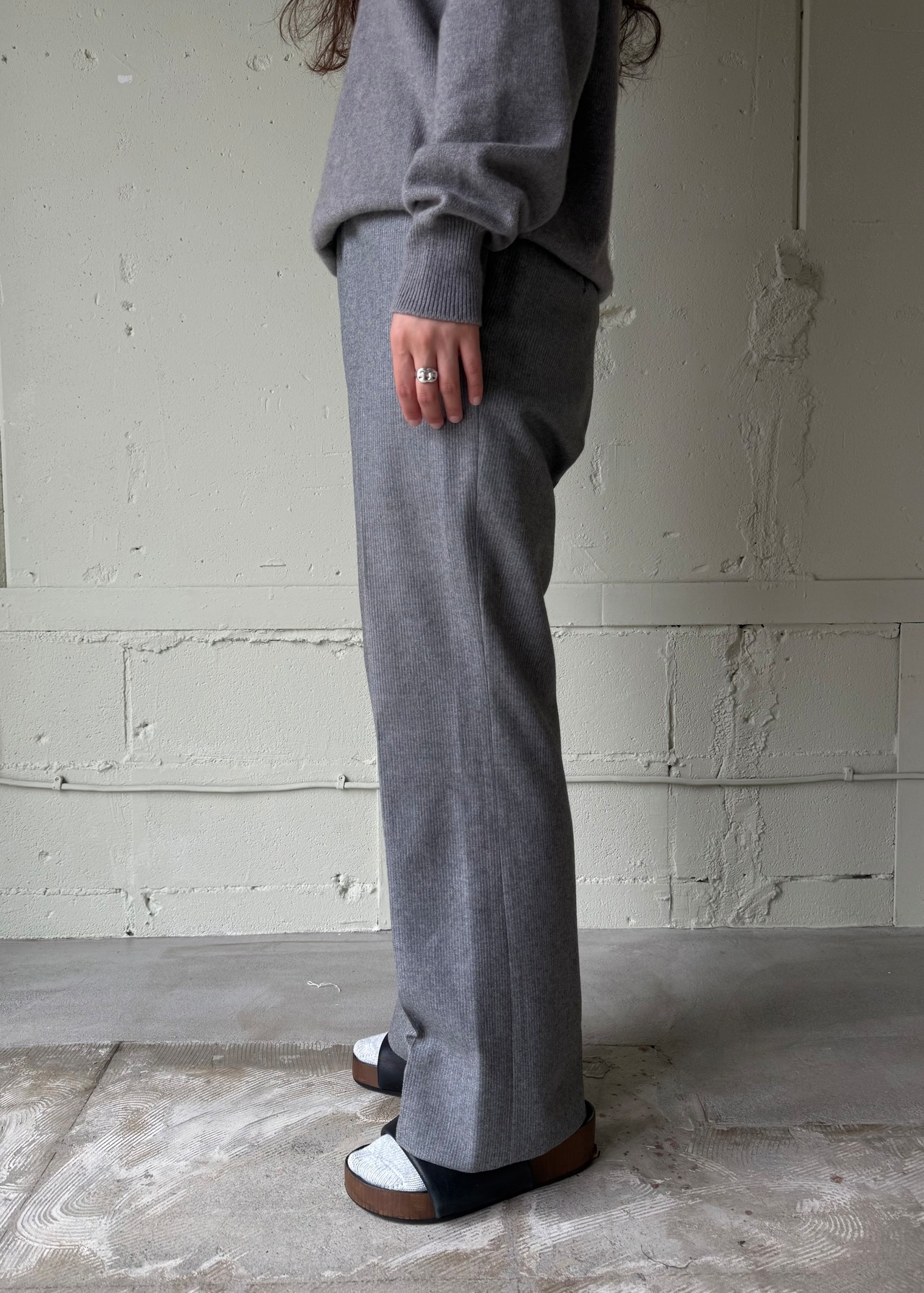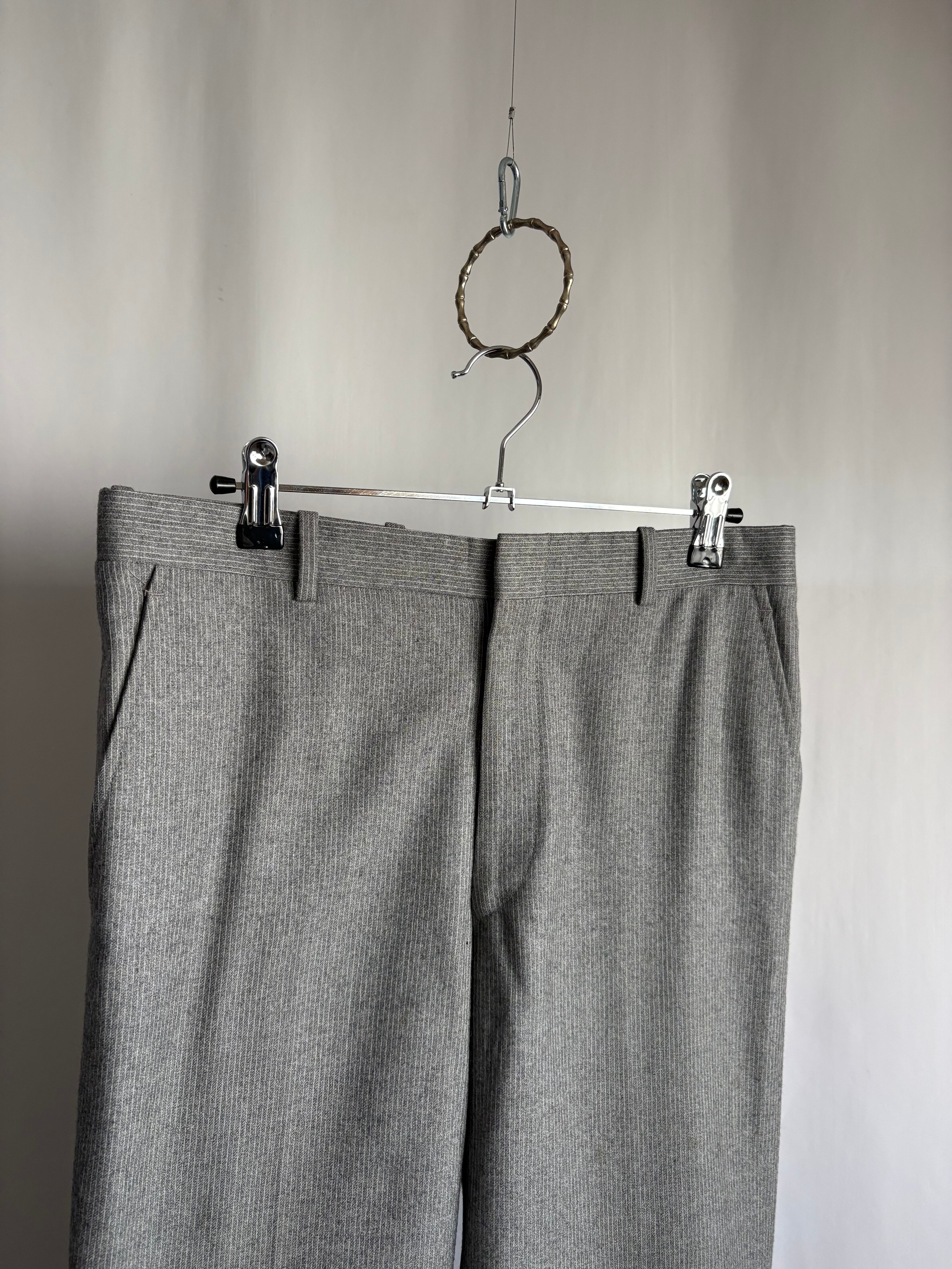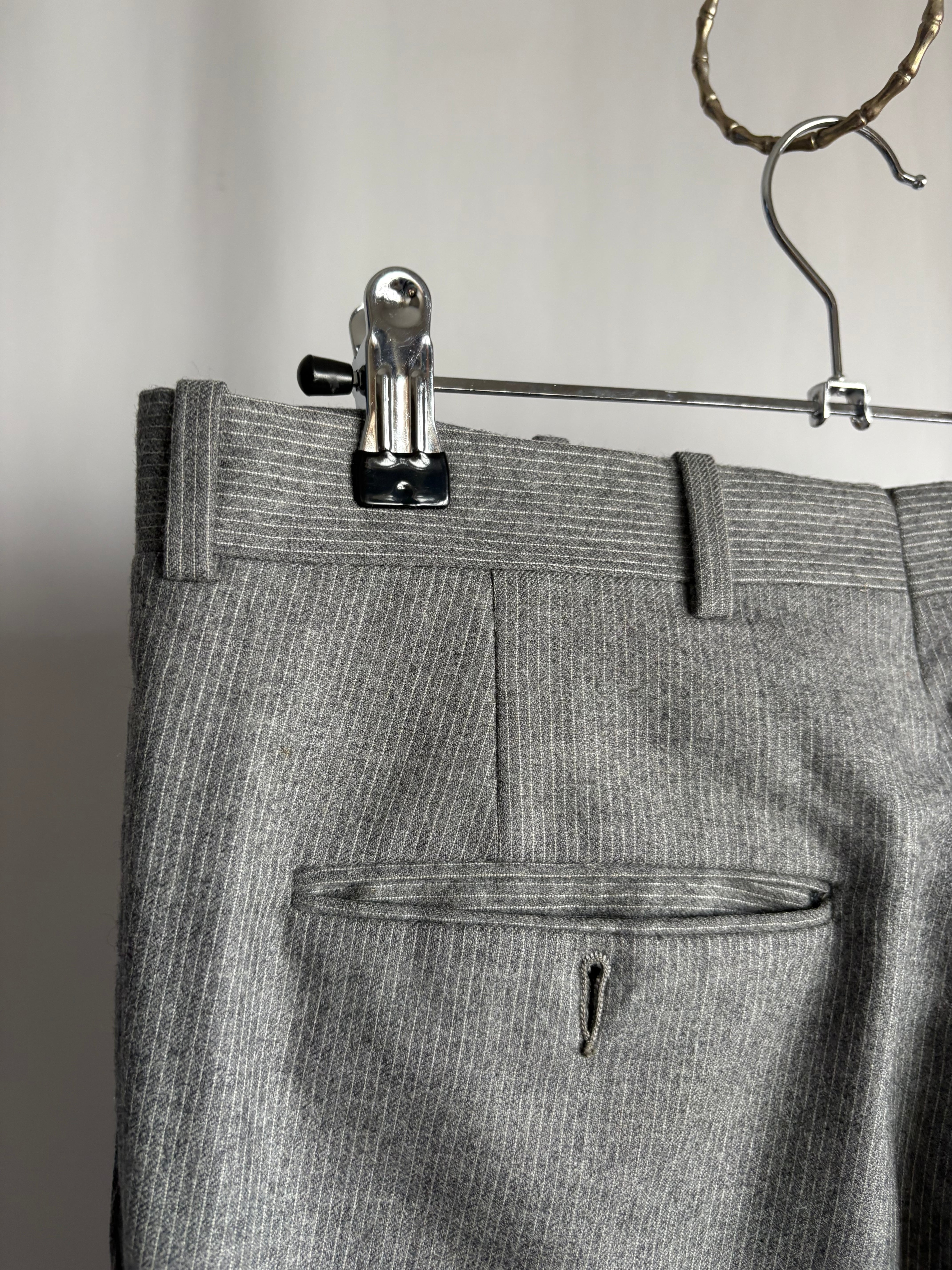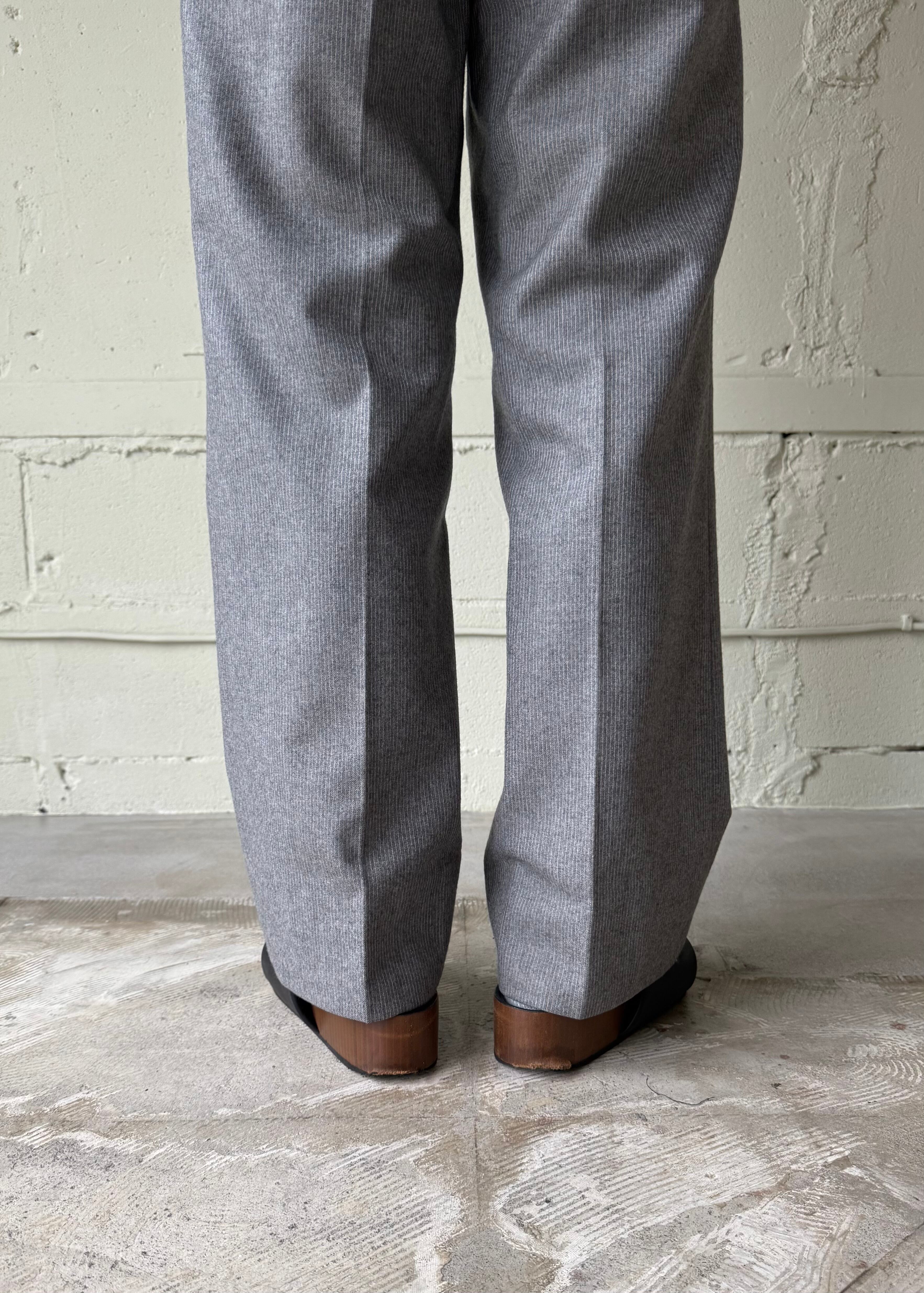 ストライプのグレーウール生地でプレススラックス仕様。綺麗なストレートのシルエットです。