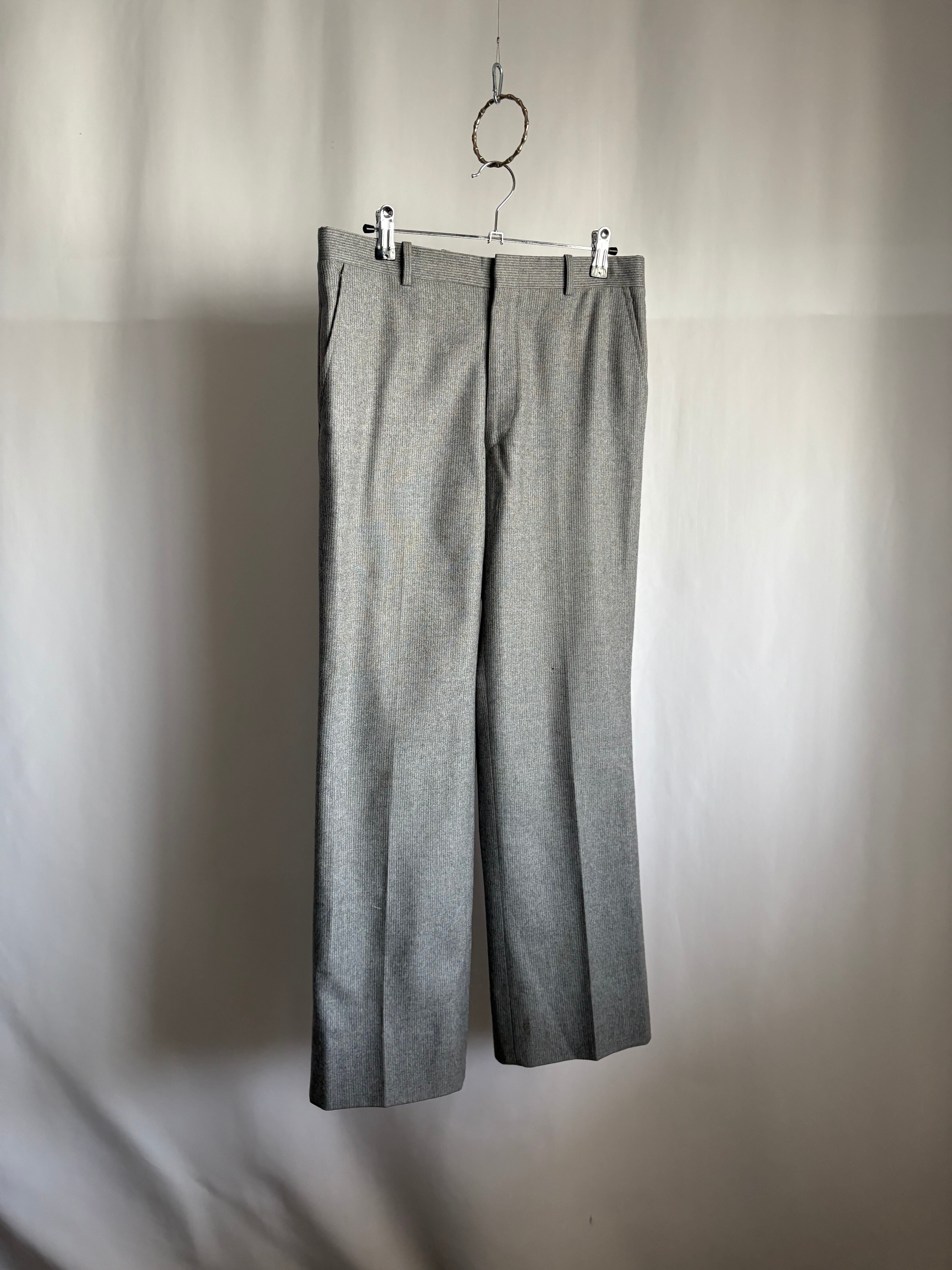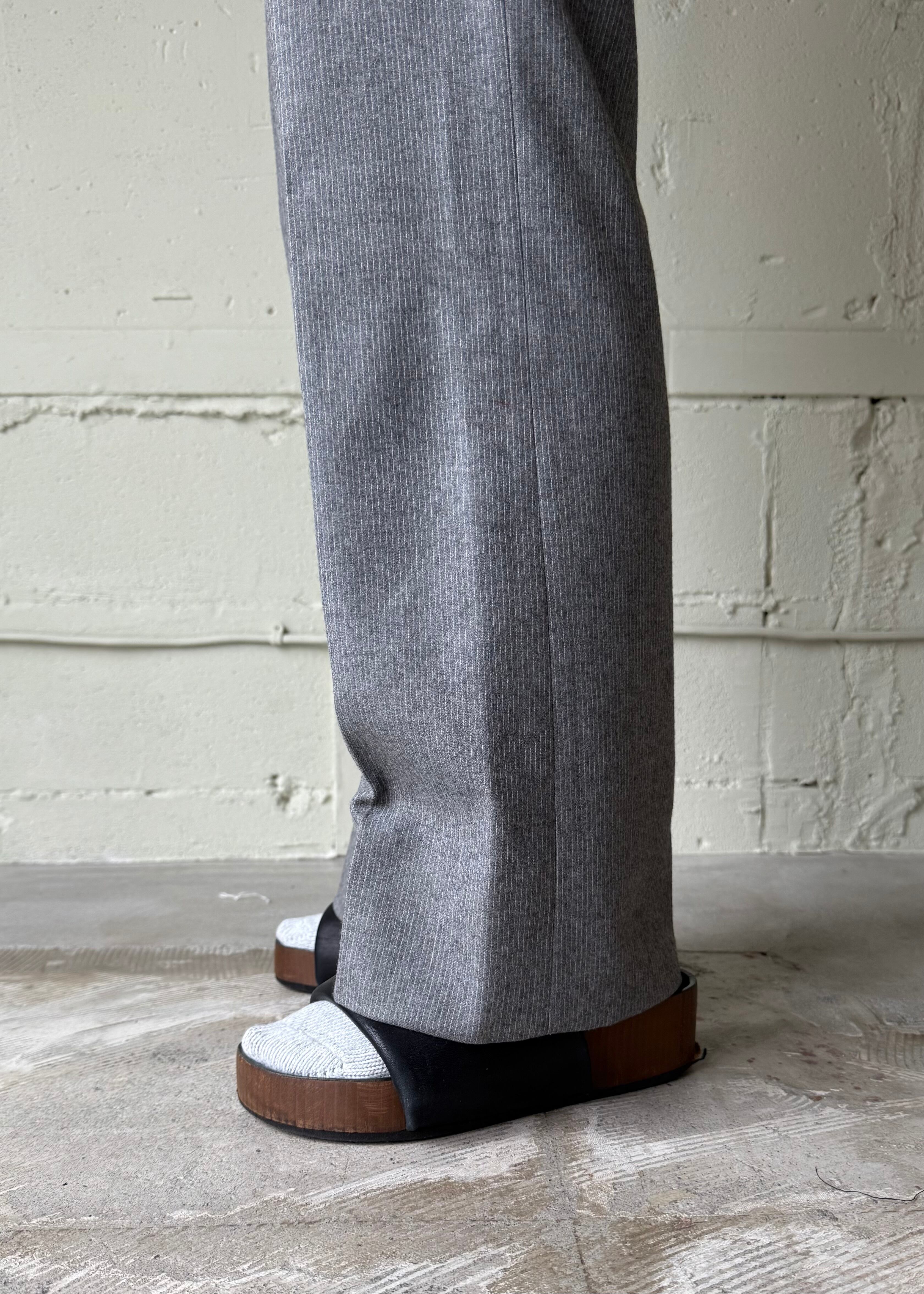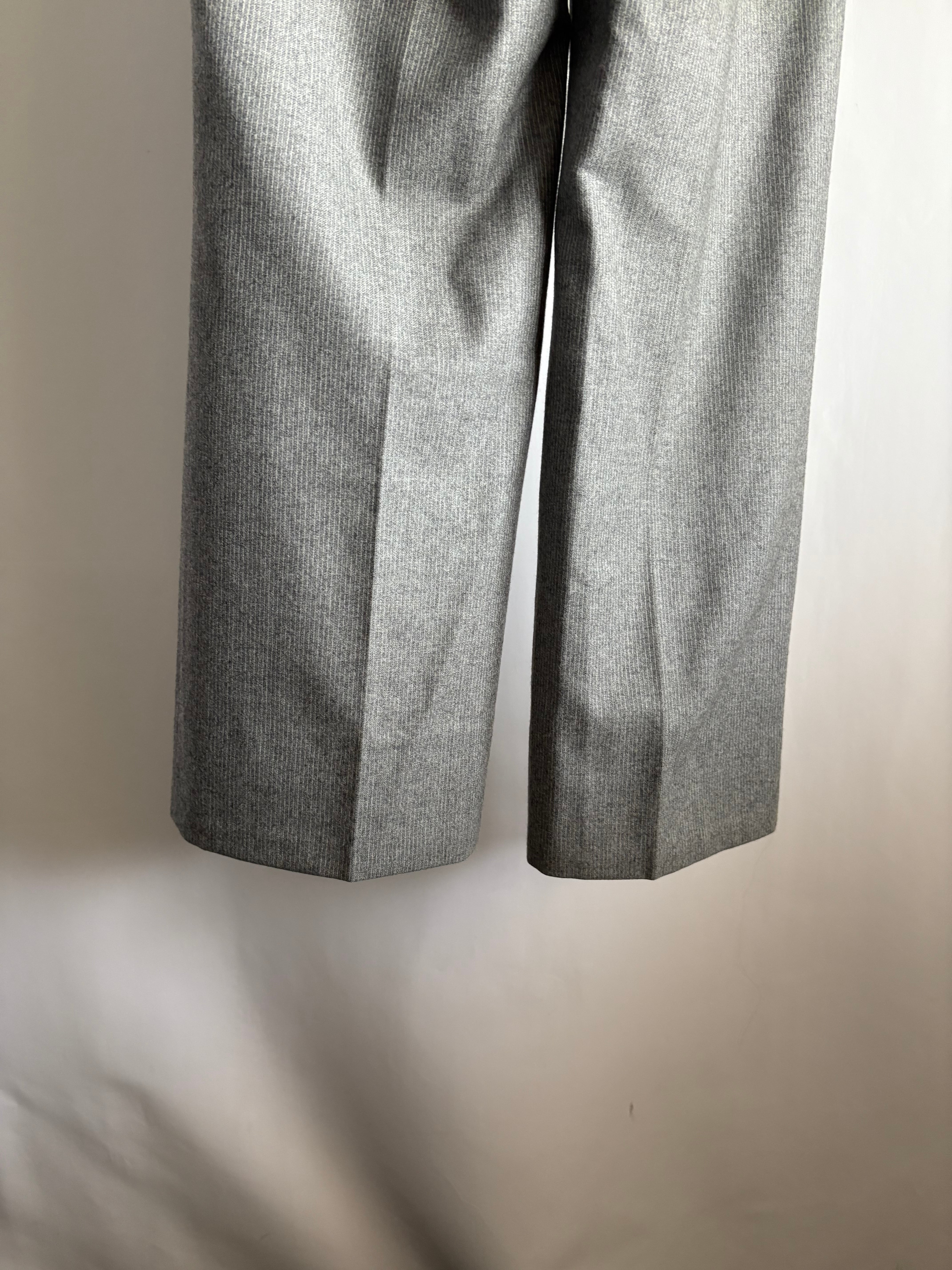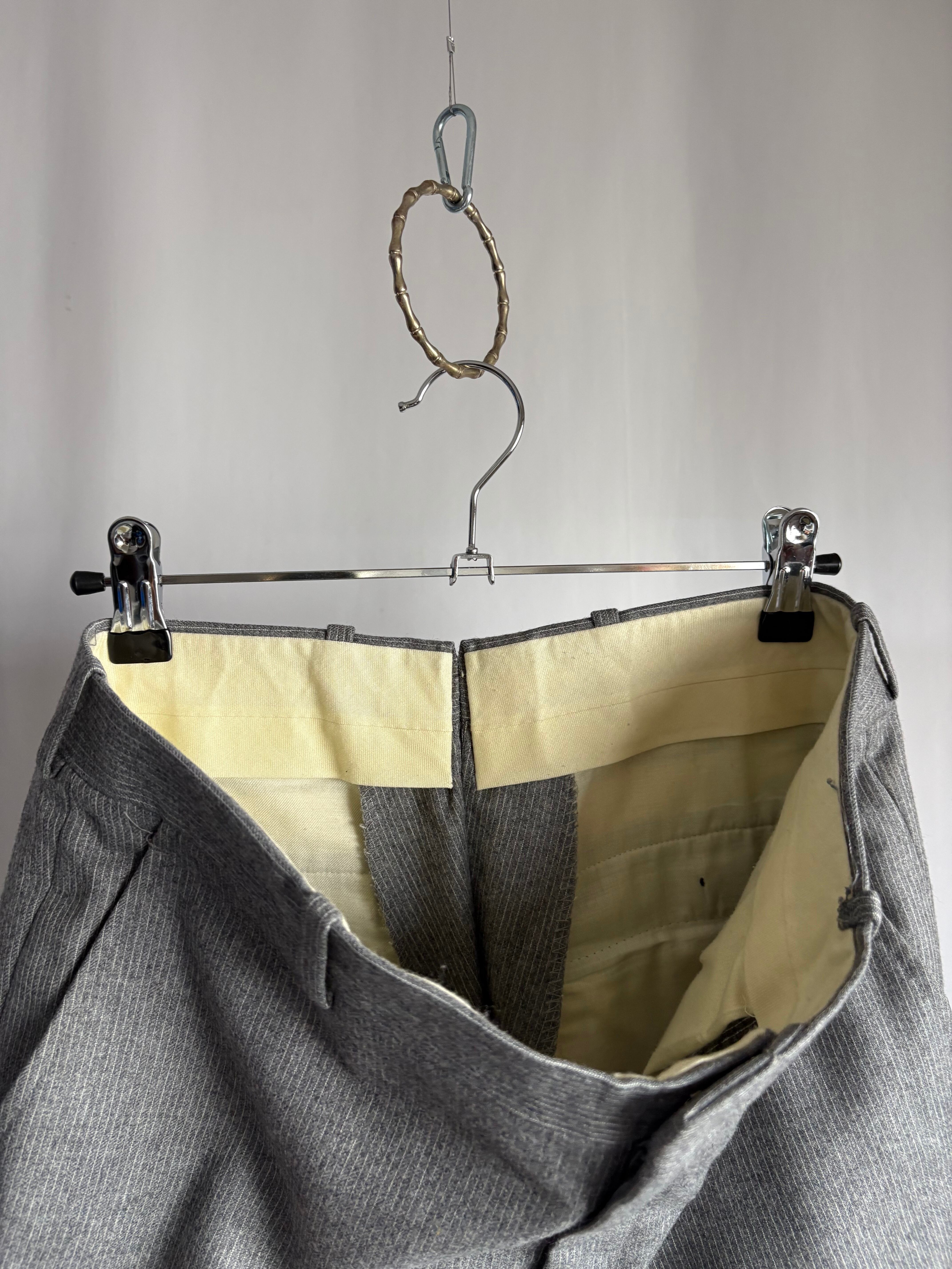 ストライプのグレーウール生地でプレススラックス仕様。綺麗なストレートのシルエットです。