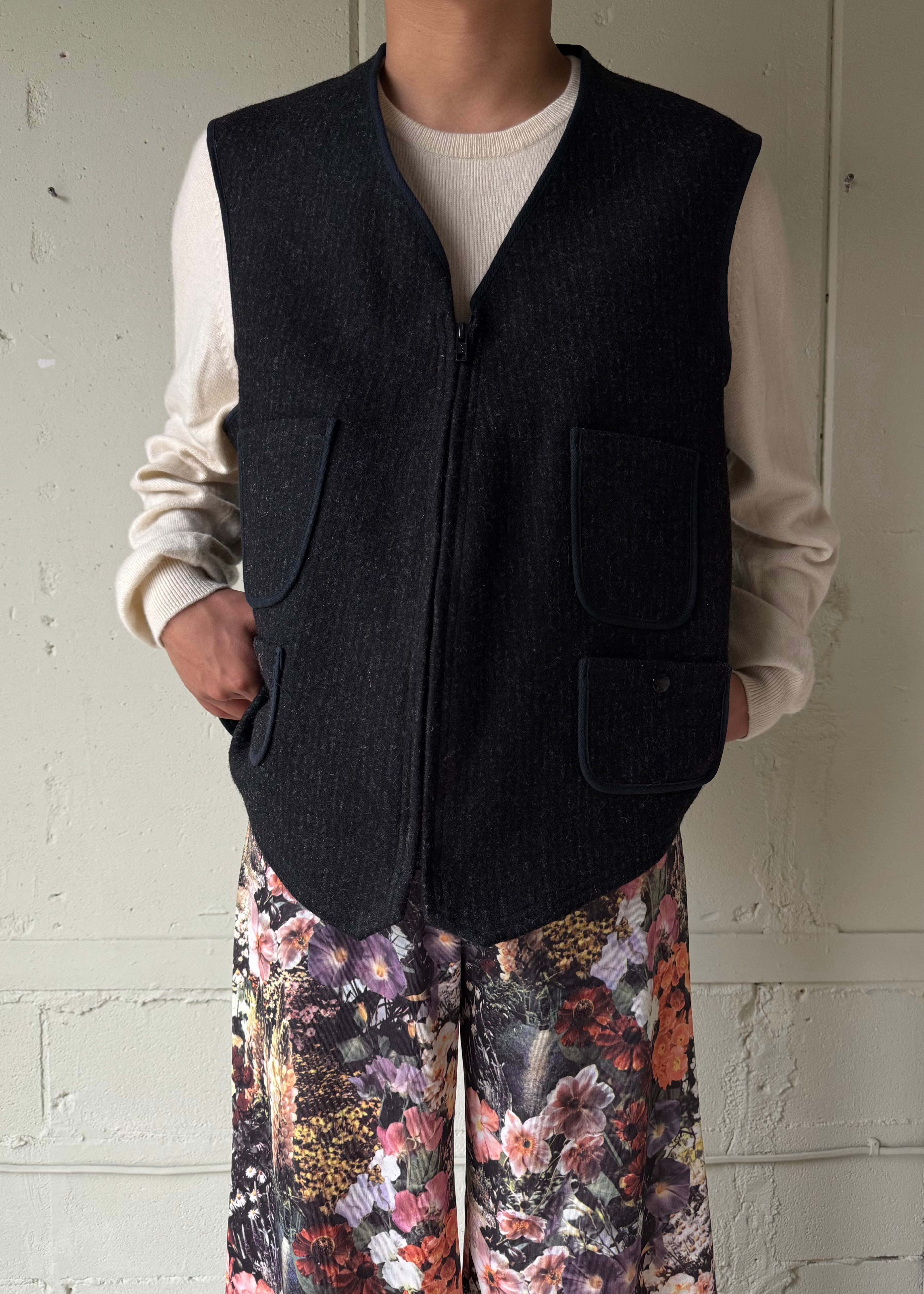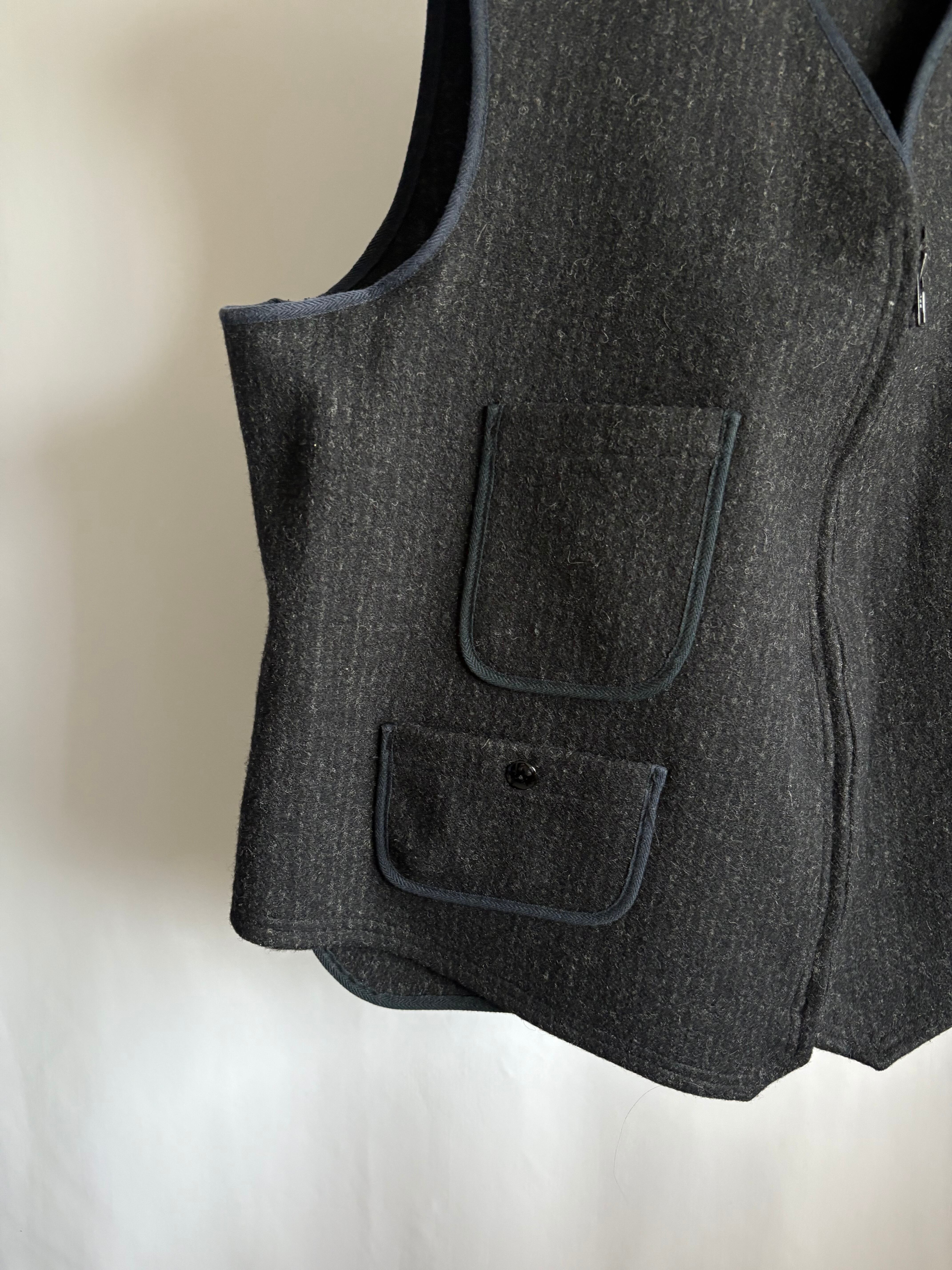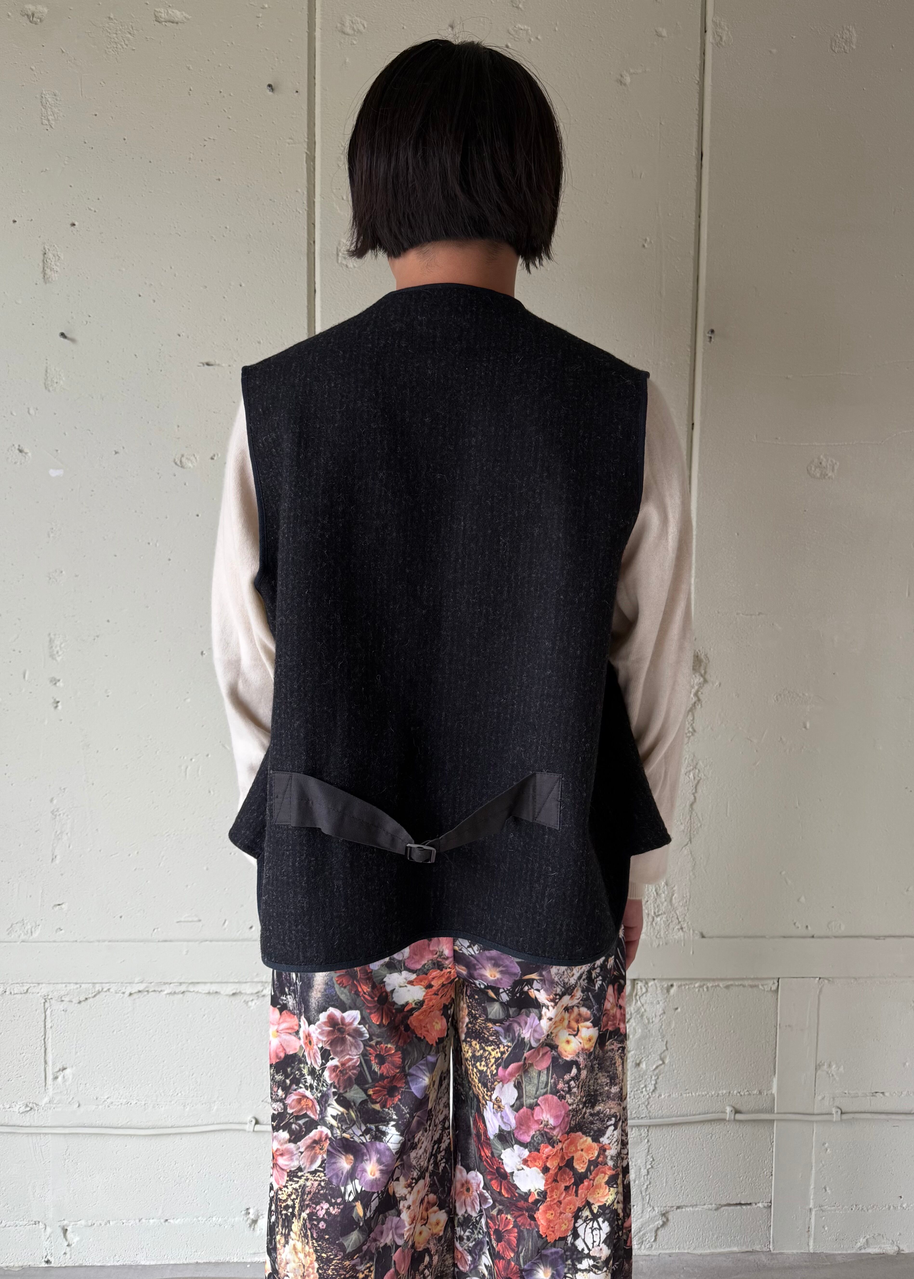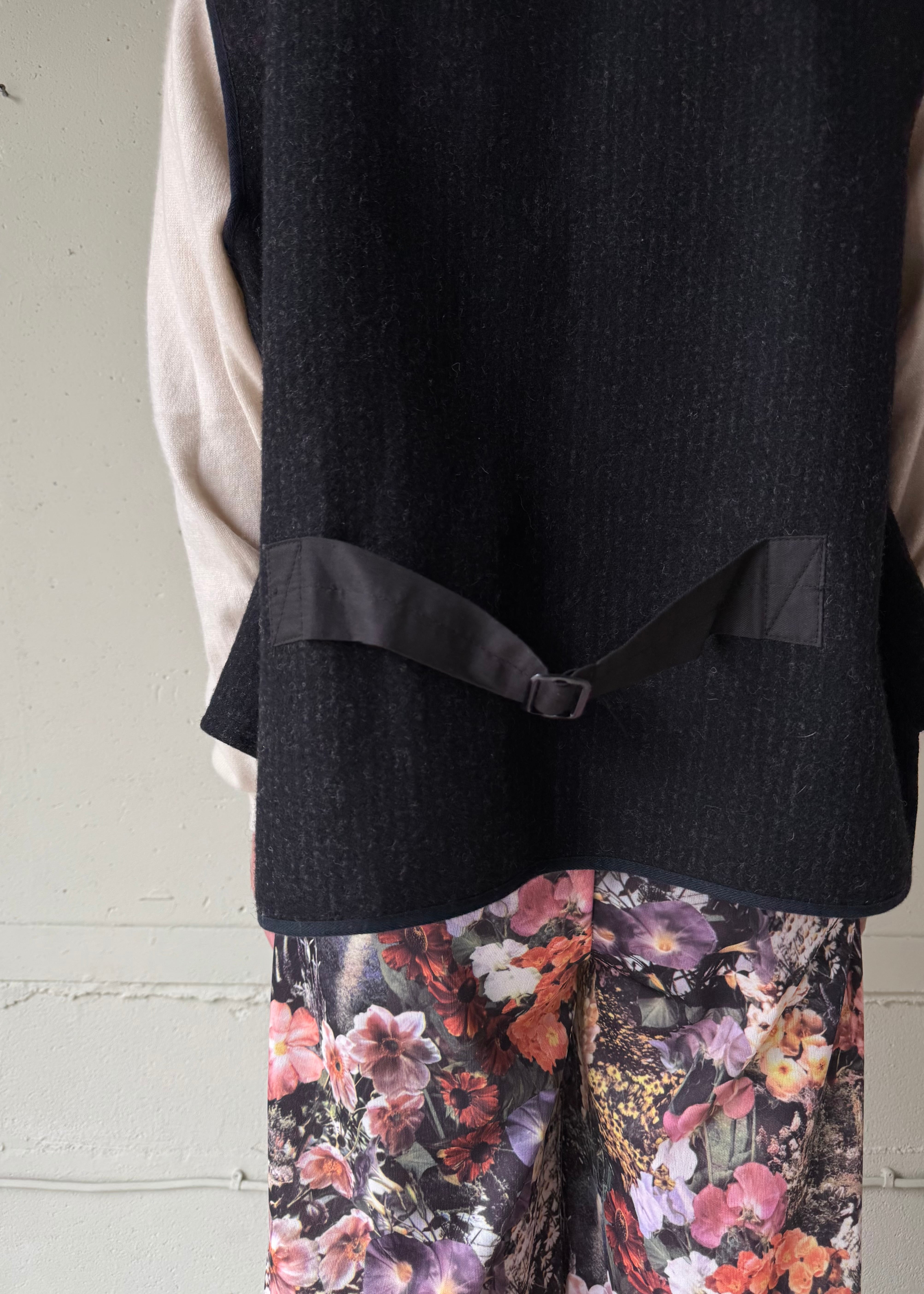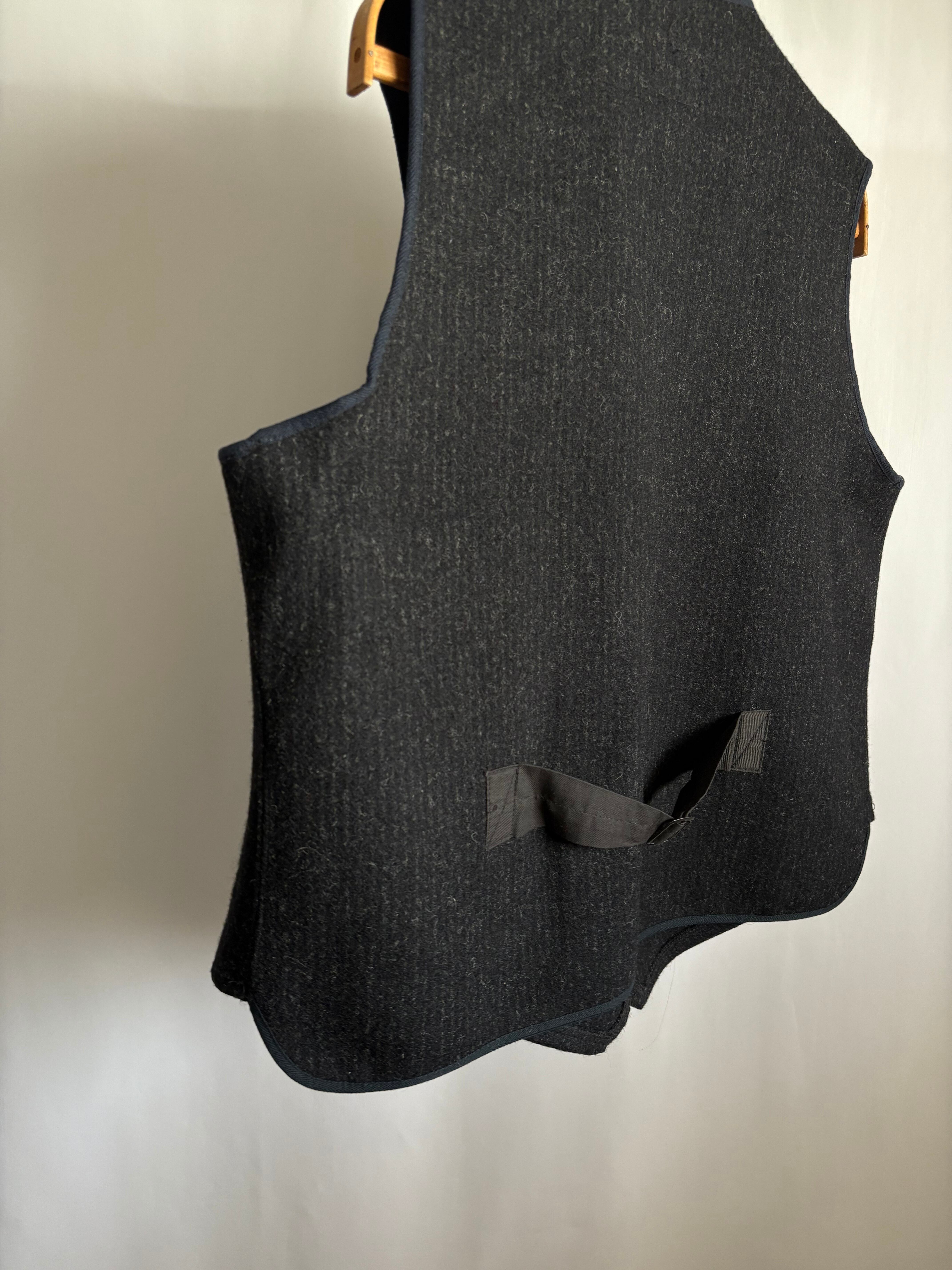 古いジレを着た時の様な形です。ストライプの様な織の模様も素敵。