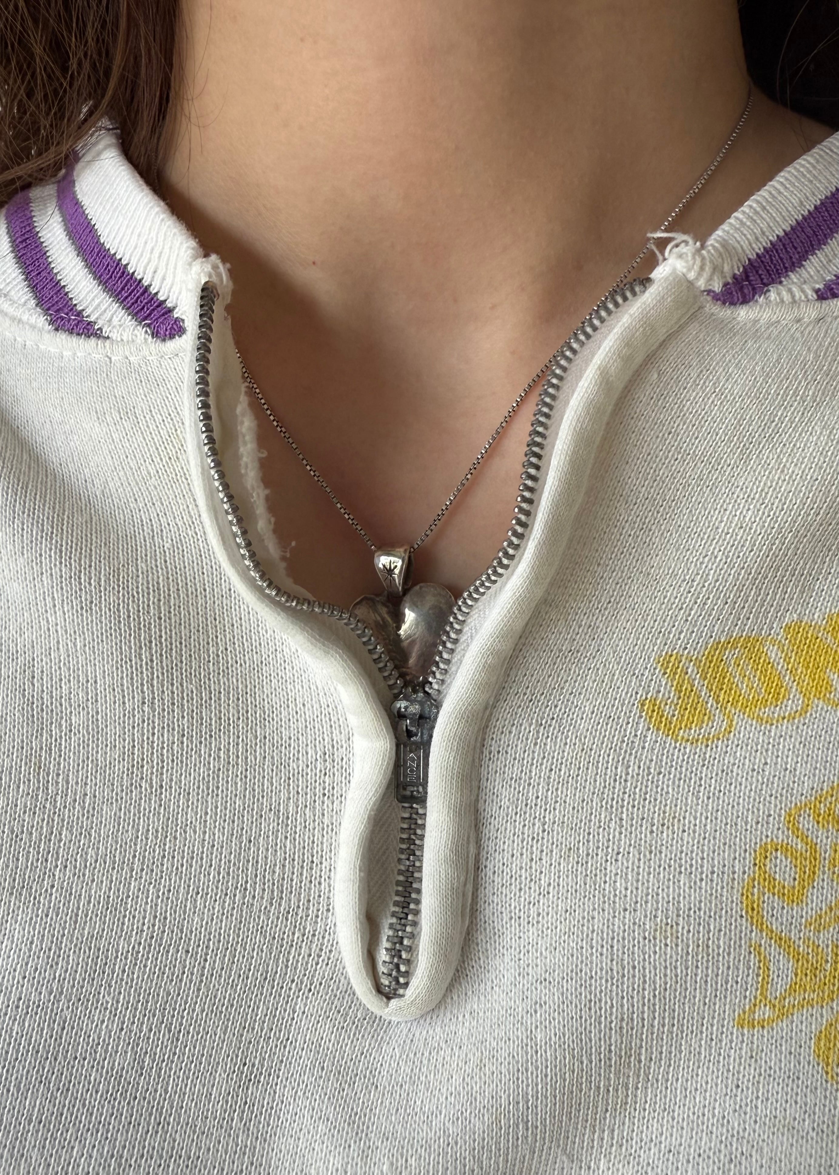 ジップの走りが短いため着用時に前のジップを開けるとなんだかシャツのボタンを開けて来ている時のような首周りシルエットになります。それが素敵。