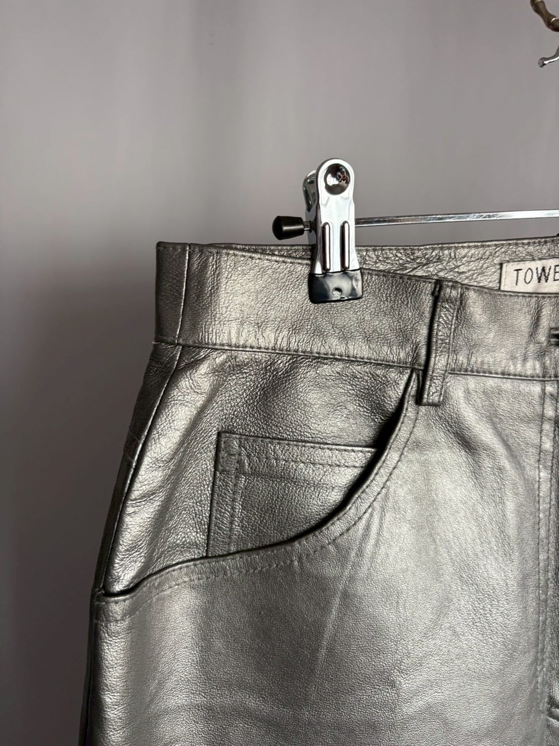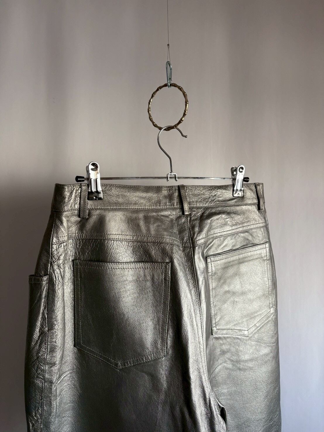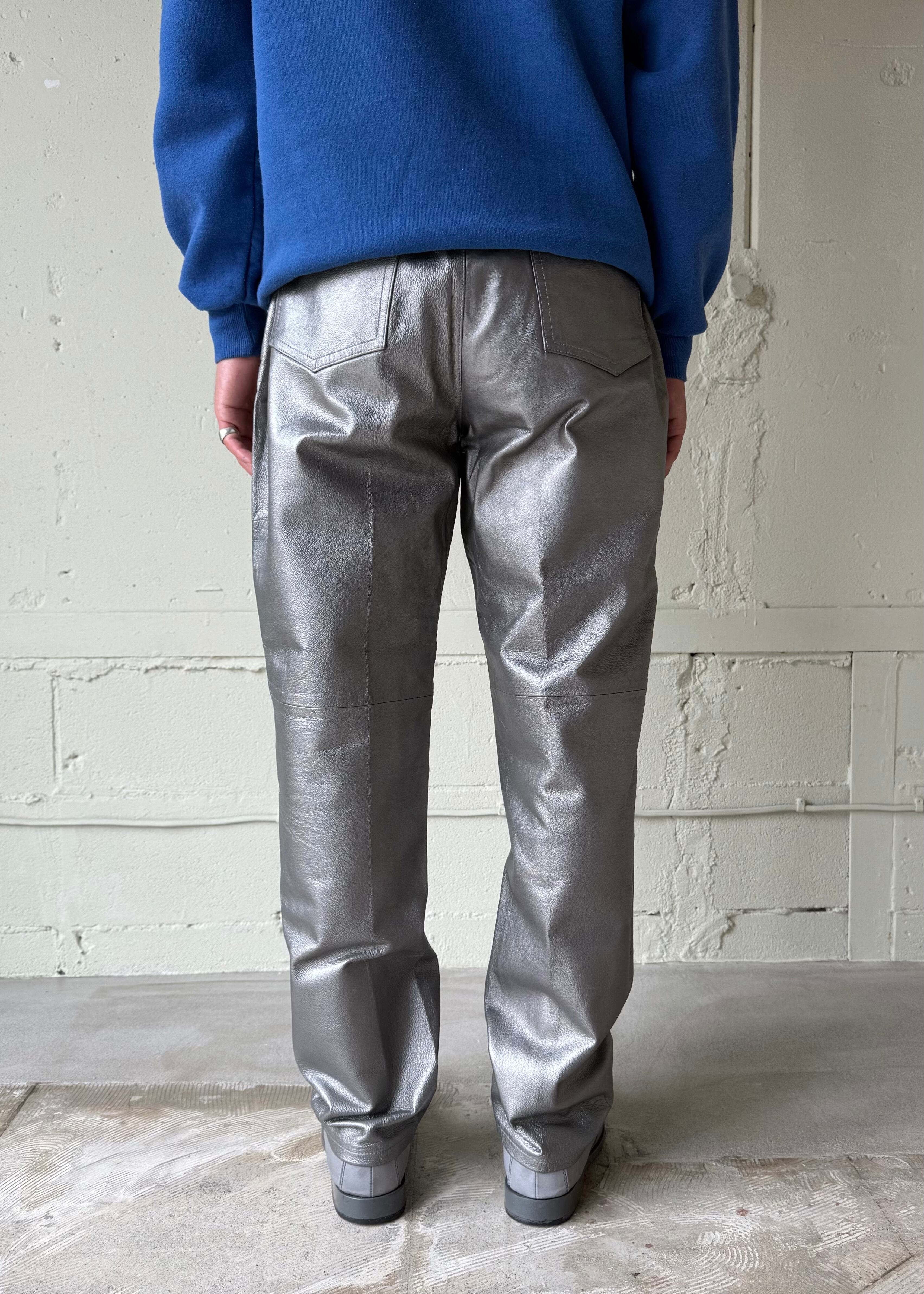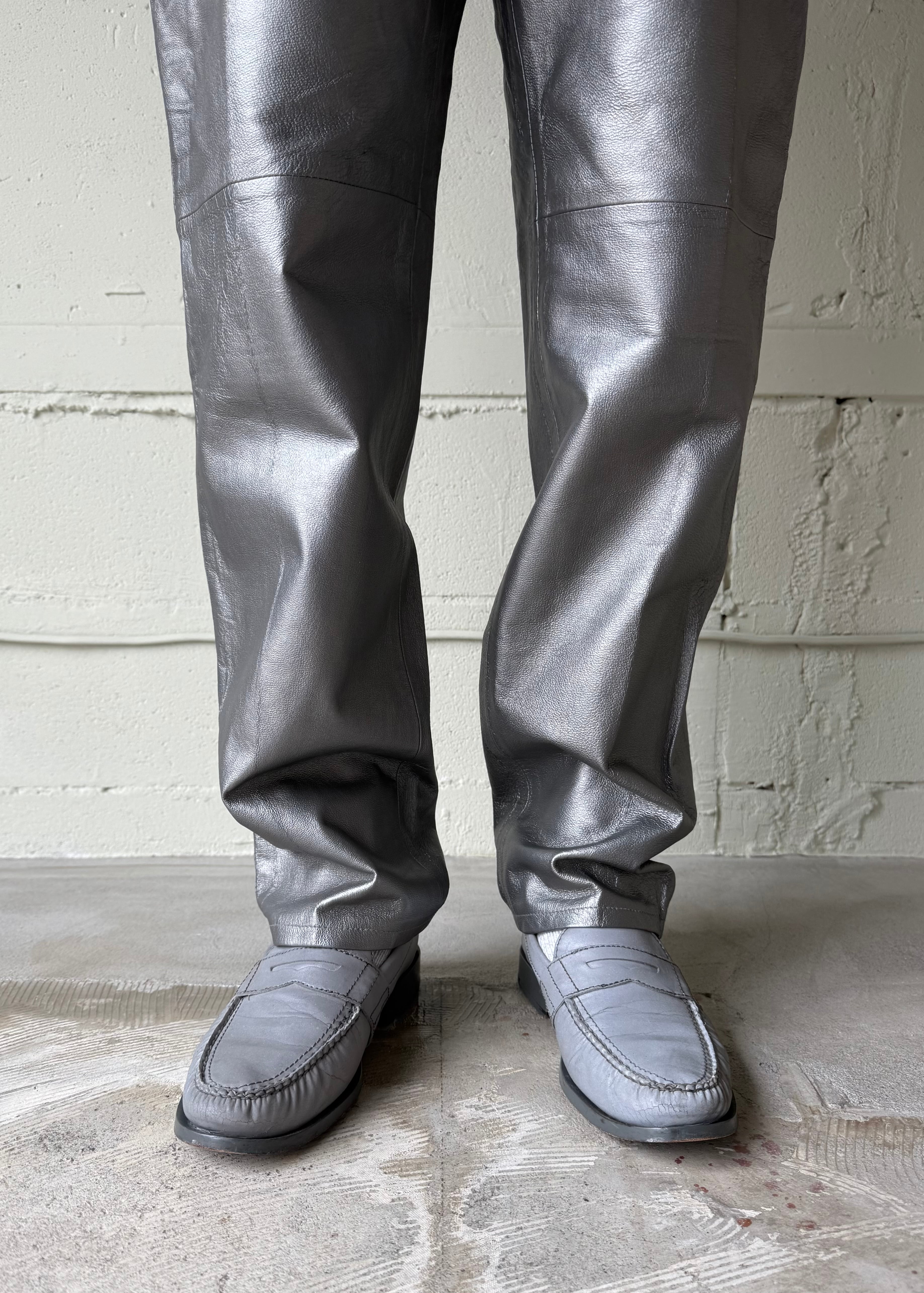 リラックスシルエットのレザーパンツ自体も多くないのですが,品のいいシルバーカラーです。