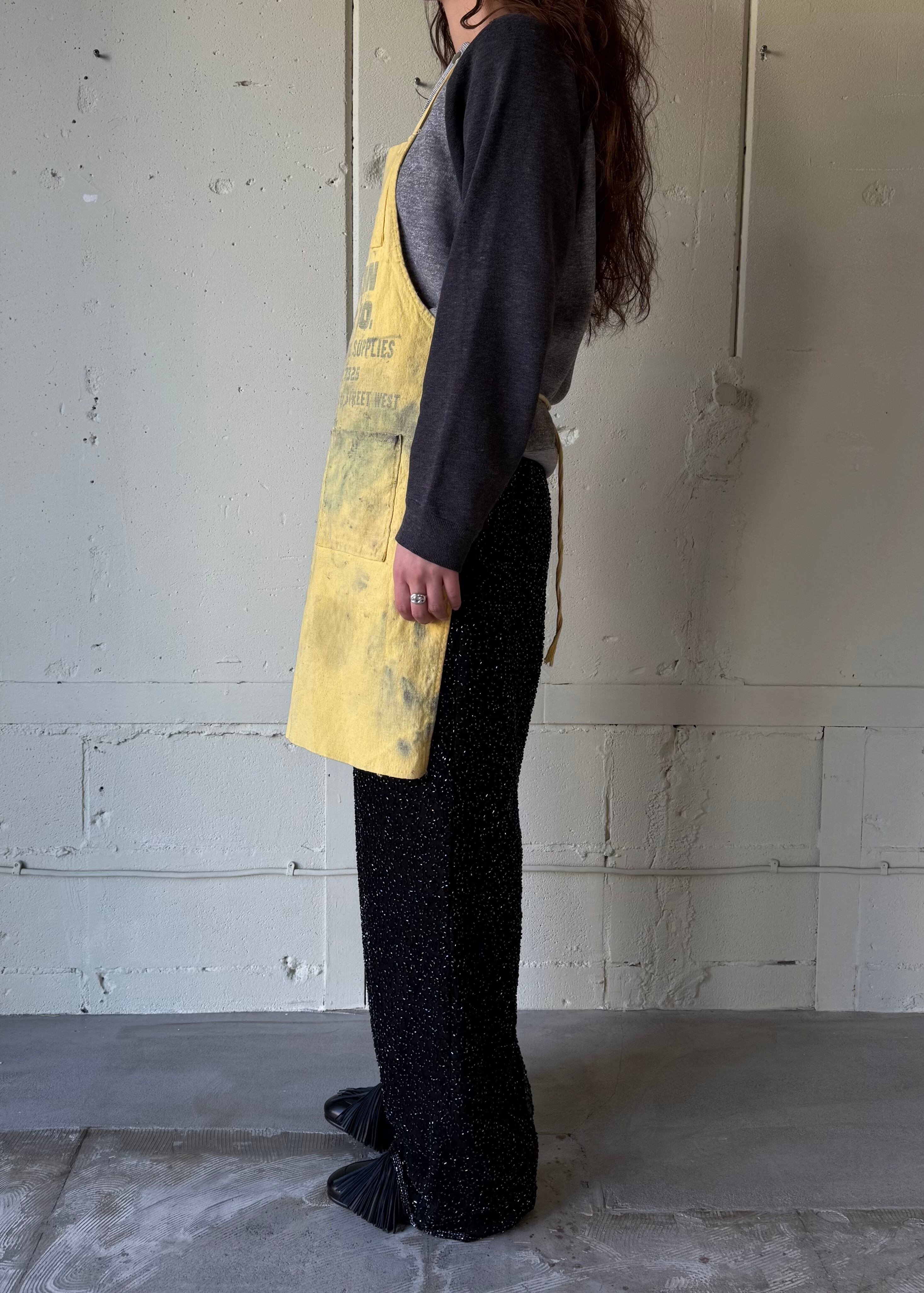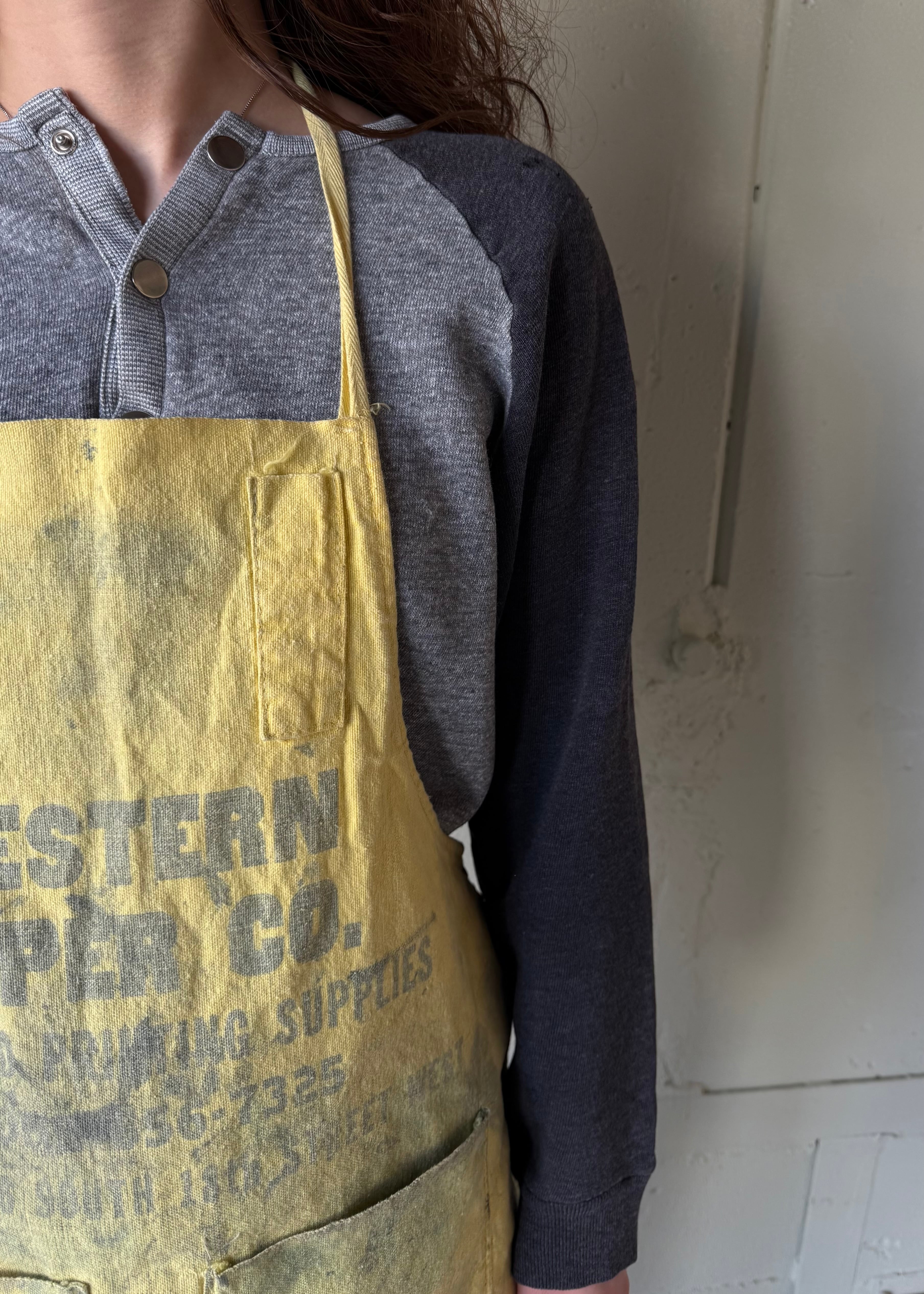 勿論エプロンとして使っていただいてもいいですし、ファッションの一部としてタックインしてみたり良いコートの中にちょこっと合わせてみたり、ニットの中に着てみたり、、色々試してみて欲しいですね。