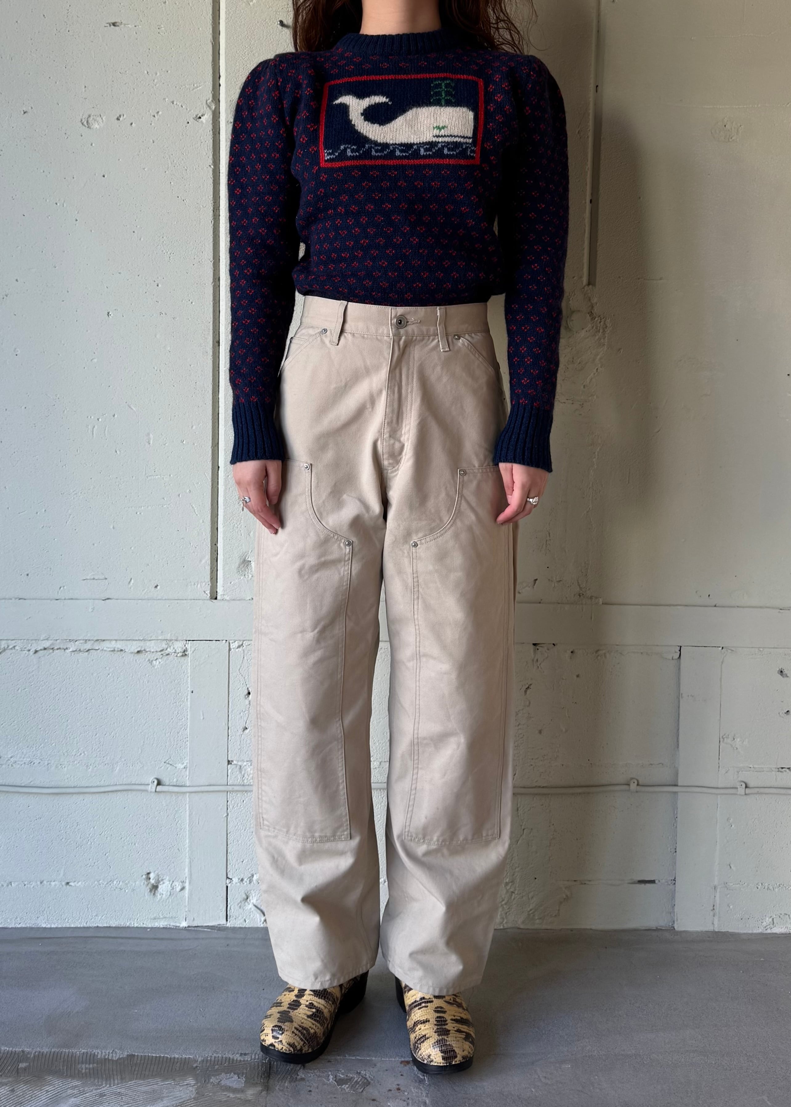 引き続きいかにも古着らしいセーターが気分な冬。綺麗なスラックスや男前なビンテージにこの位の気の抜けた、かつ違和感のあるセーターいかがでしょうか?