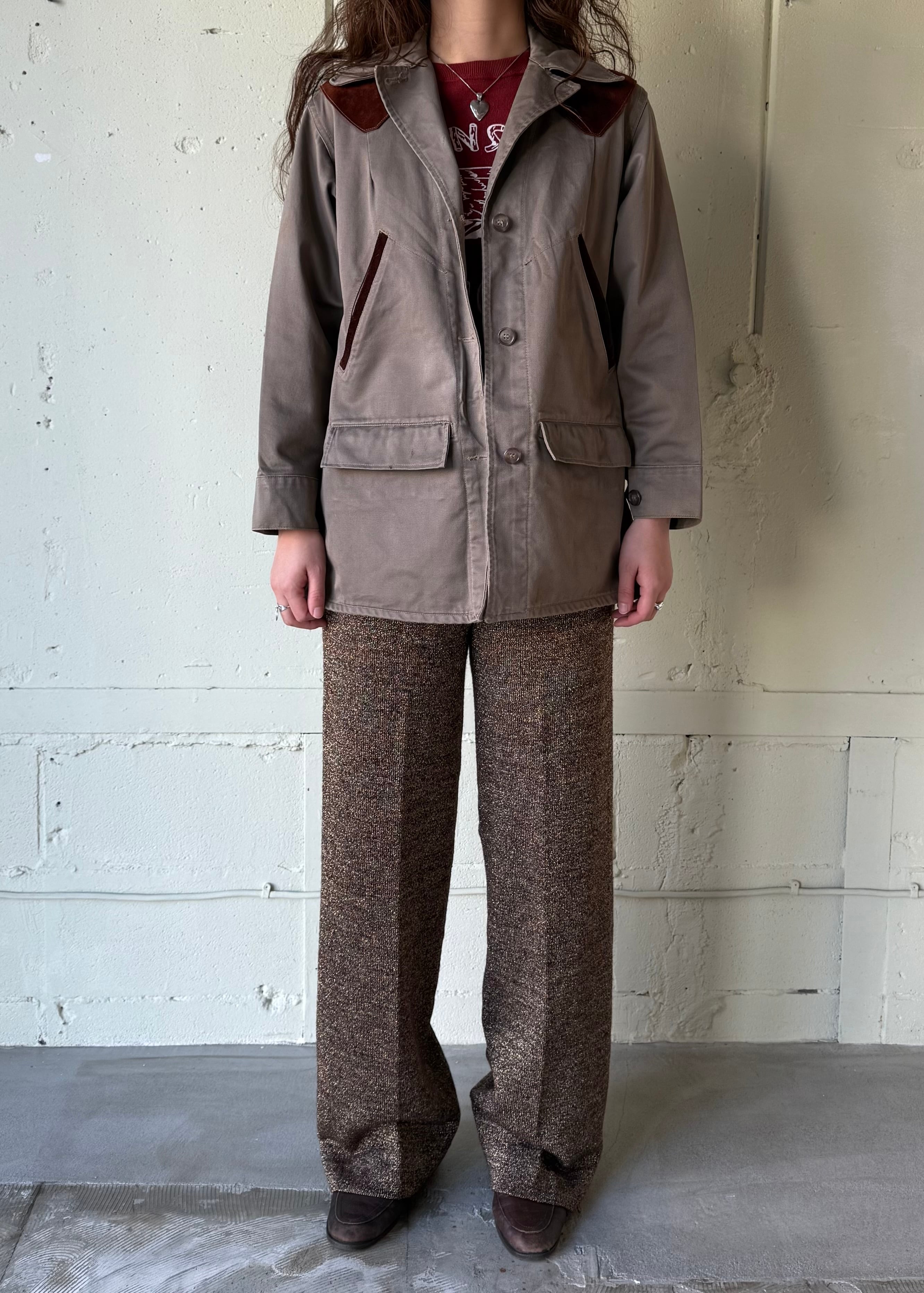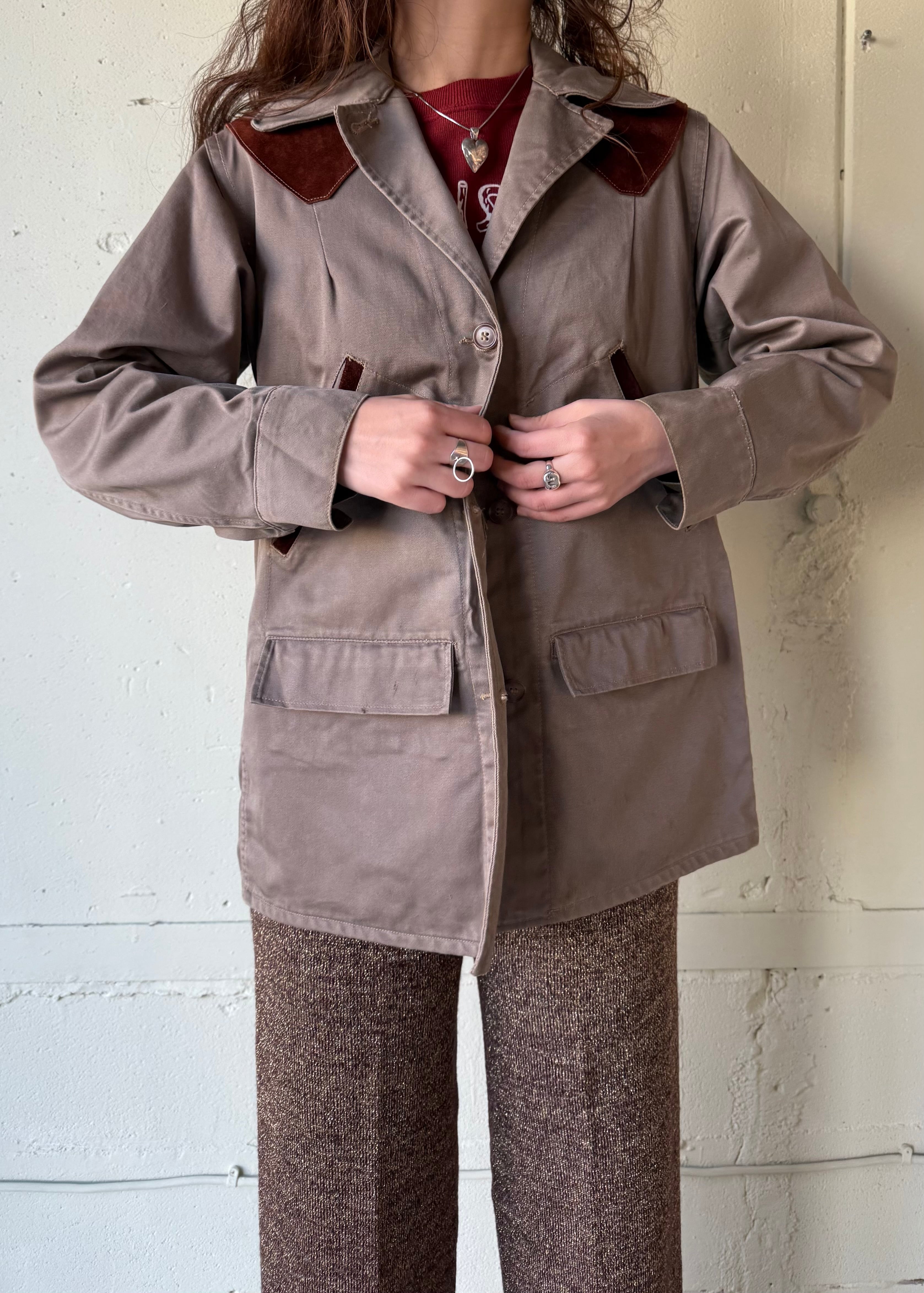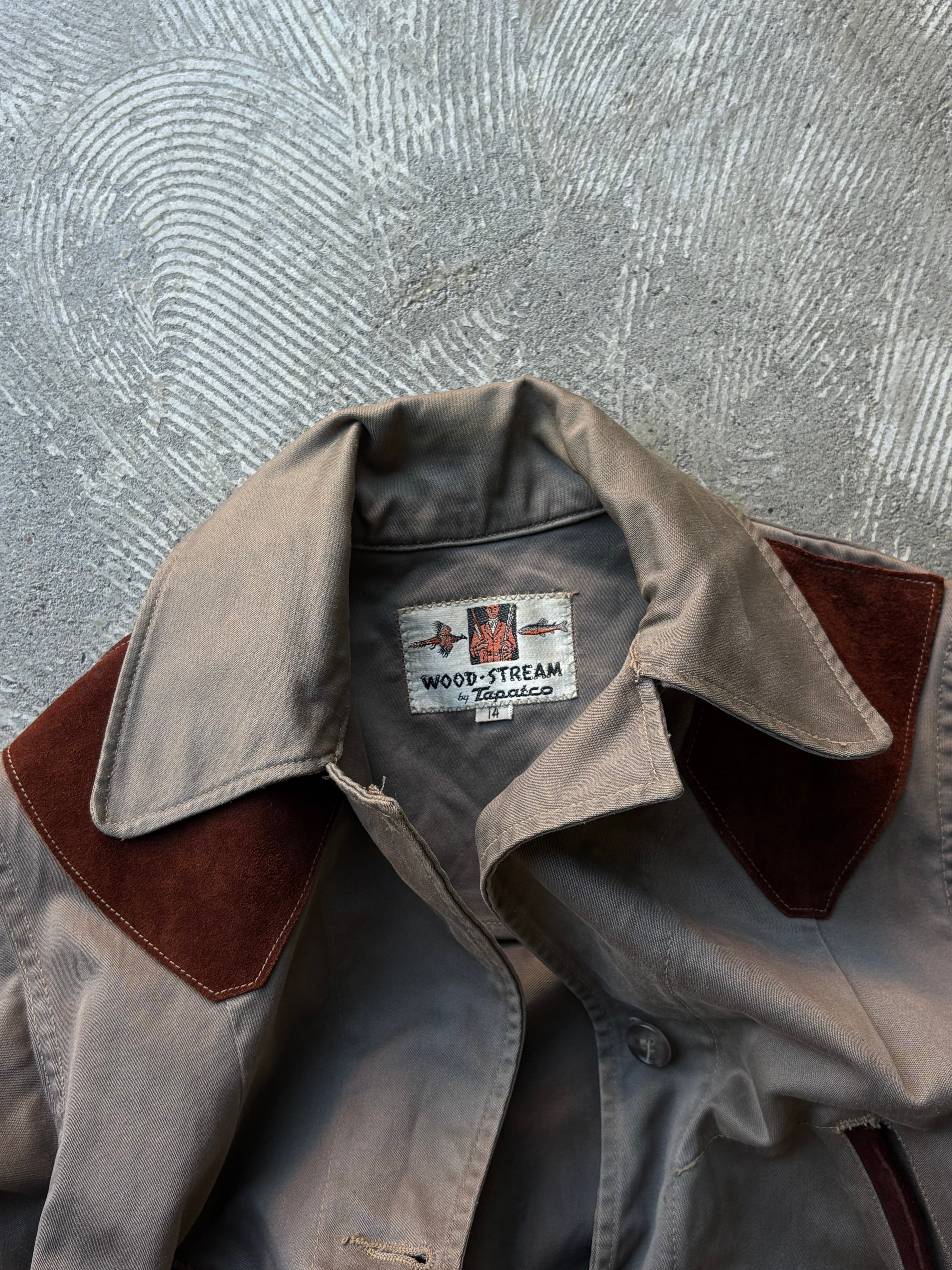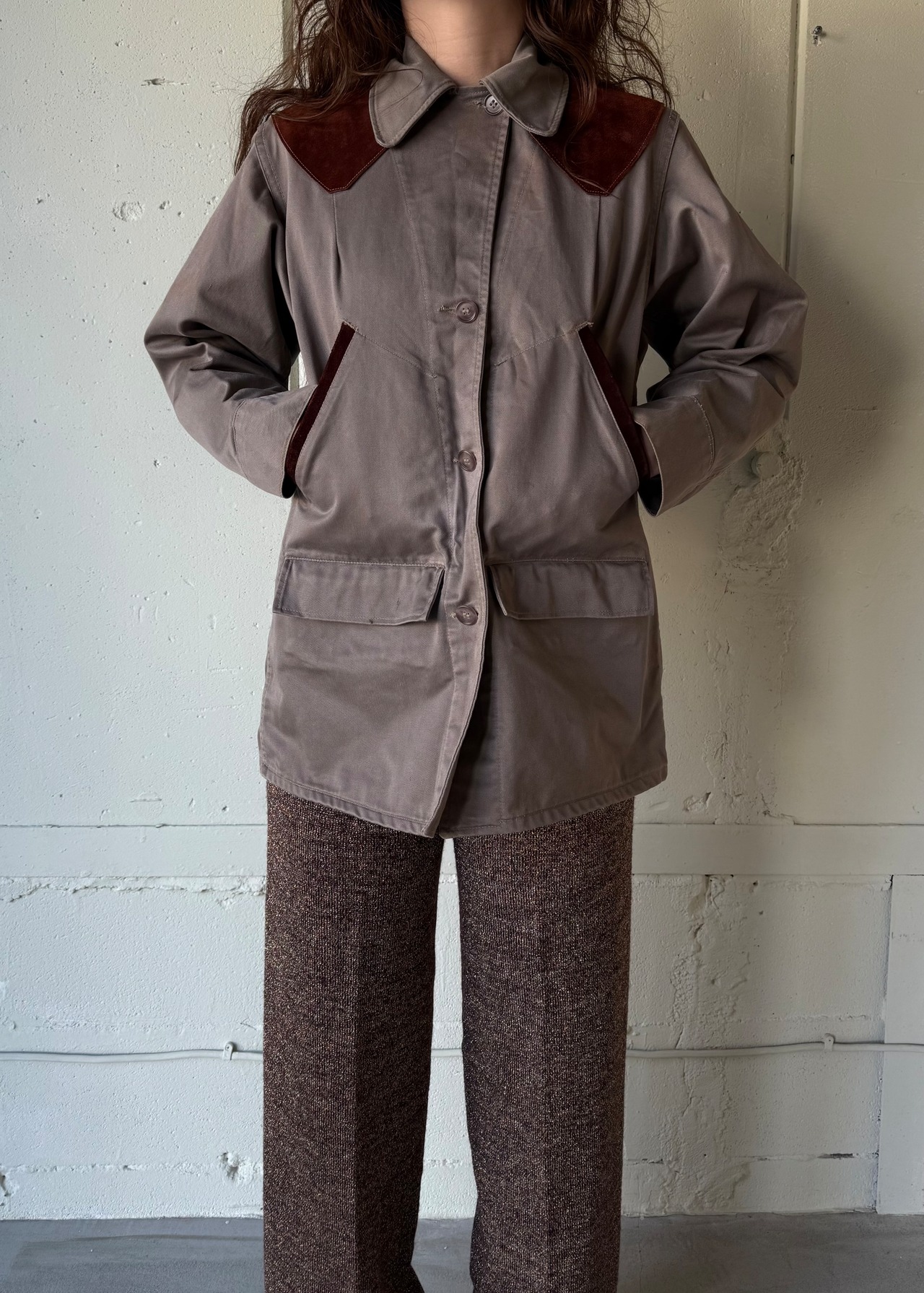 肩当てのスウェードレザーやスラッシュ型でついているバンドポケットなど。ハンサムなイメージのハンティングウェアですがそこに矛盾する様なコンパクトなサイズ感や可愛らしさがたまりません。