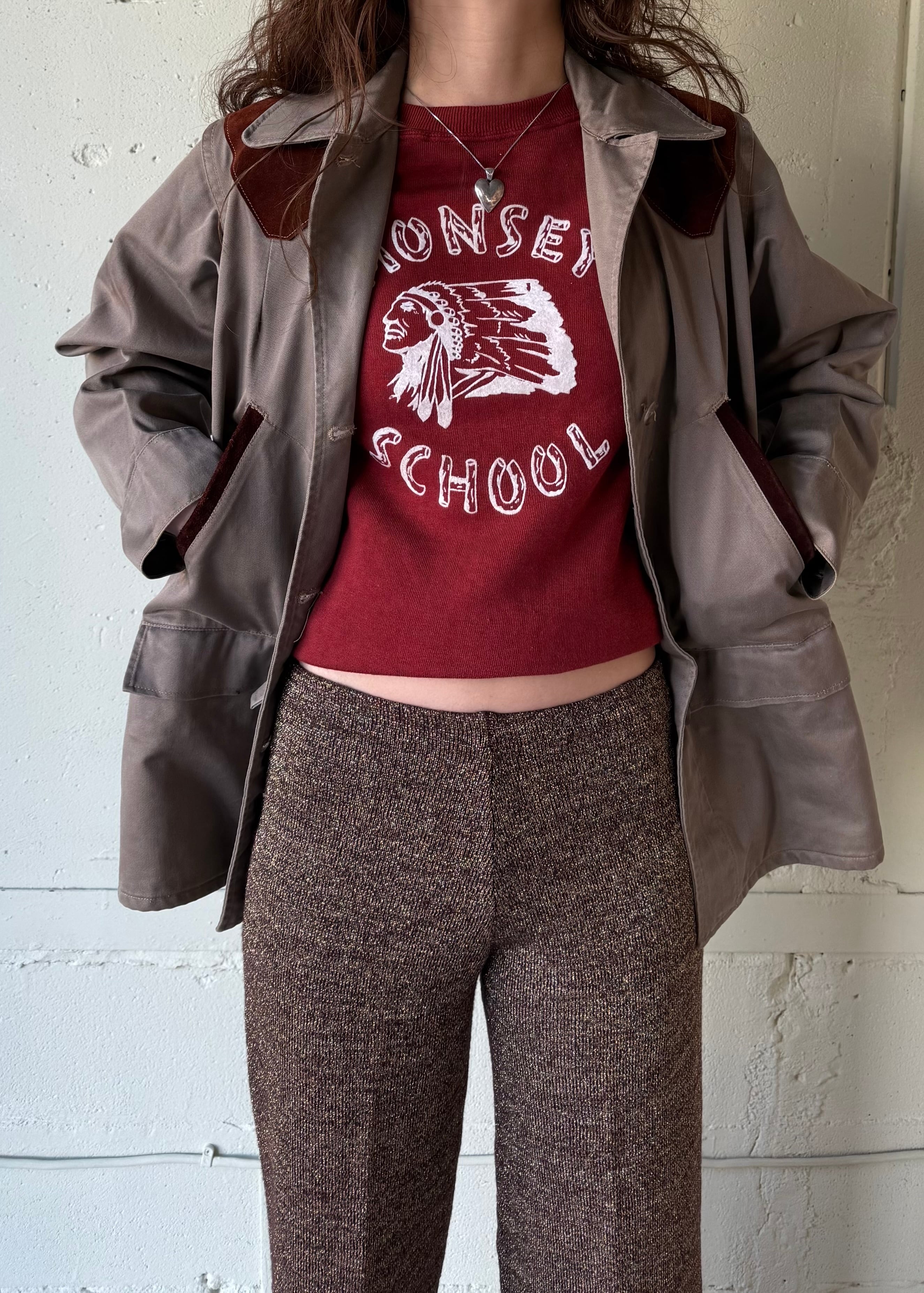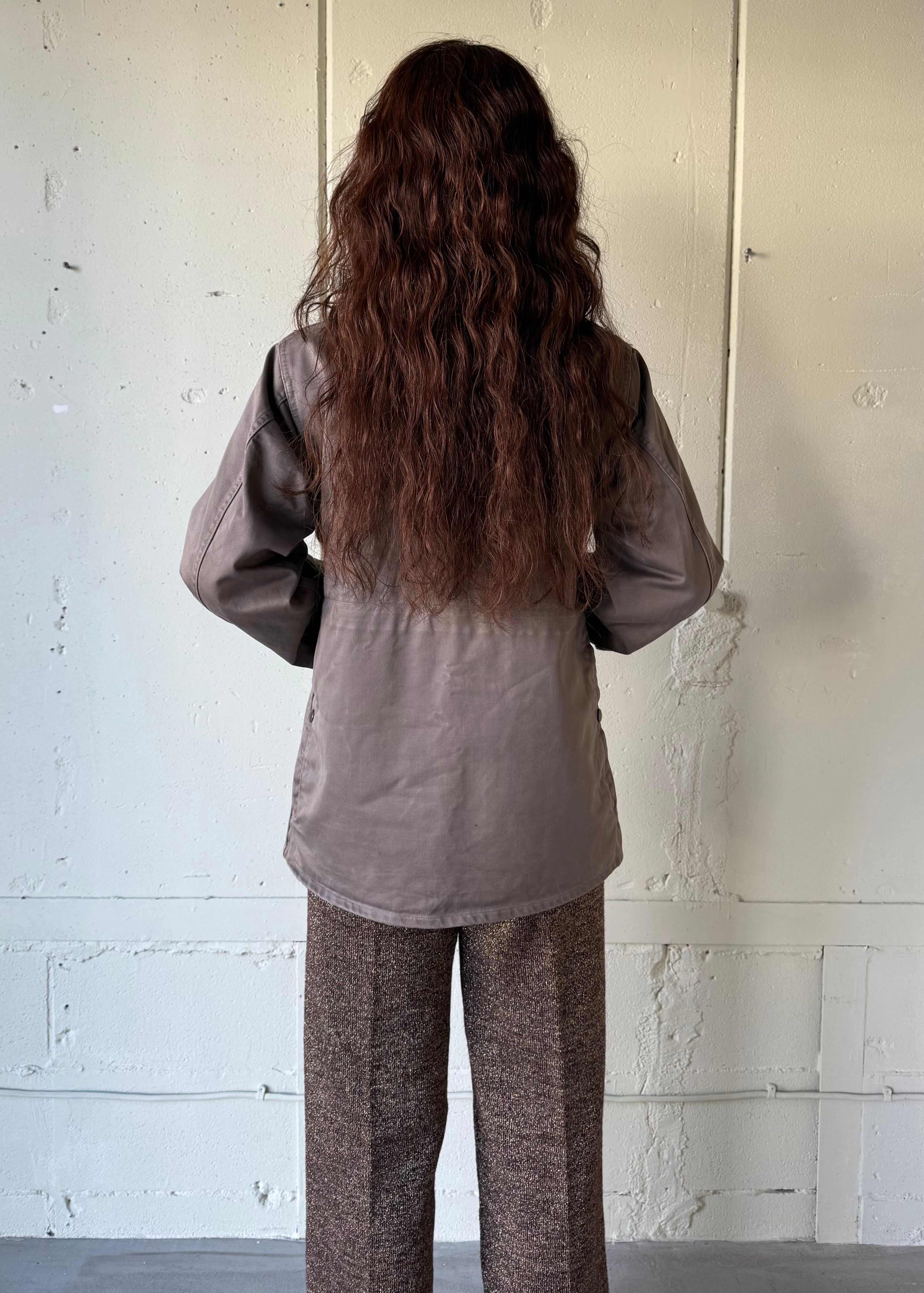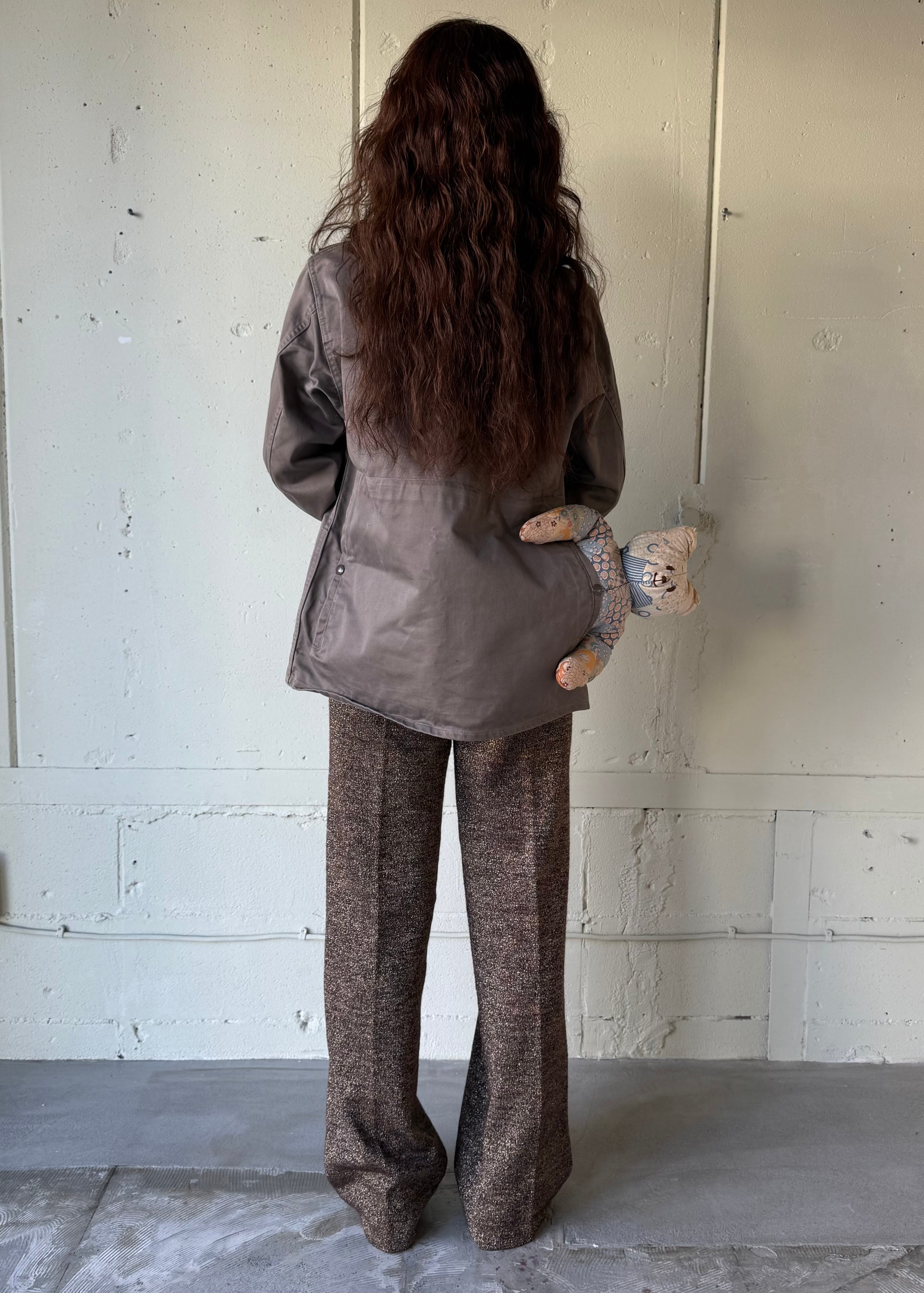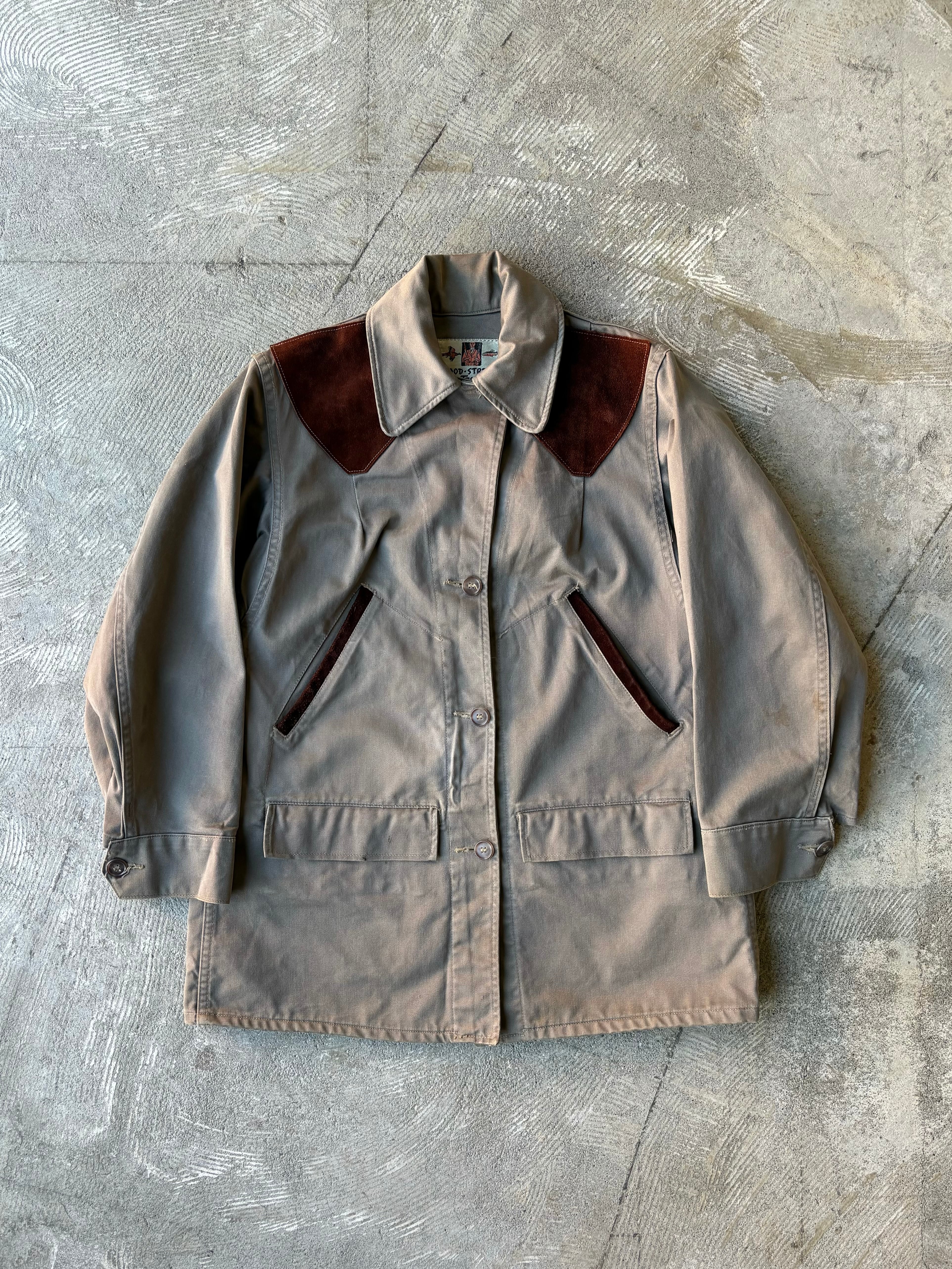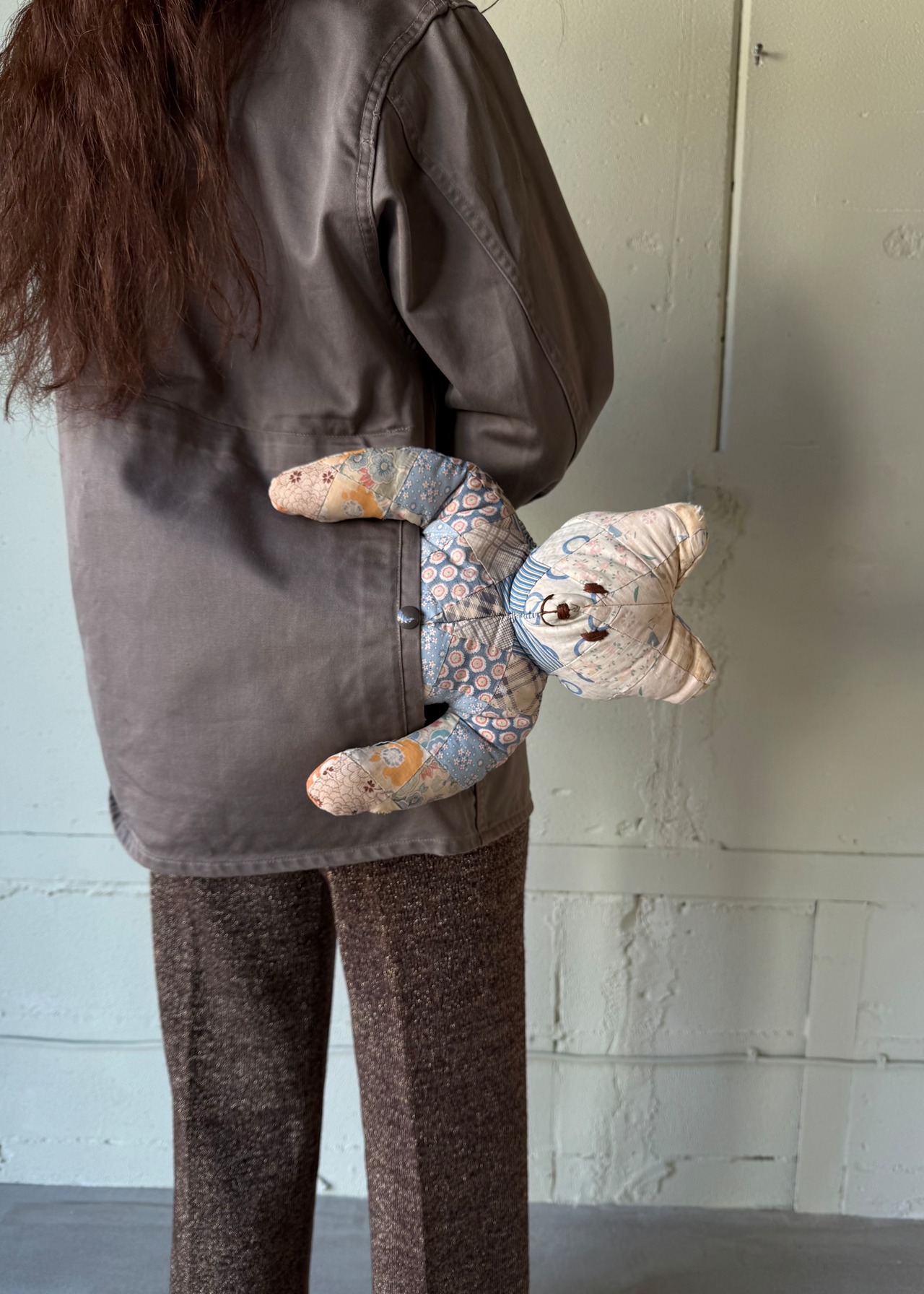 肩当てのスウェードレザーやスラッシュ型でついているバンドポケットなど。ハンサムなイメージのハンティングウェアですがそこに矛盾する様なコンパクトなサイズ感や可愛らしさがたまりません。