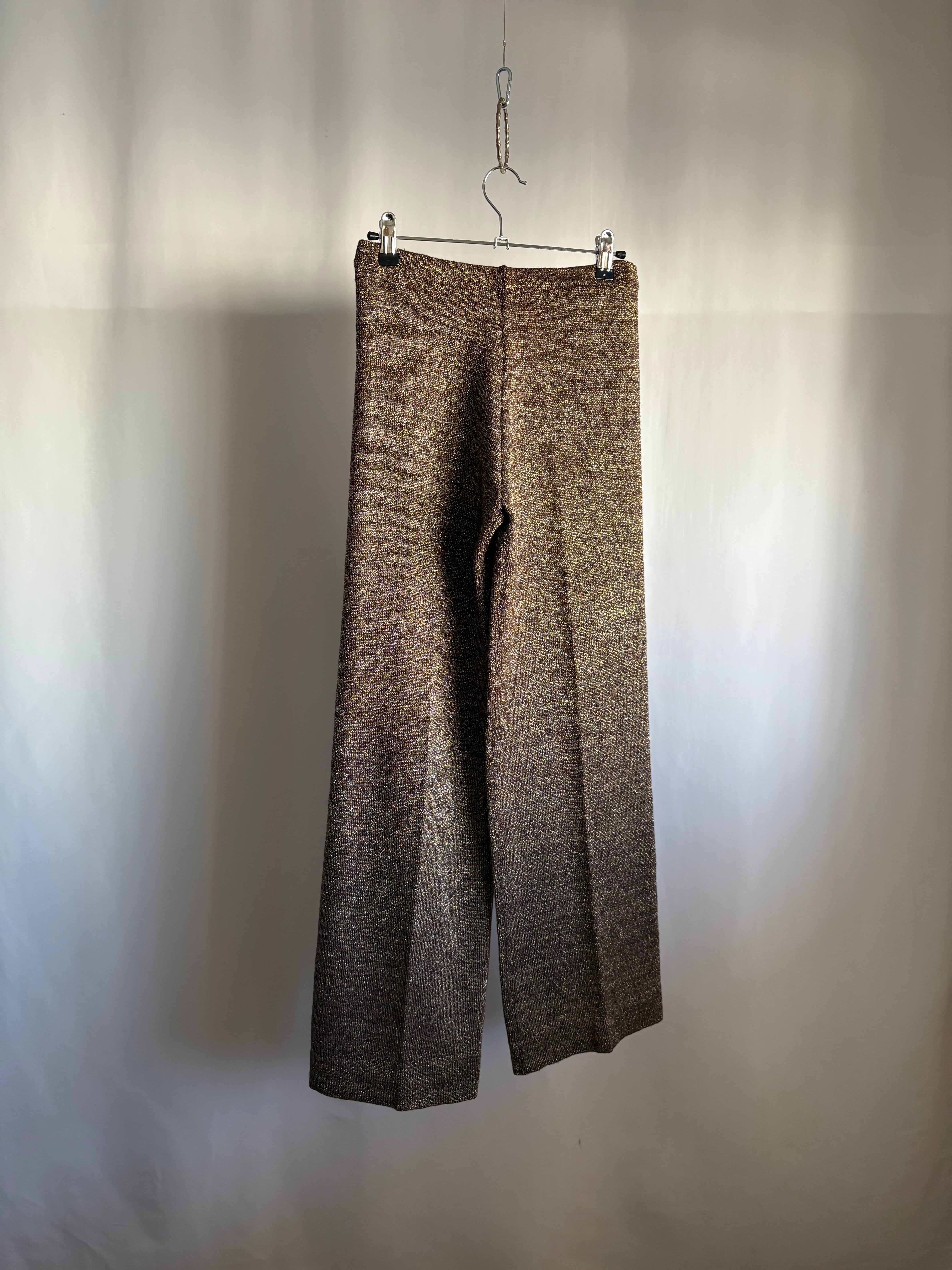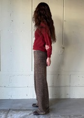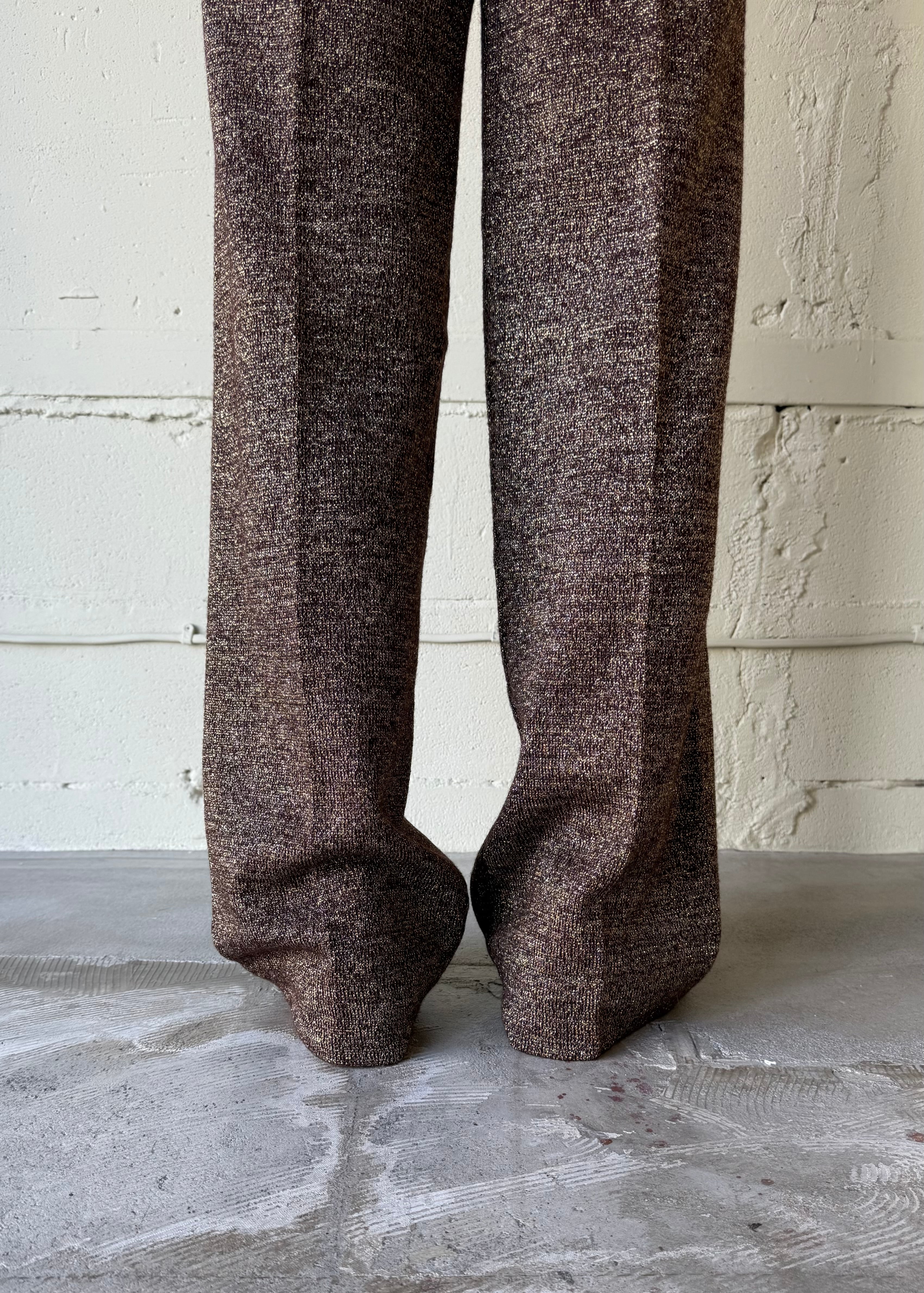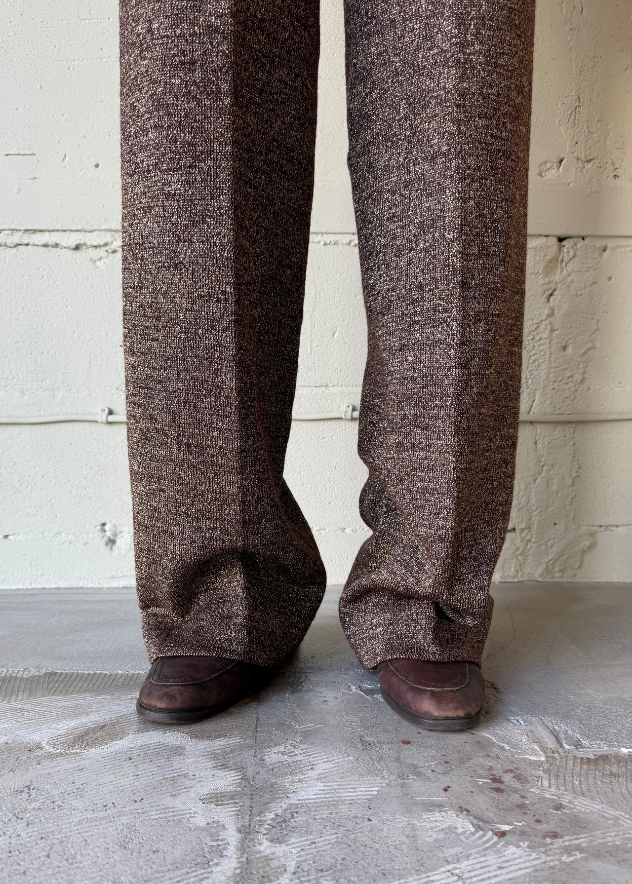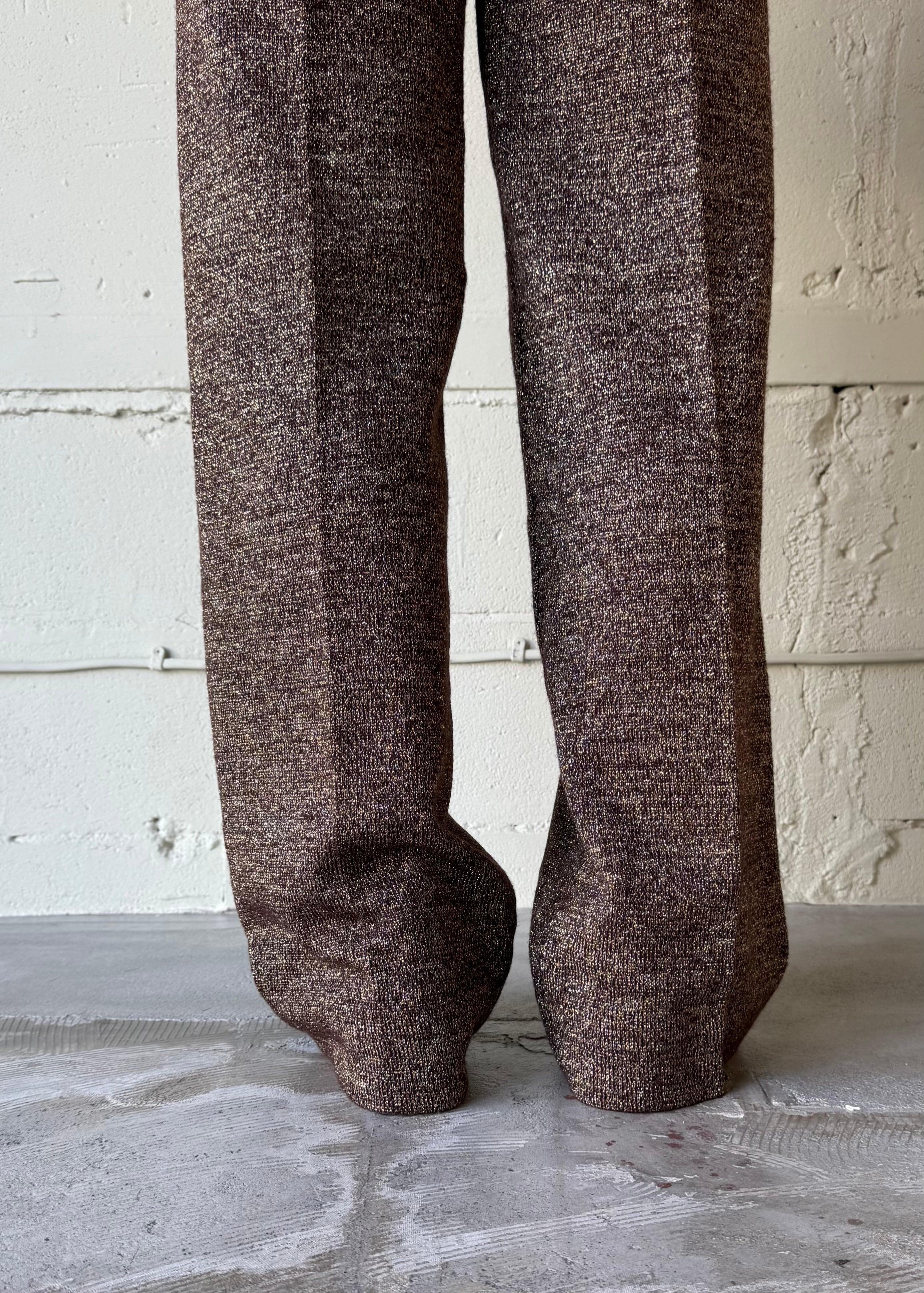 メタリック糸混ぜ込みのニットパンツです。とても綺麗なシルエット。足元の弛みの具合がとても好き。