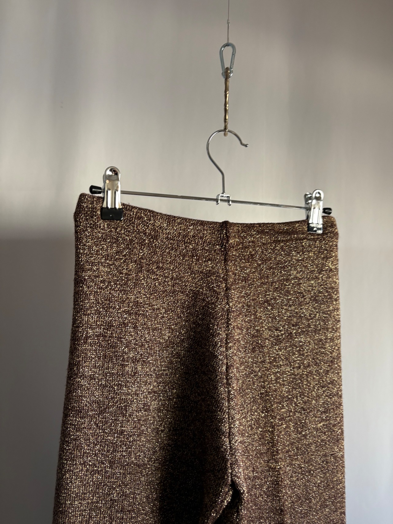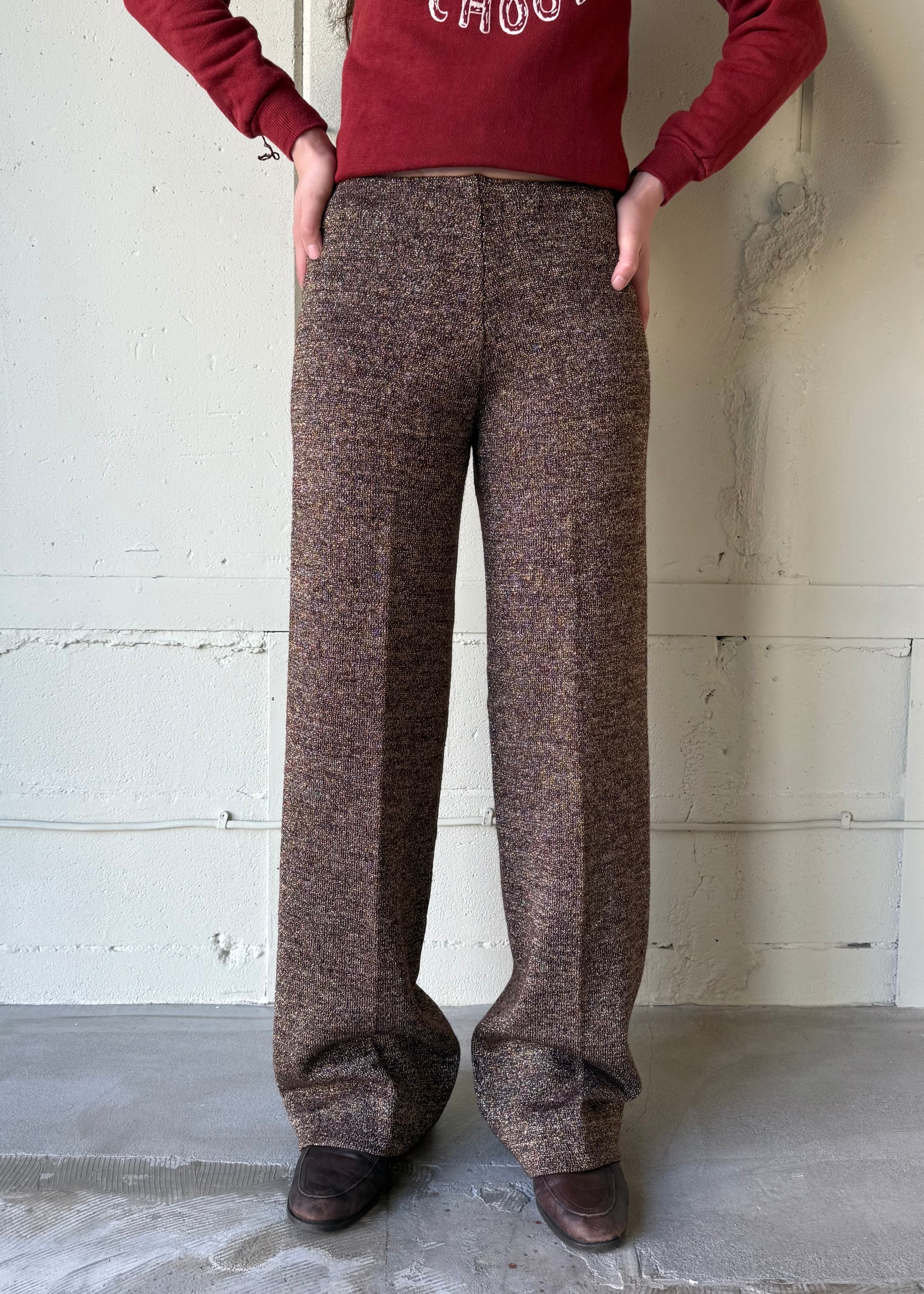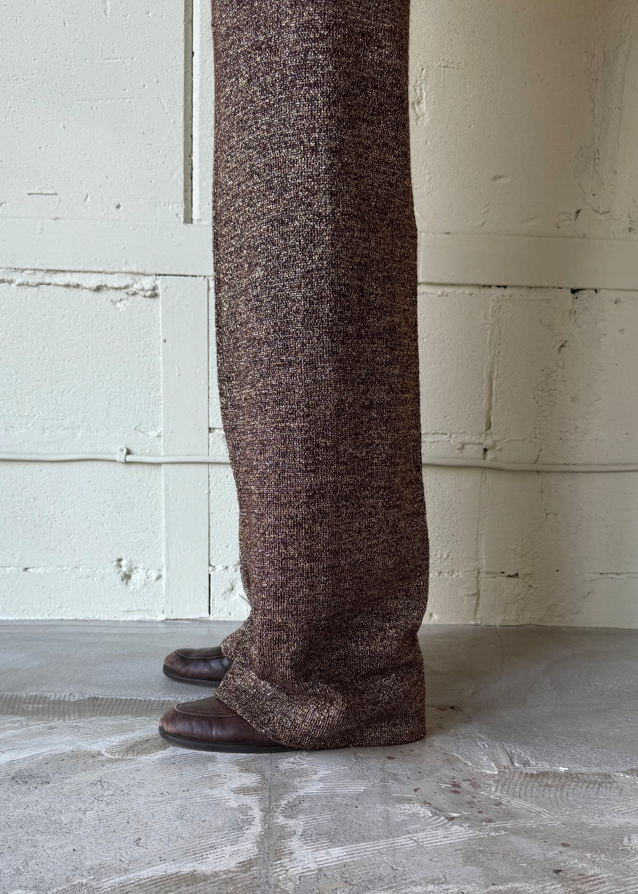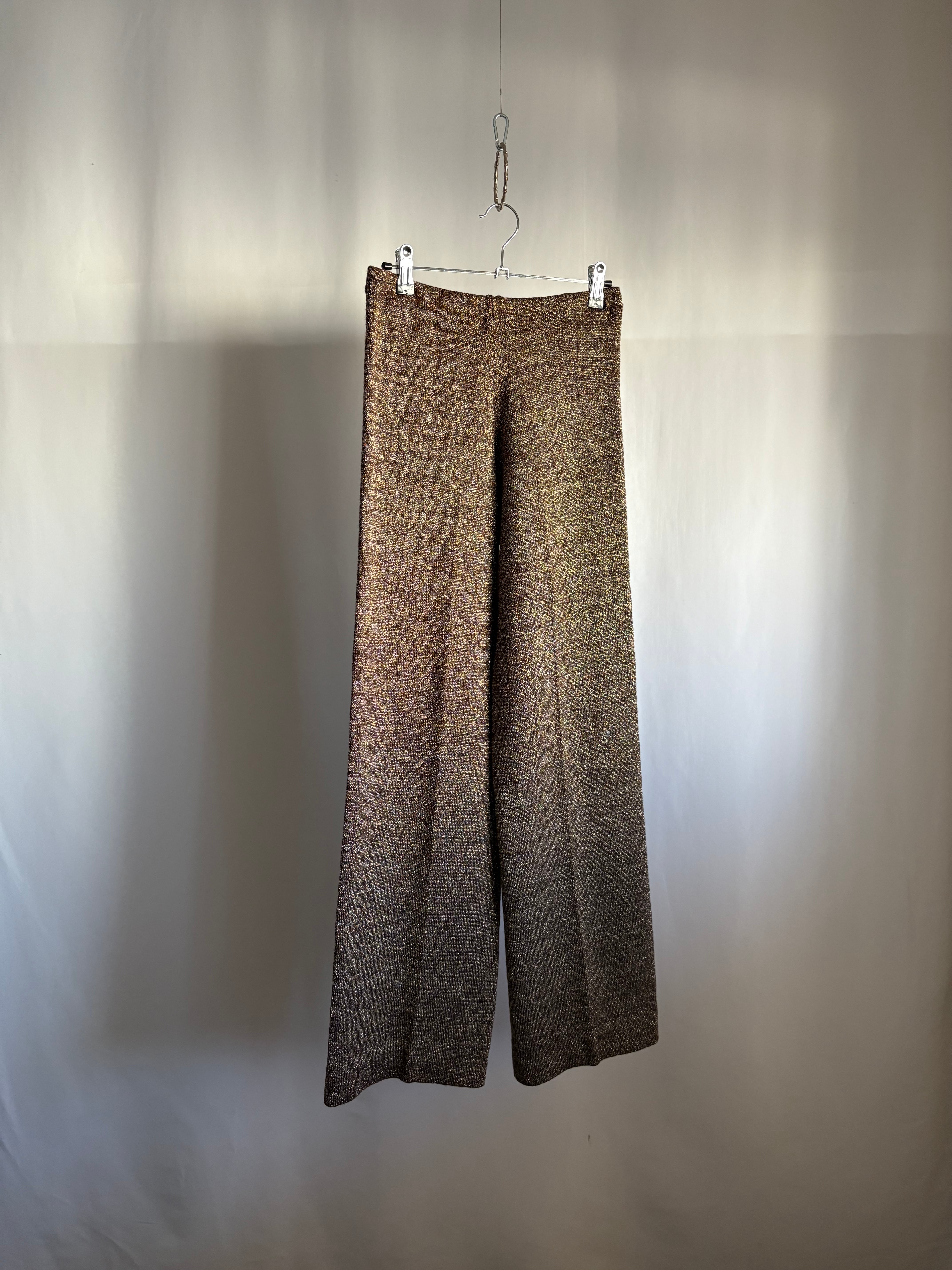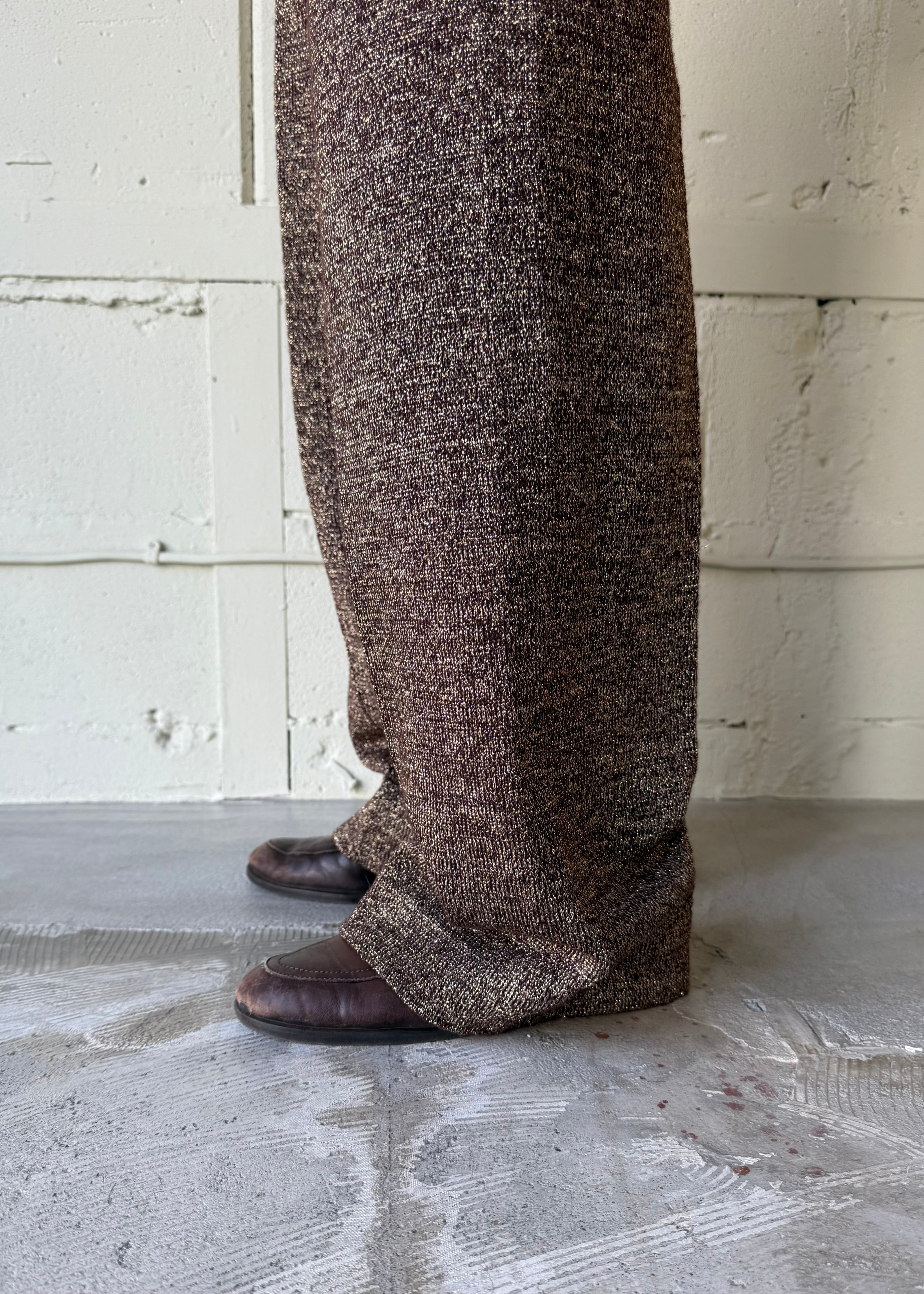メタリック糸混ぜ込みのニットパンツです。とても綺麗なシルエット。足元の弛みの具合がとても好き。