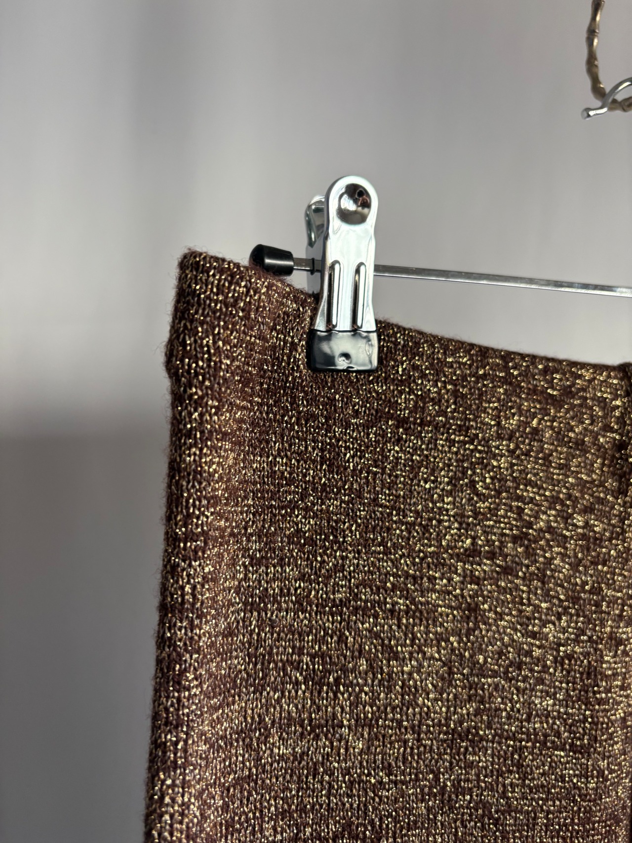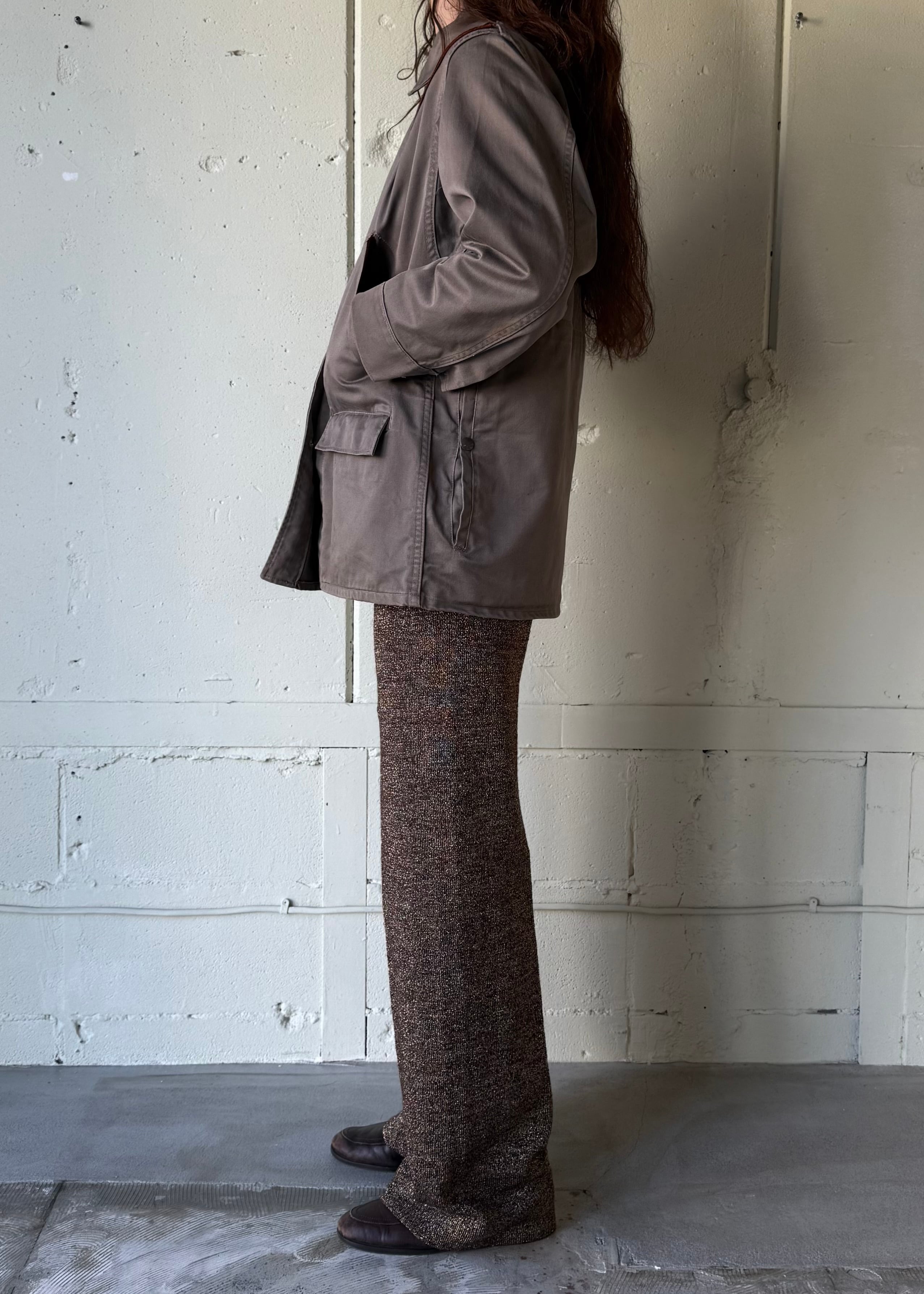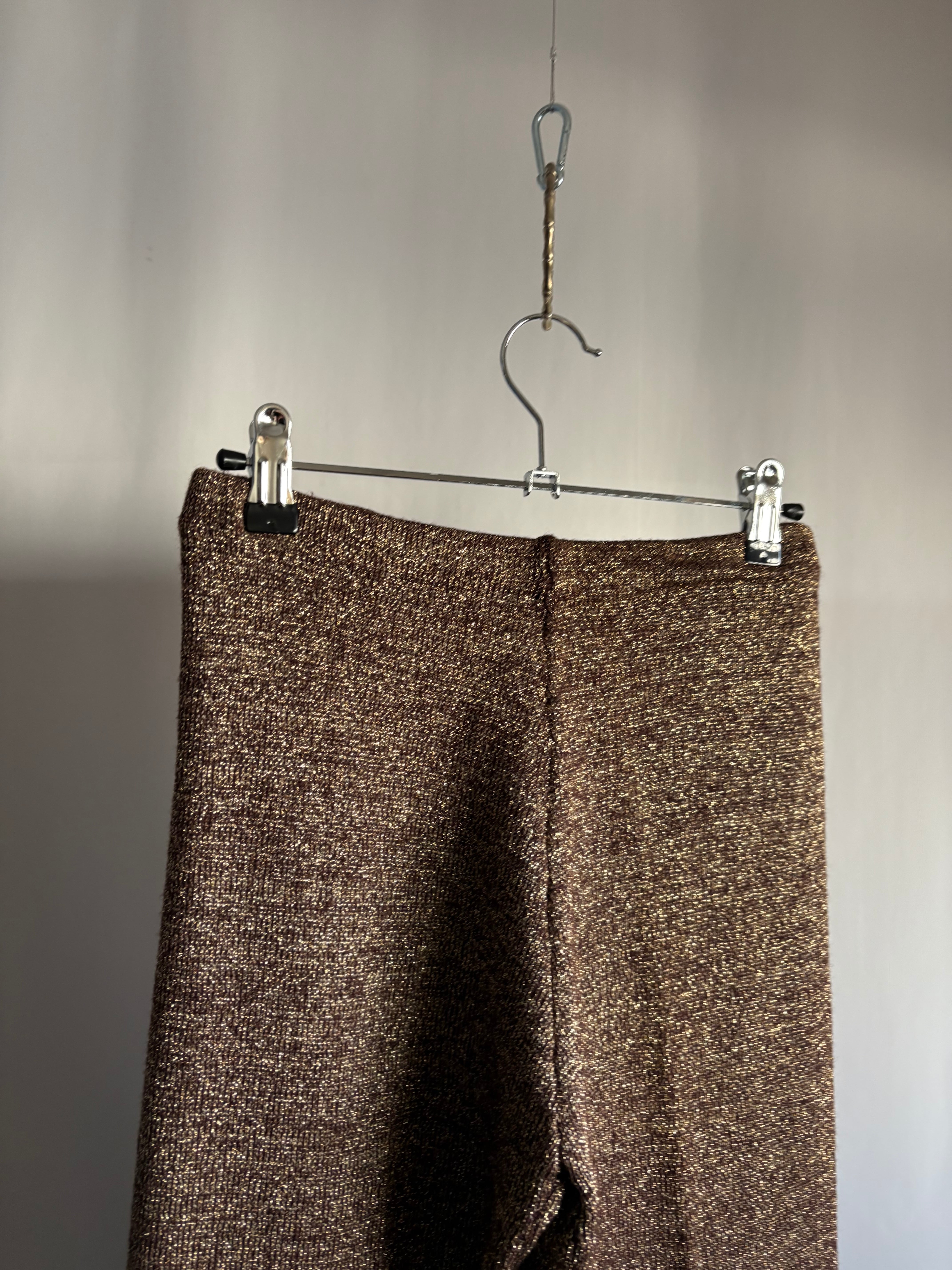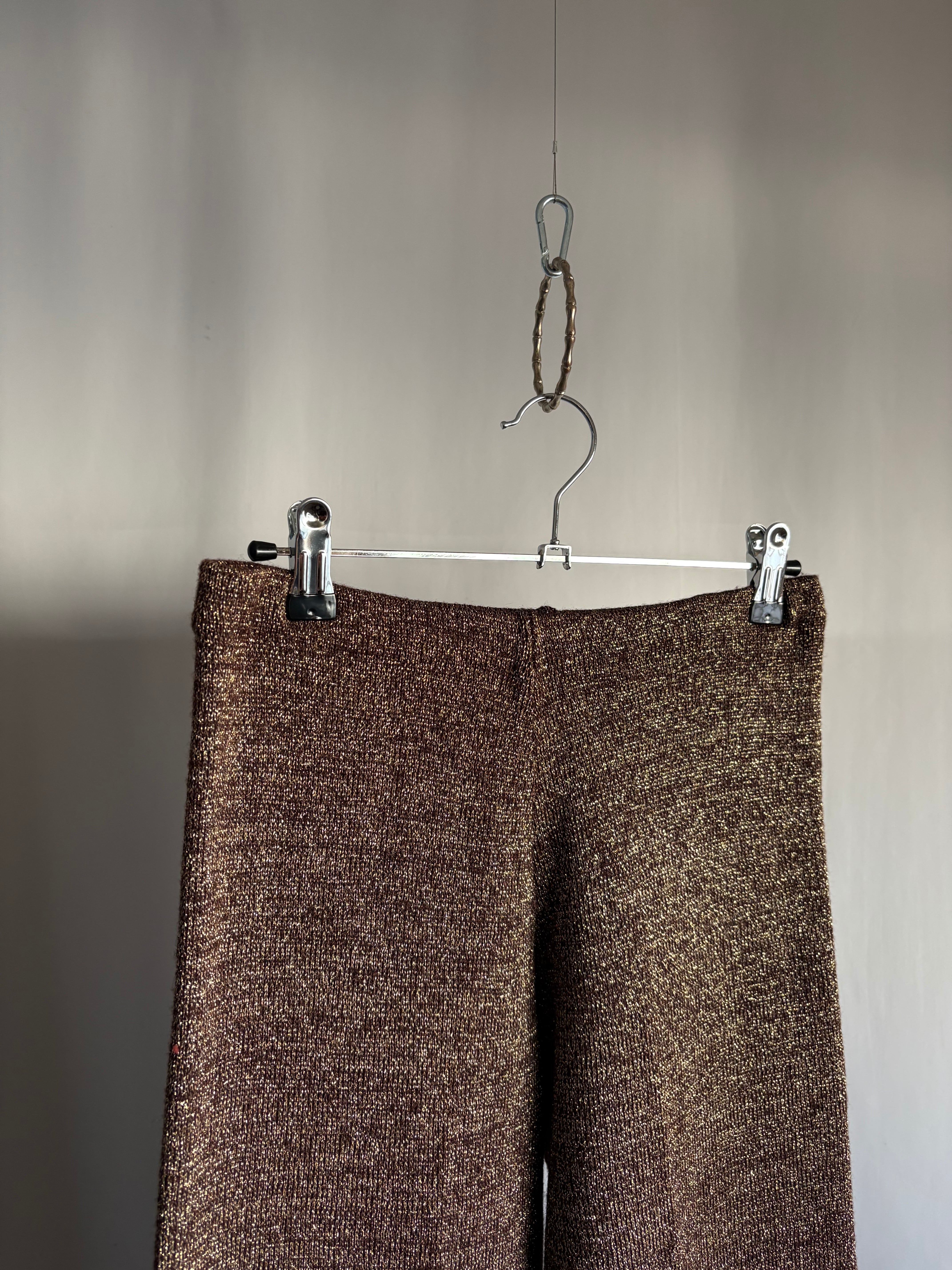 メタリック糸混ぜ込みのニットパンツです。とても綺麗なシルエット。足元の弛みの具合がとても好き。