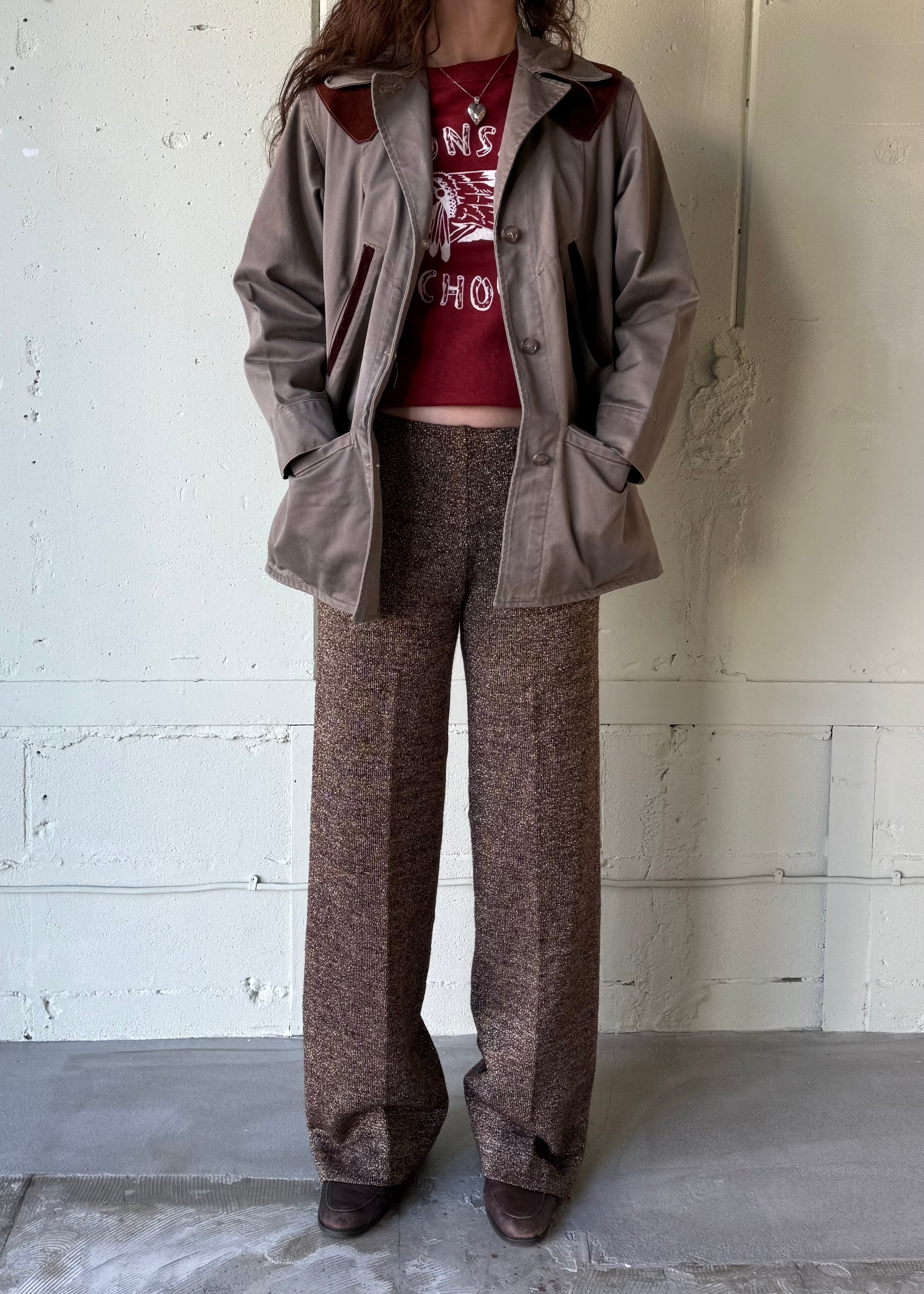トップスに合わせているのがどちらも濃いめのアメリカ古着なのですがそれでも何処か落ち着き、品の良さを感じられる、はず。