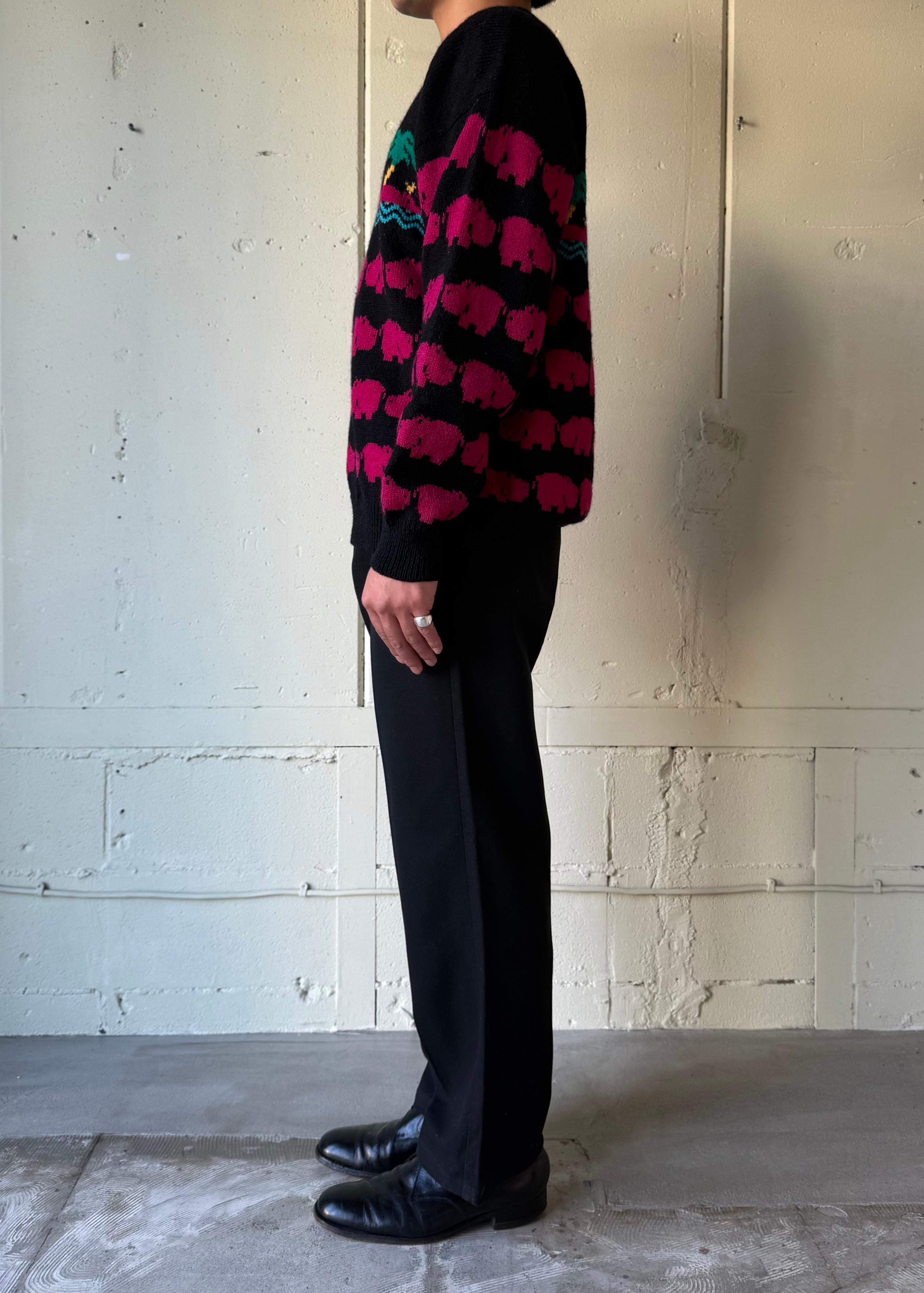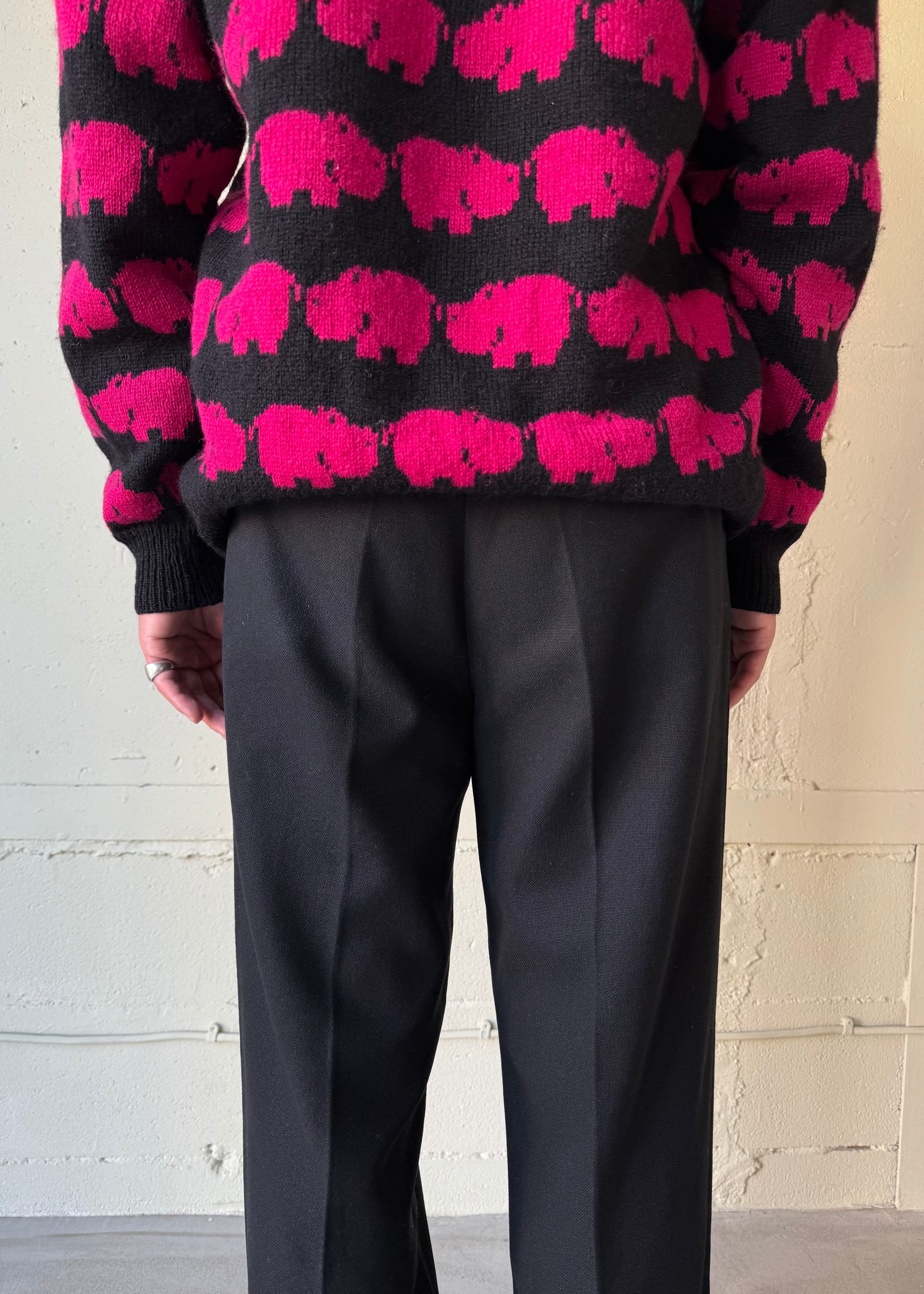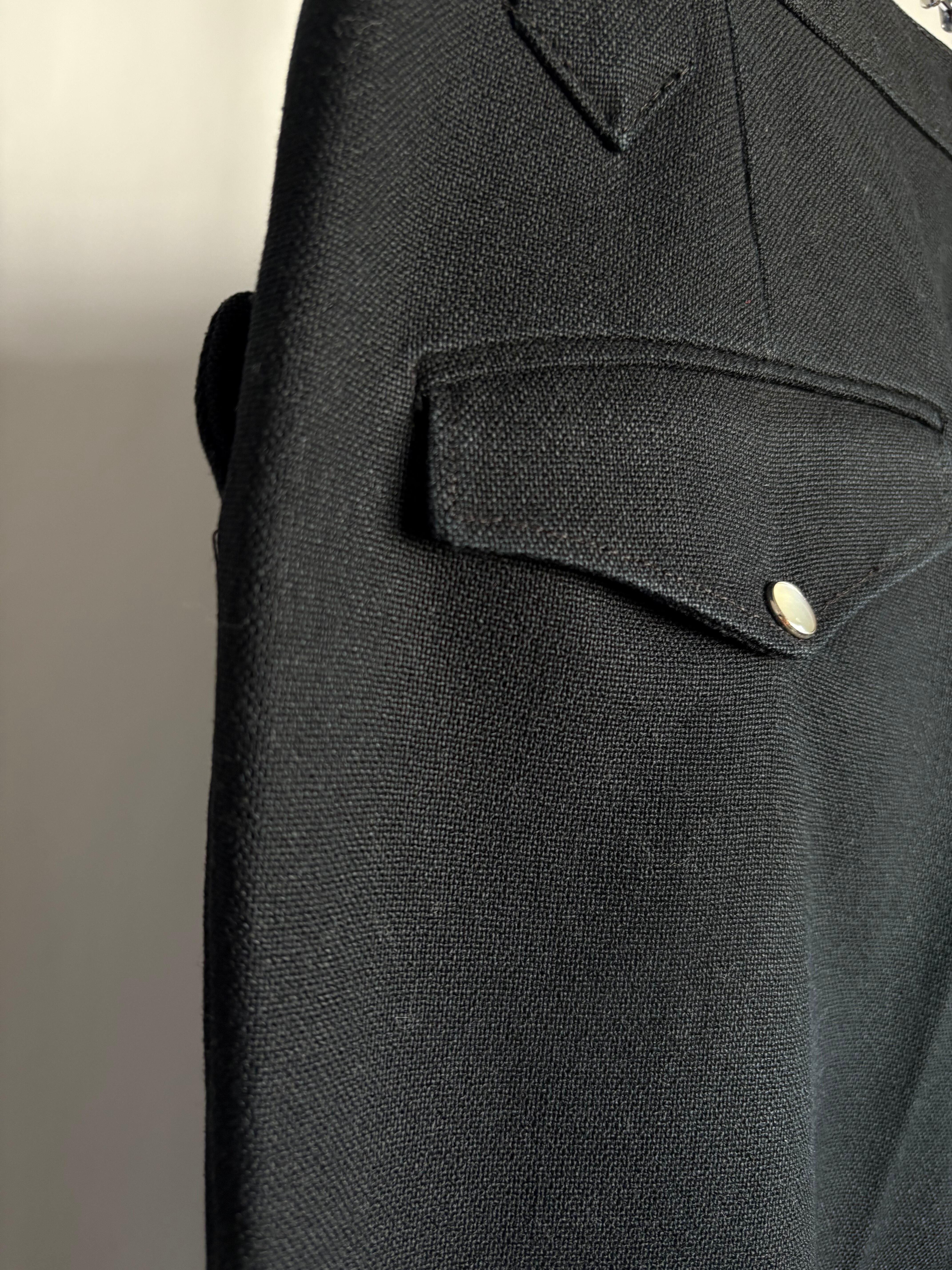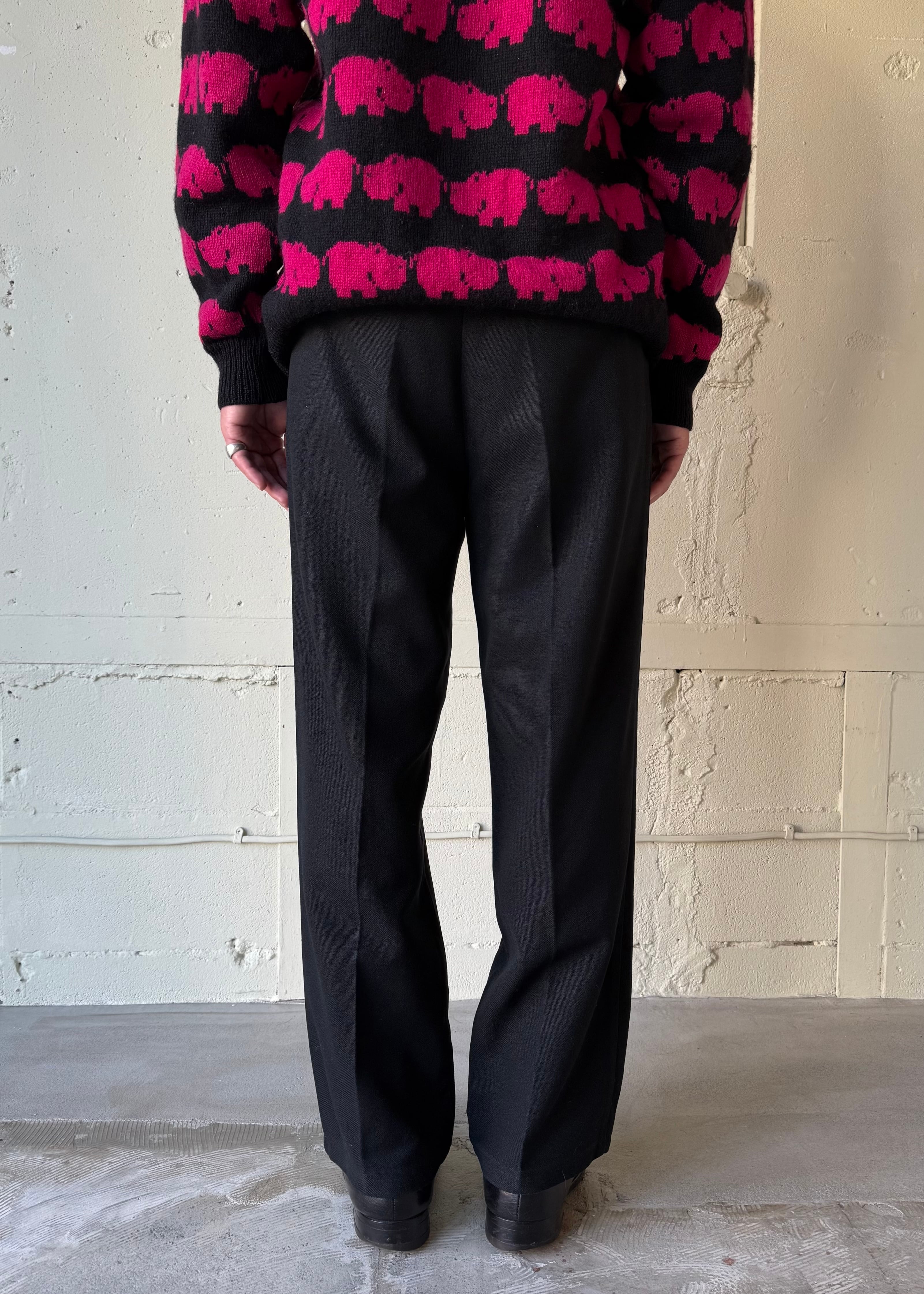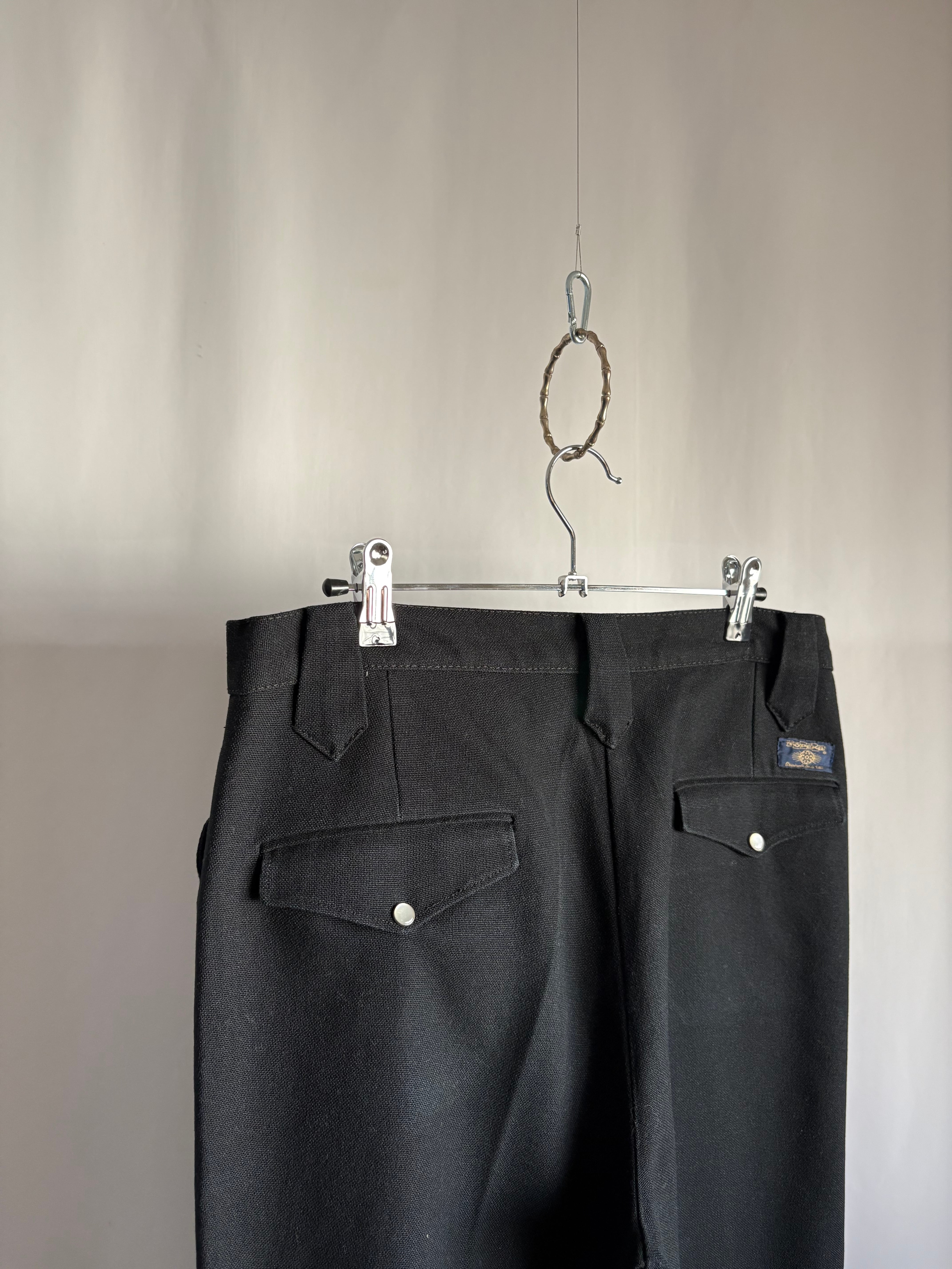 ウエスタンスタイルパンツ。化繊のミックスでよく見かけるタイプかと思いきや、レーヨン(ビスコース)混紡で生地を編んでいる糸がやや太めの為ギャバジンの様な程よい重みと、とろとろとしたドレープ感を感じ取れます。