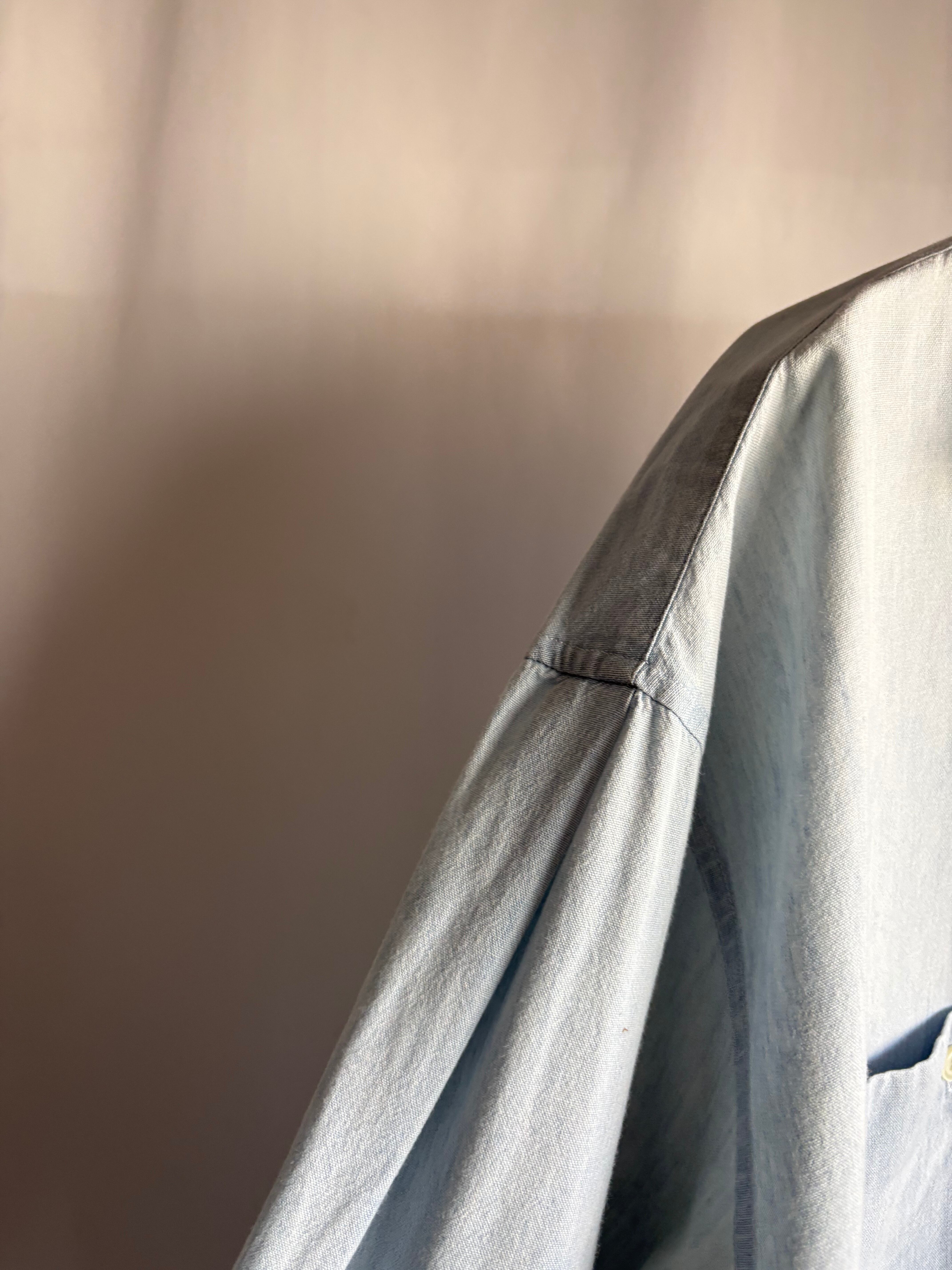 古着のシャンブレー,特に青いシャツって古いモノ以外良いと思うモノを探すのはとても難しい気がします。身幅が細すぎたり、ビジネス感が強すぎたり。ワークスタイルのシャンブレーだと少しアメリカンすぎたり。