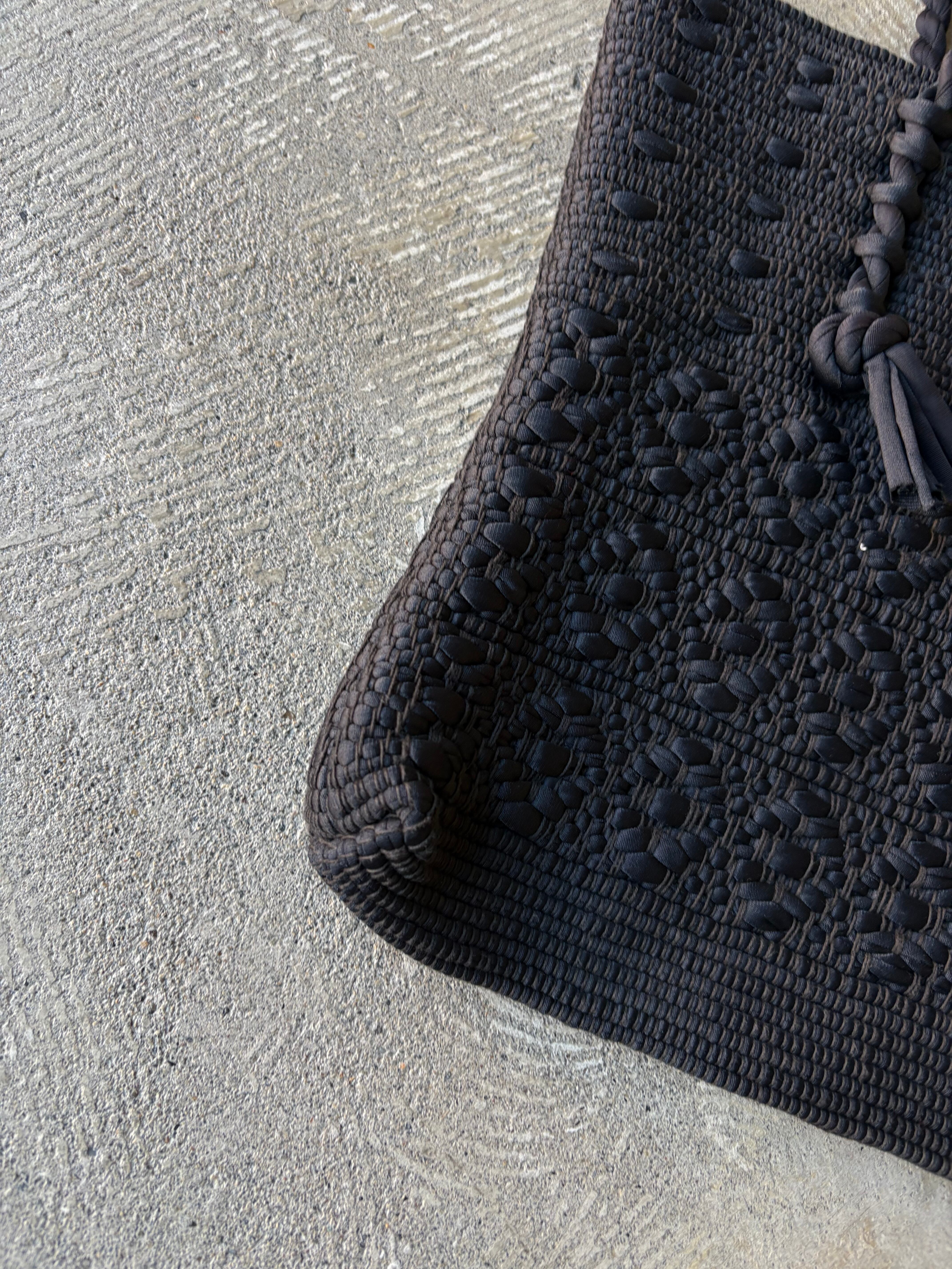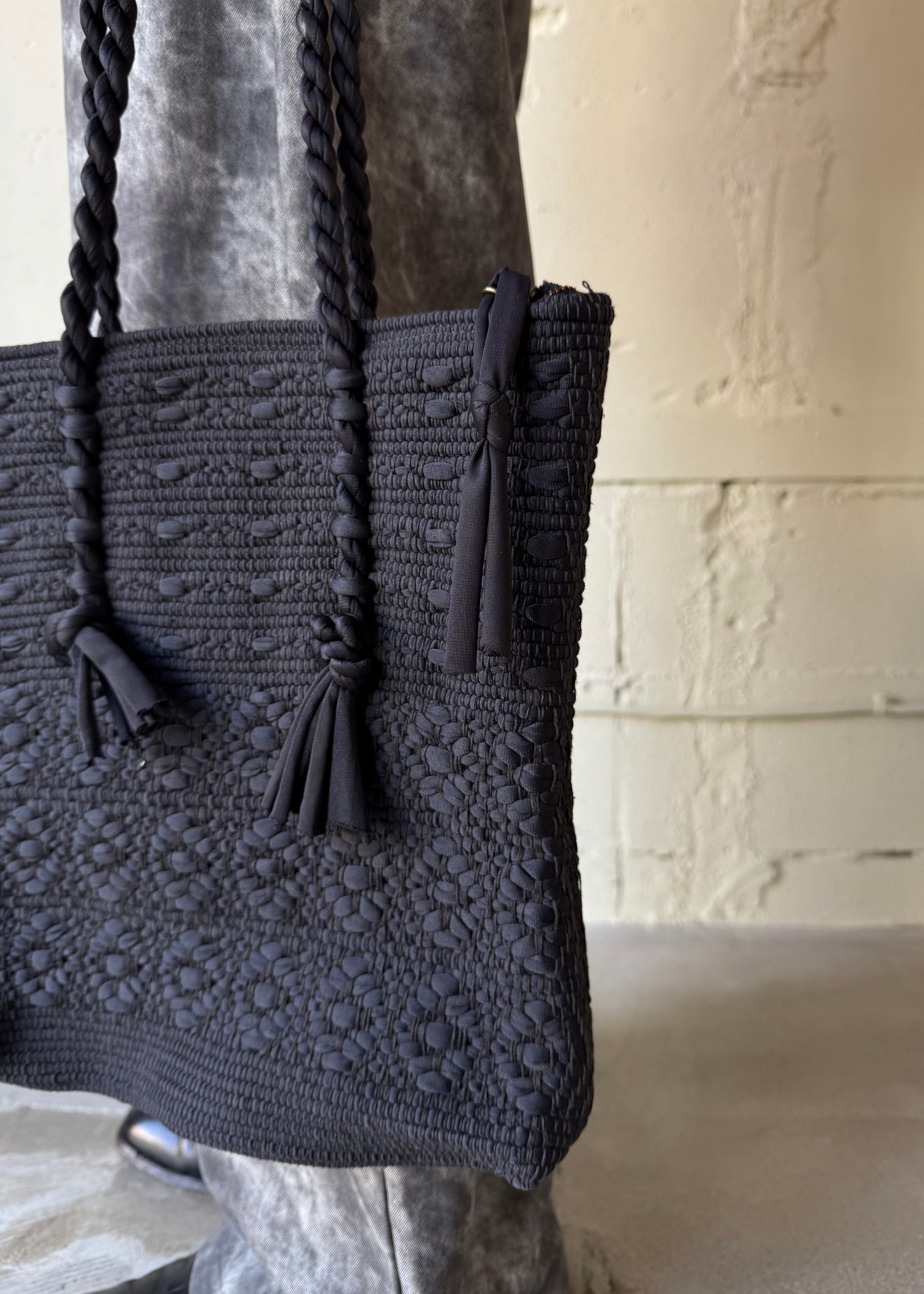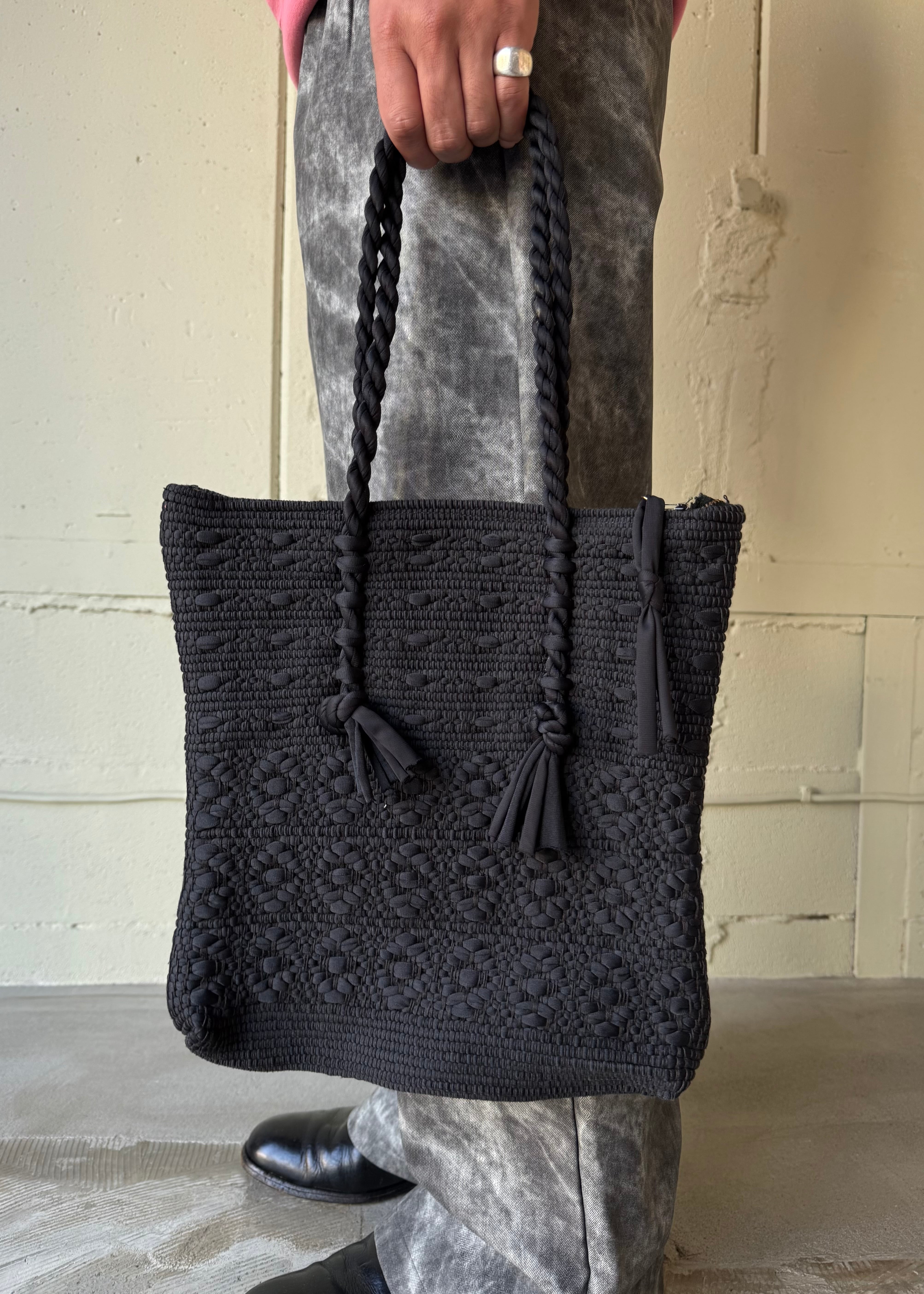 カラーもブラックで肩にかけられる程のハンドル。このハンドメイドのラベルとても可愛いですよね。