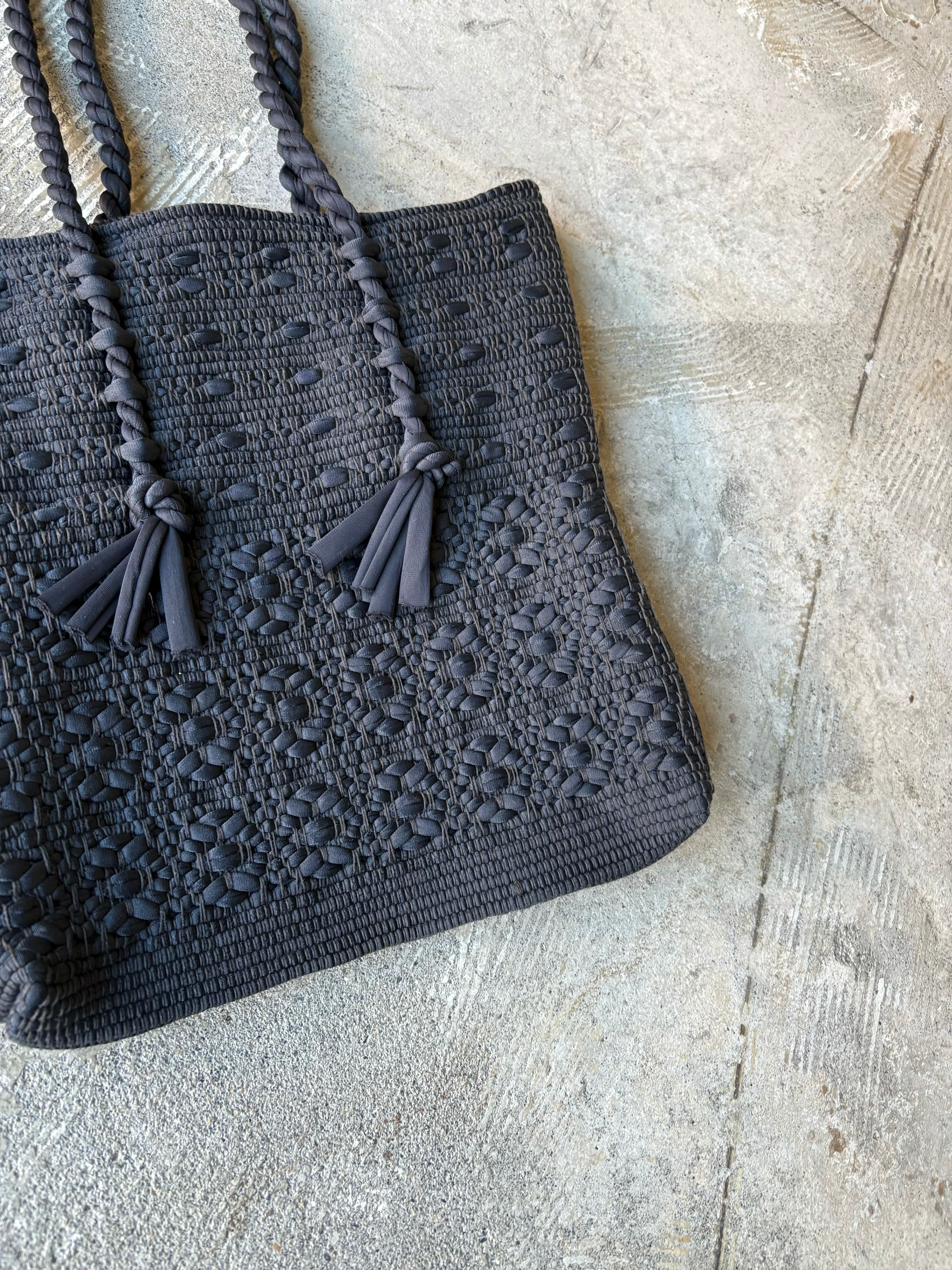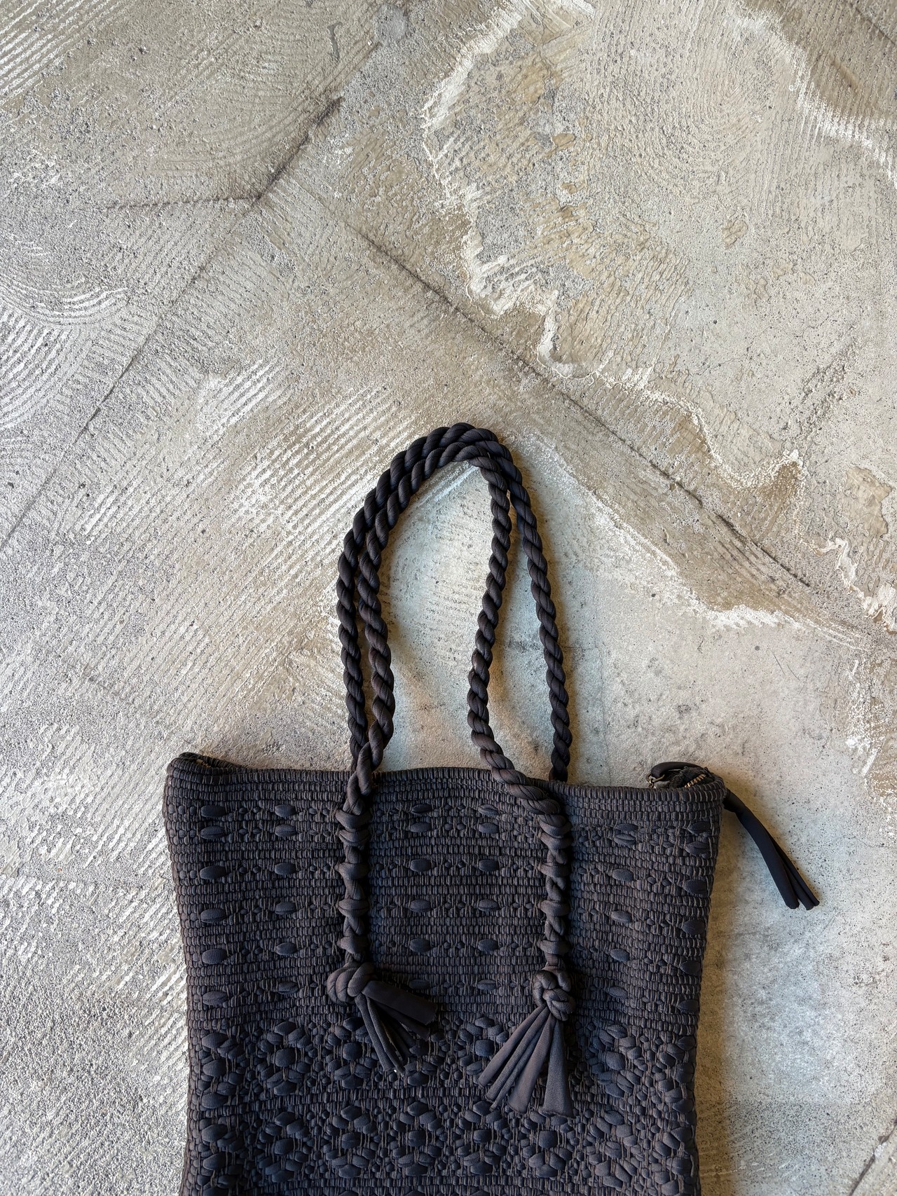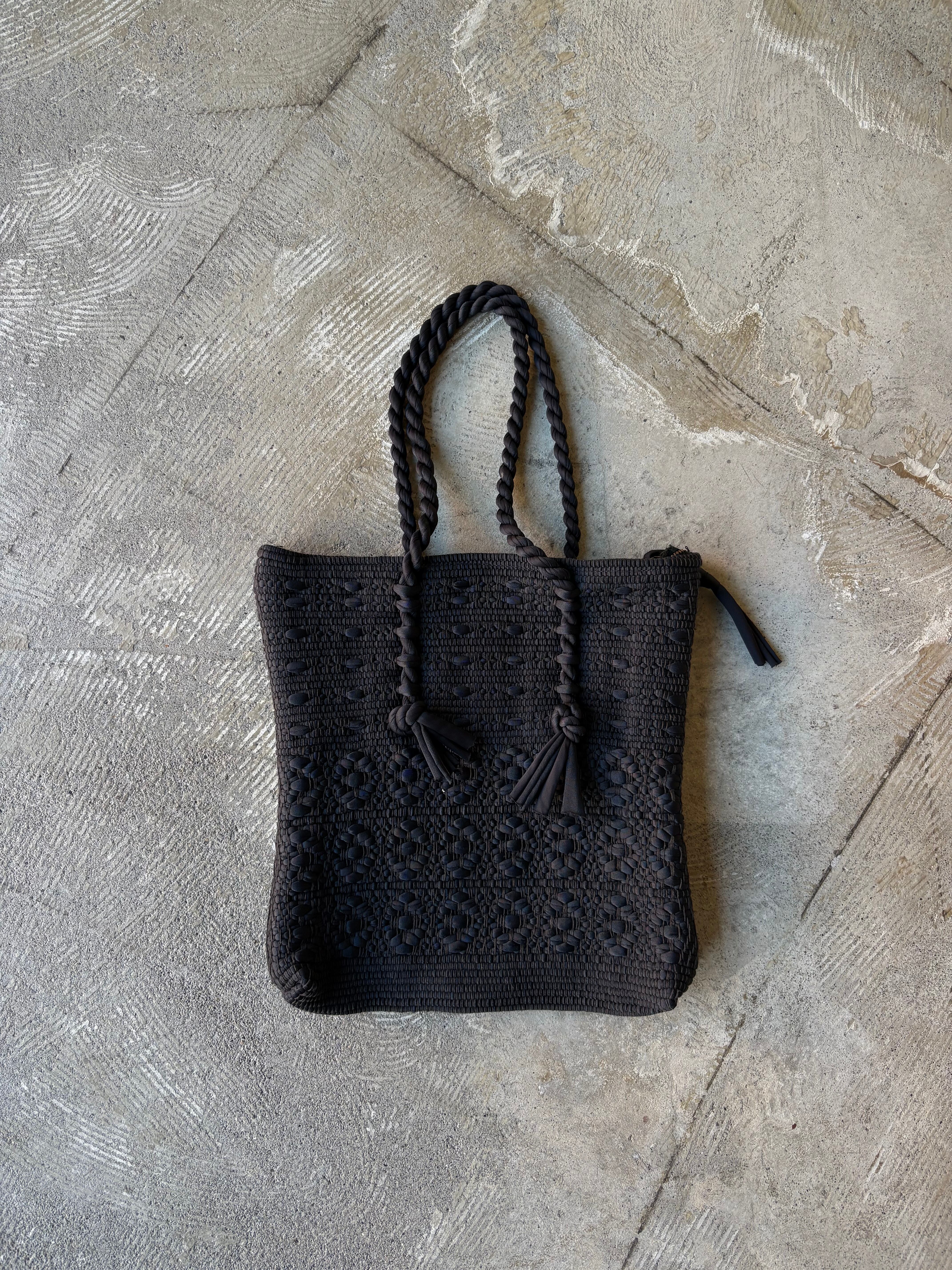 カラーもブラックで肩にかけられる程のハンドル。このハンドメイドのラベルとても可愛いですよね。