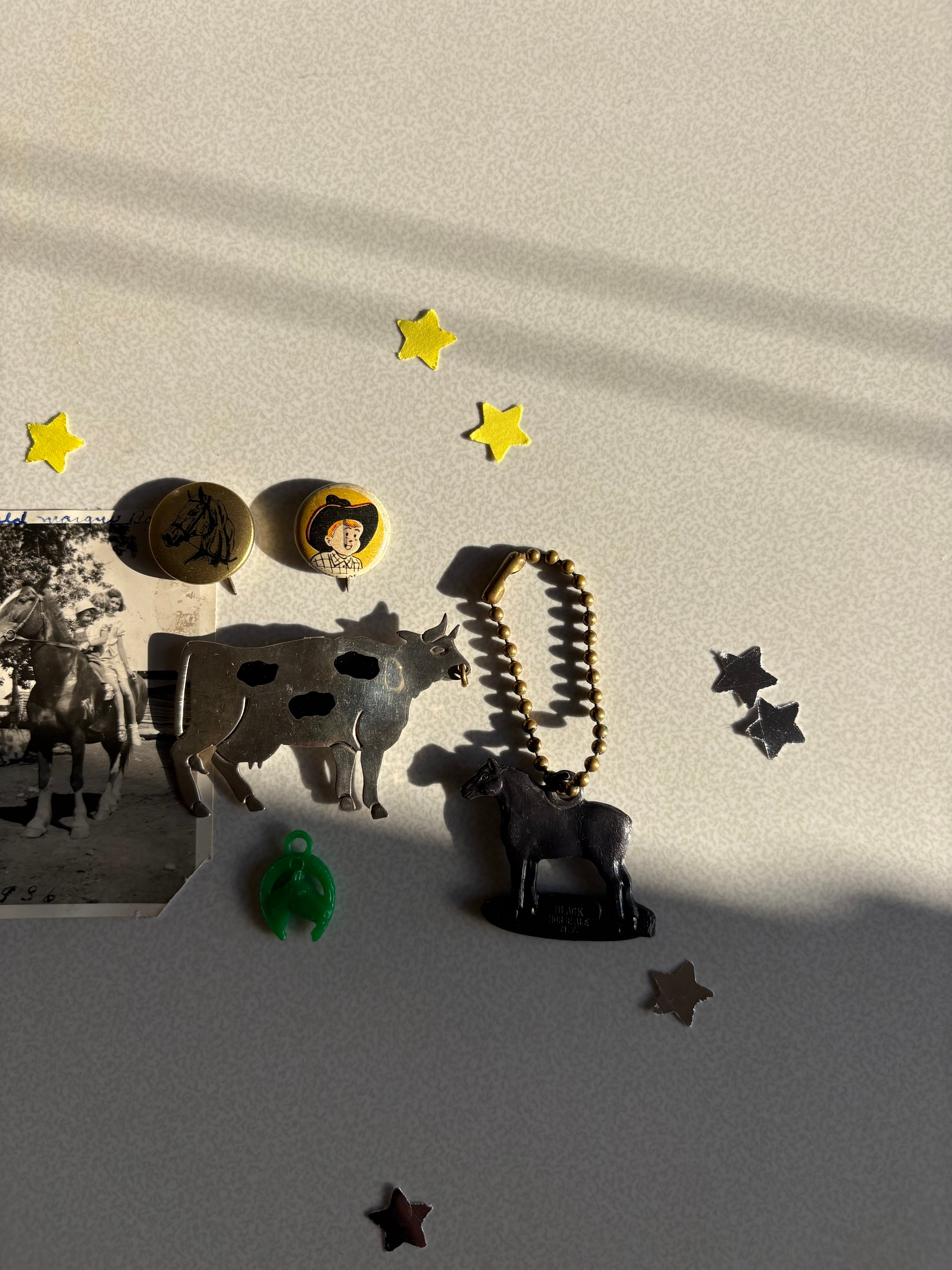 少年少女の夢、カウボーイ/カウガールイメージ。あくまでも勝手なイメージ。キーチェインは当時のアメリカのビール会社の広告品です。