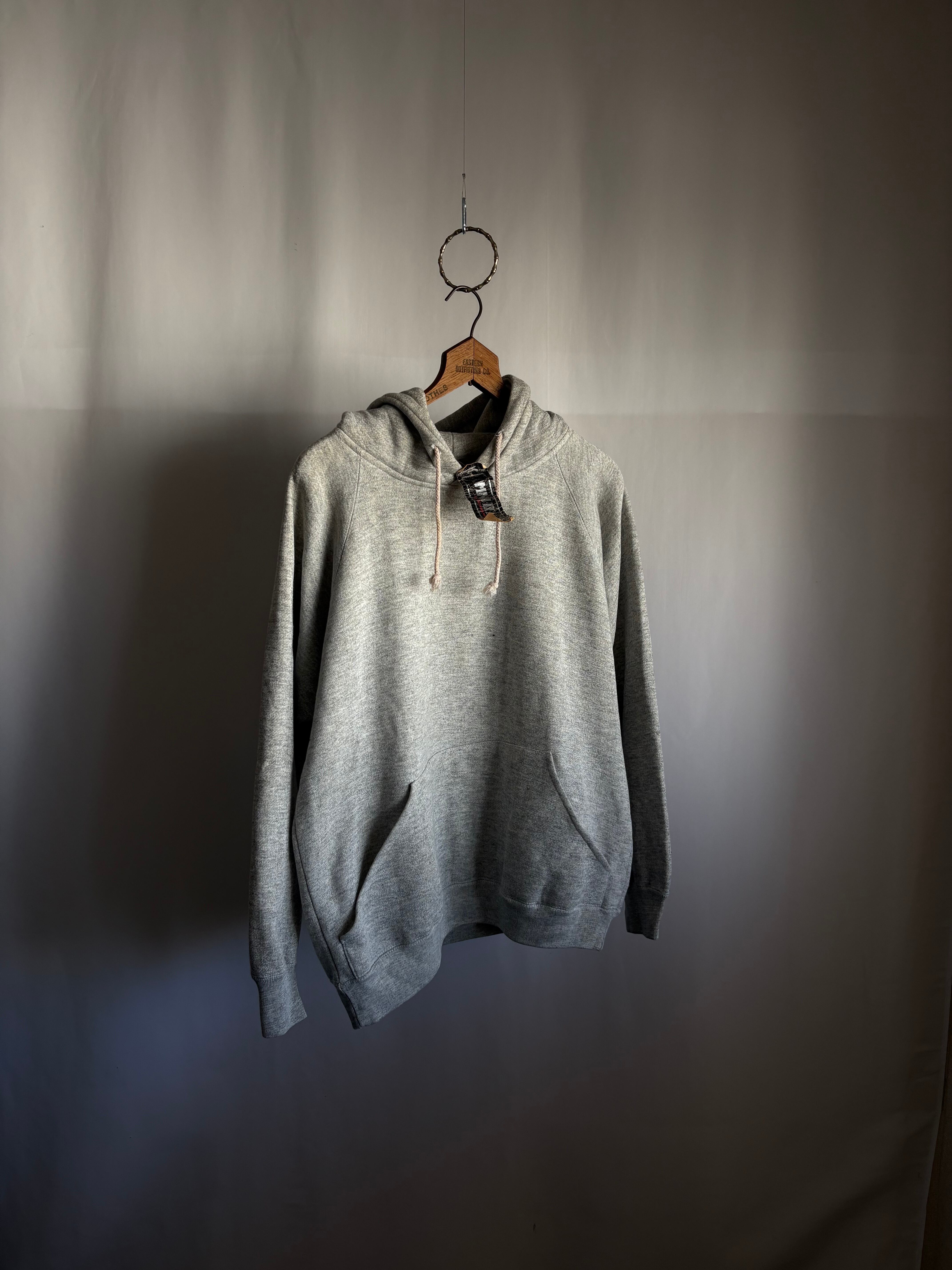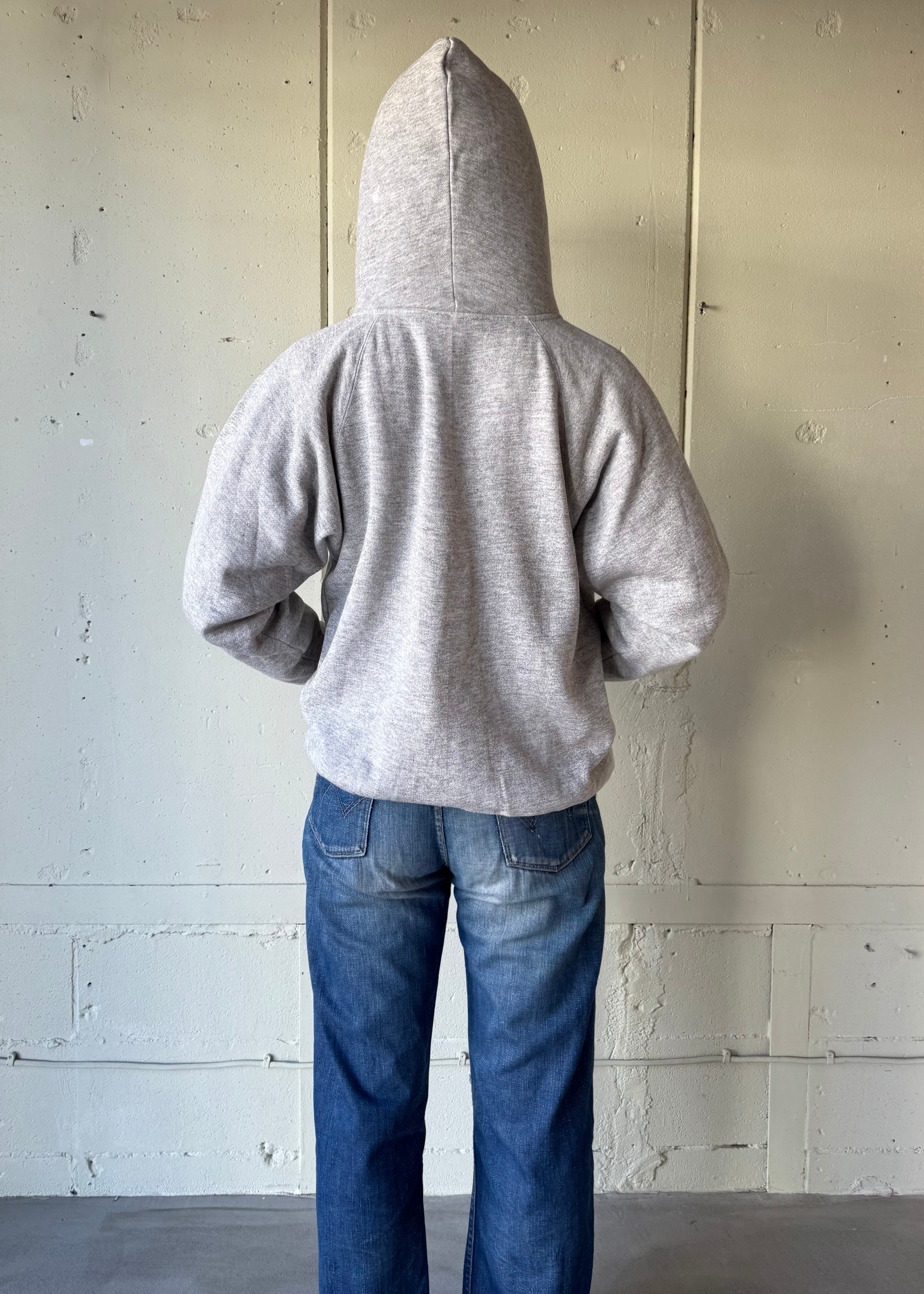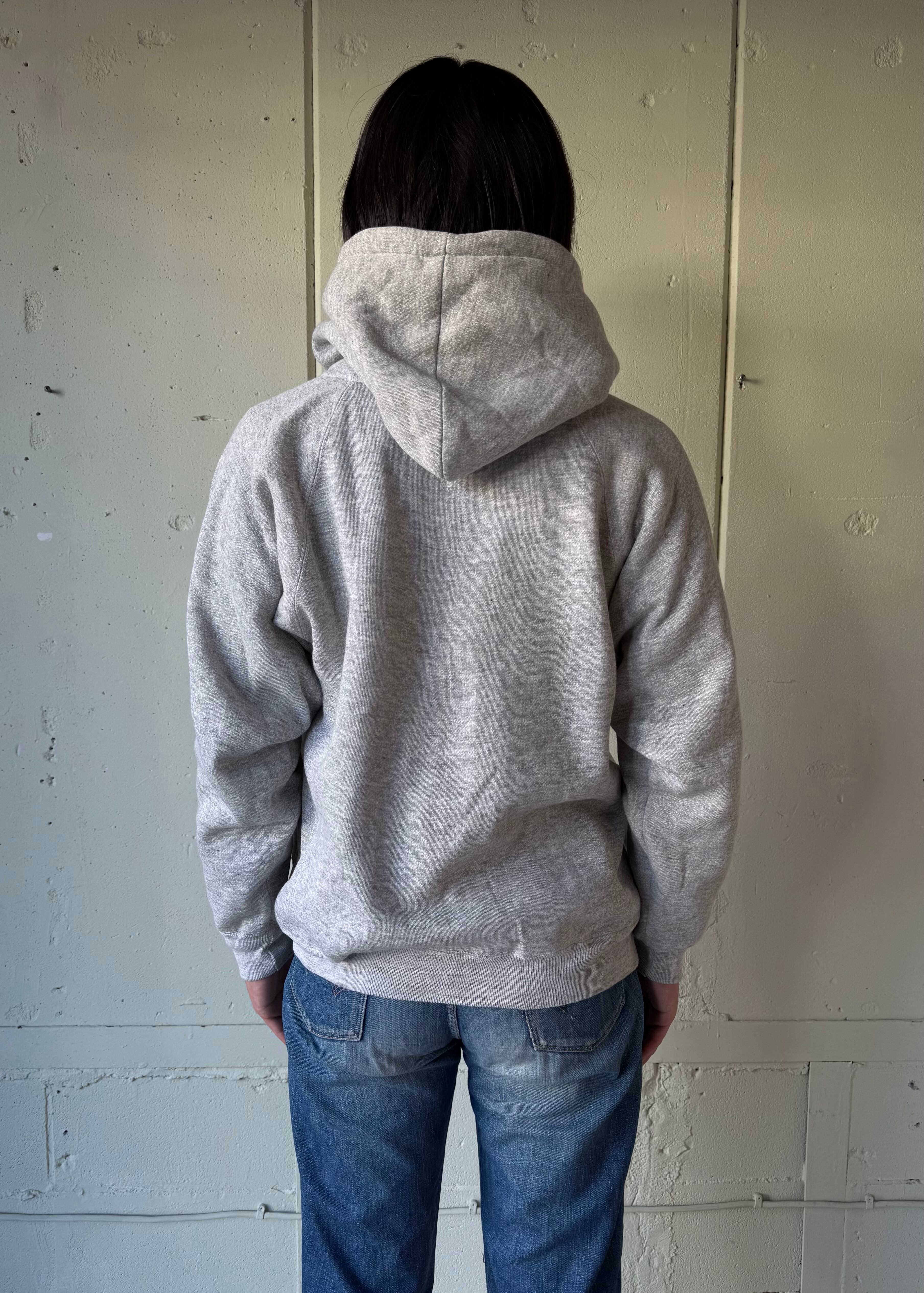 普通のグレーのパーカー、しかもチャイナ製。けれど1970s/80sあたりの未だ大量生産過ぎない自体のものです。ポケットやフードの大きさが地味ですが珍しい。どこかビンテージのフーディーを思い起こすものの、何故か化繊100%。そこも良いですね。