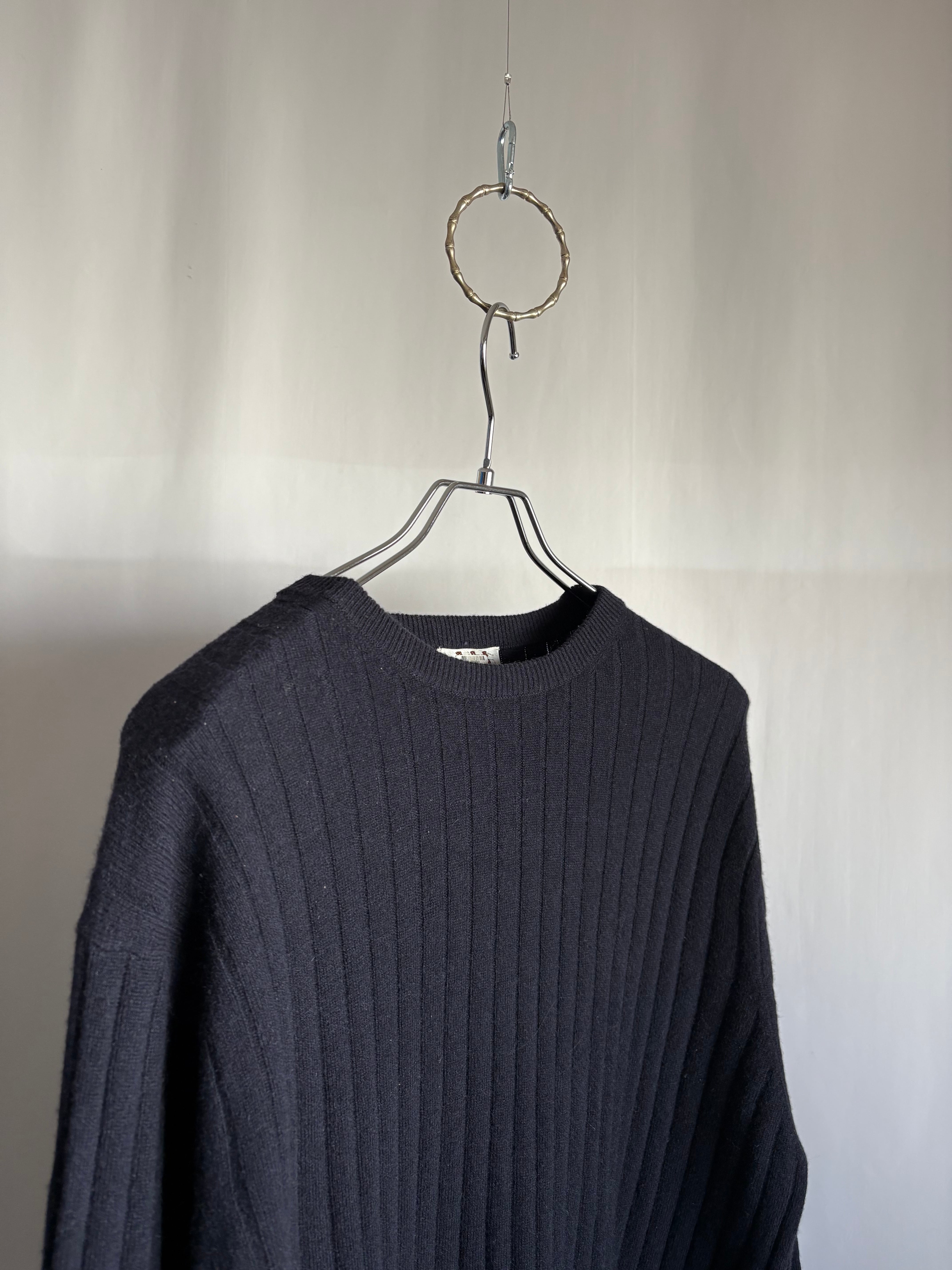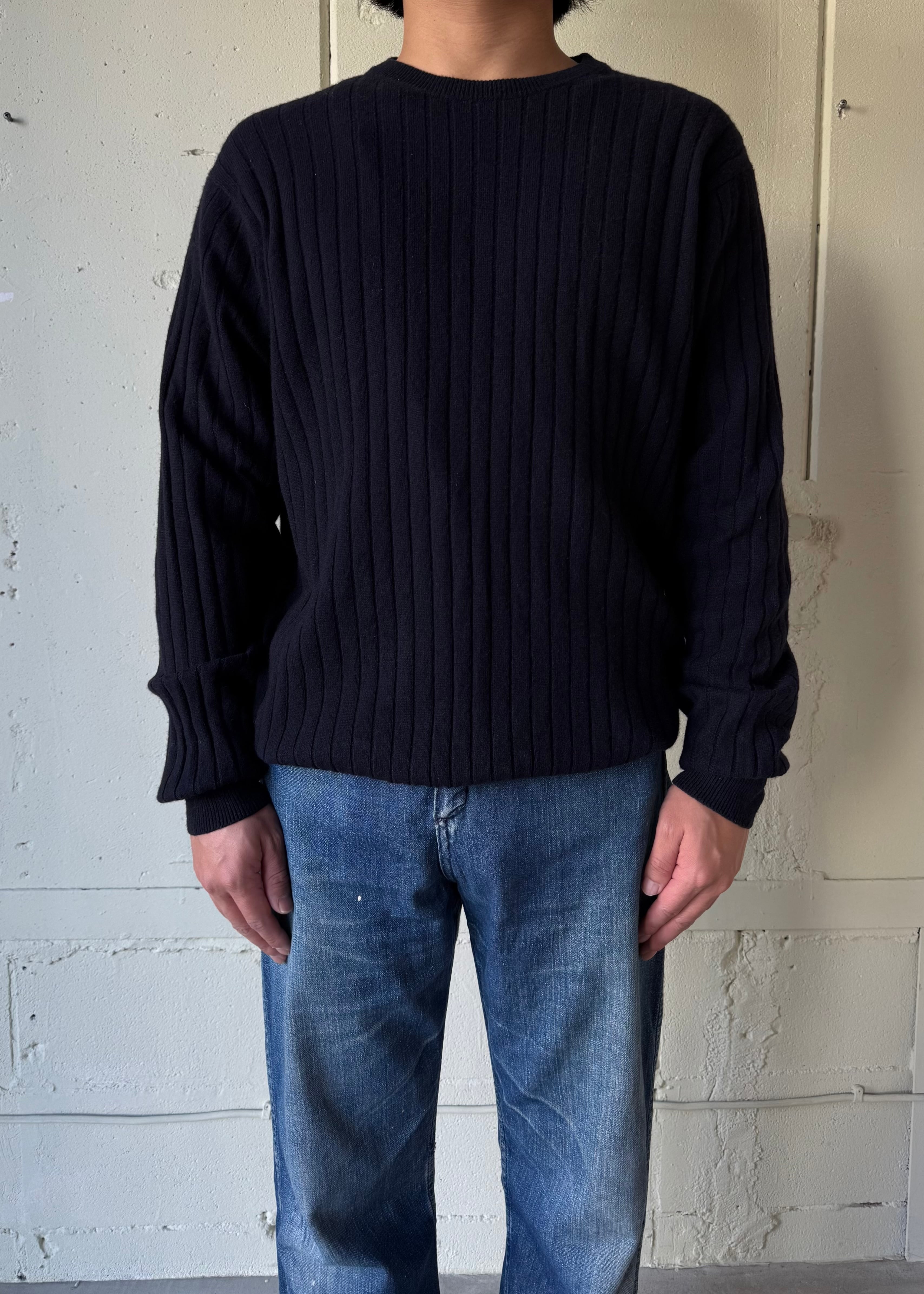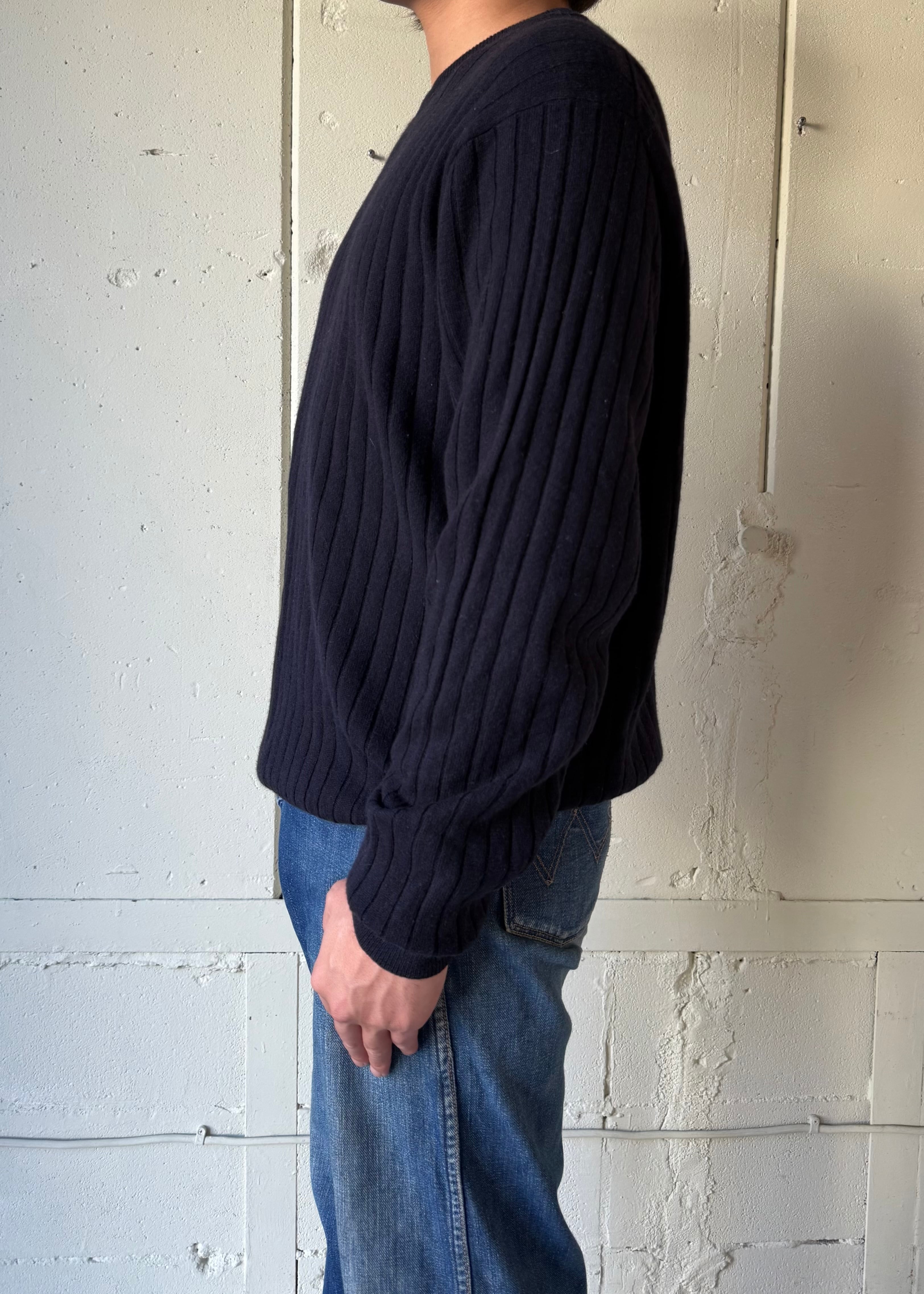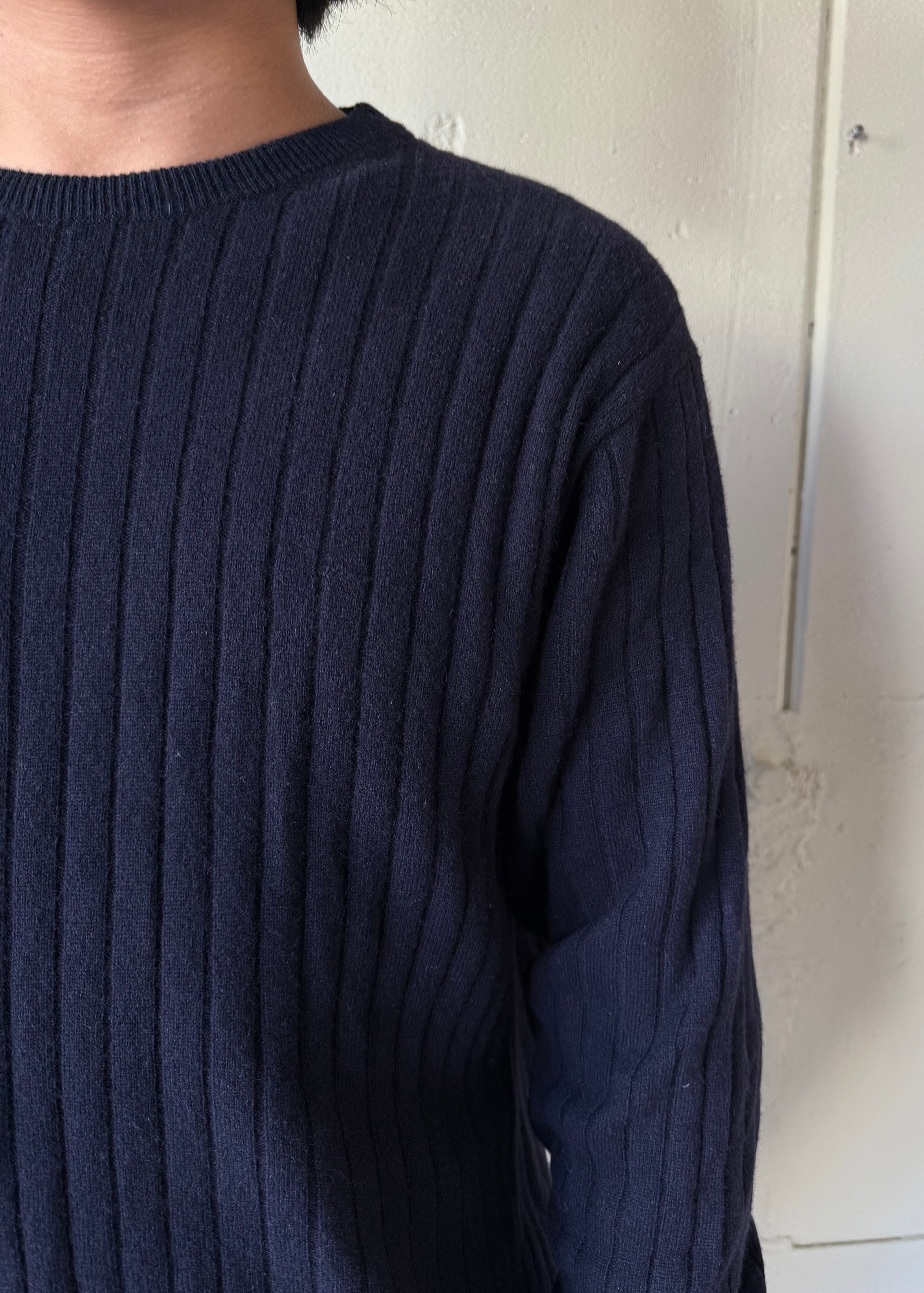あぜ編みの中厚手-薄手の間位のカシミアセーターです。これぞベーシック。タグの社名もかっこいい。